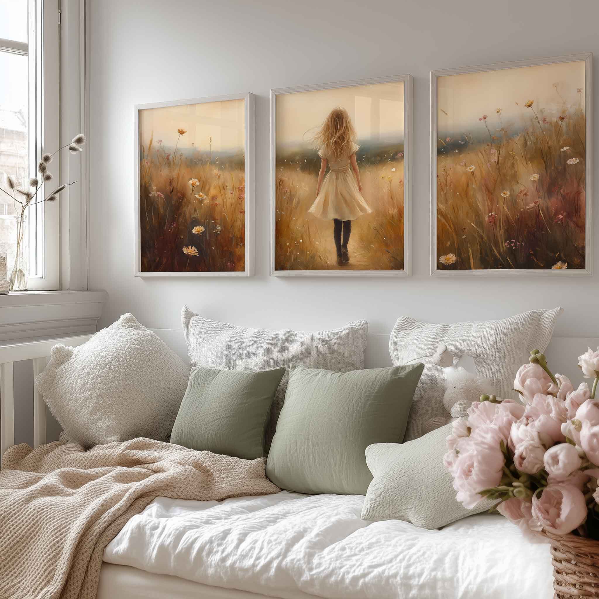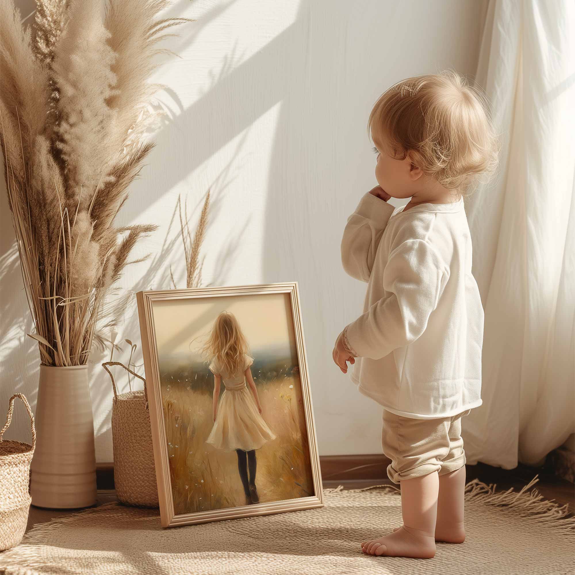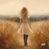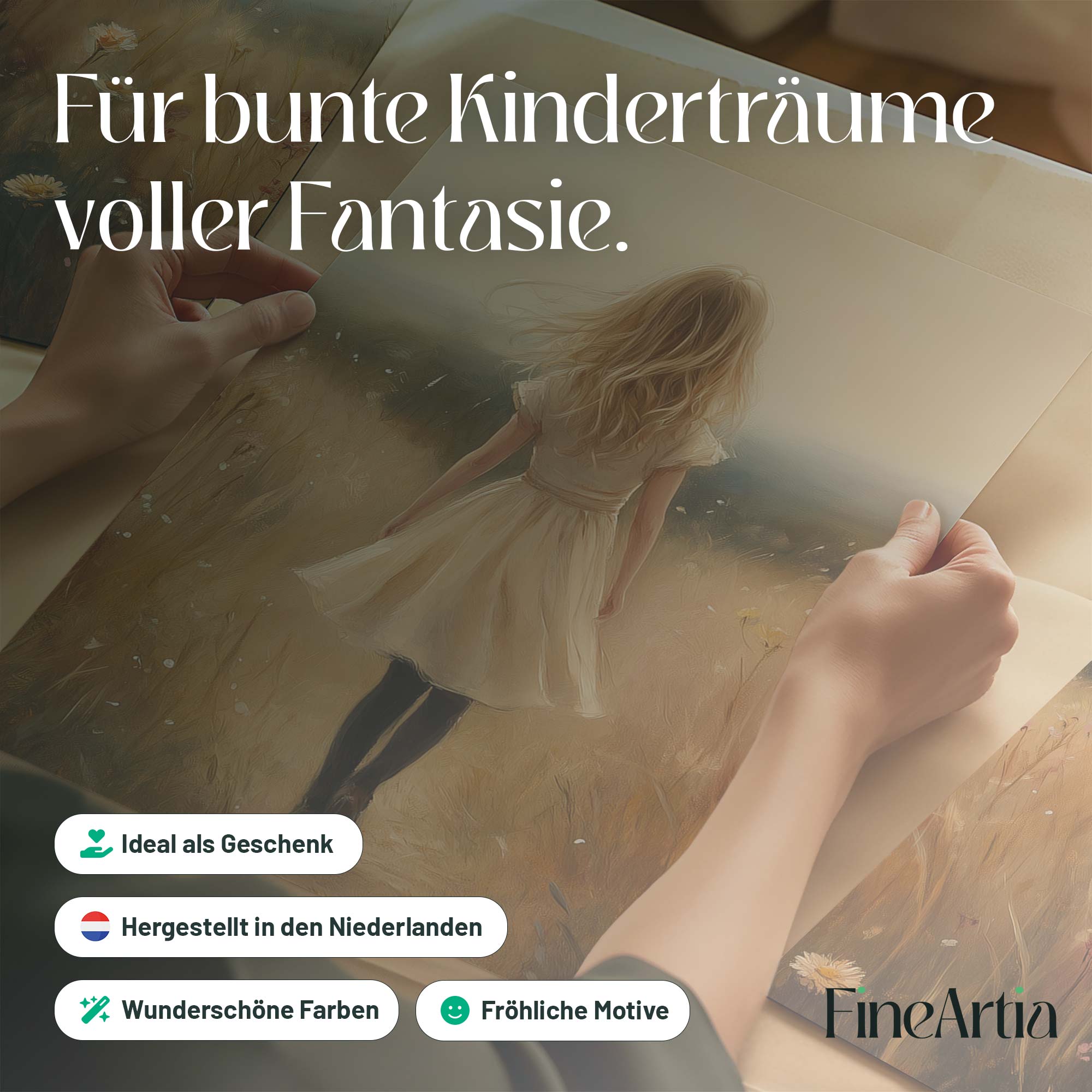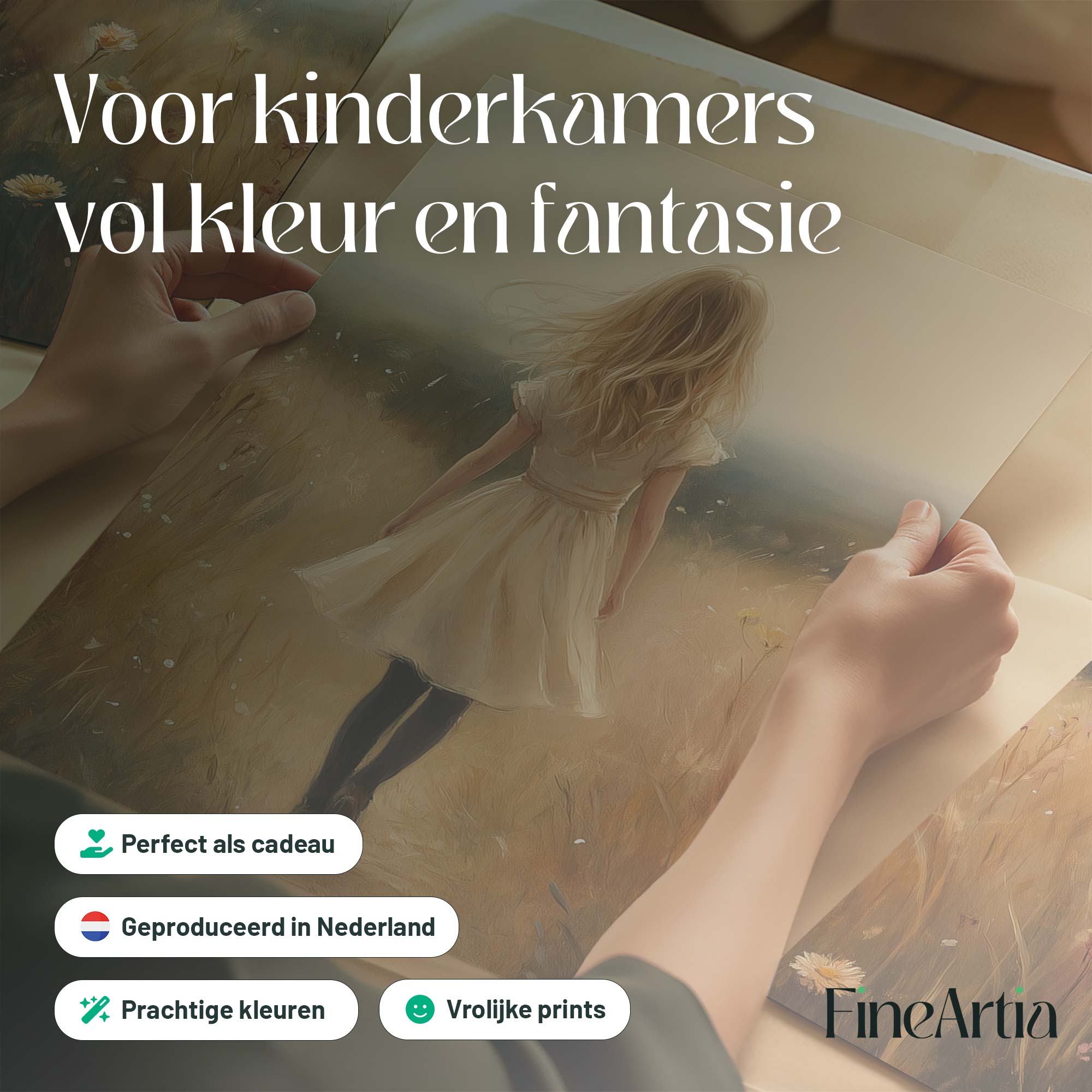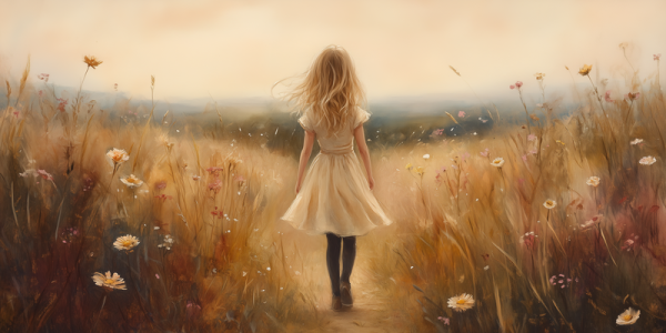 Dromerig Meisje in Bloemenveld – Zachte Pastelkleuren
