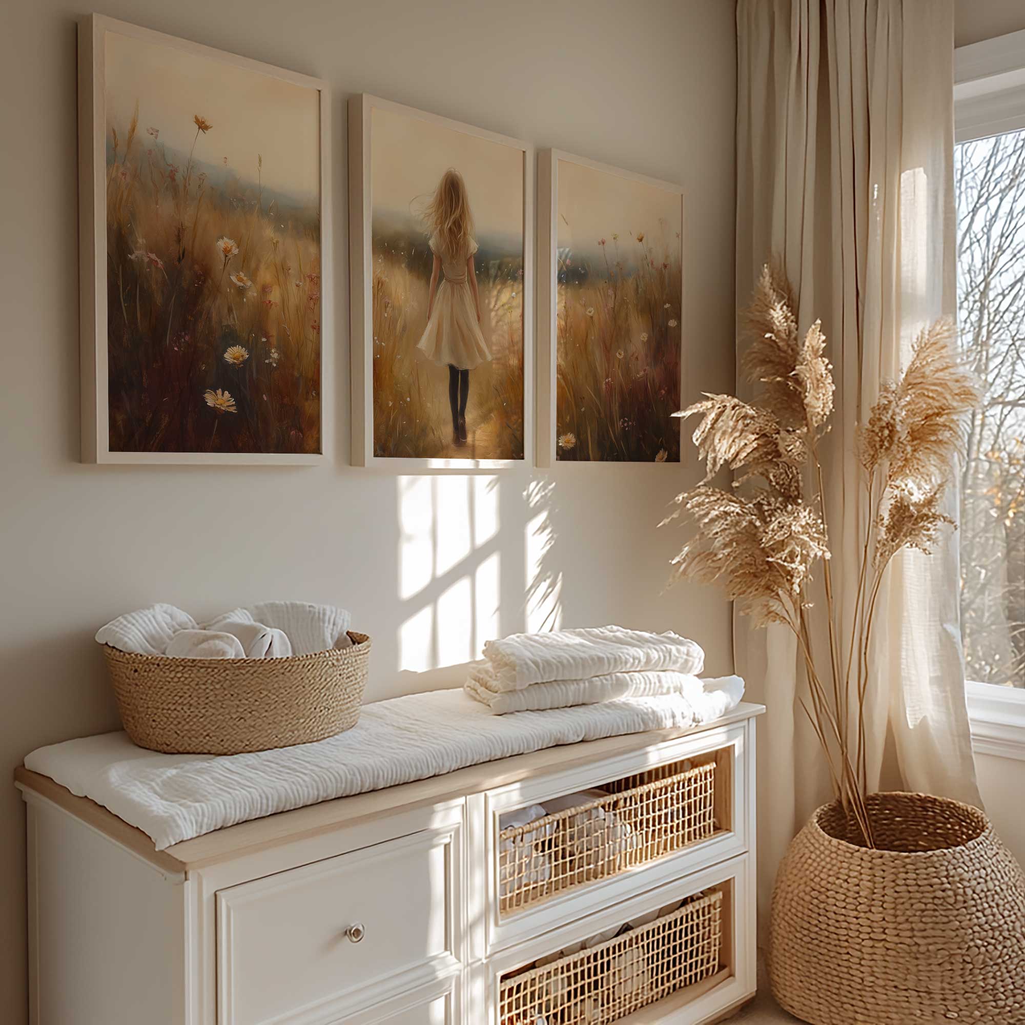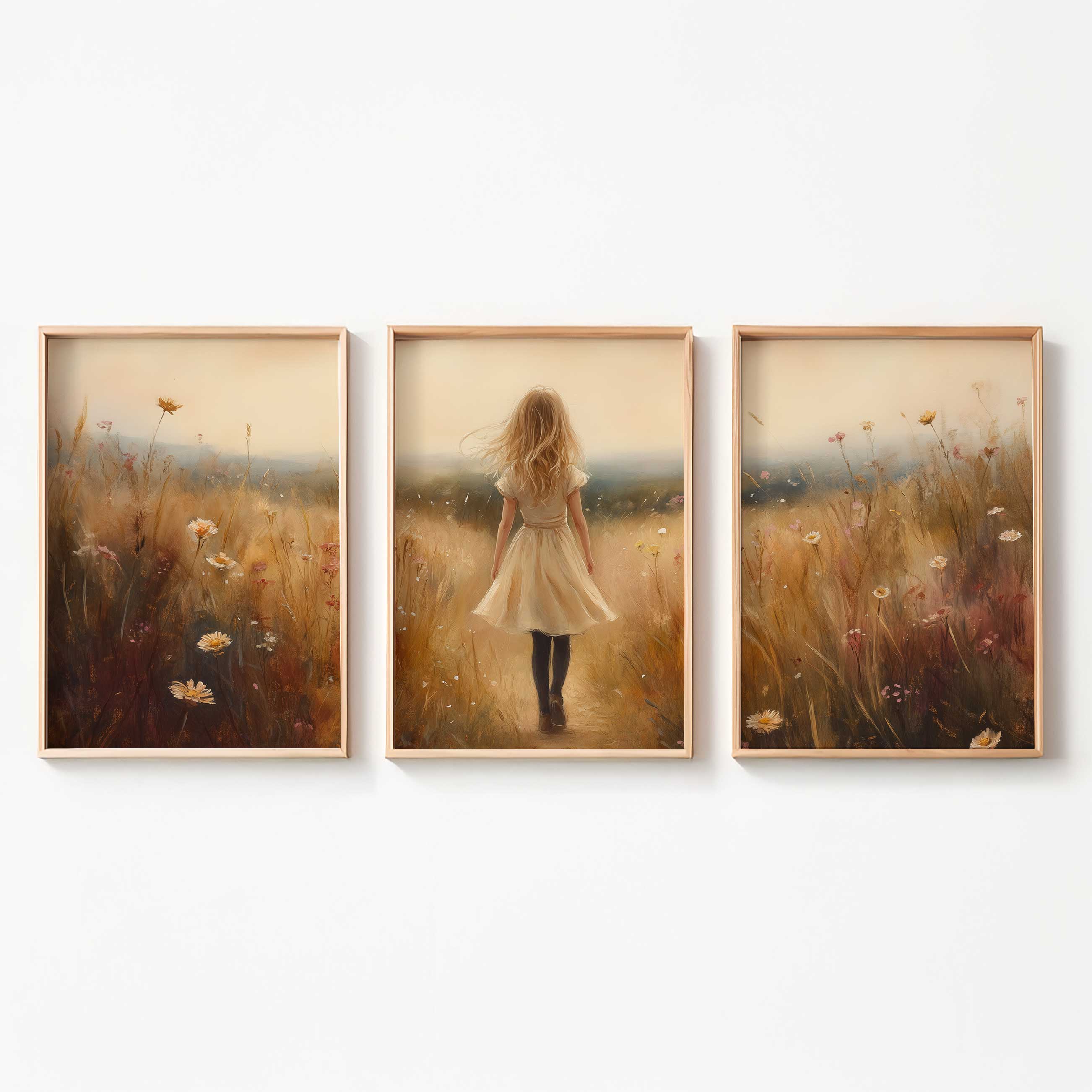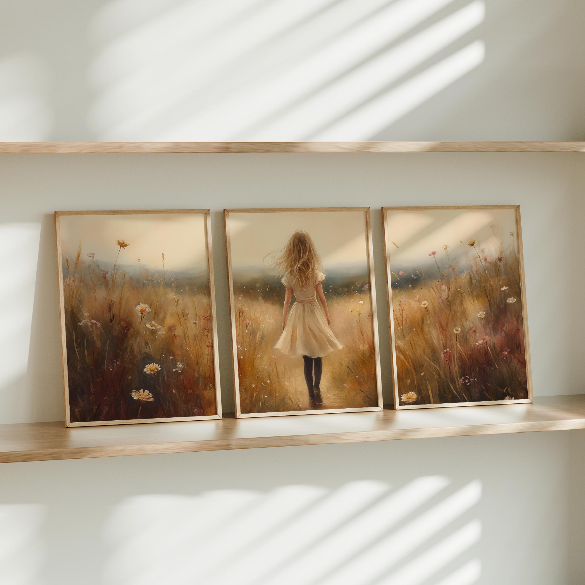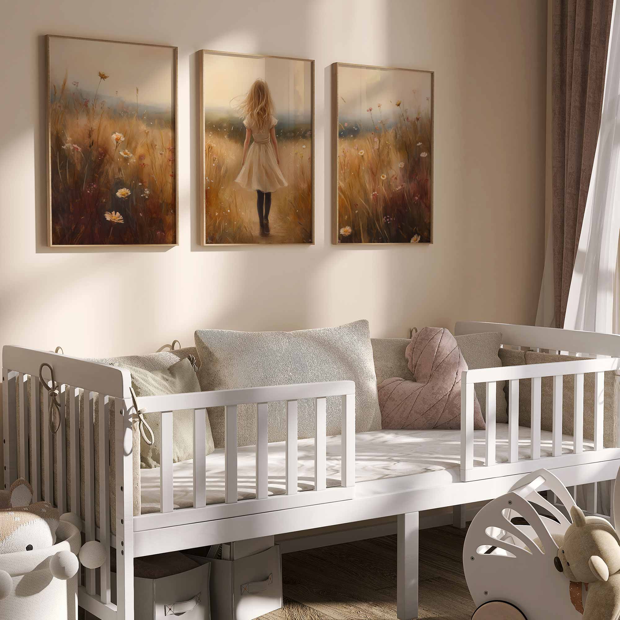 Dromerig Meisje in Bloemenveld – Zachte Pastelkleuren