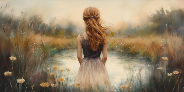 Dromerig Meisje in Bloemenveld – Zachte Sfeer en Beweging
