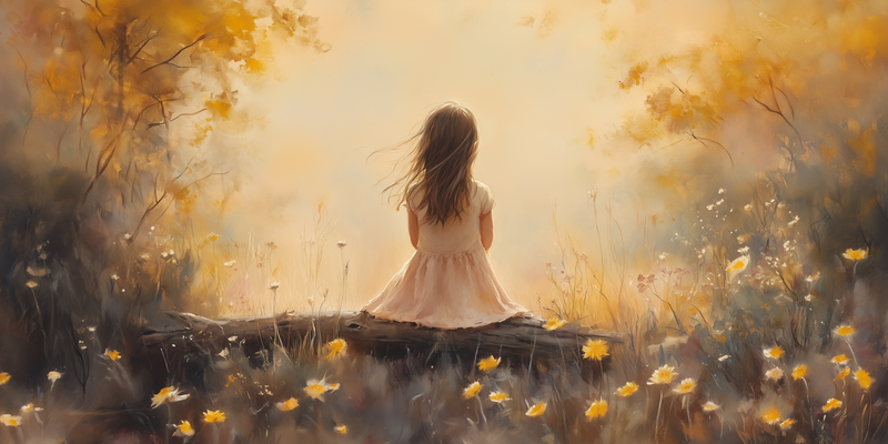 Dromerig Meisje in Bloemenveld