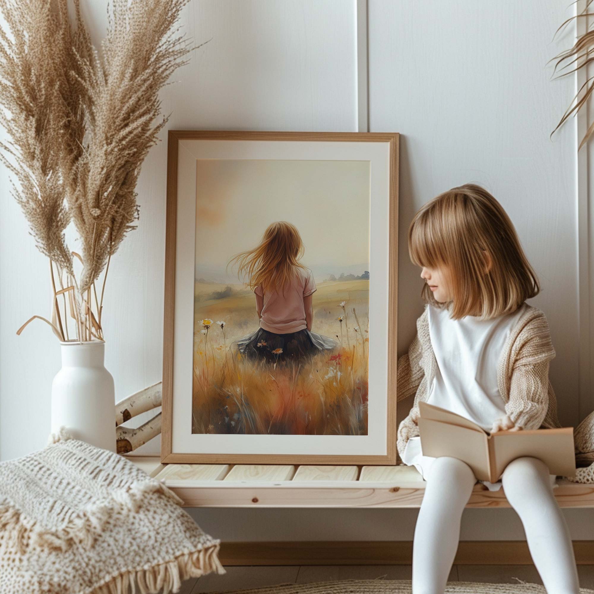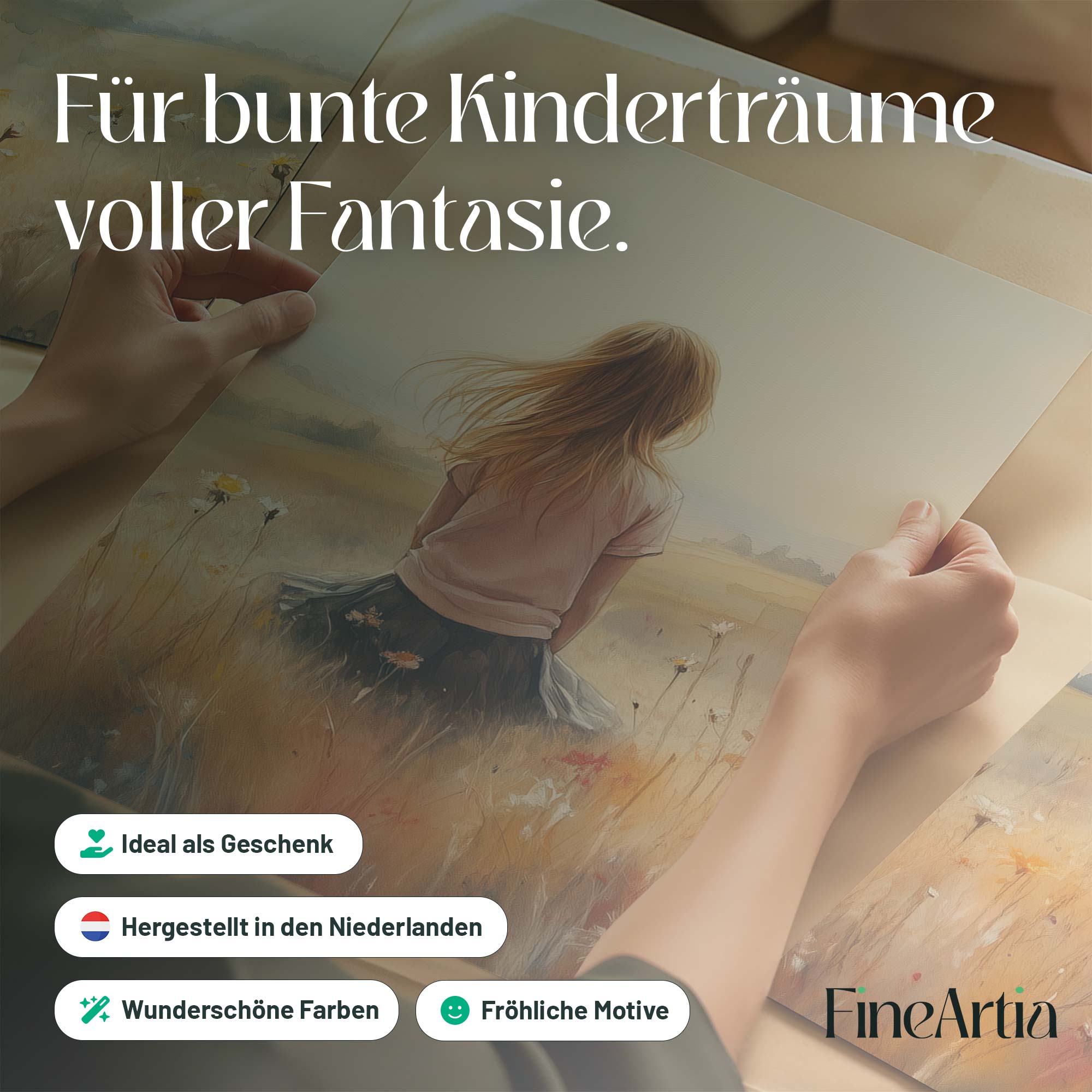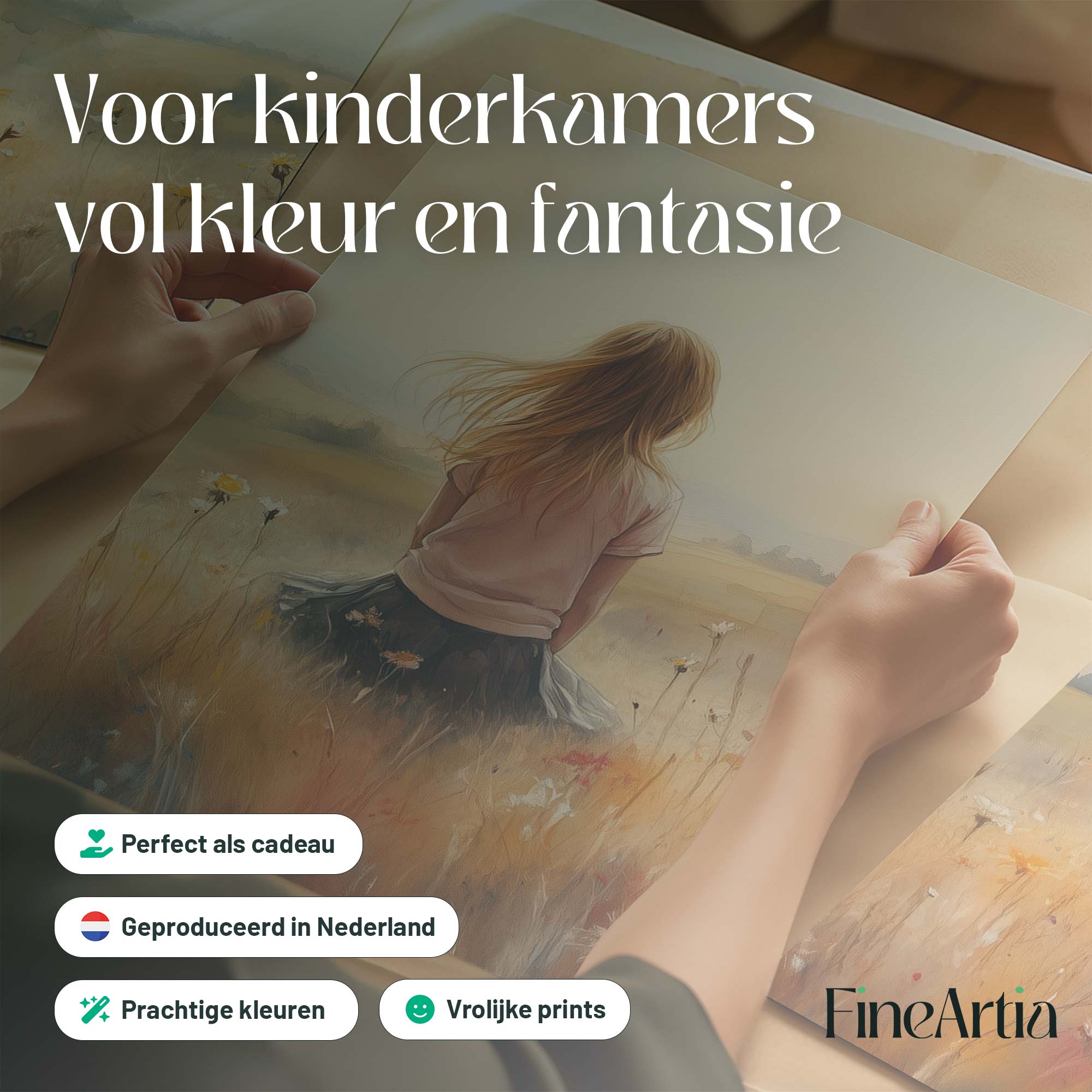 Terug naar collectie Posters Dromerig Meisje in een Zee van Bloemen