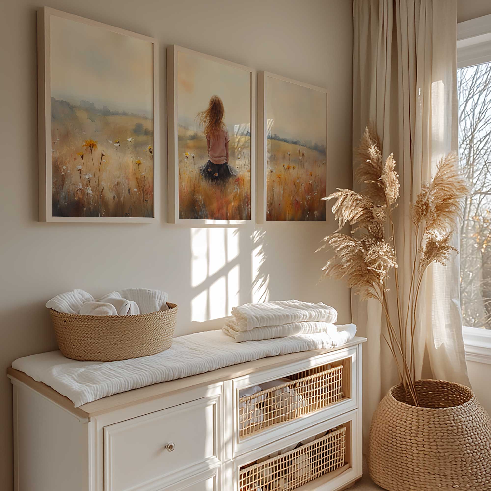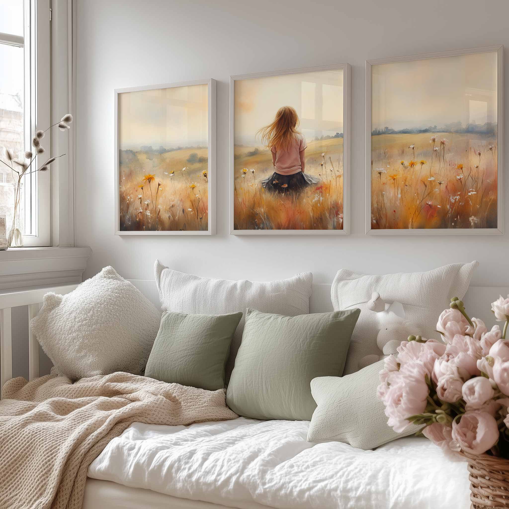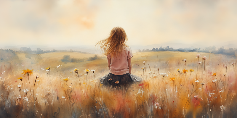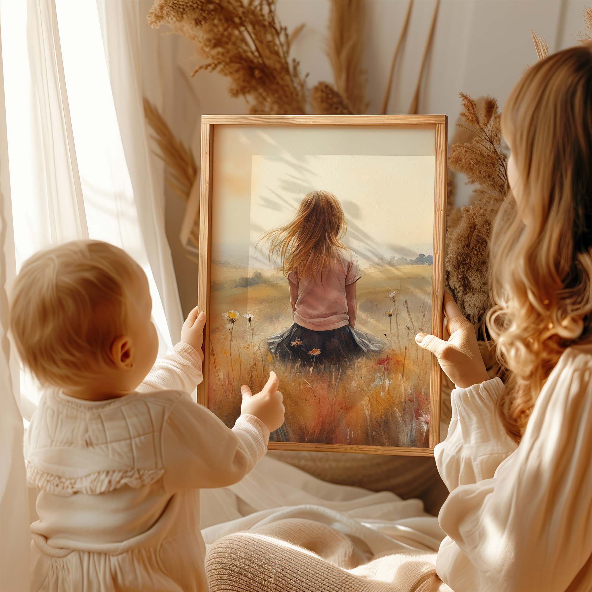 Terug naar collectie Posters Dromerig Meisje in een Zee van Bloemen