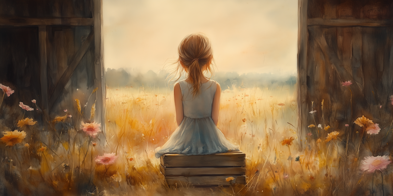 Dromerig Meisje in Pastel Bloemenveld