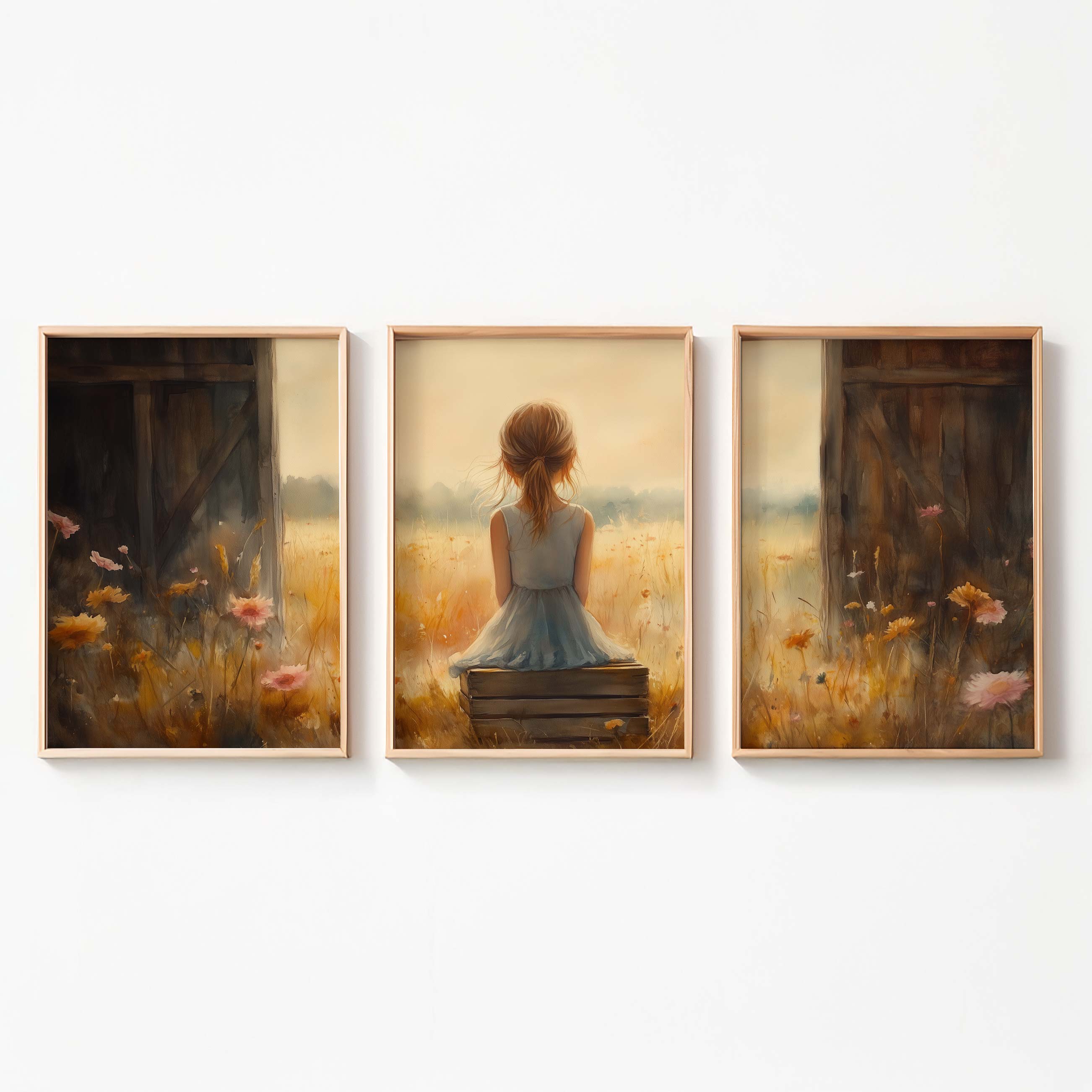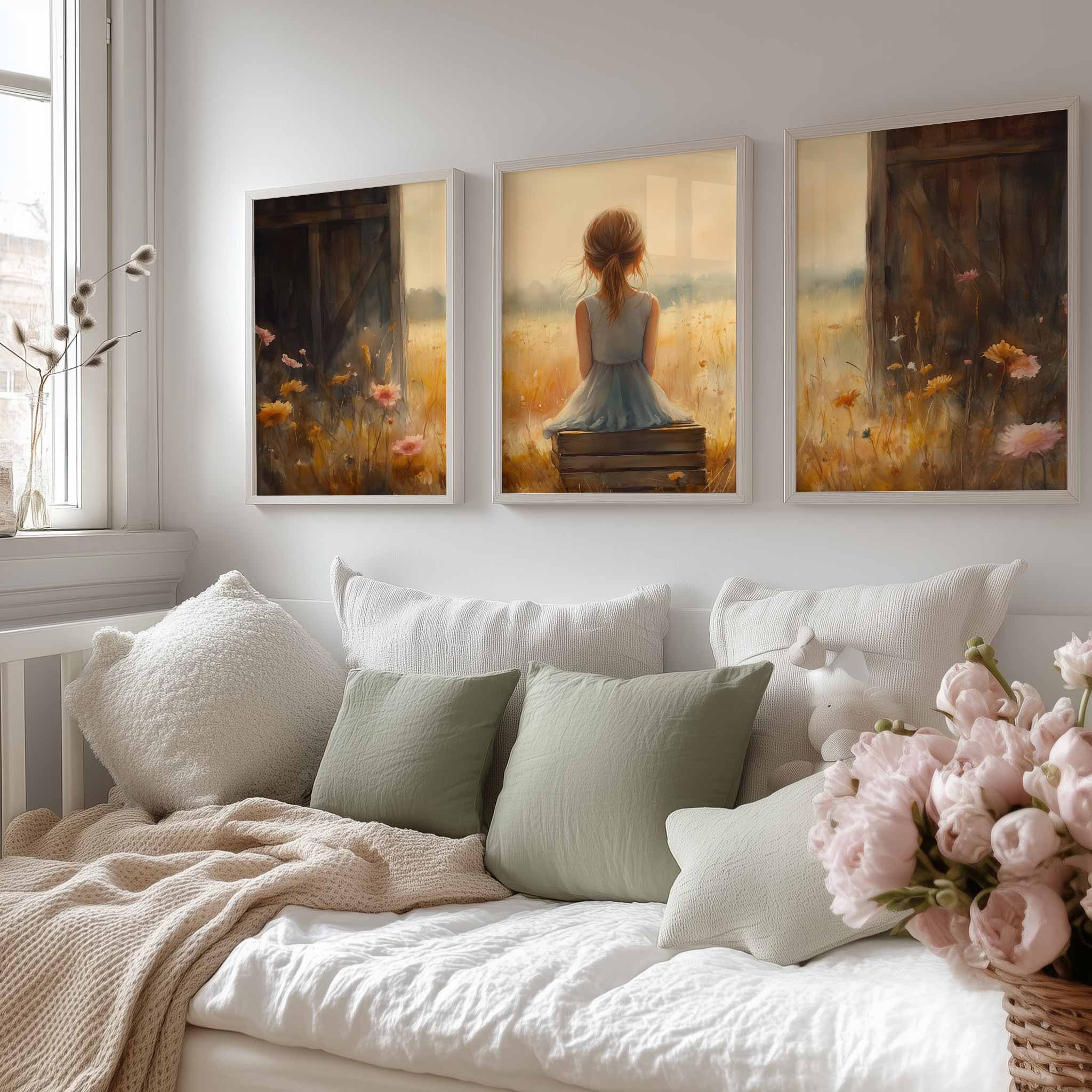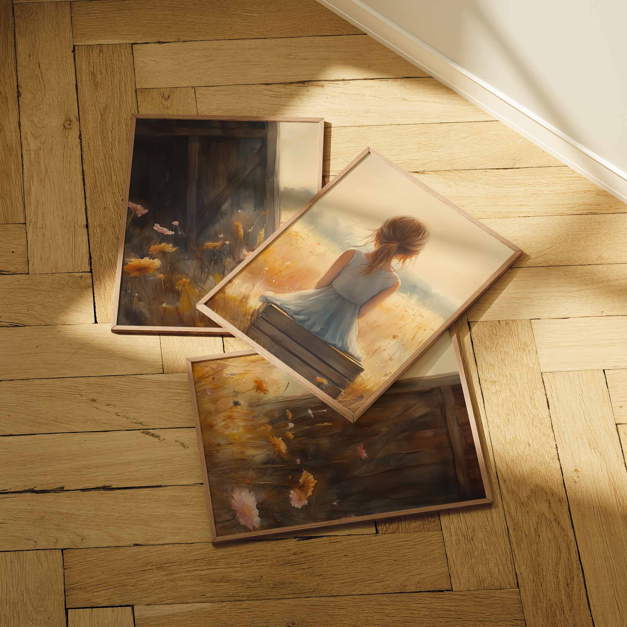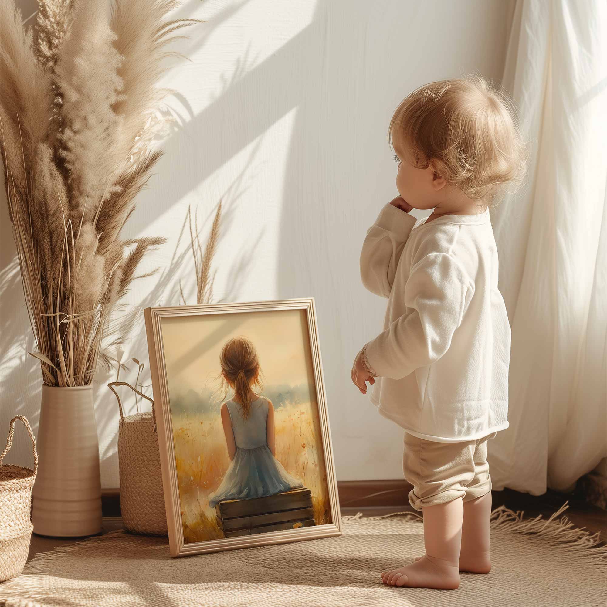 Terug naar collectie Posters Dromerig Meisje in Pastel Bloemenveld