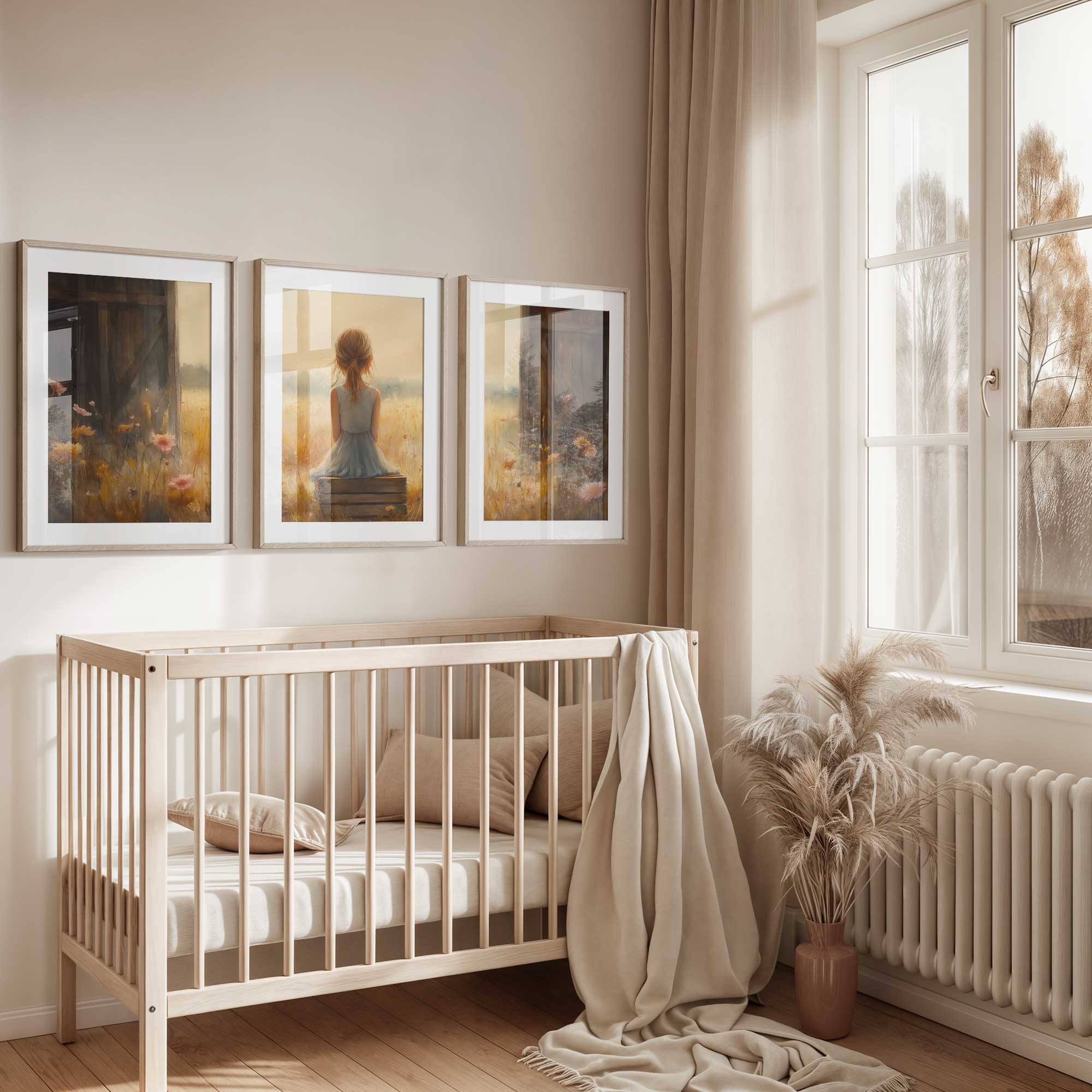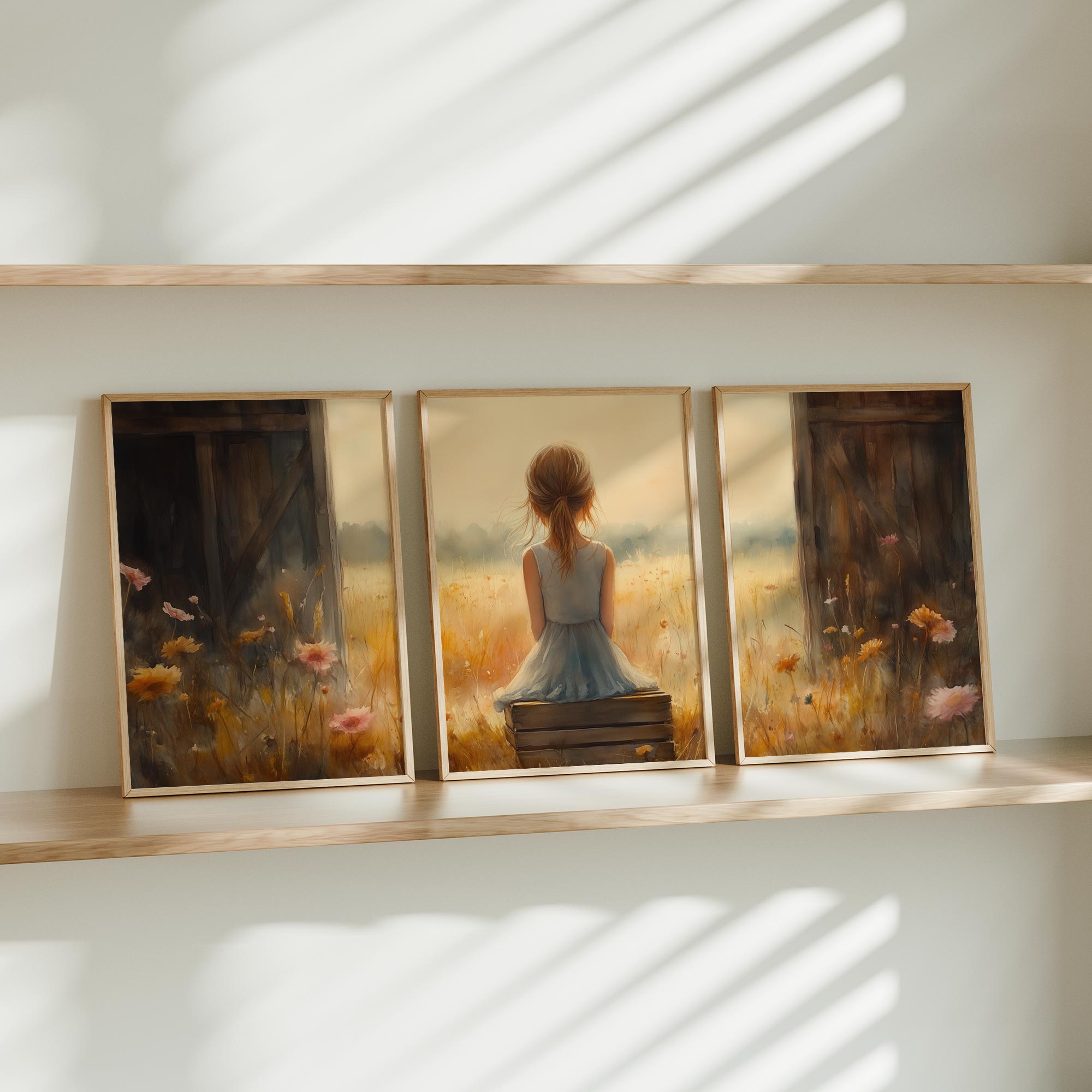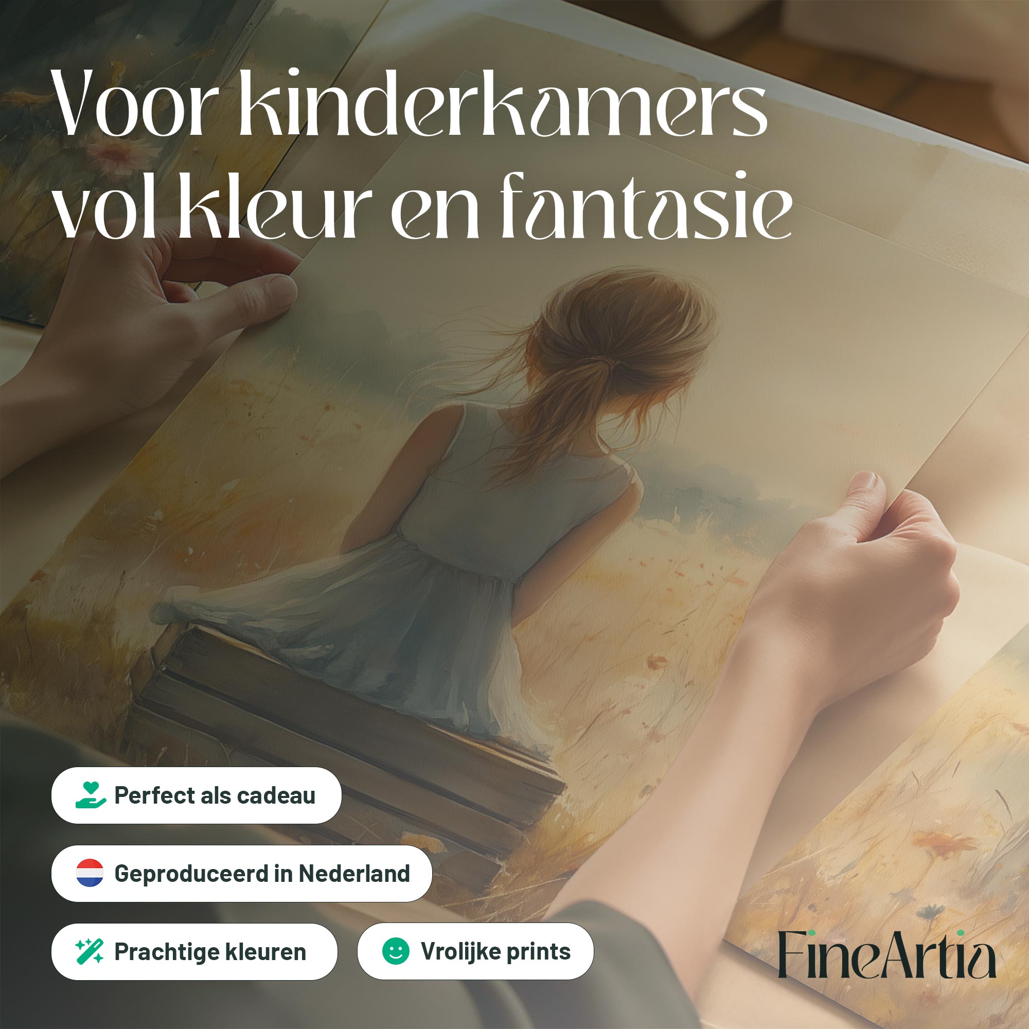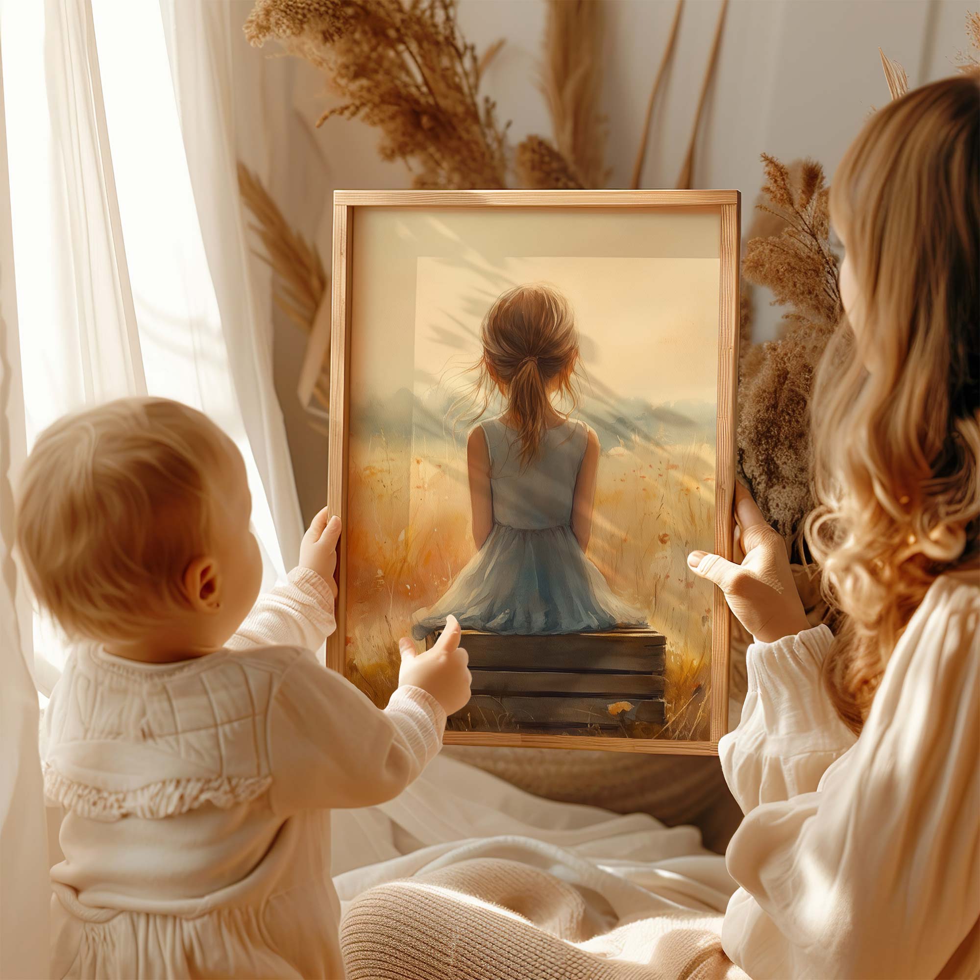 Terug naar collectie Posters Dromerig Meisje in Pastel Bloemenveld