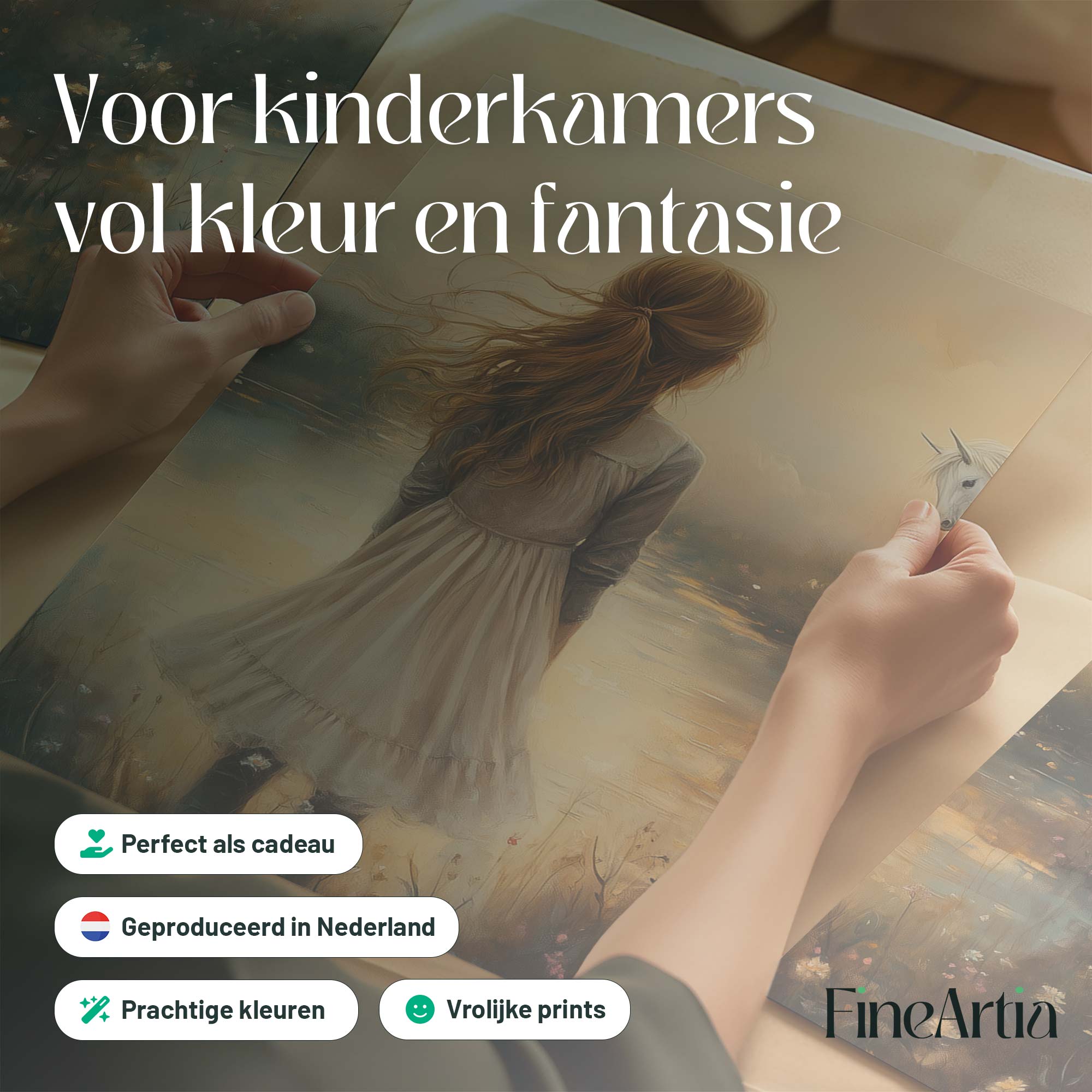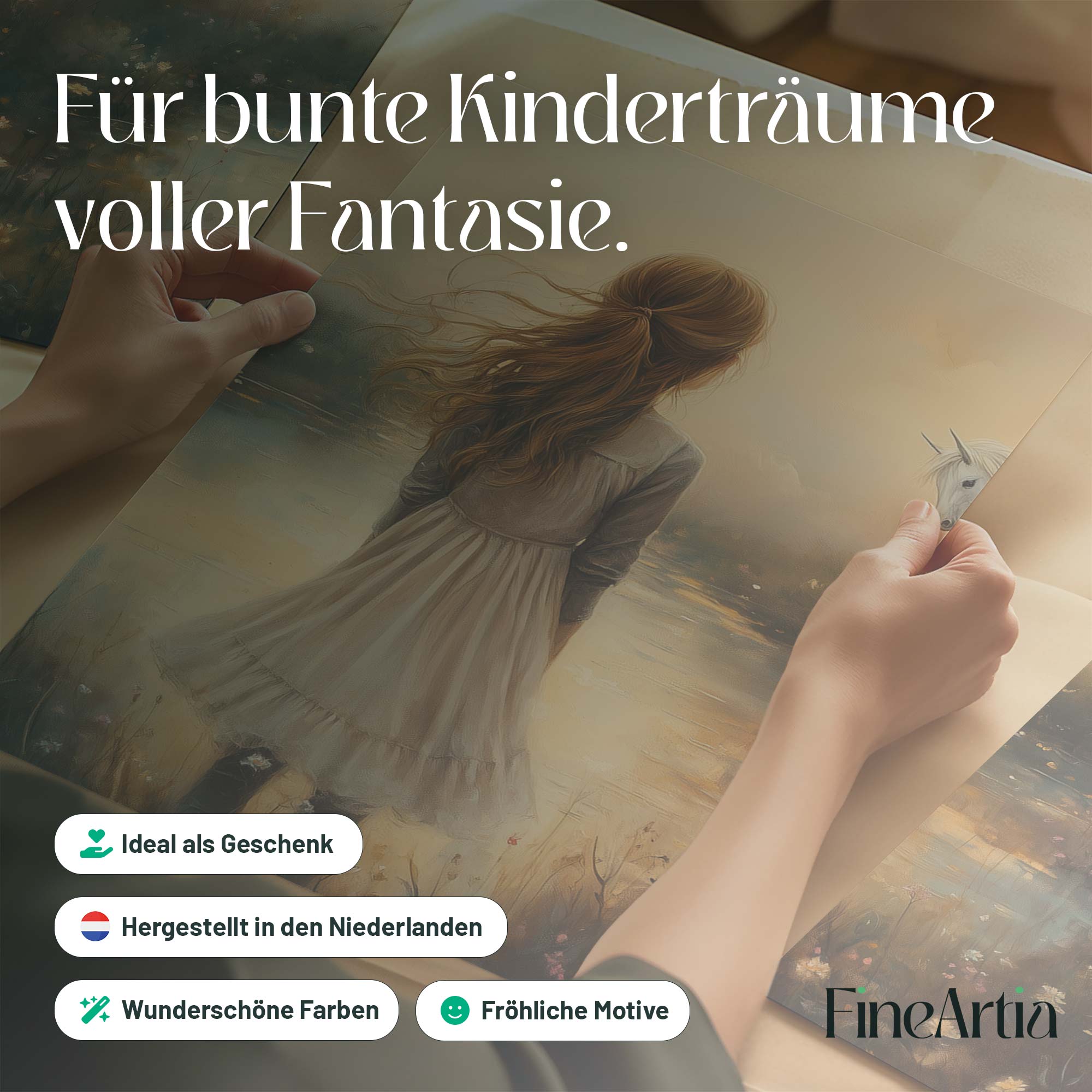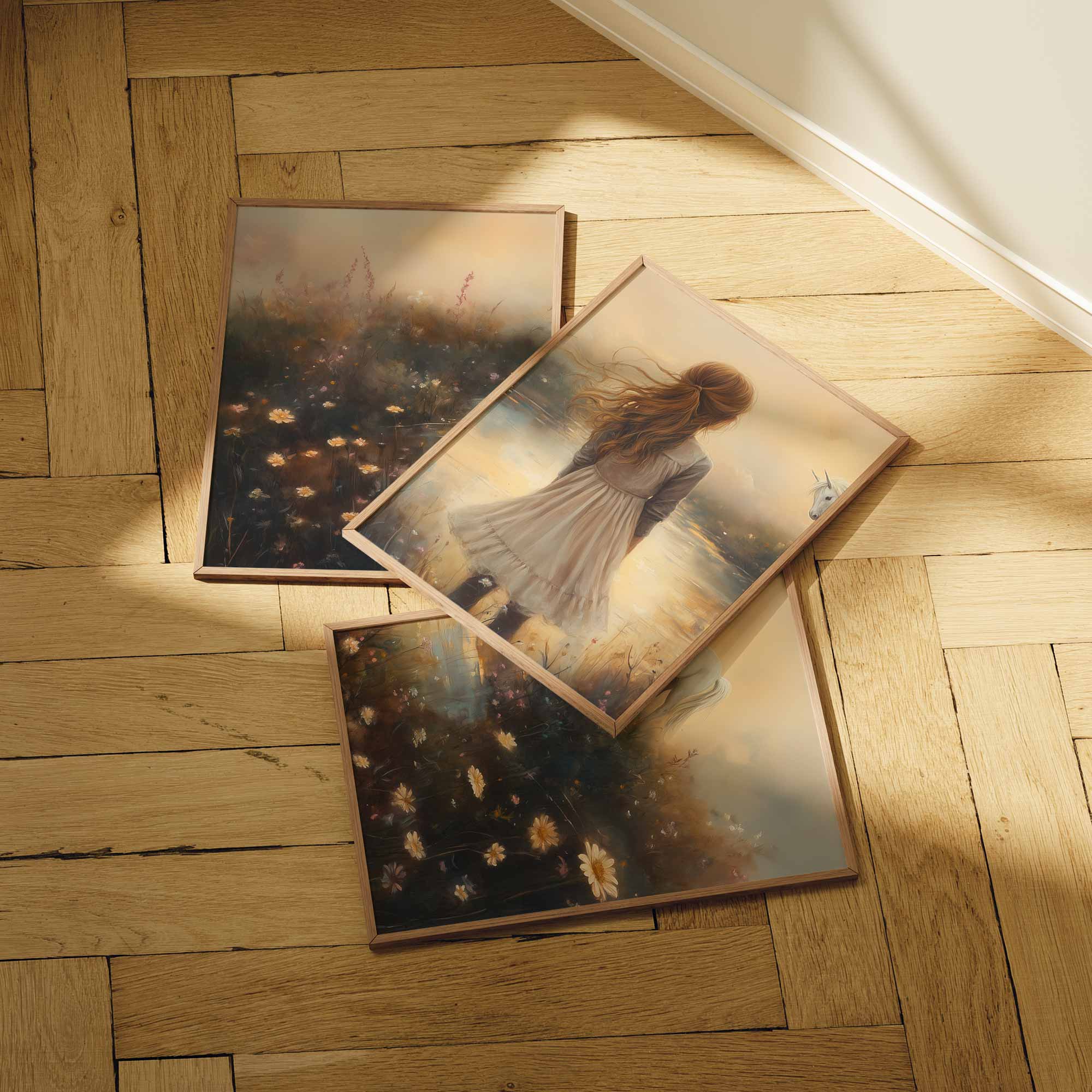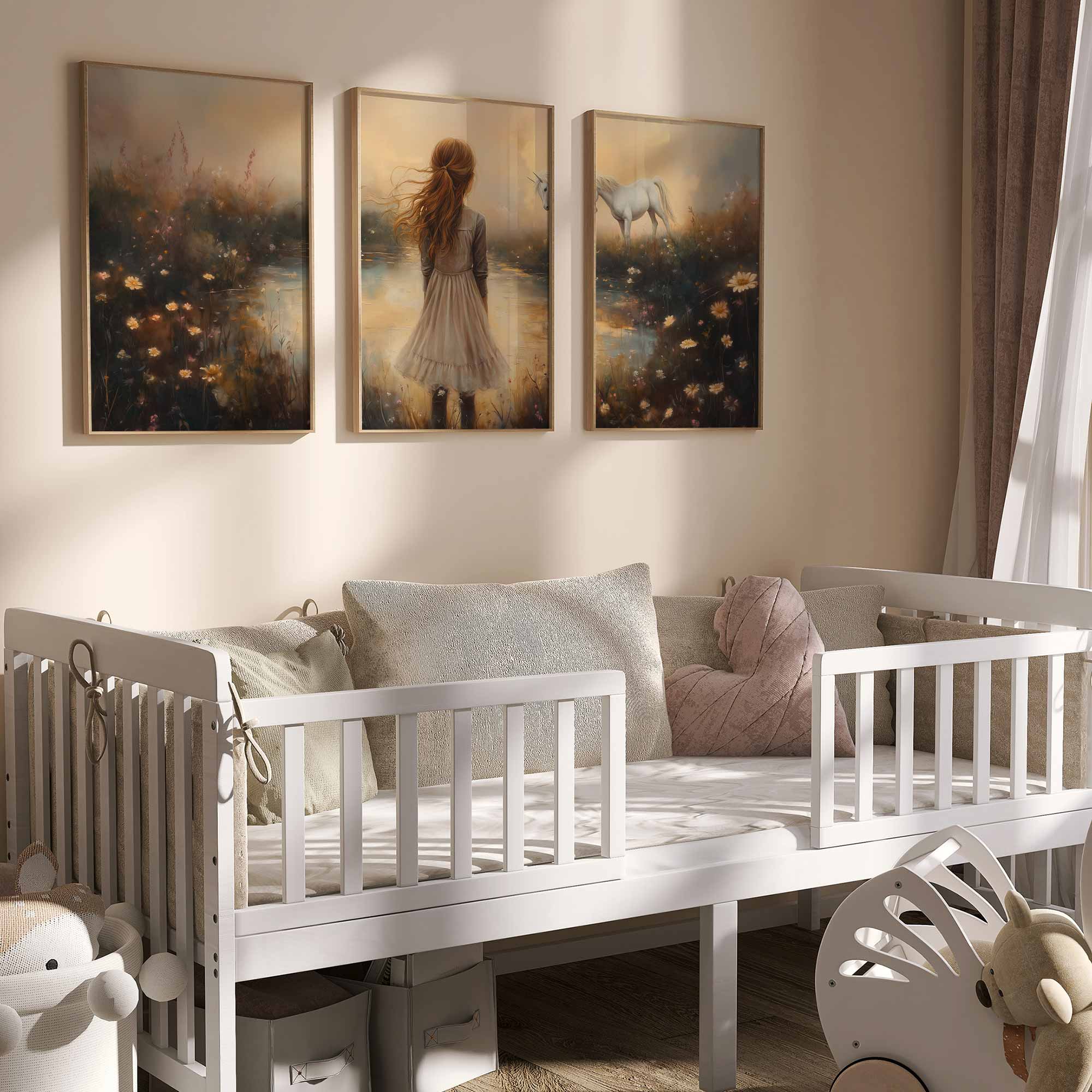 Dromerig Meisje met Eenhoorn in Pastel Veld