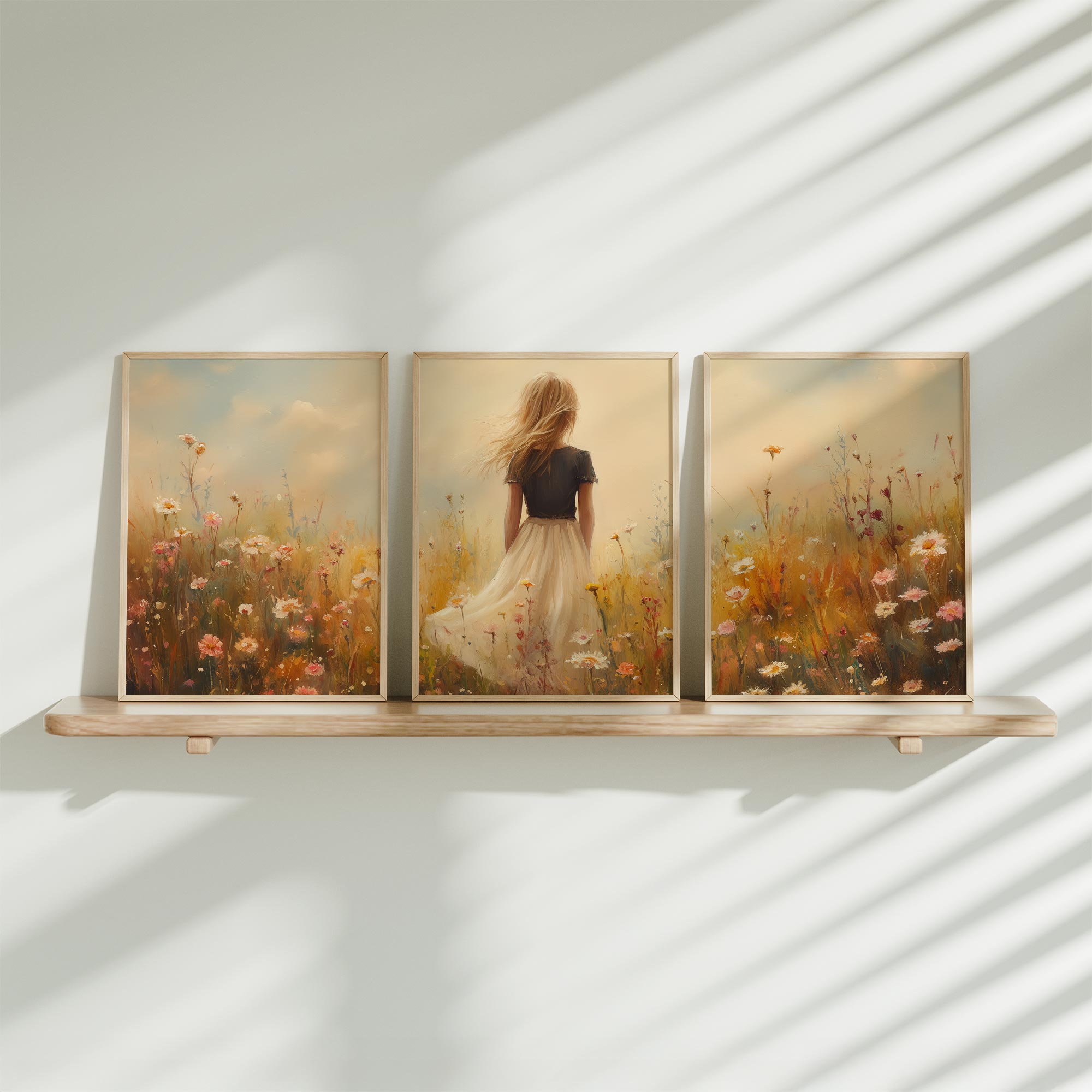 Terug naar collectie Posters Dromerig Meisje met Paard in Pastel Landschap