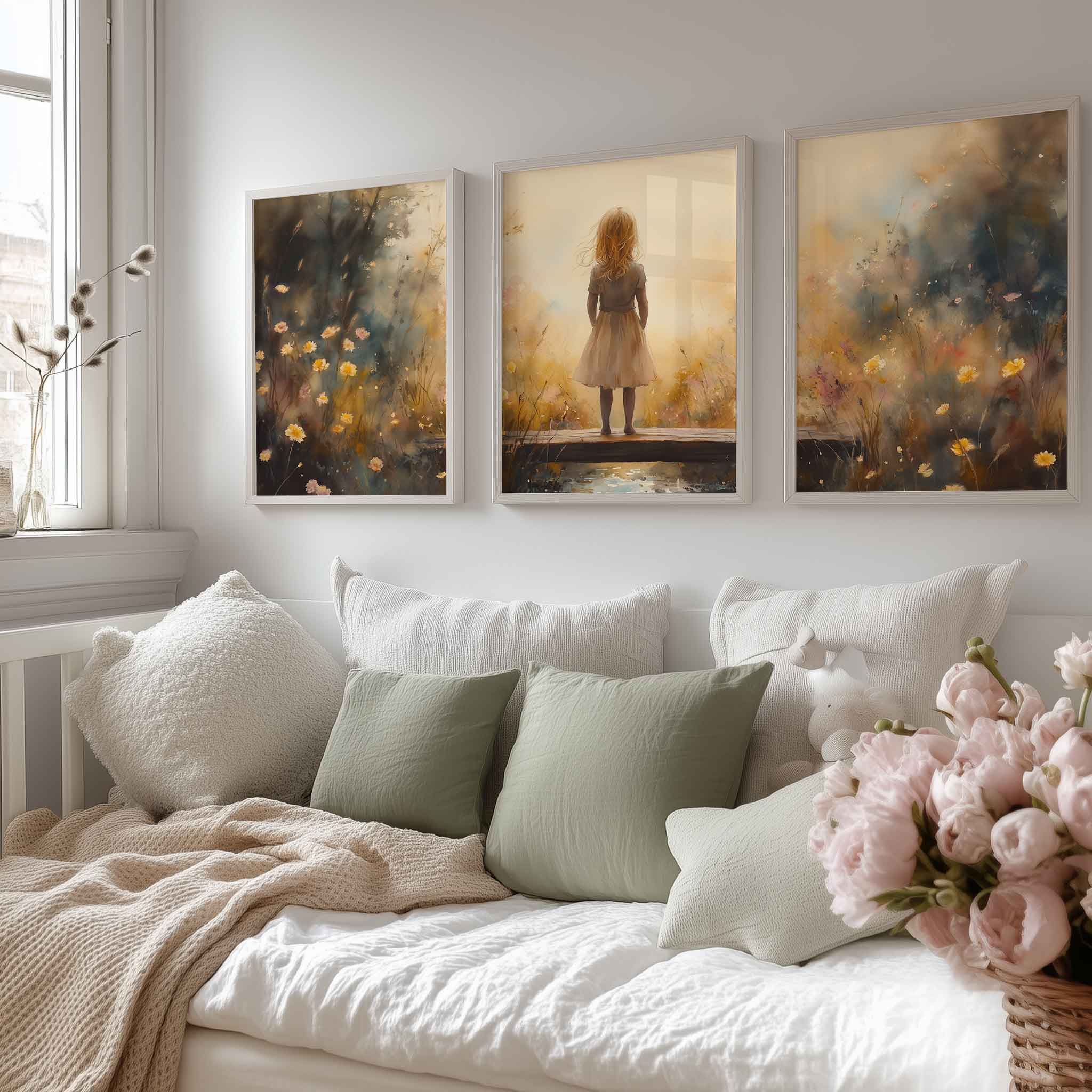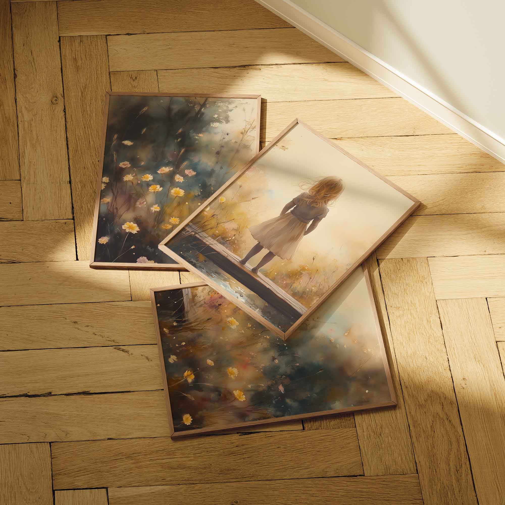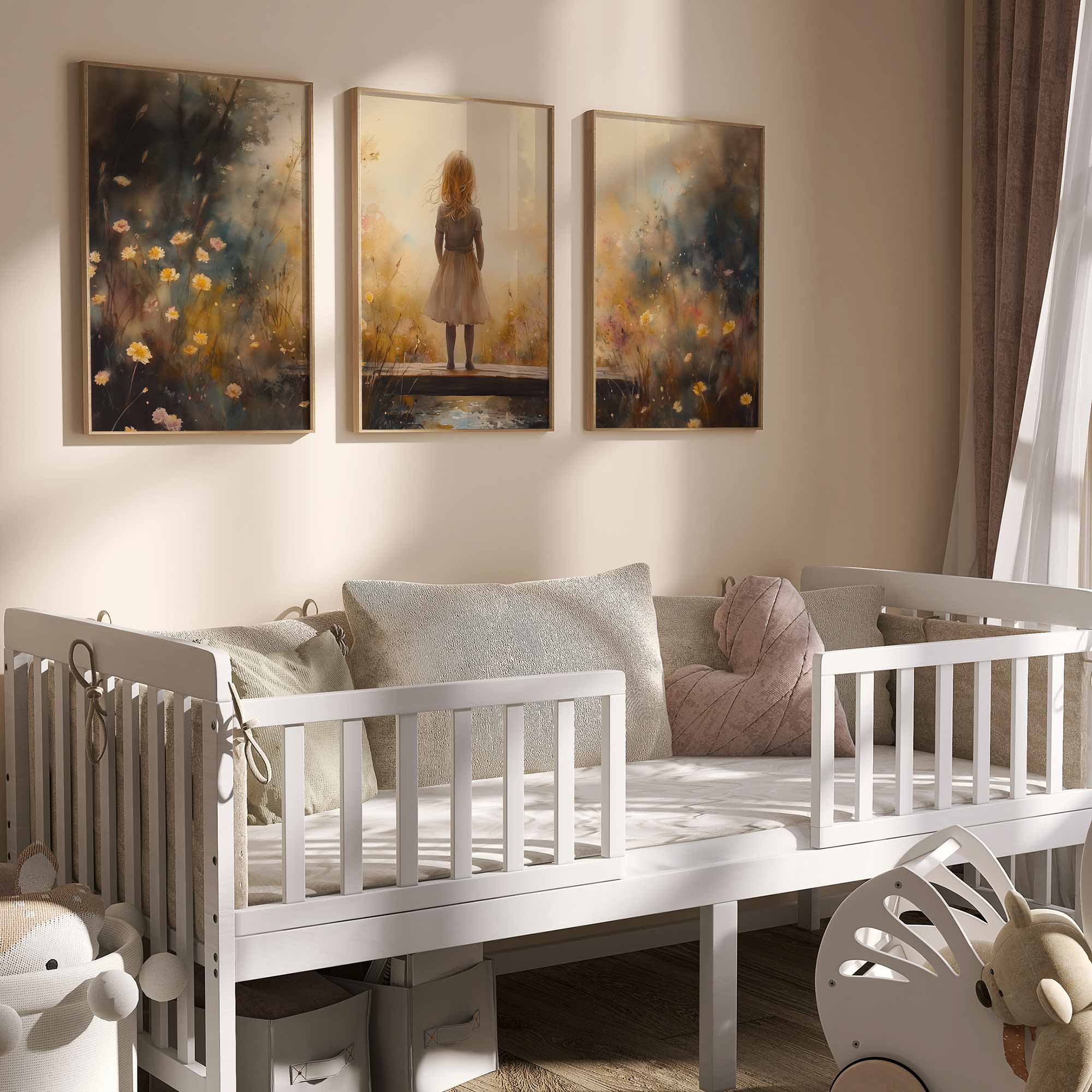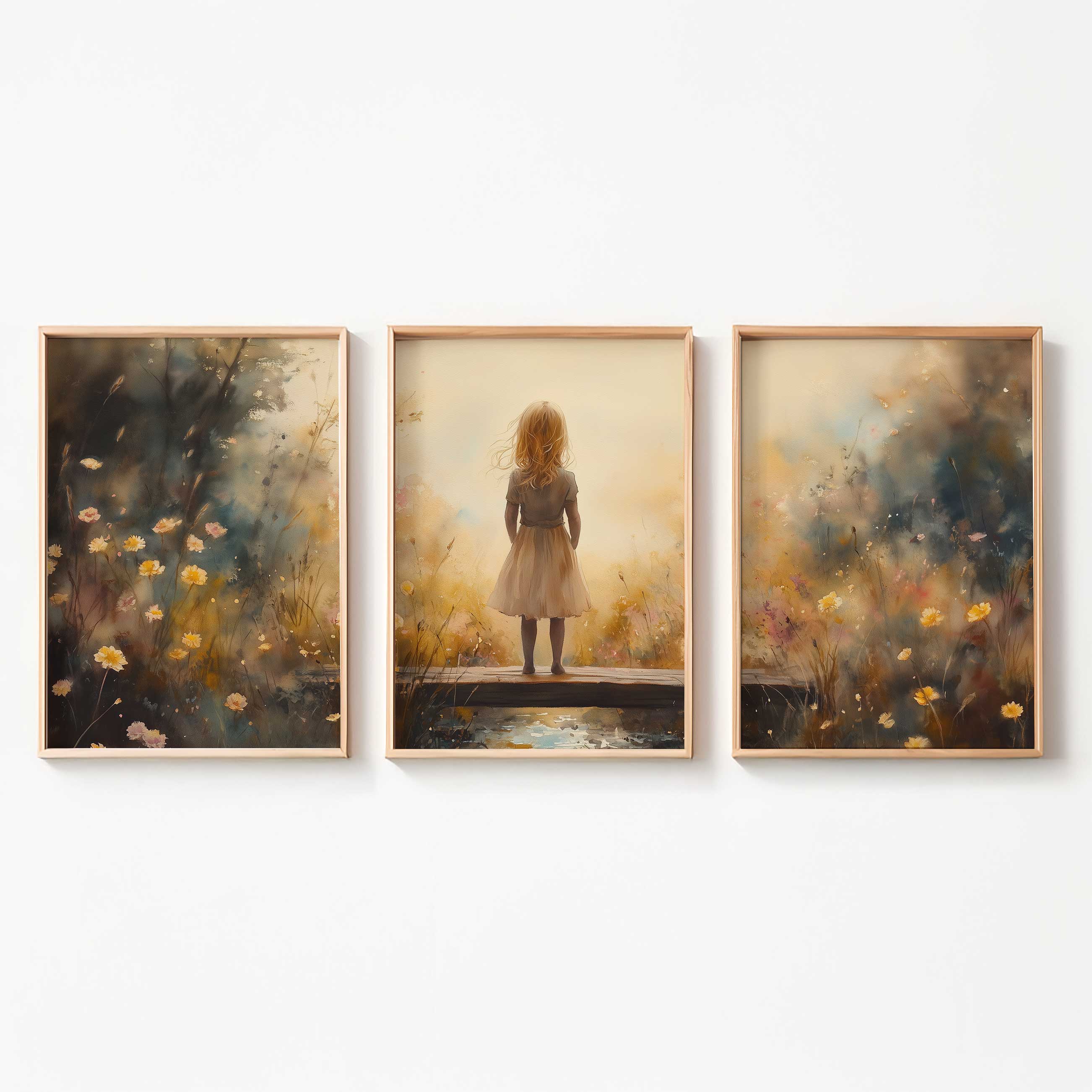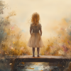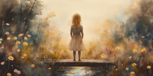 Dromerig Meisje op Bloemenbrug – Warme Kleuren