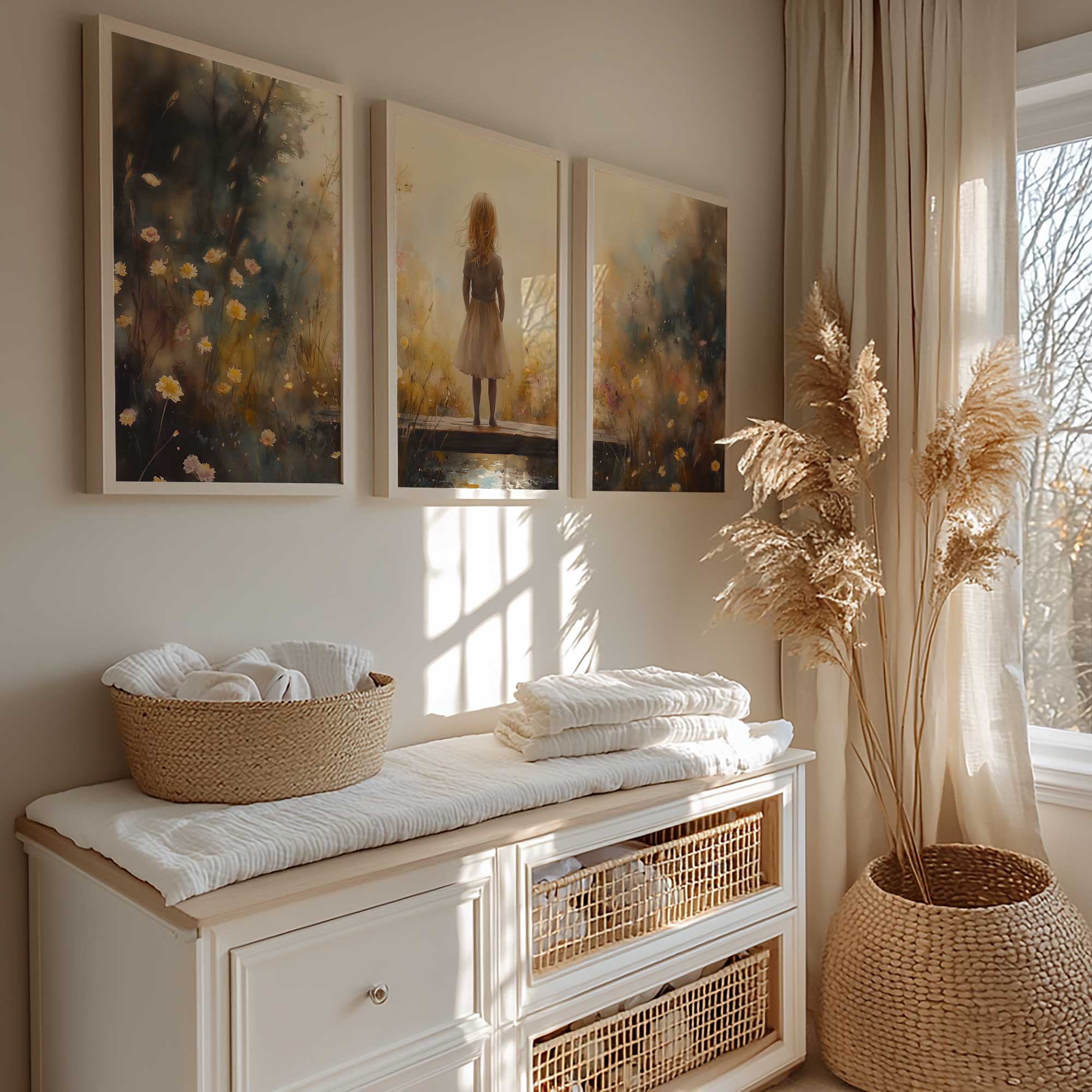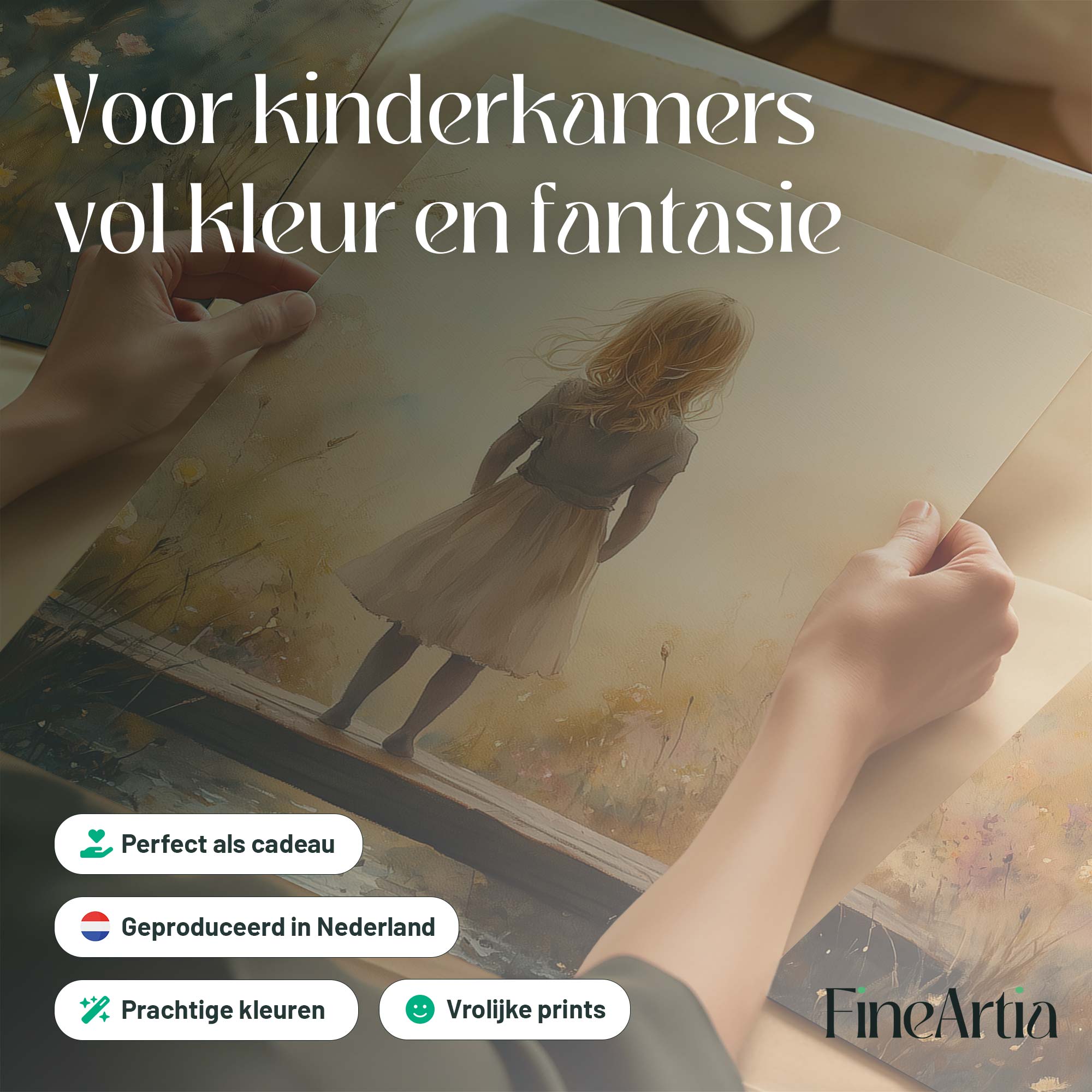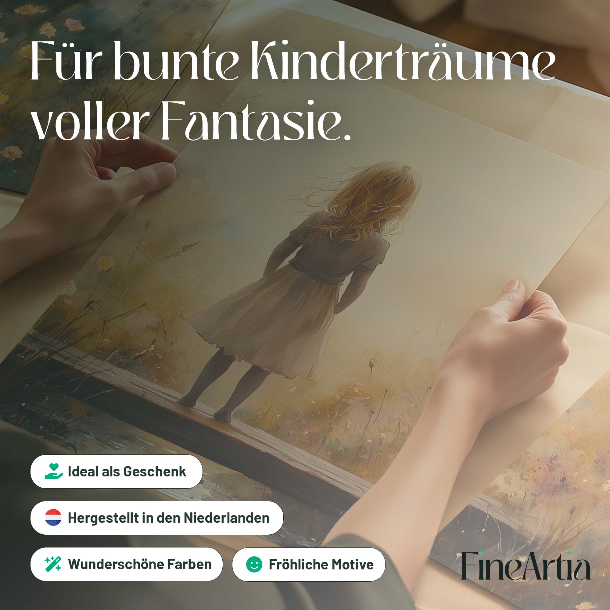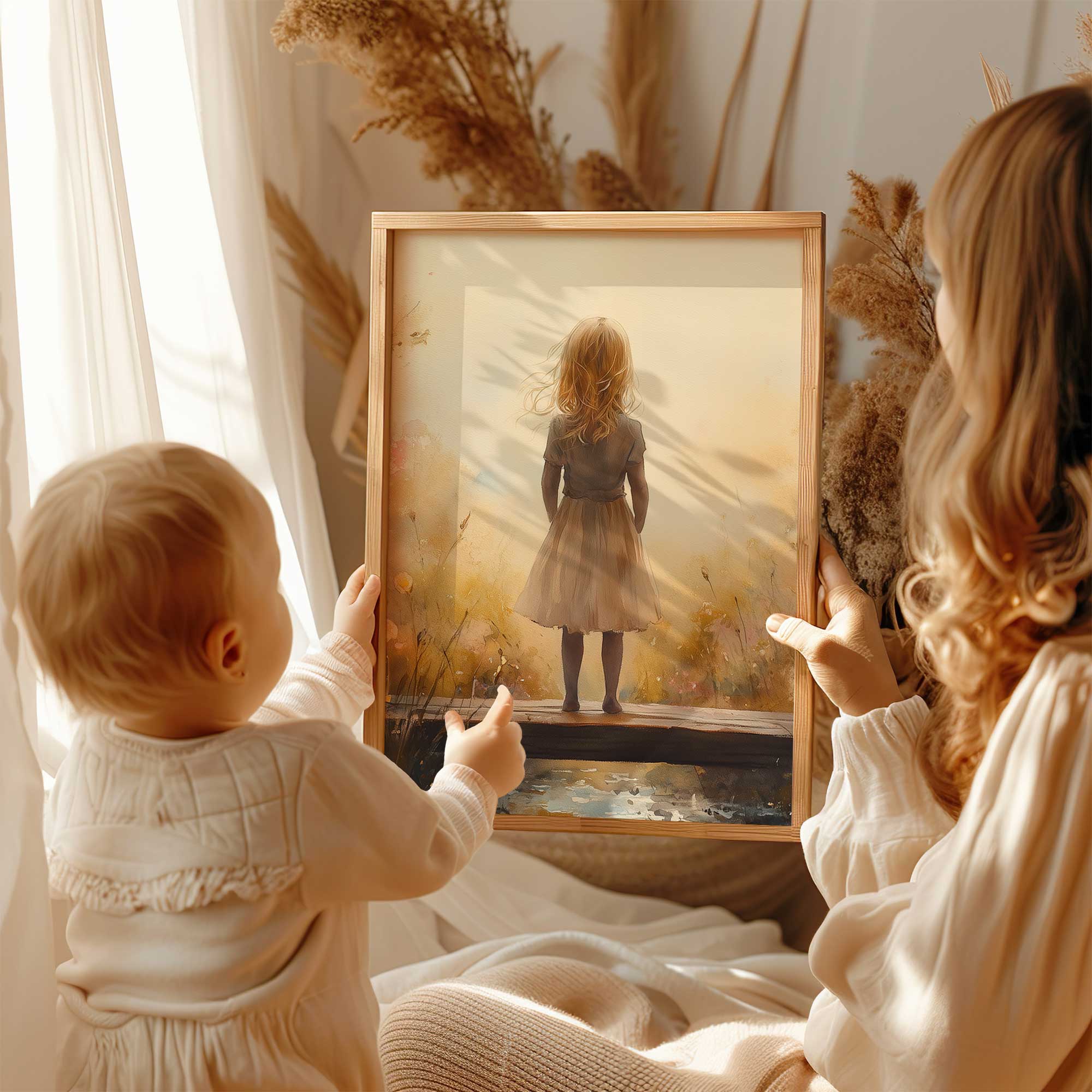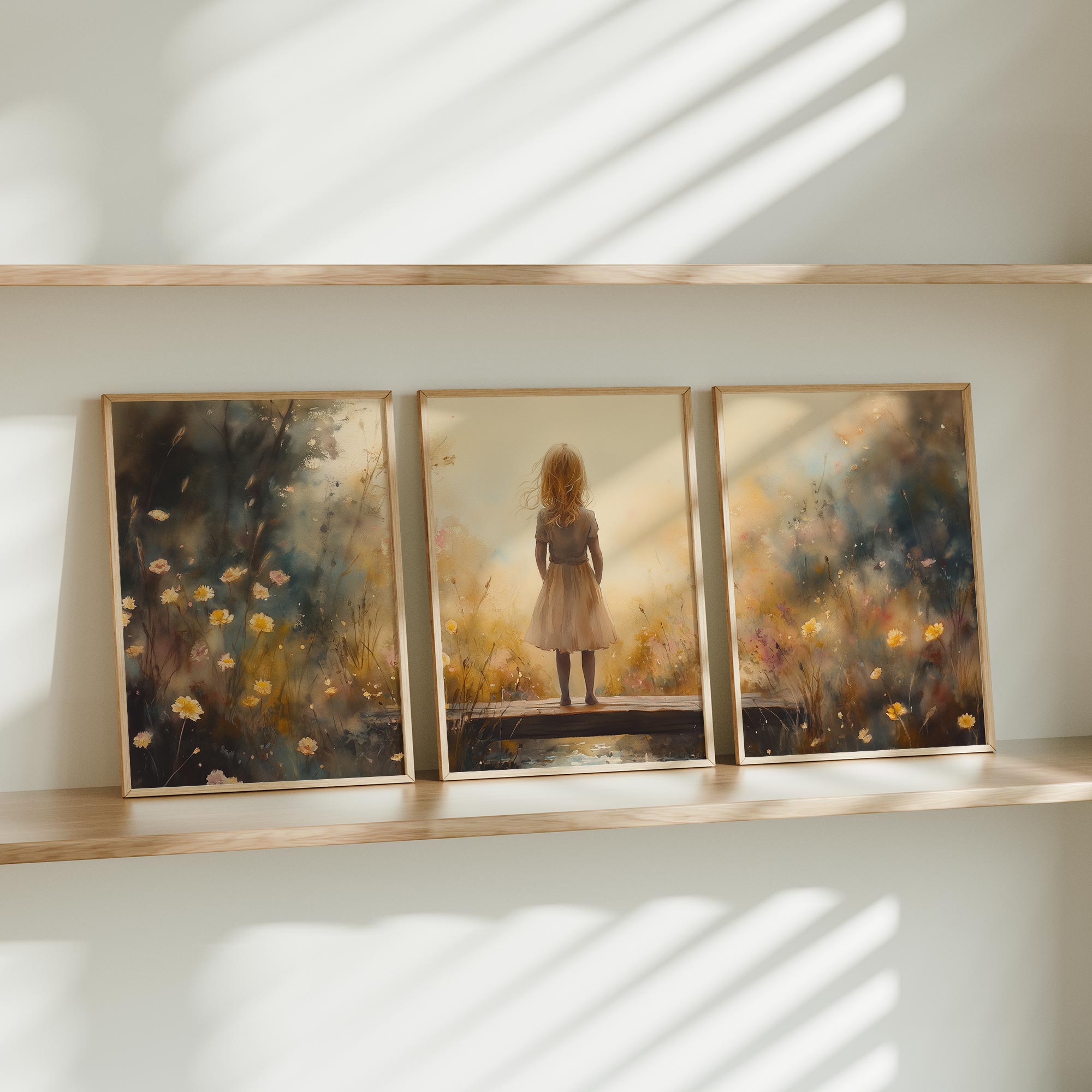 Dromerig Meisje op Bloemenbrug – Warme Kleuren