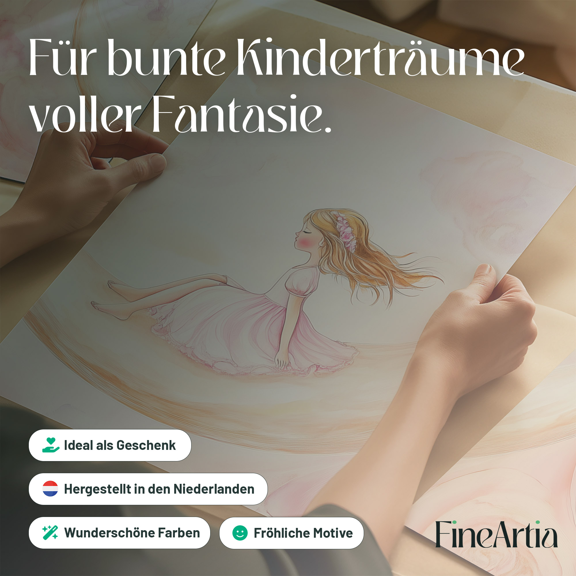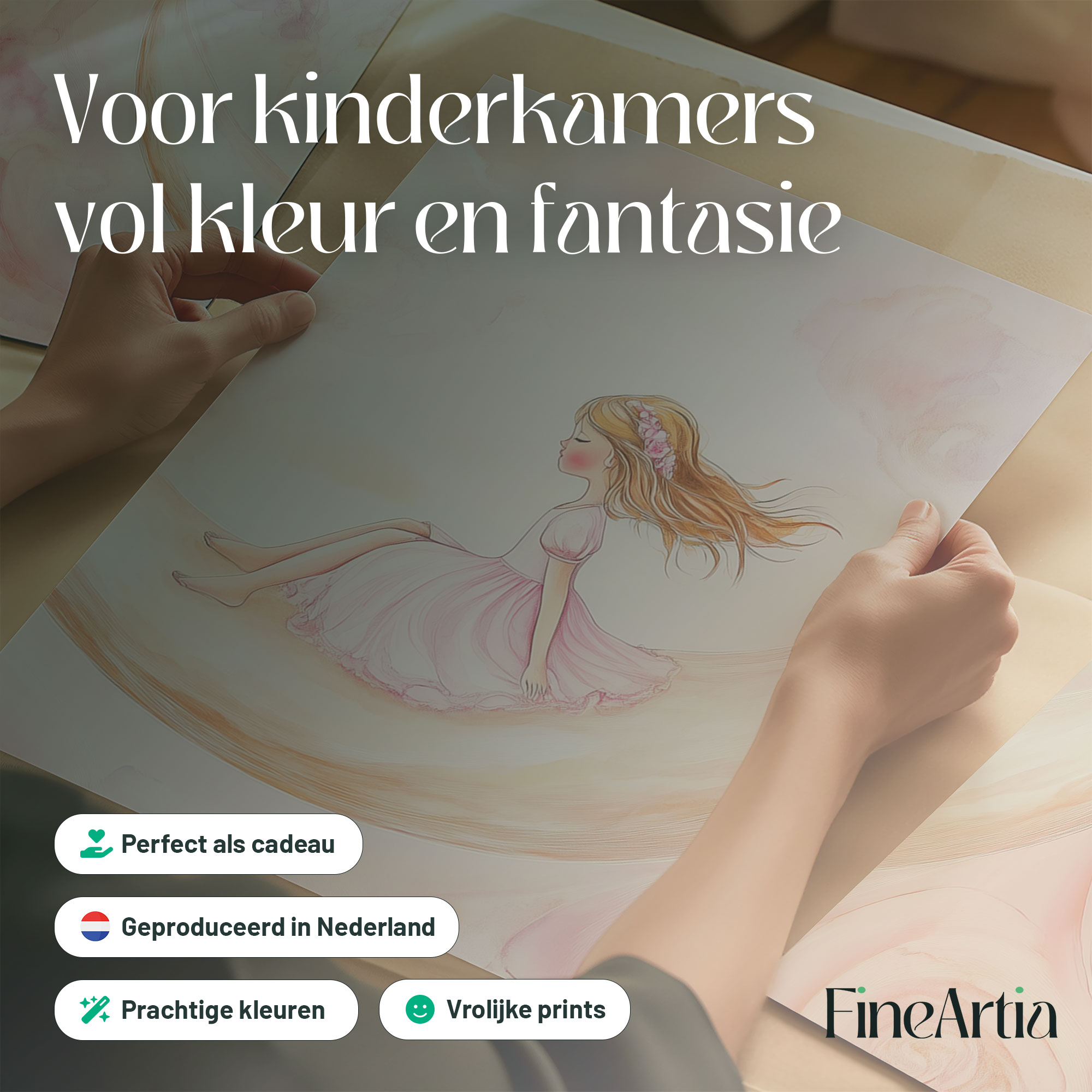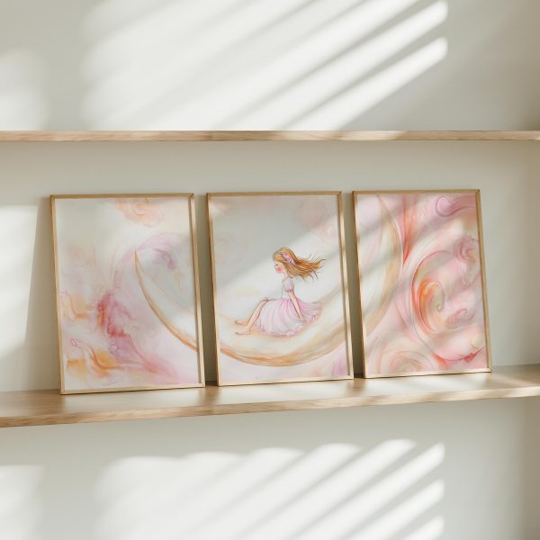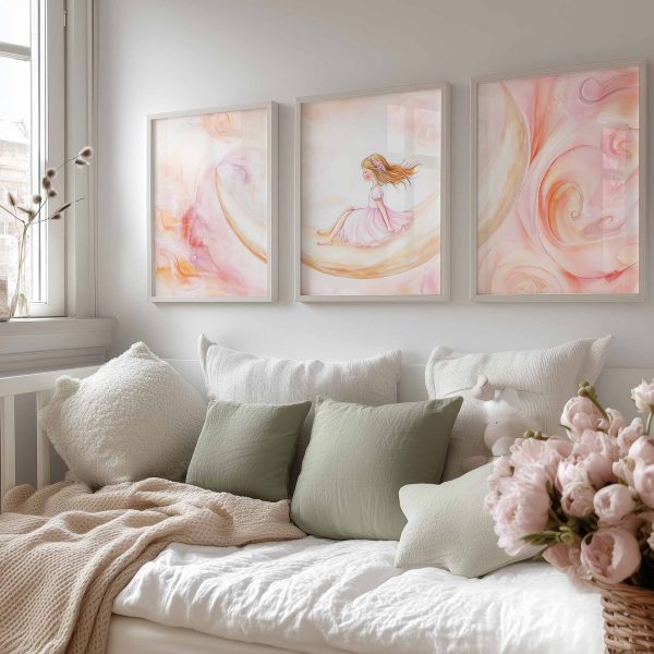 Dromerig Meisje op Maansikkel – Pastel Waterverf Sfeer