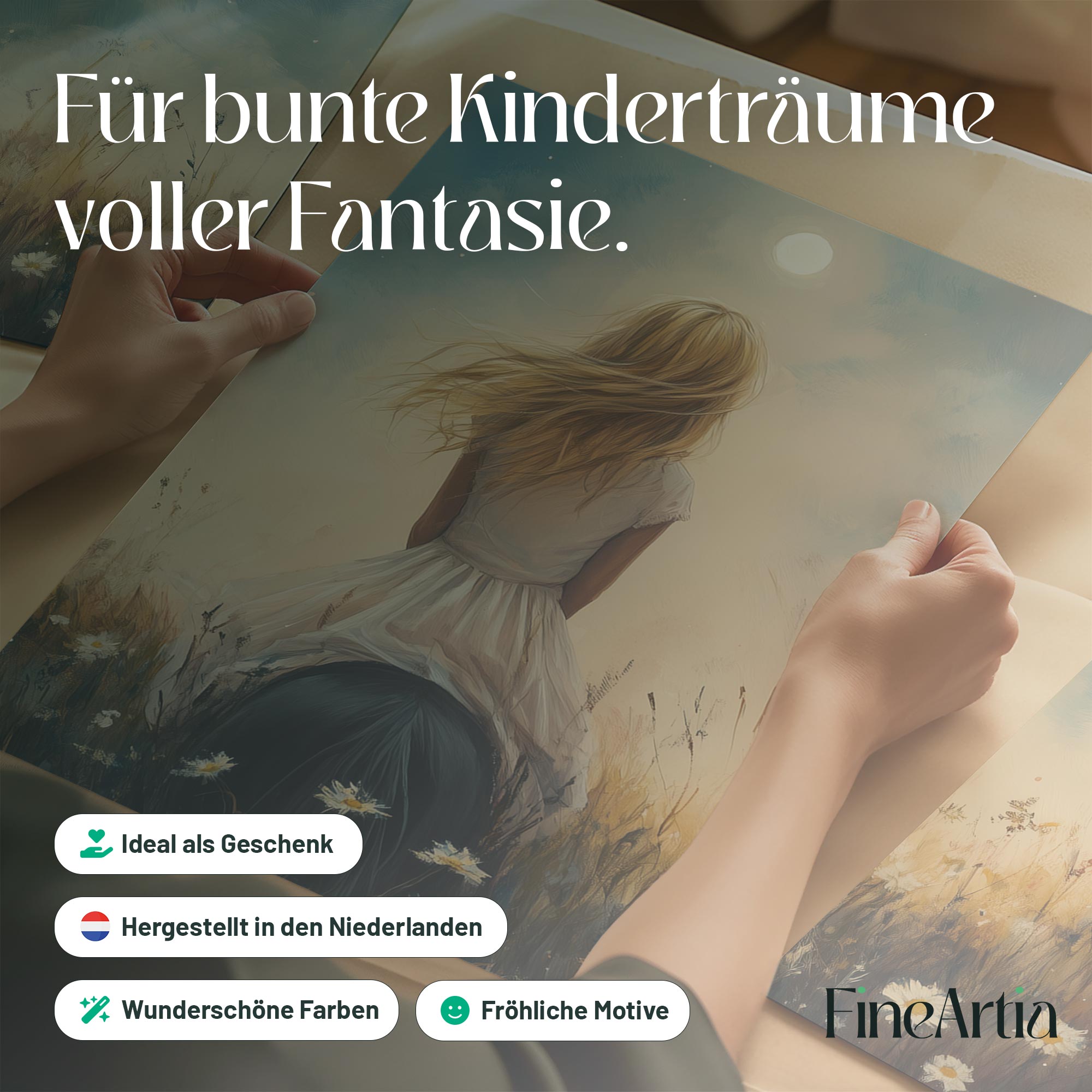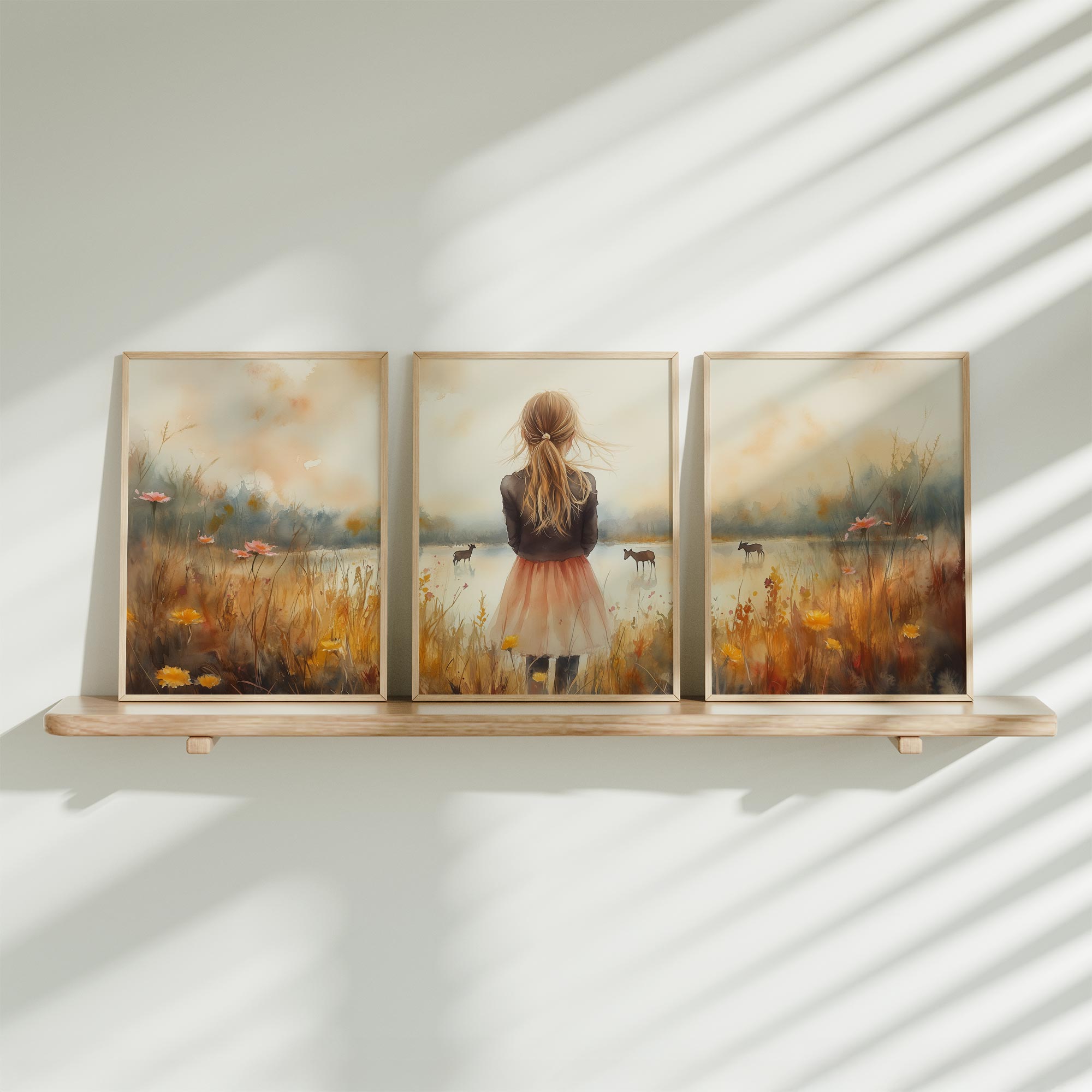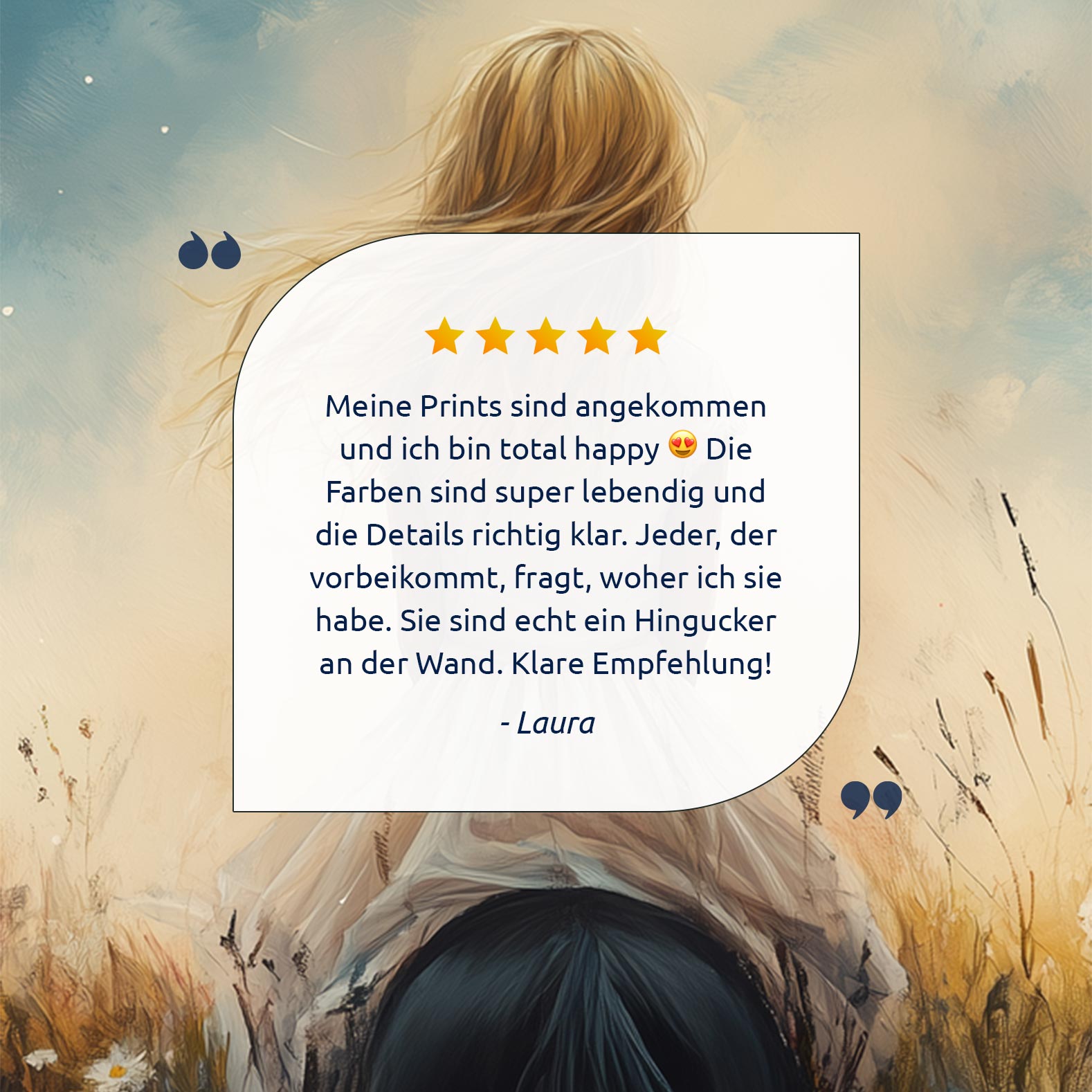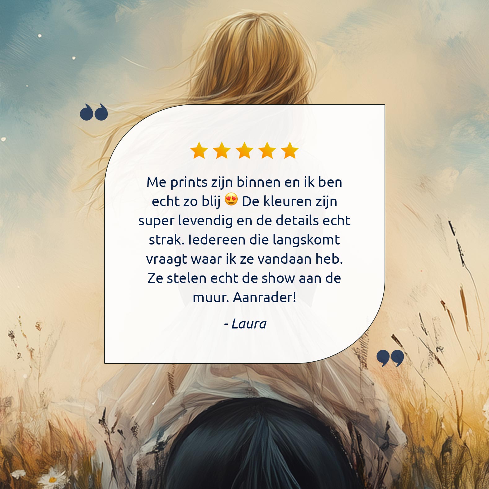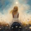 Terug naar collectie Posters Dromerig Meisje op Paard tussen Bloemen en Maan