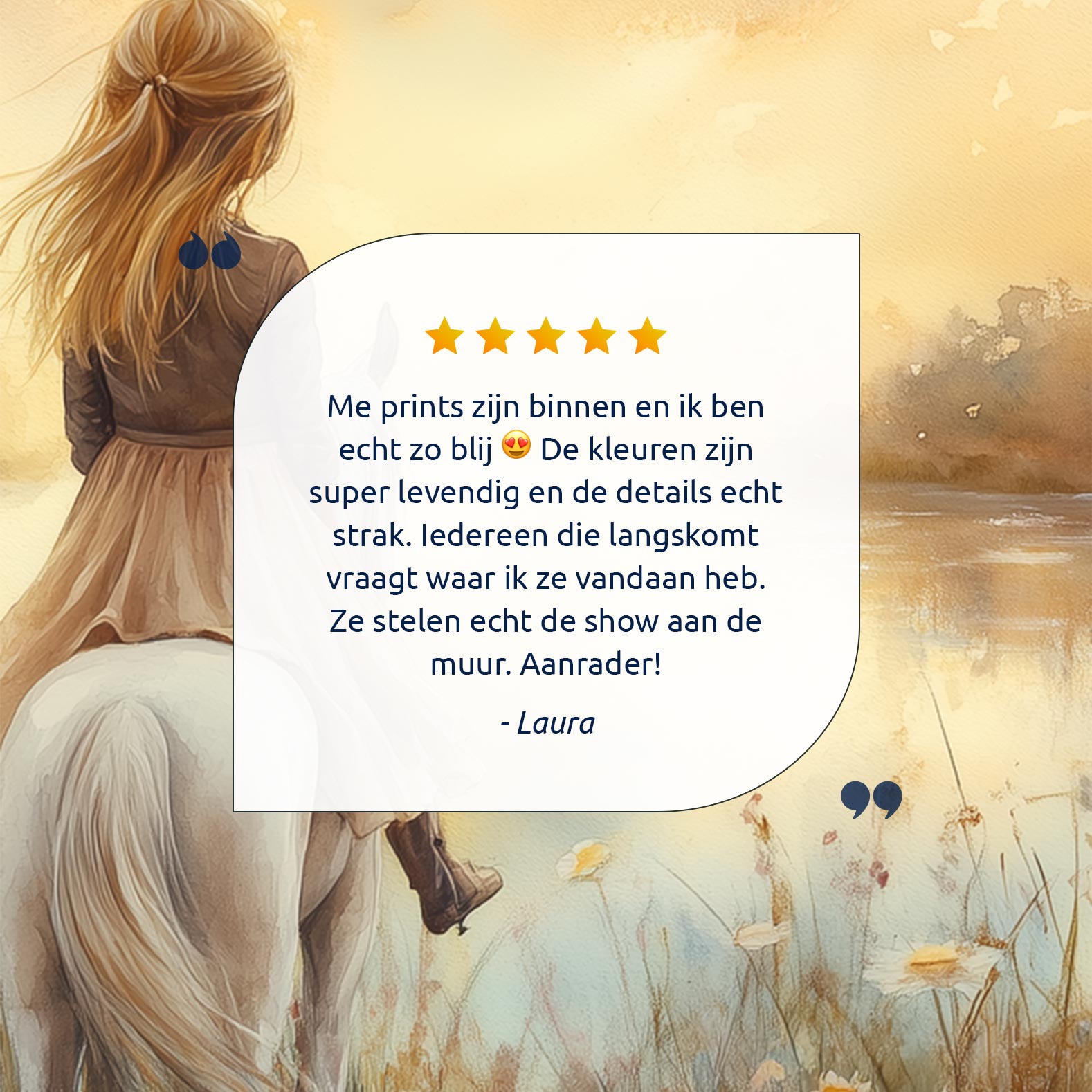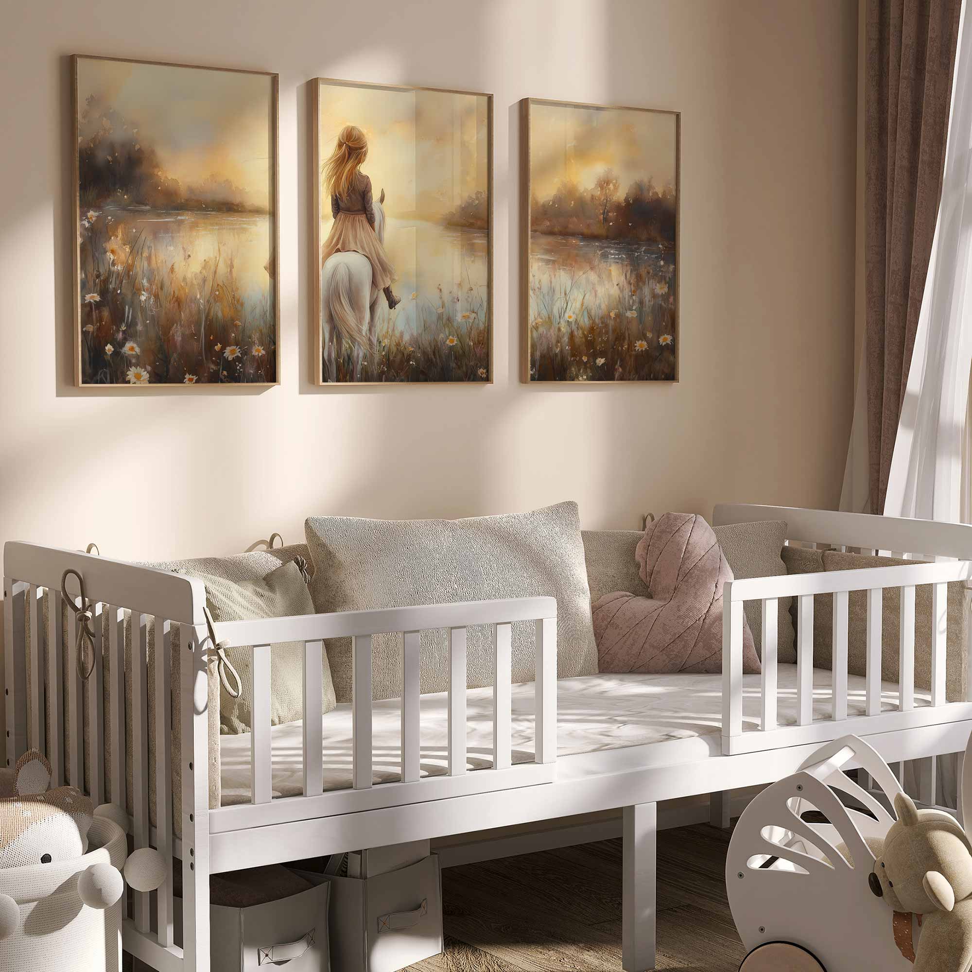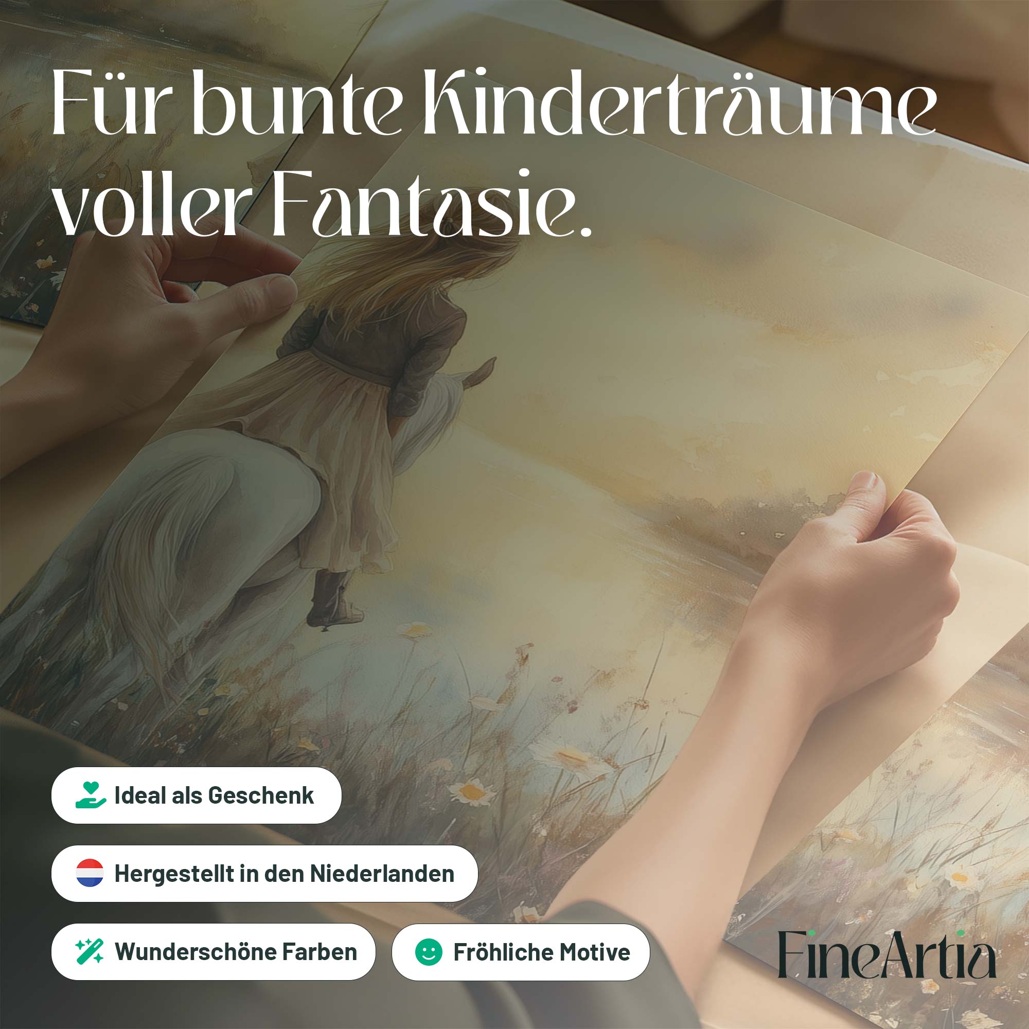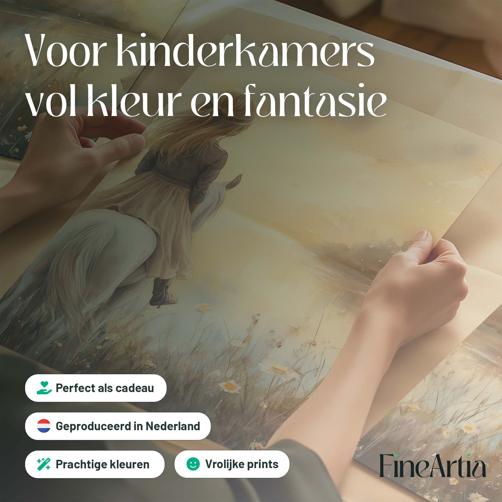 Dromerig Meisje op Wit Paard in Bloemenveld