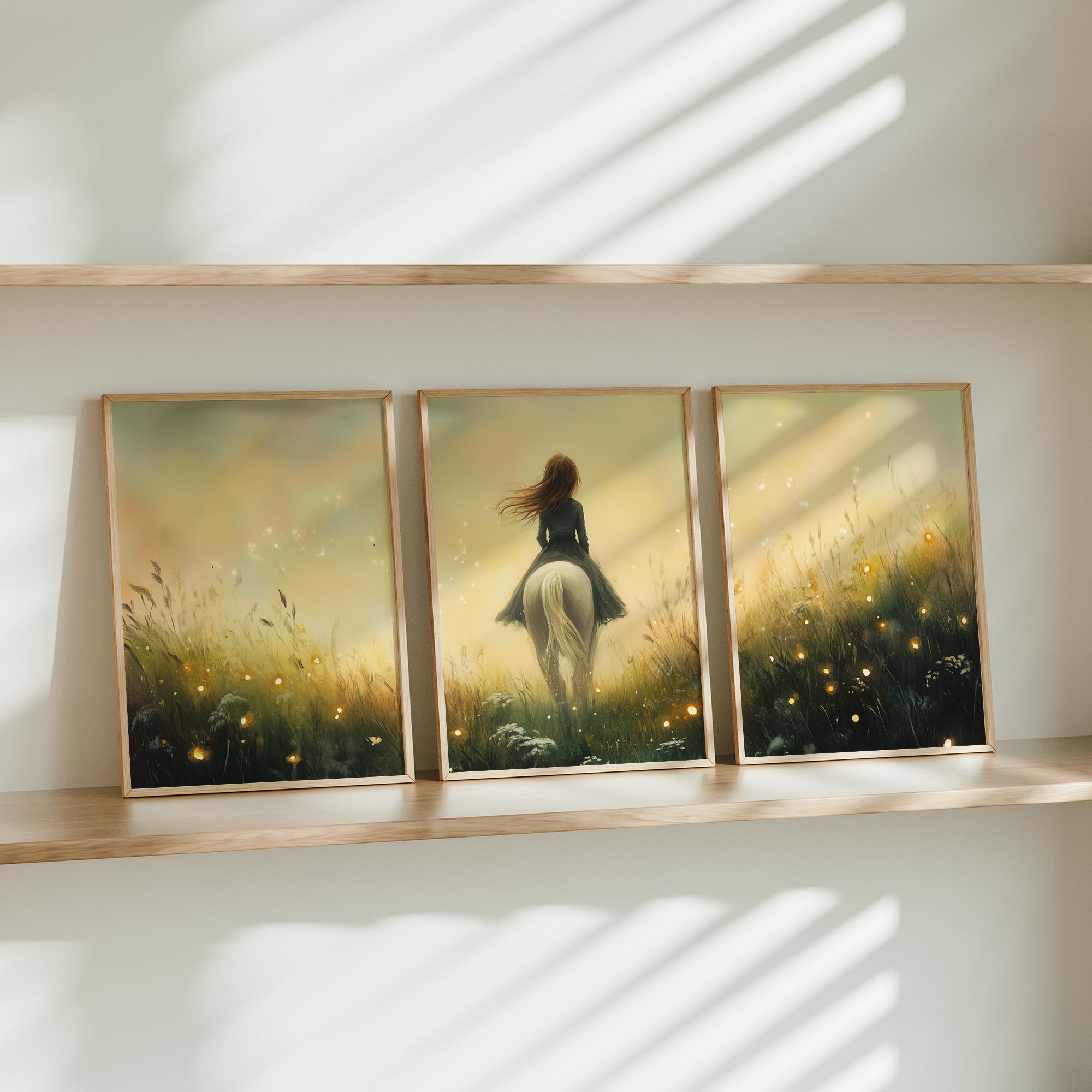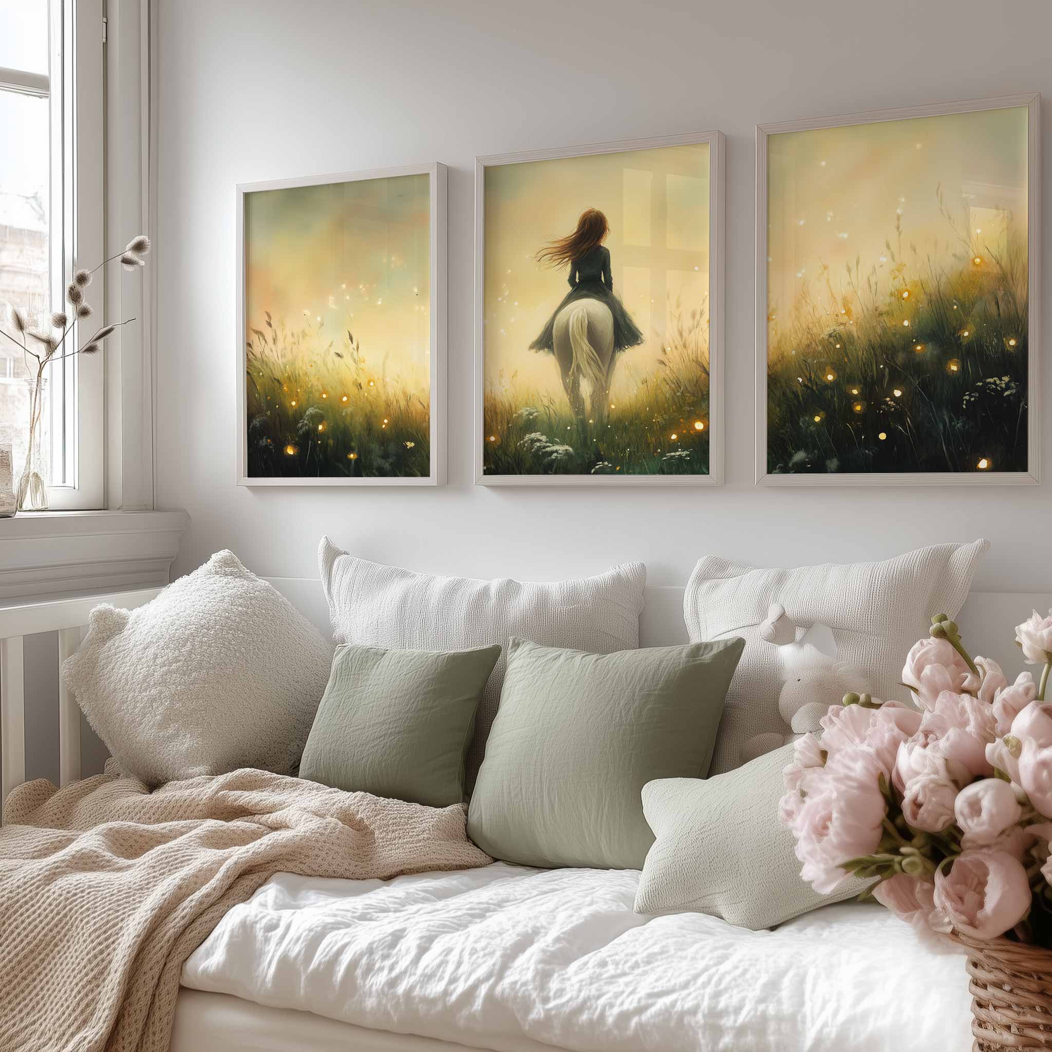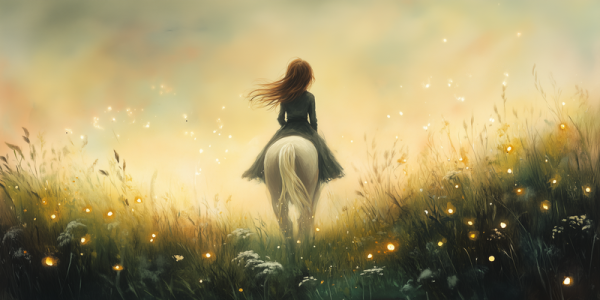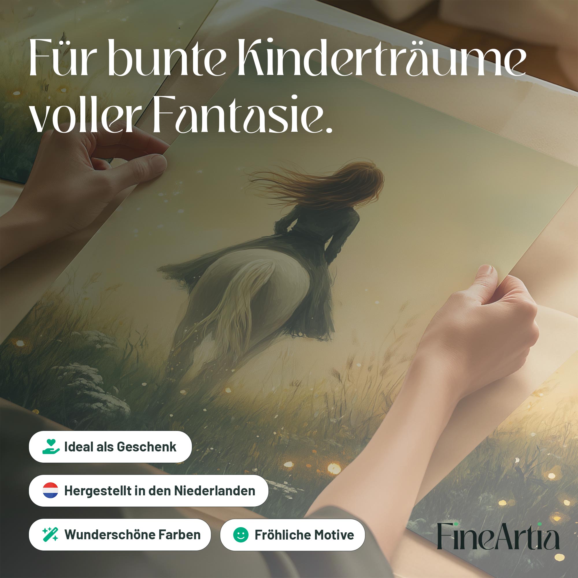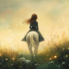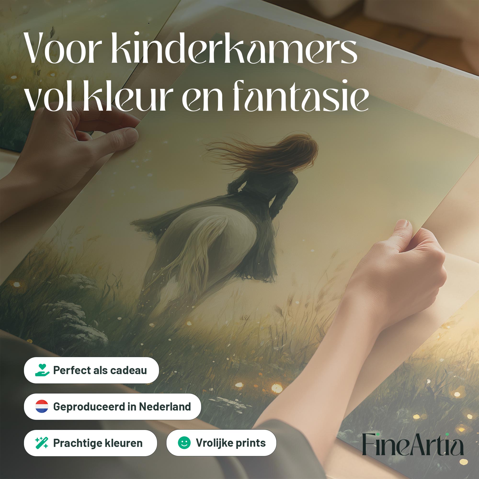 Dromerig Meisje op Witte Paard in Bloemenveld