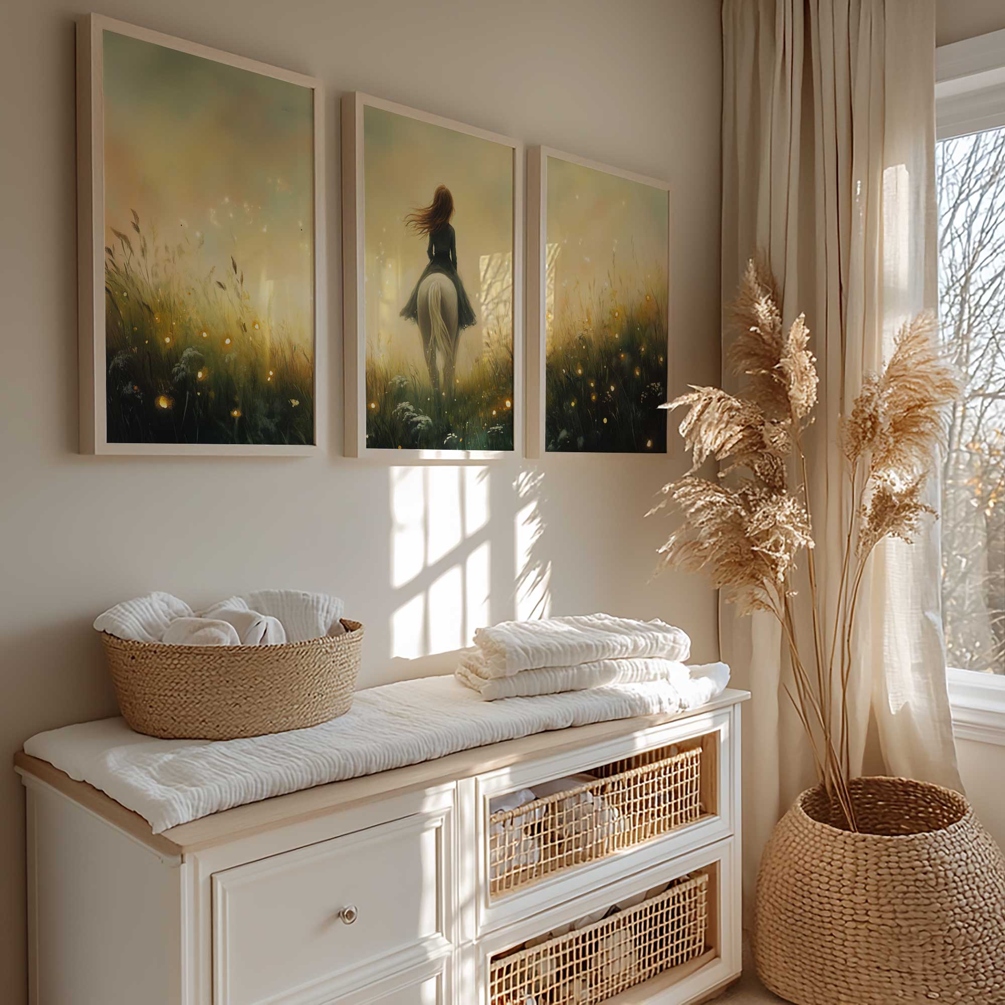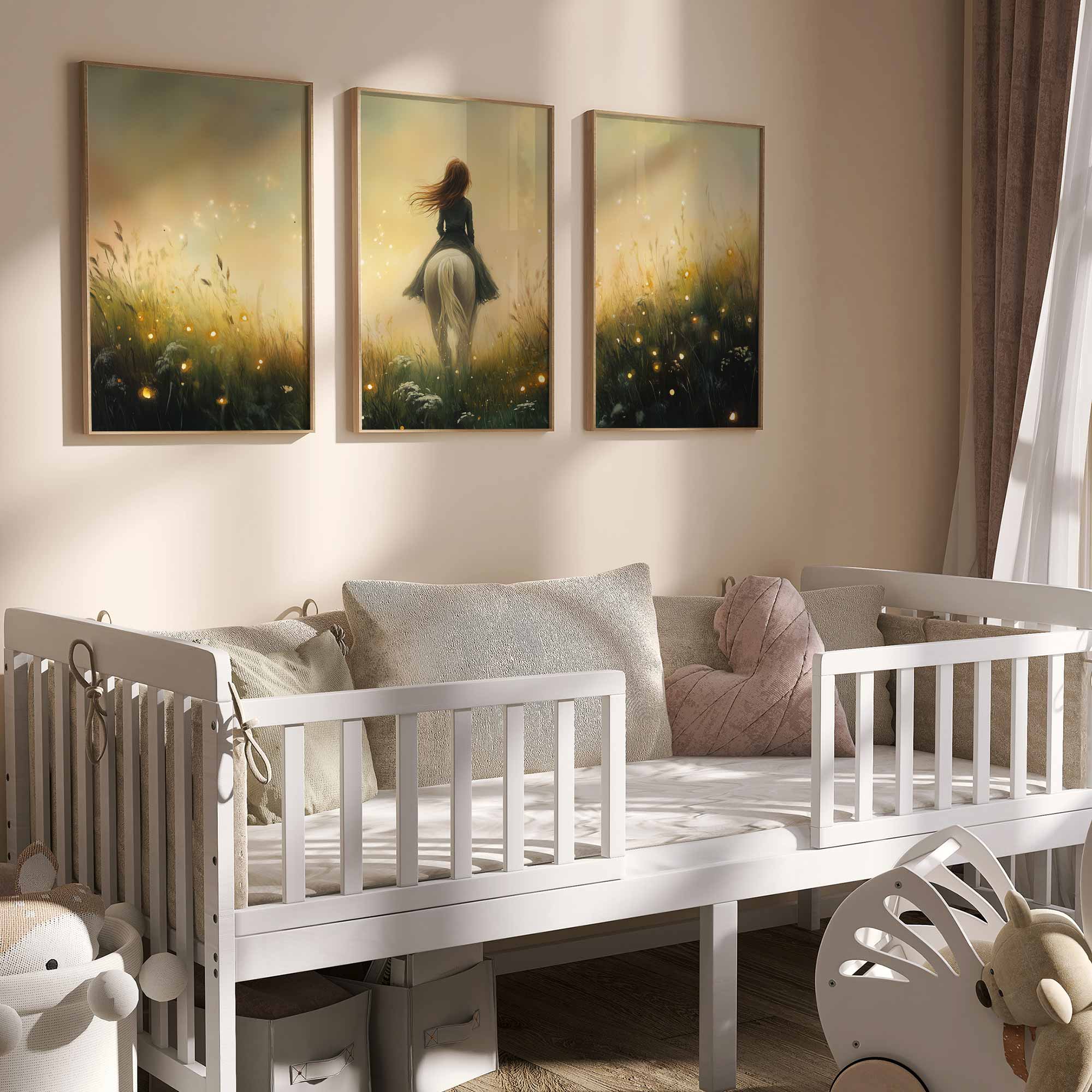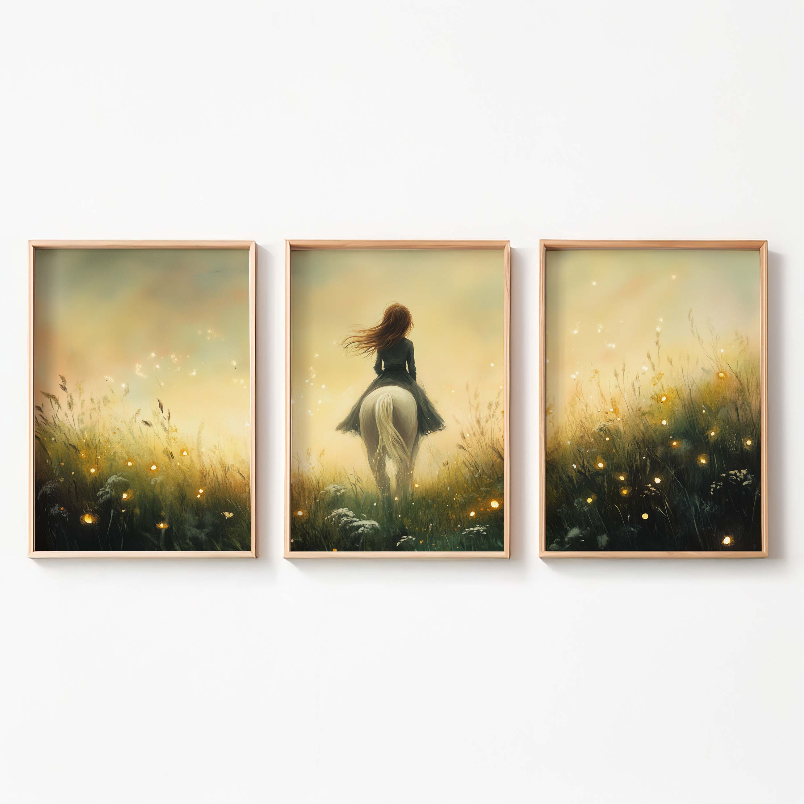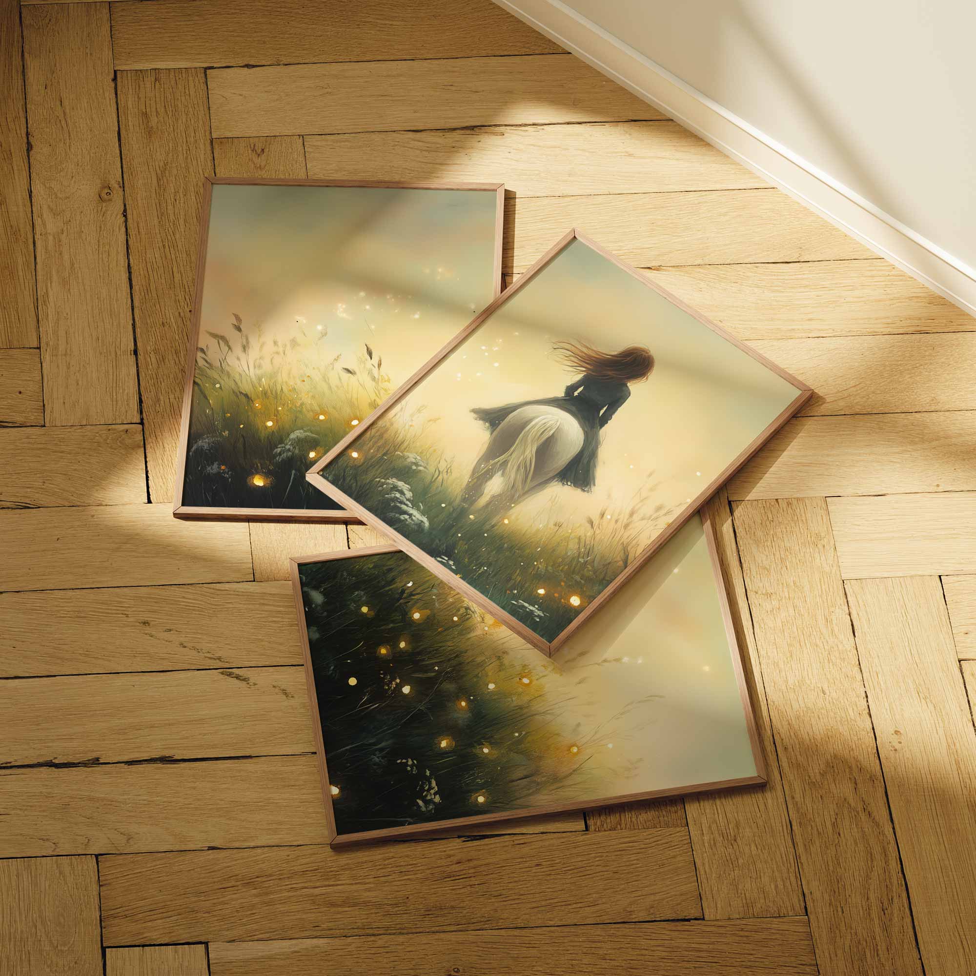 Dromerig Meisje op Witte Paard in Bloemenveld