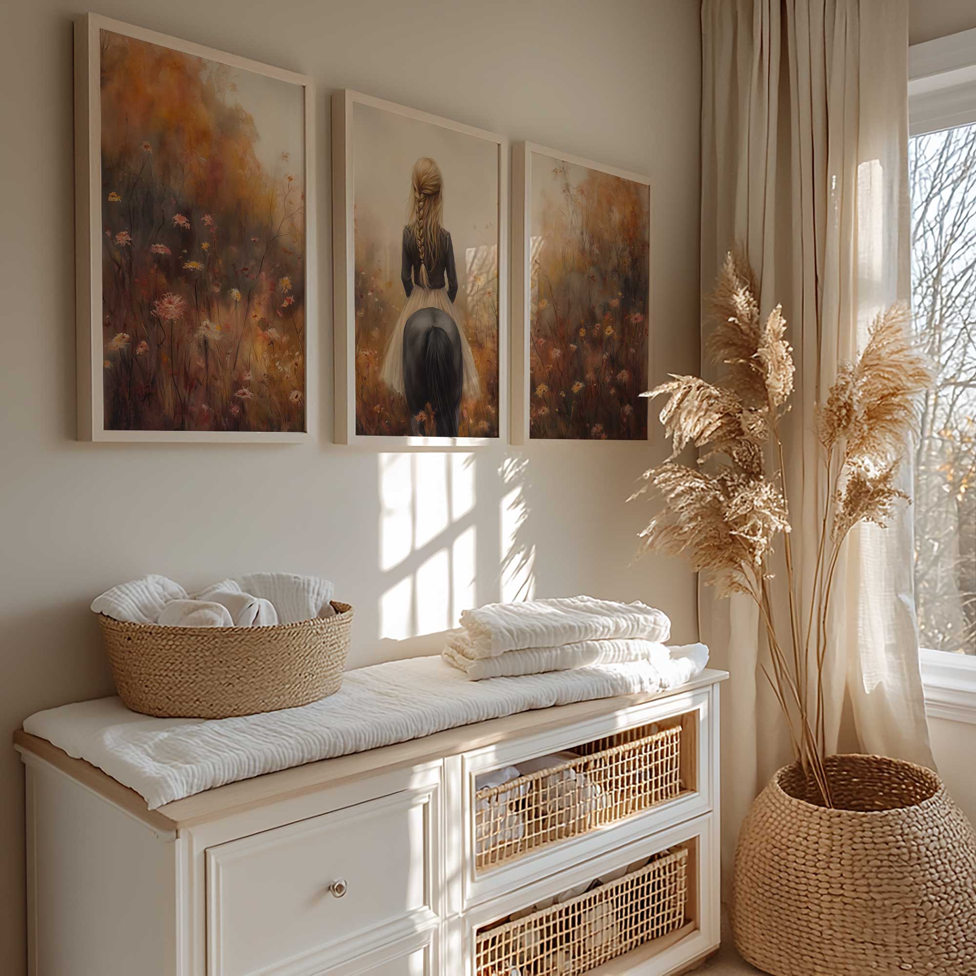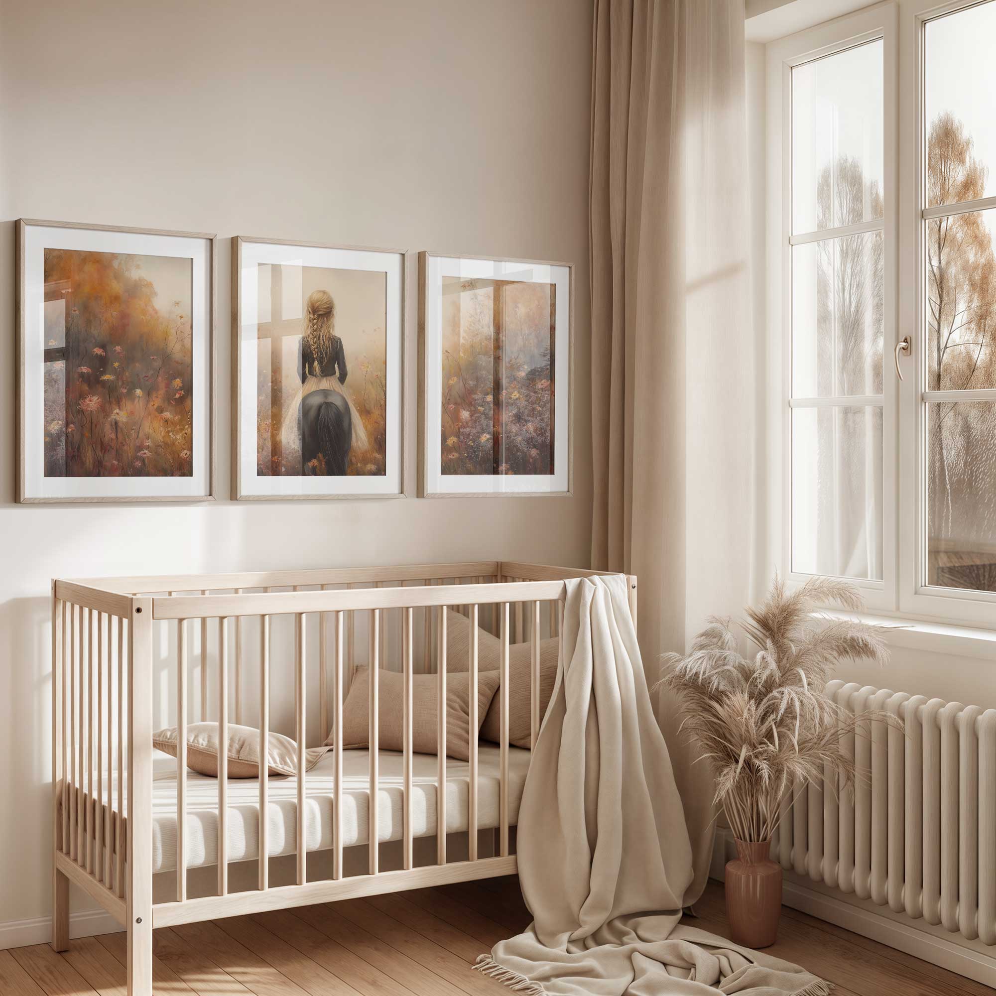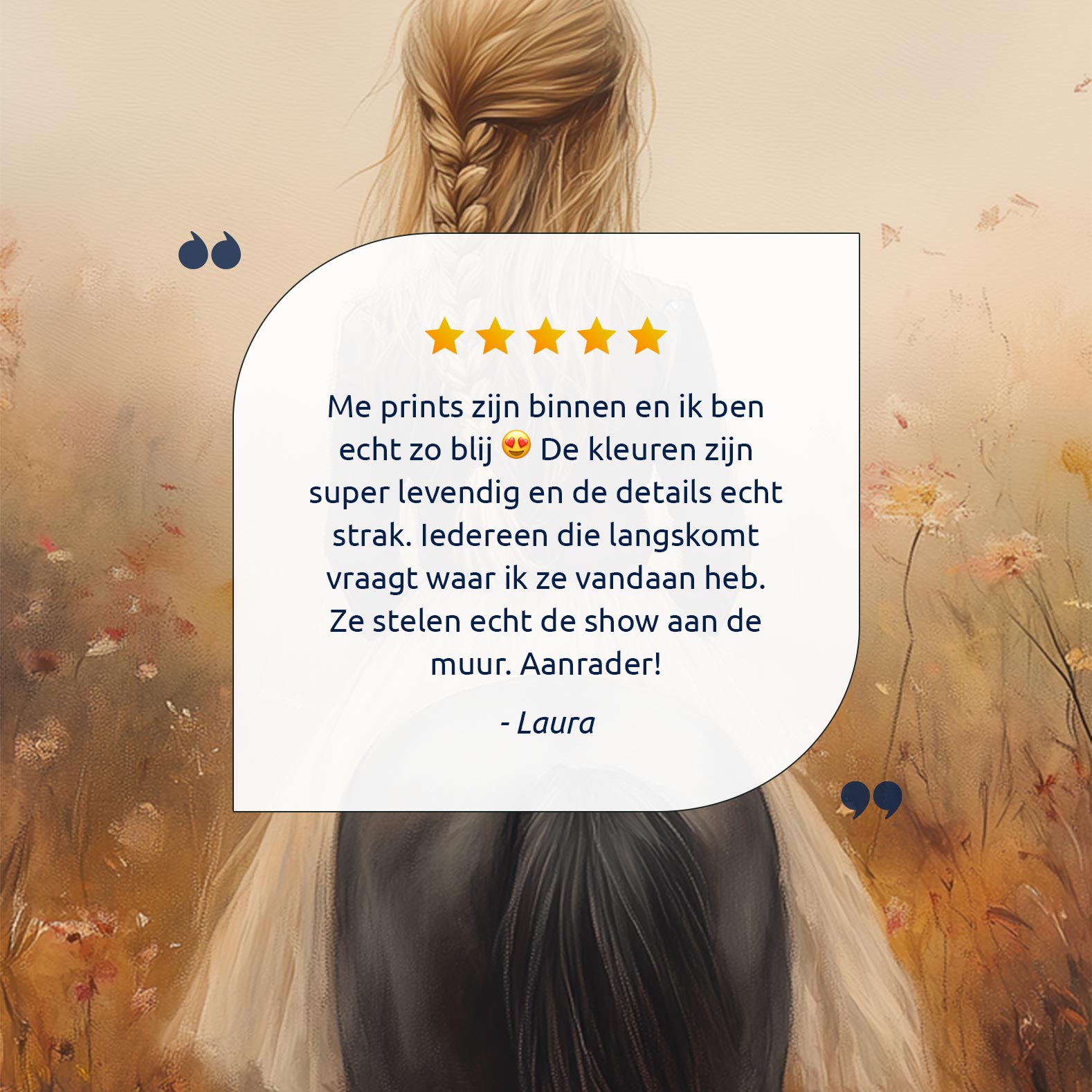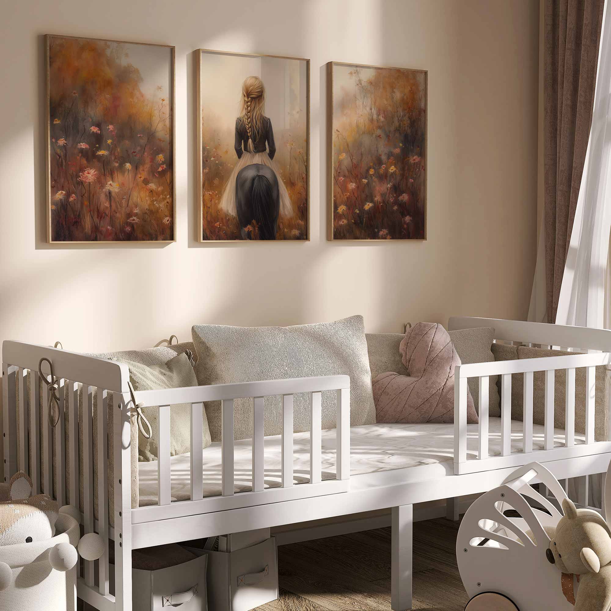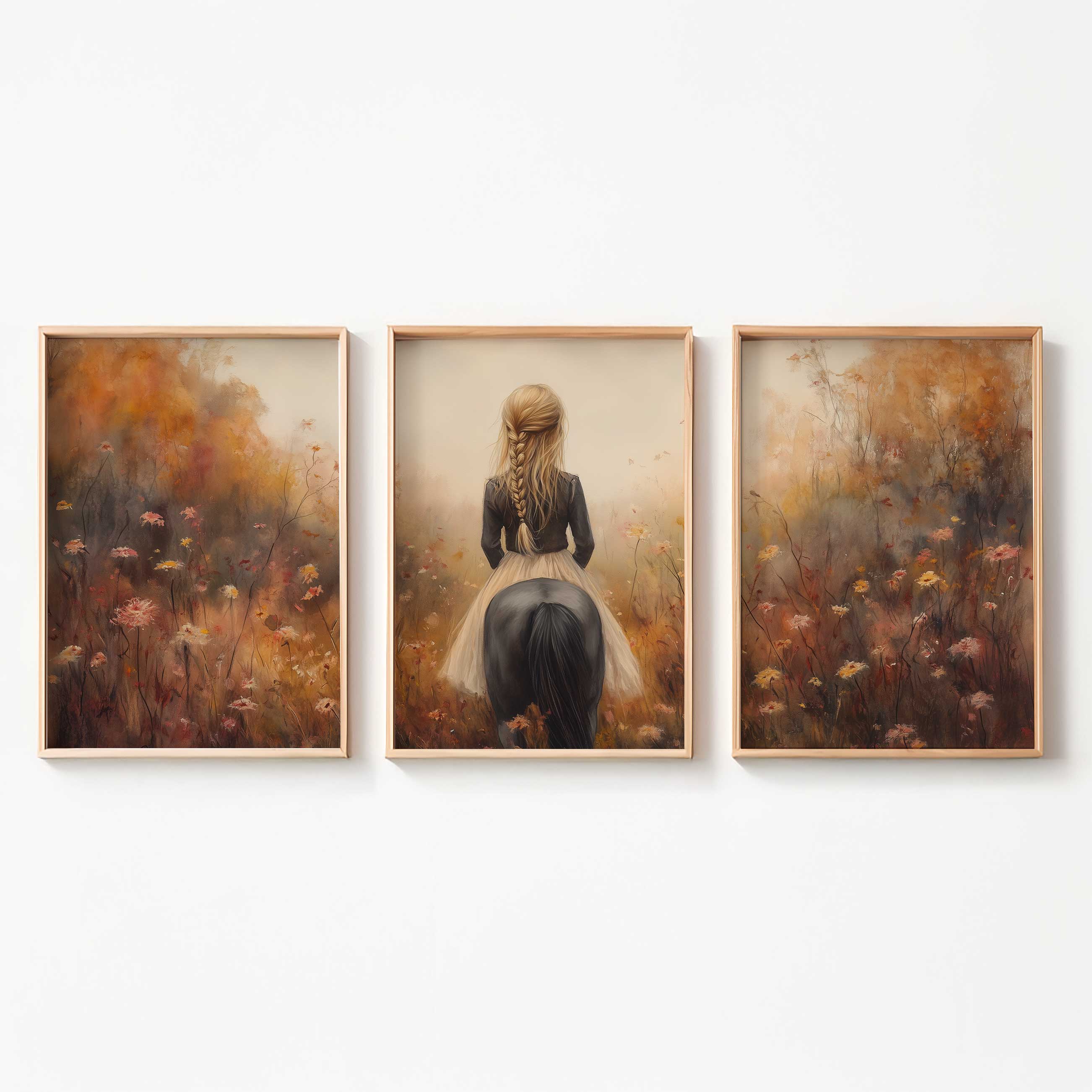Dromerig Meisje te Paard in Bloeiend Pastel Landschap