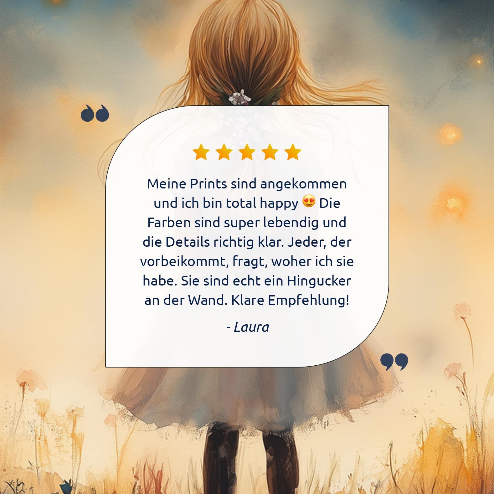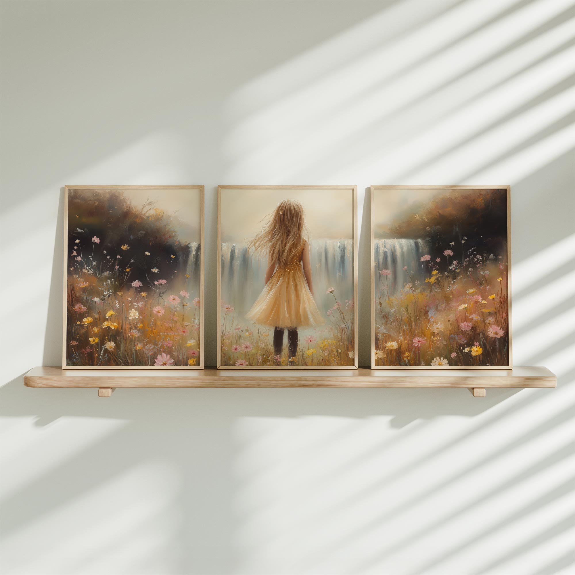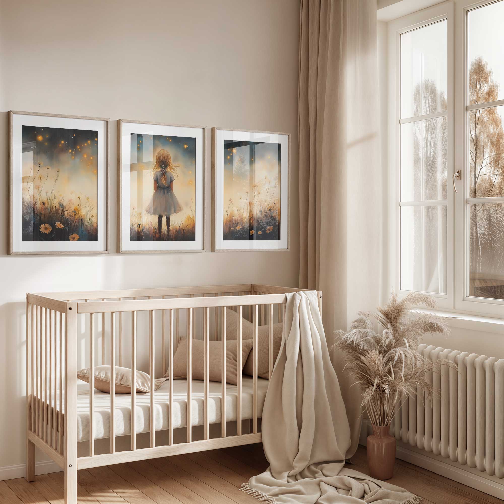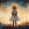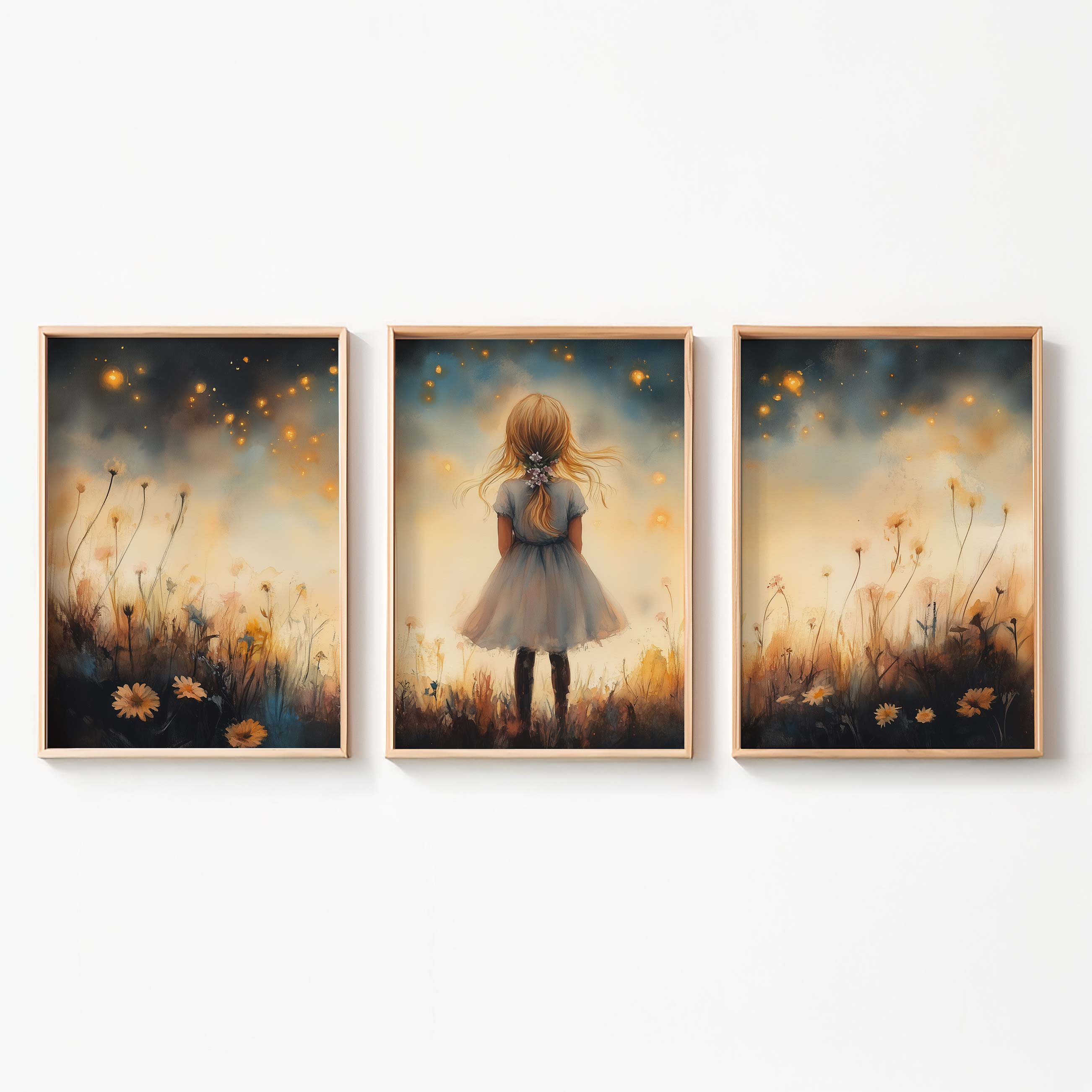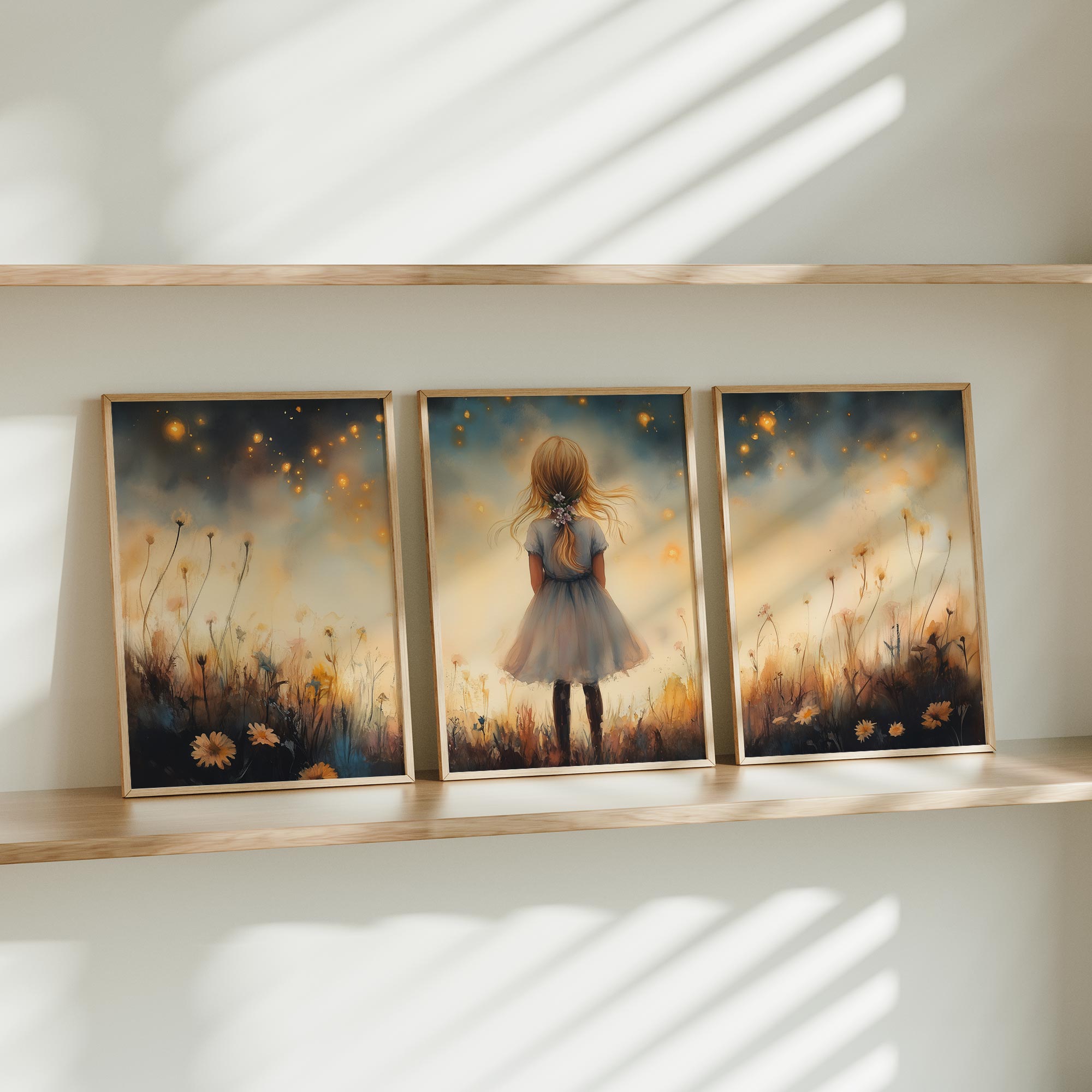Terug naar collectie Posters Dromerig Meisje tussen Bloemen en Sterrenhemel