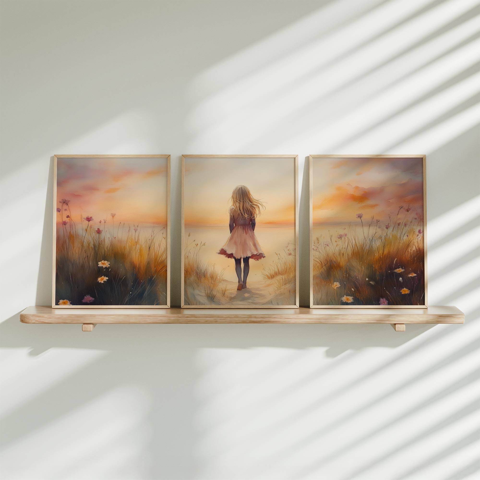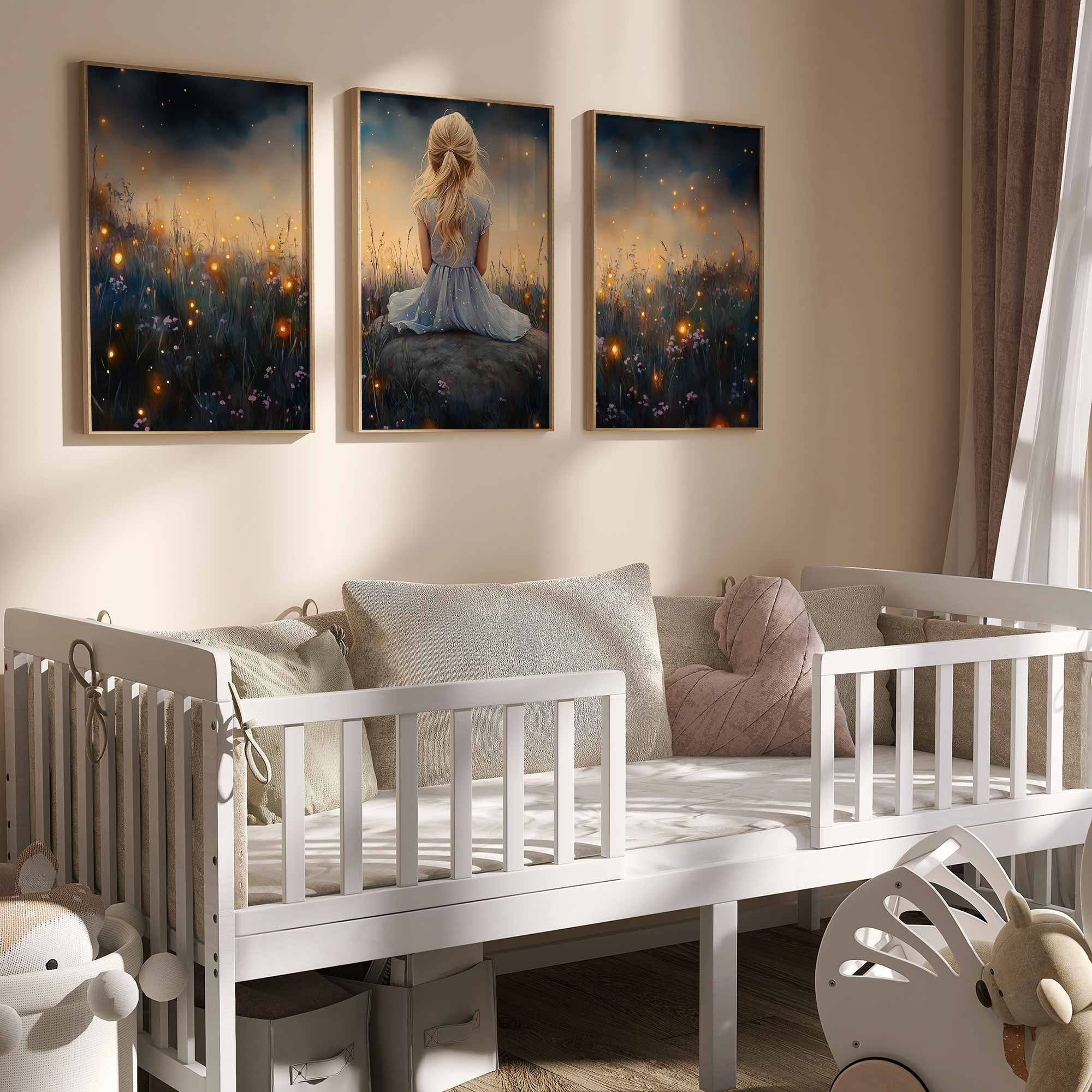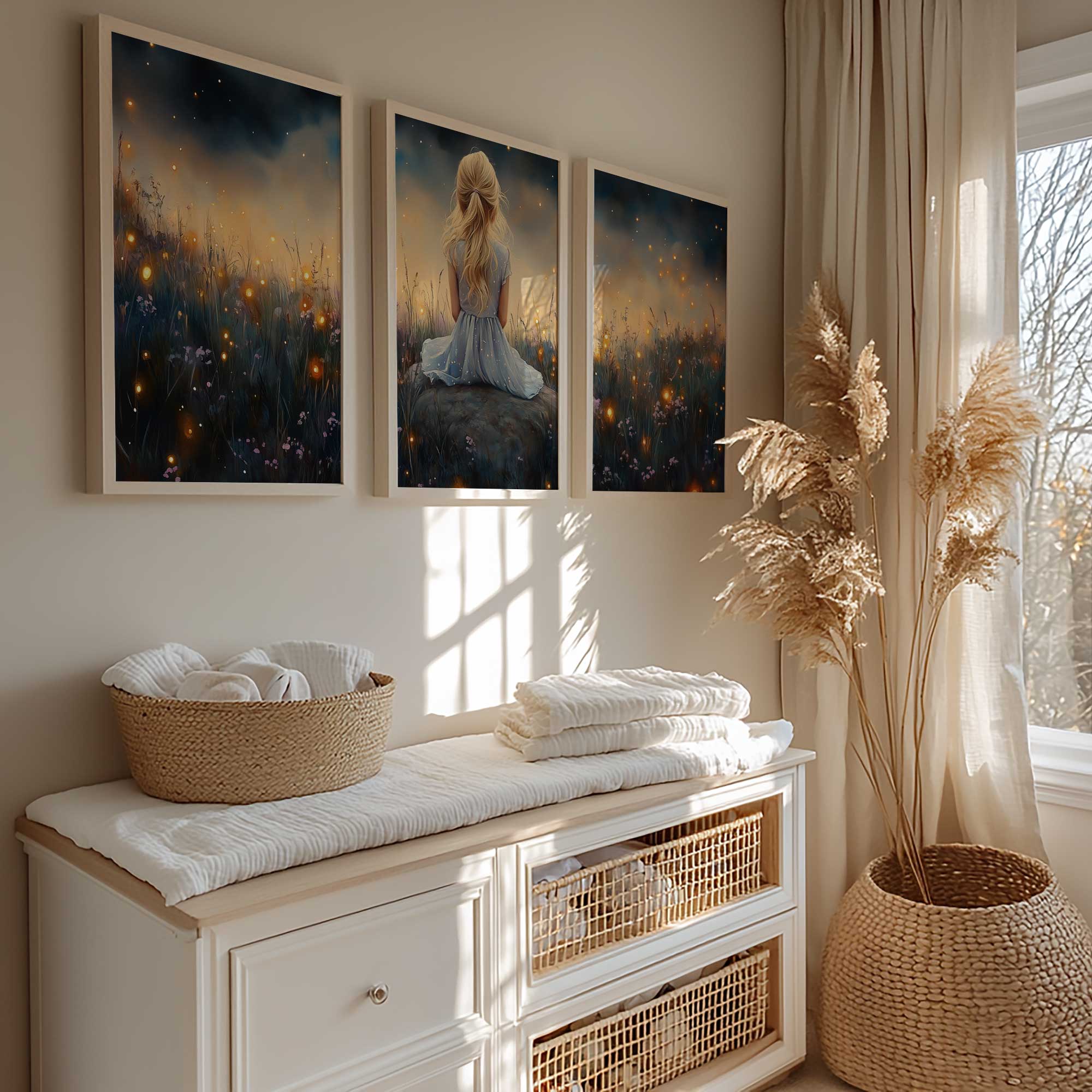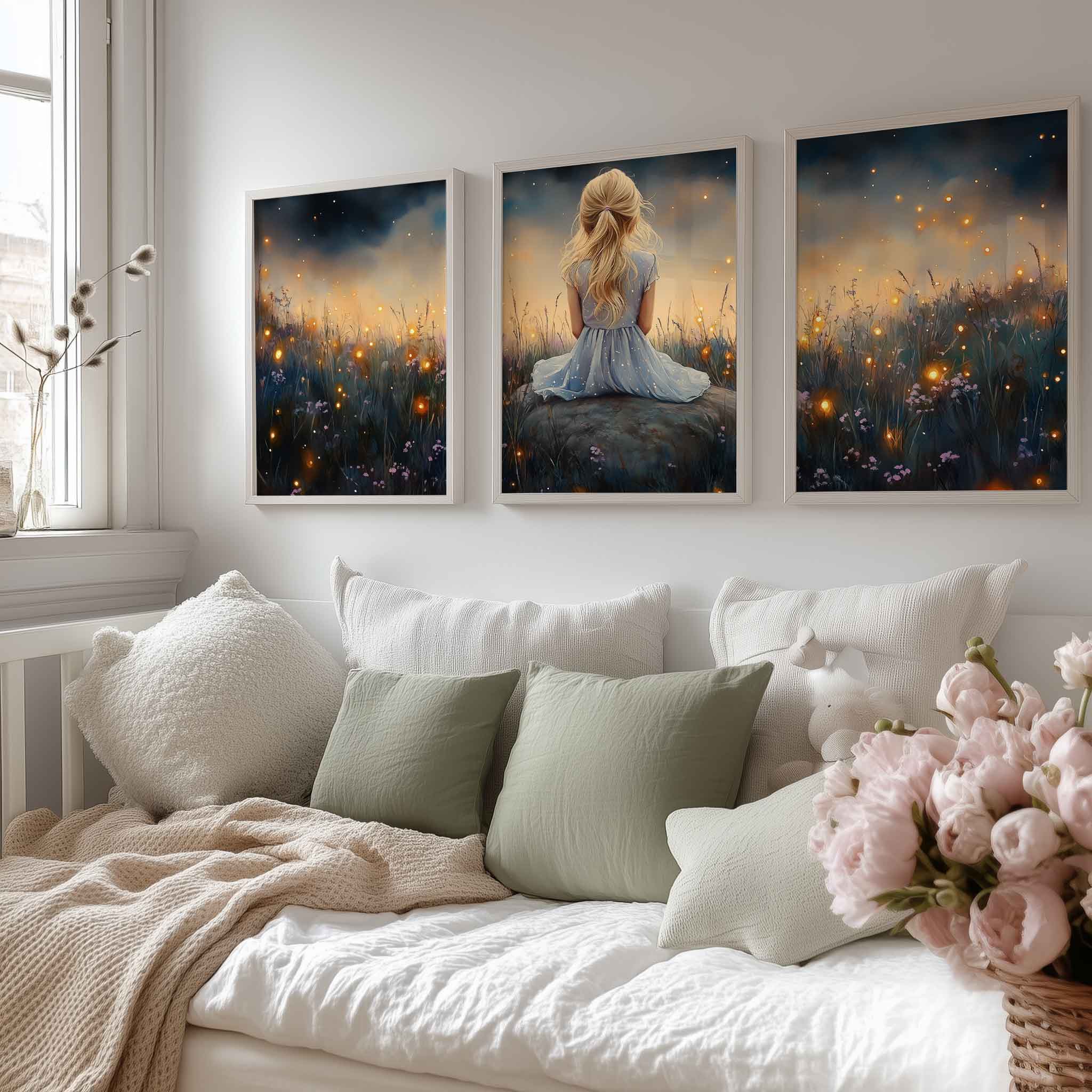 Dromerig Meisje tussen Vuurvliegjes en Bloemen
