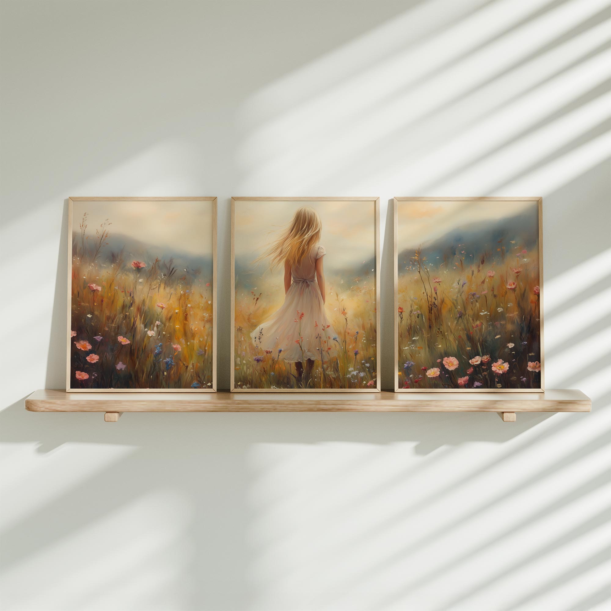 Dromerig Paard en Meisje in Bloemenveld