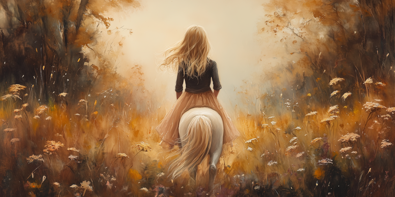 Dromerig Paard in Bloeiend Landschap – Roze Sfeer