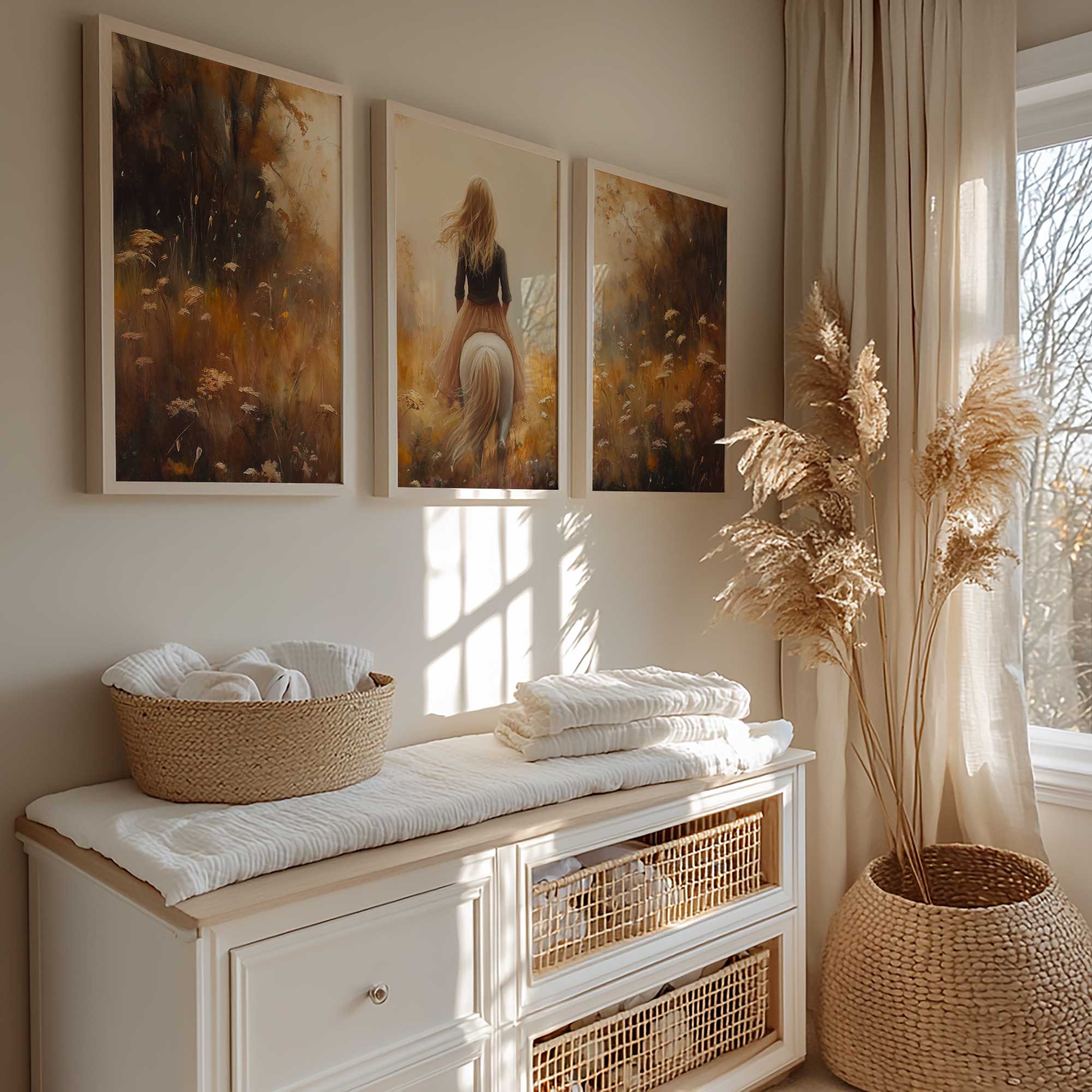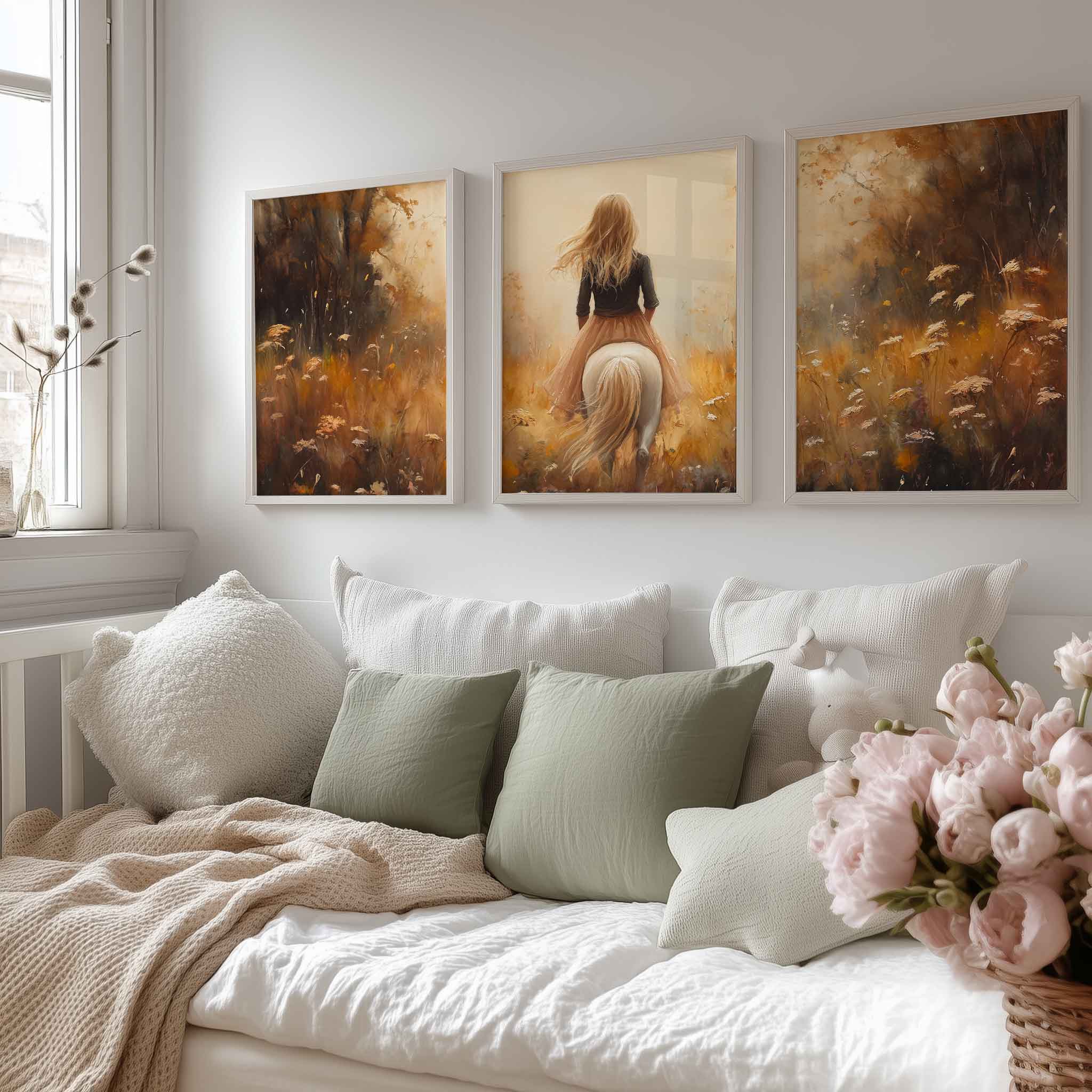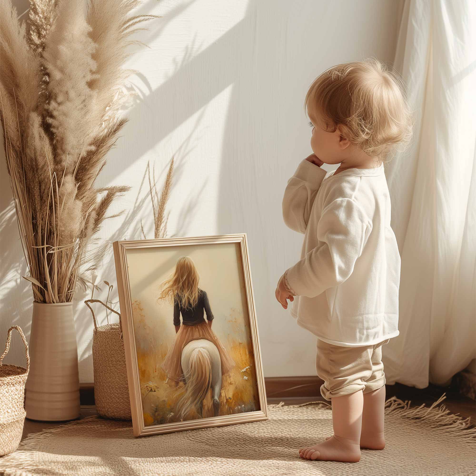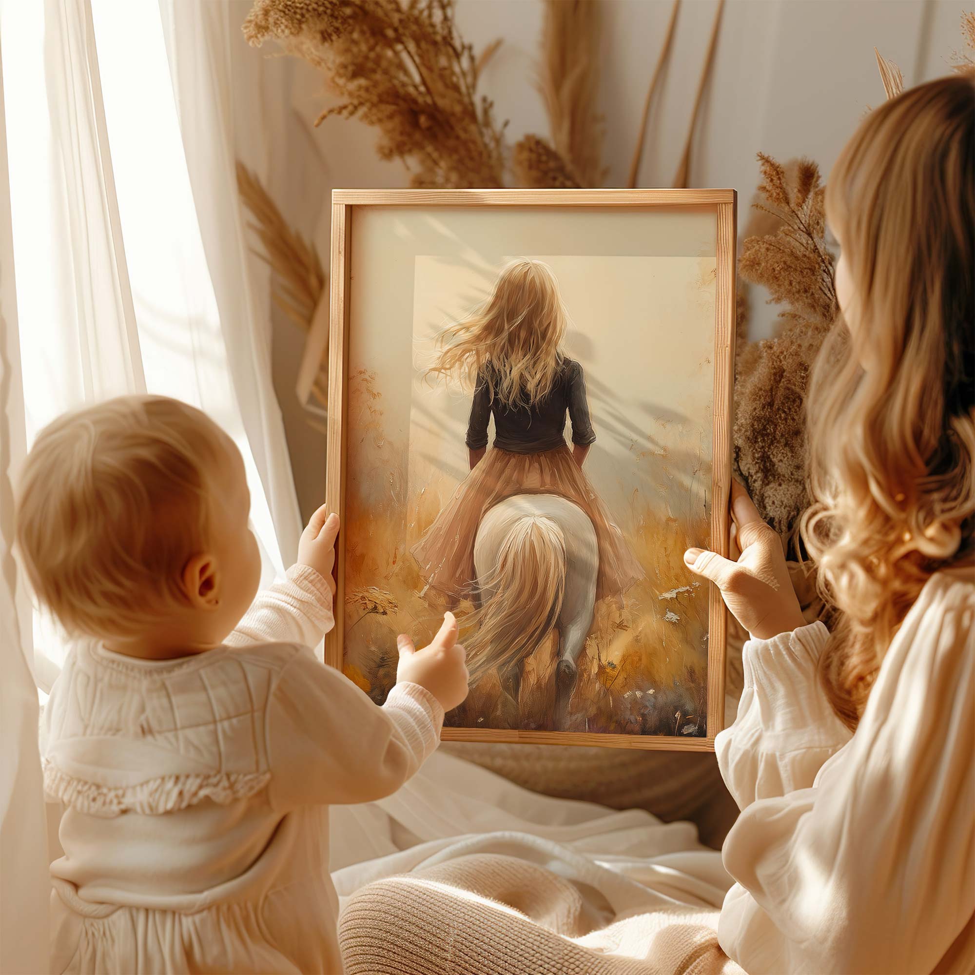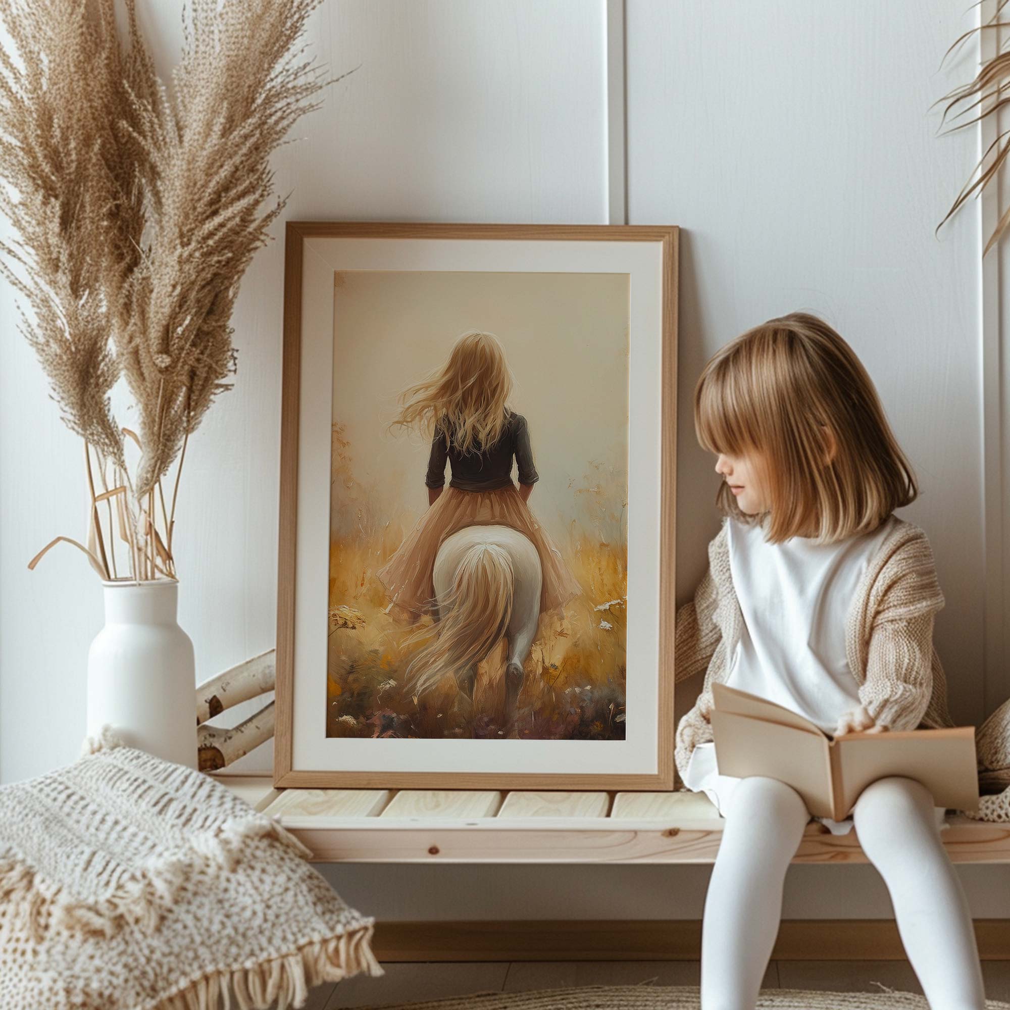 Terug naar collectie Posters Dromerig Paard in Bloeiend Landschap – Roze Sfeer