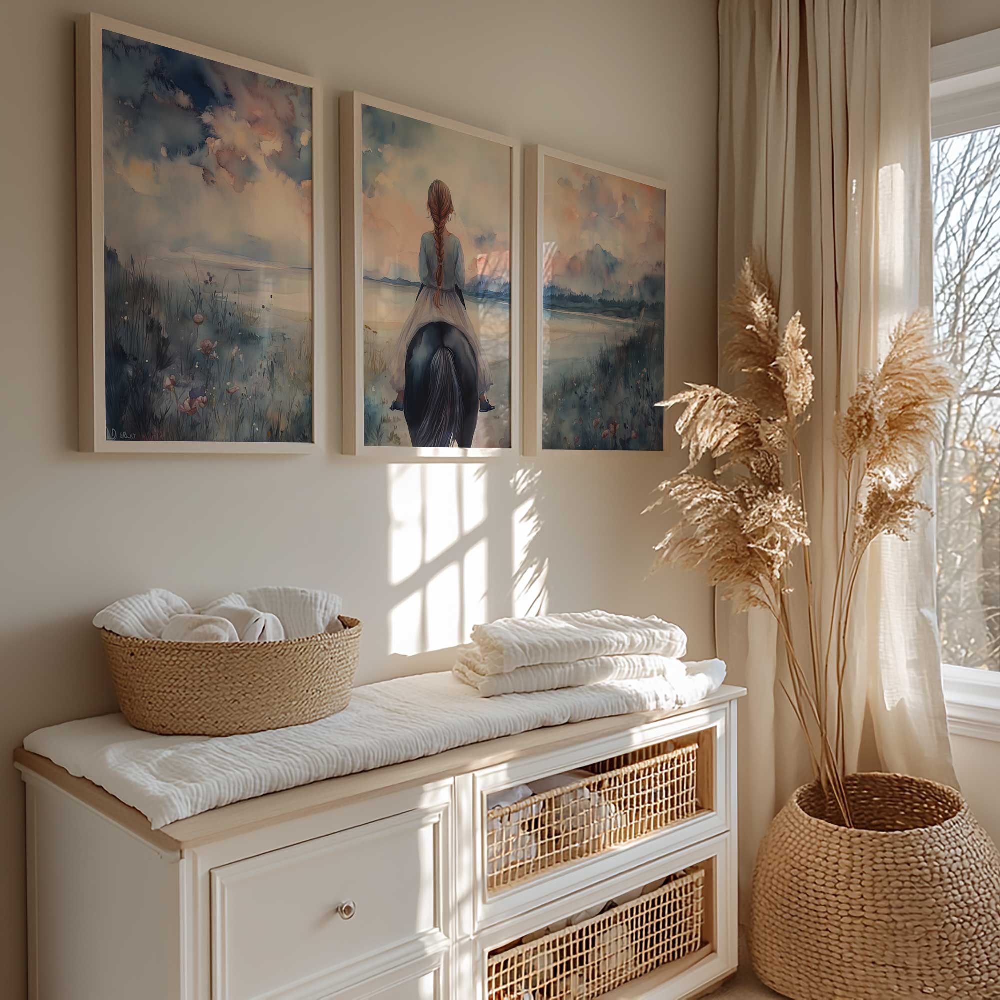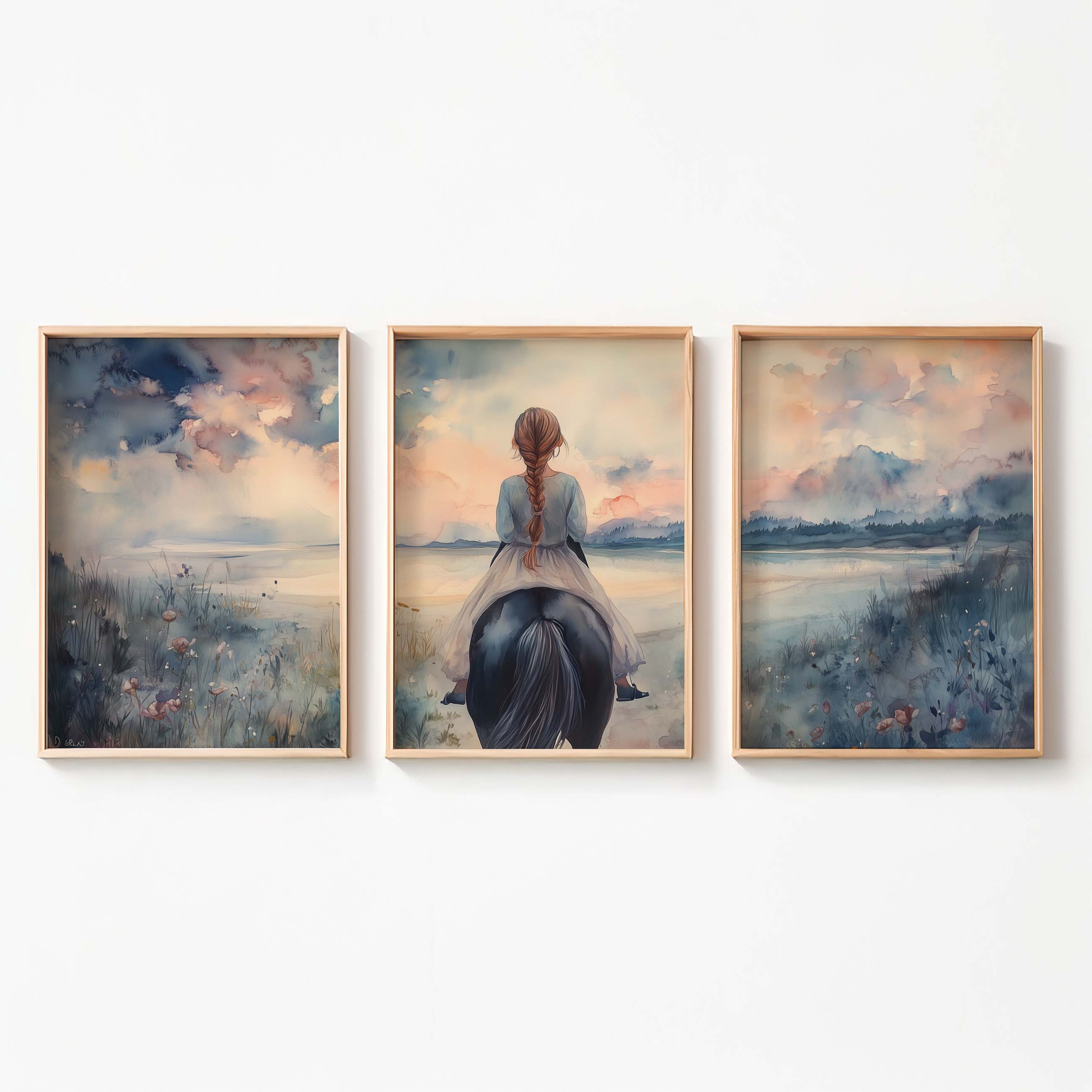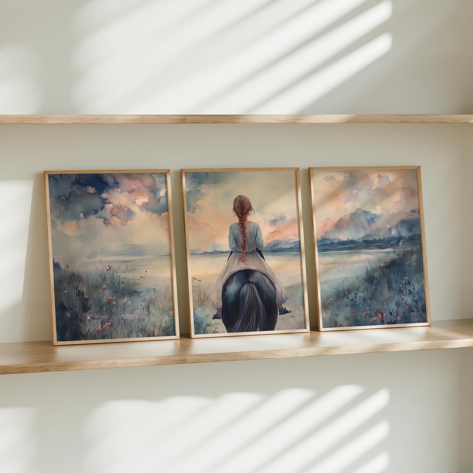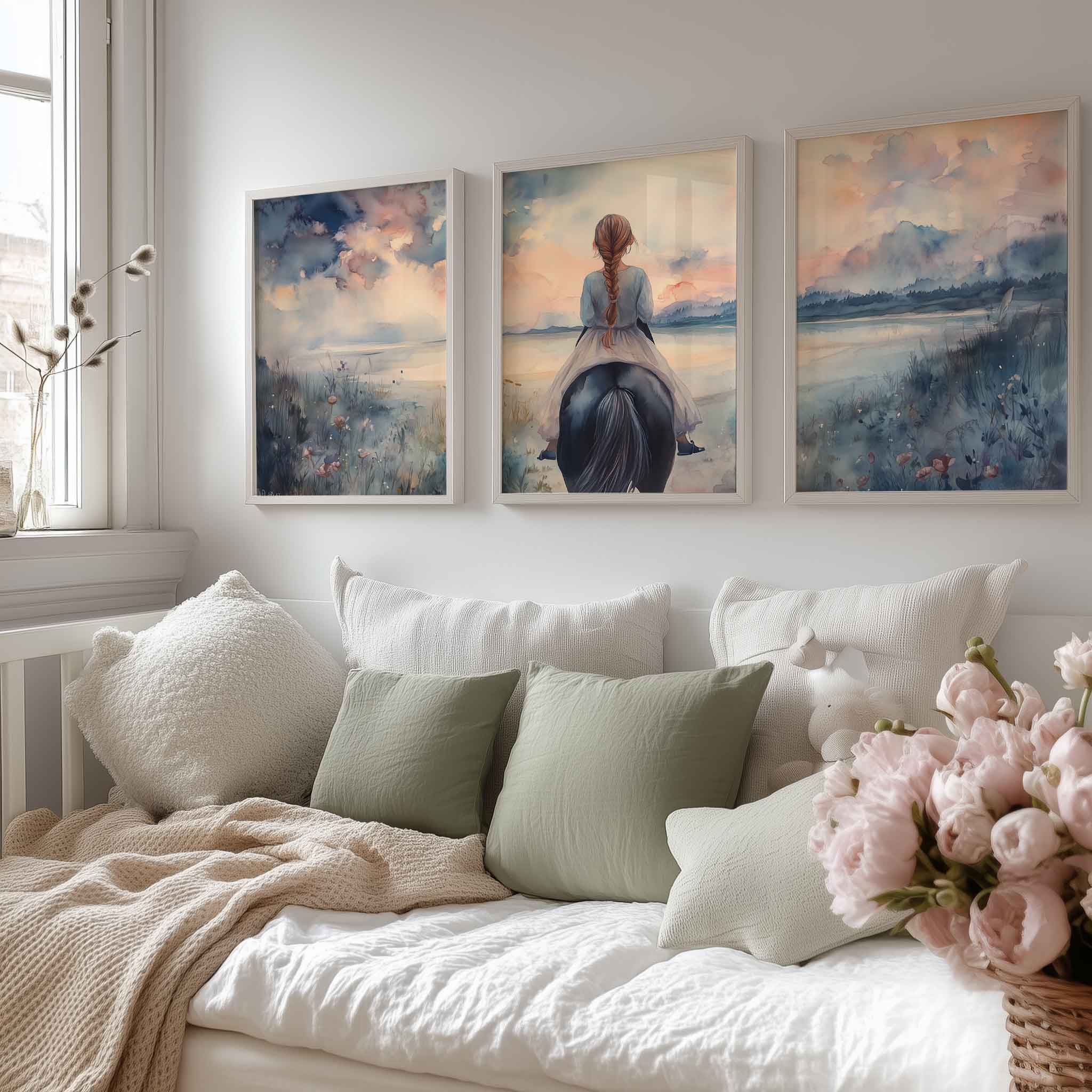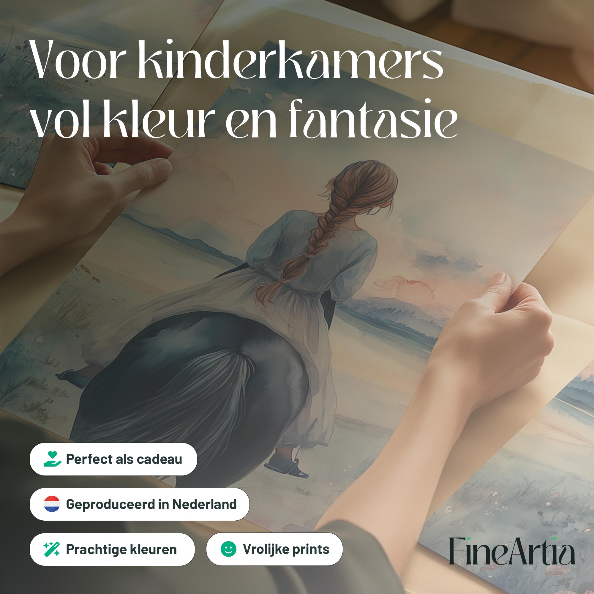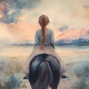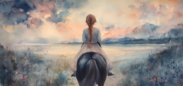 Dromerig Paardrijd Meisje in Zachte Waterkleuren