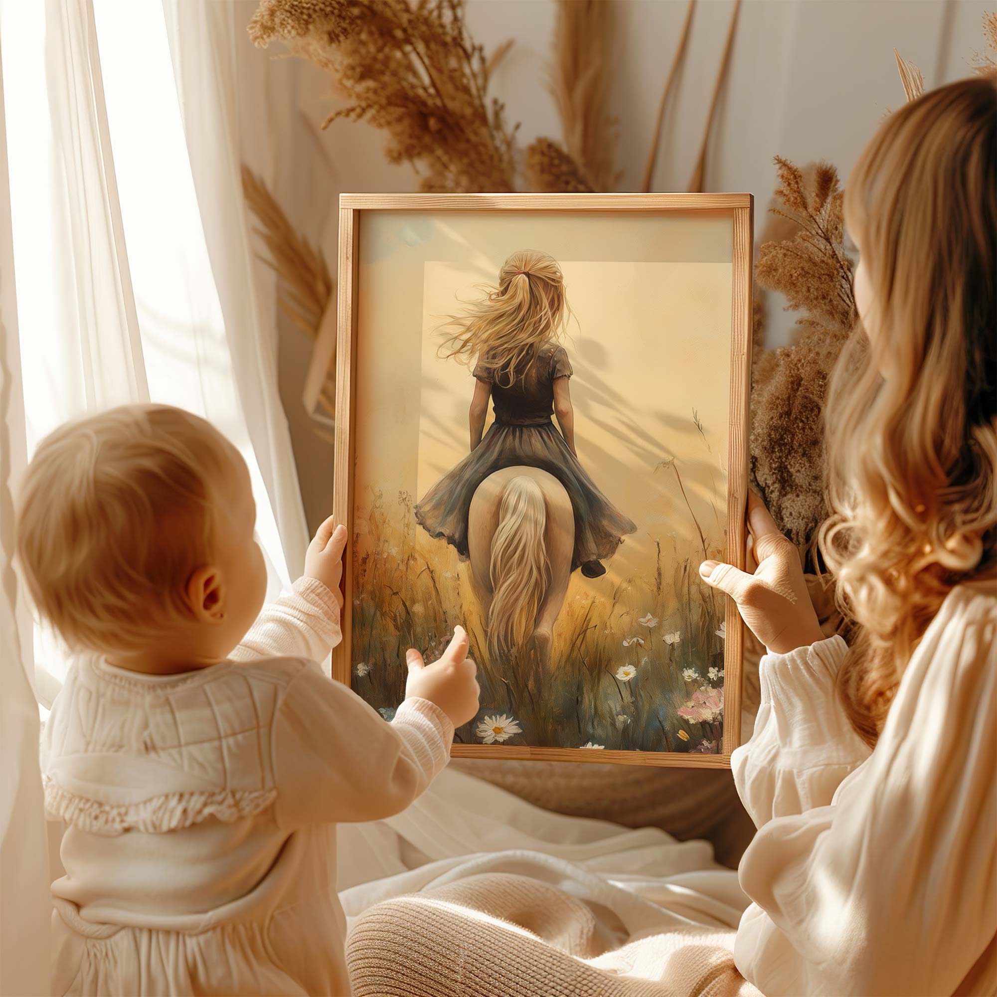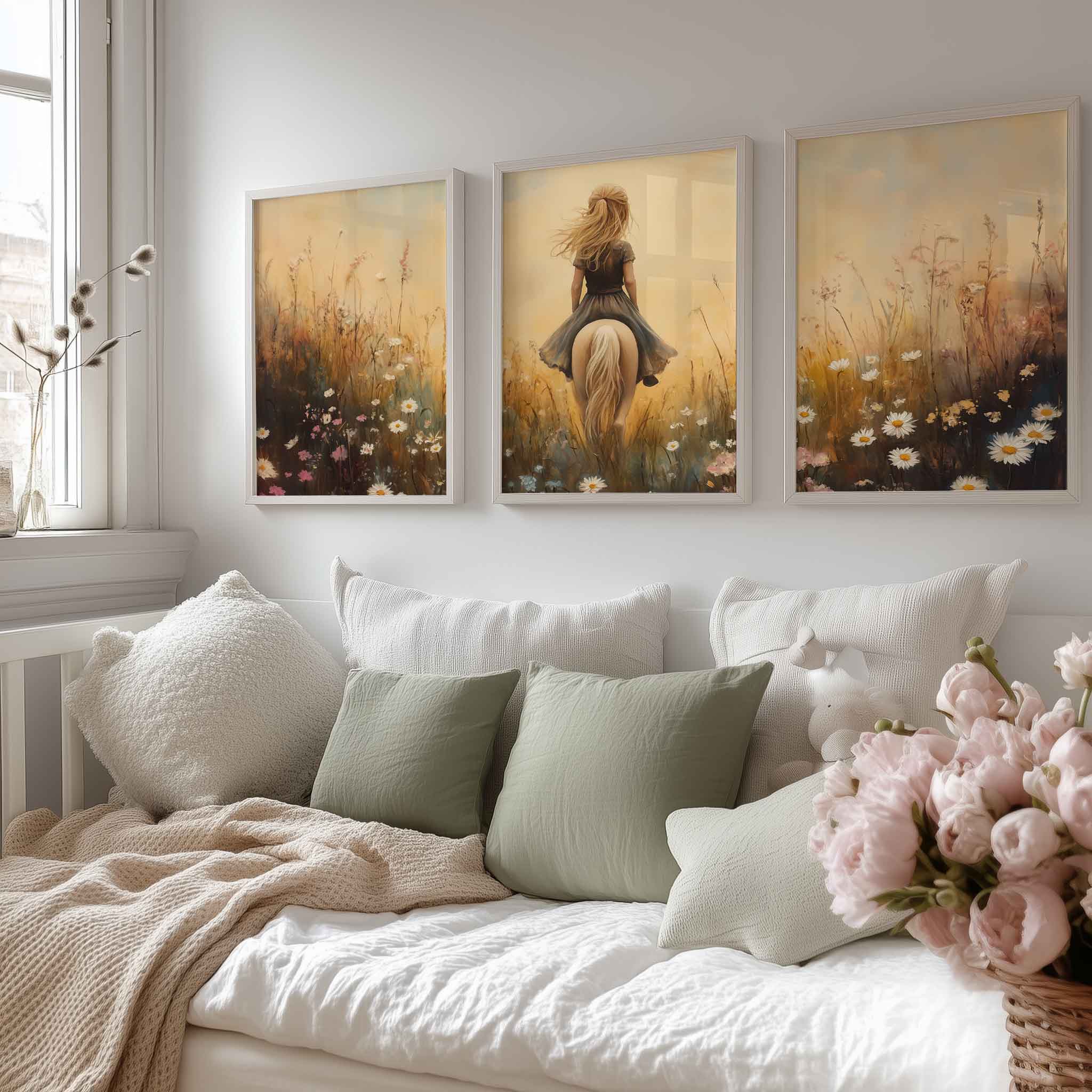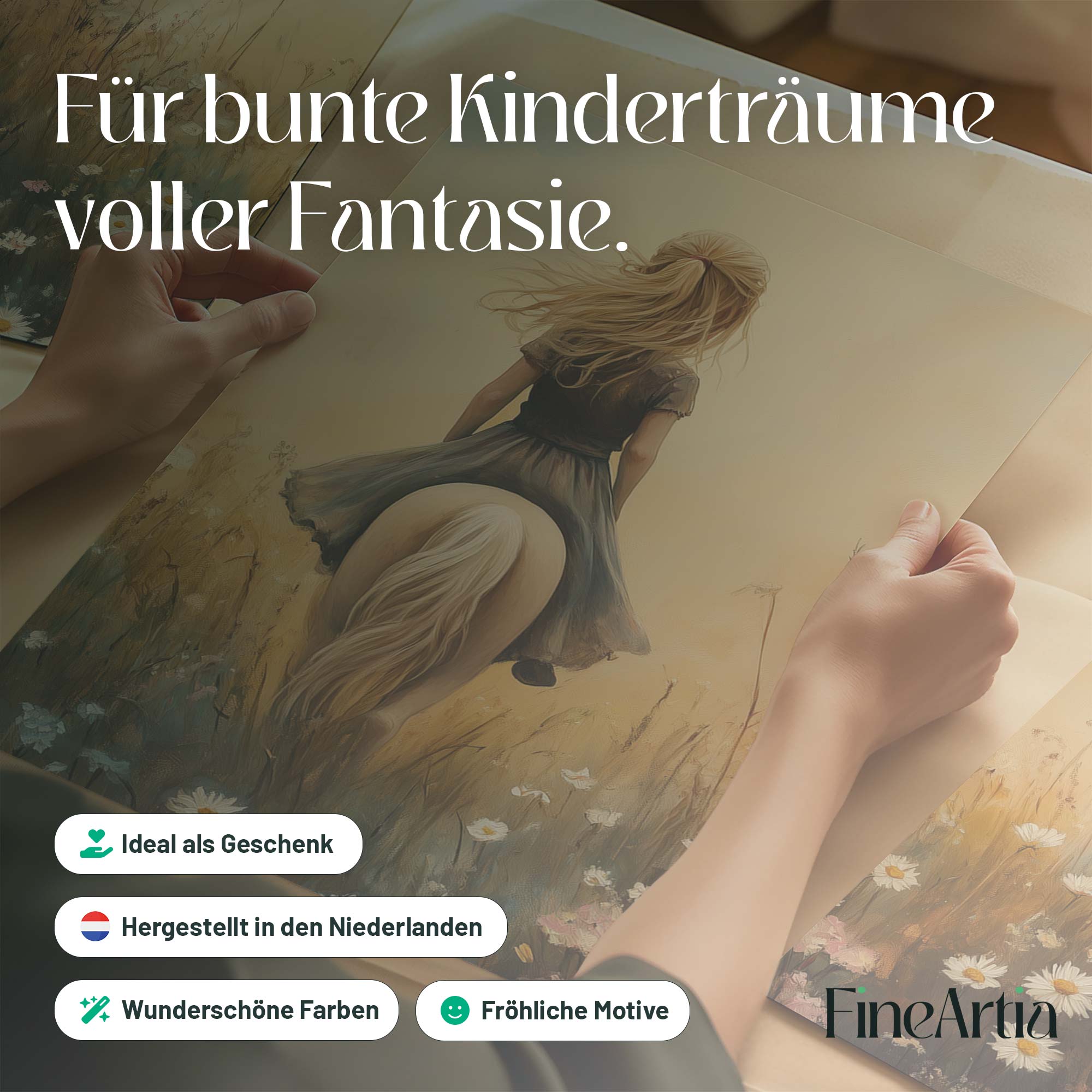 Terug naar collectie Posters Dromerig Paardrijden in een Bloemenveld