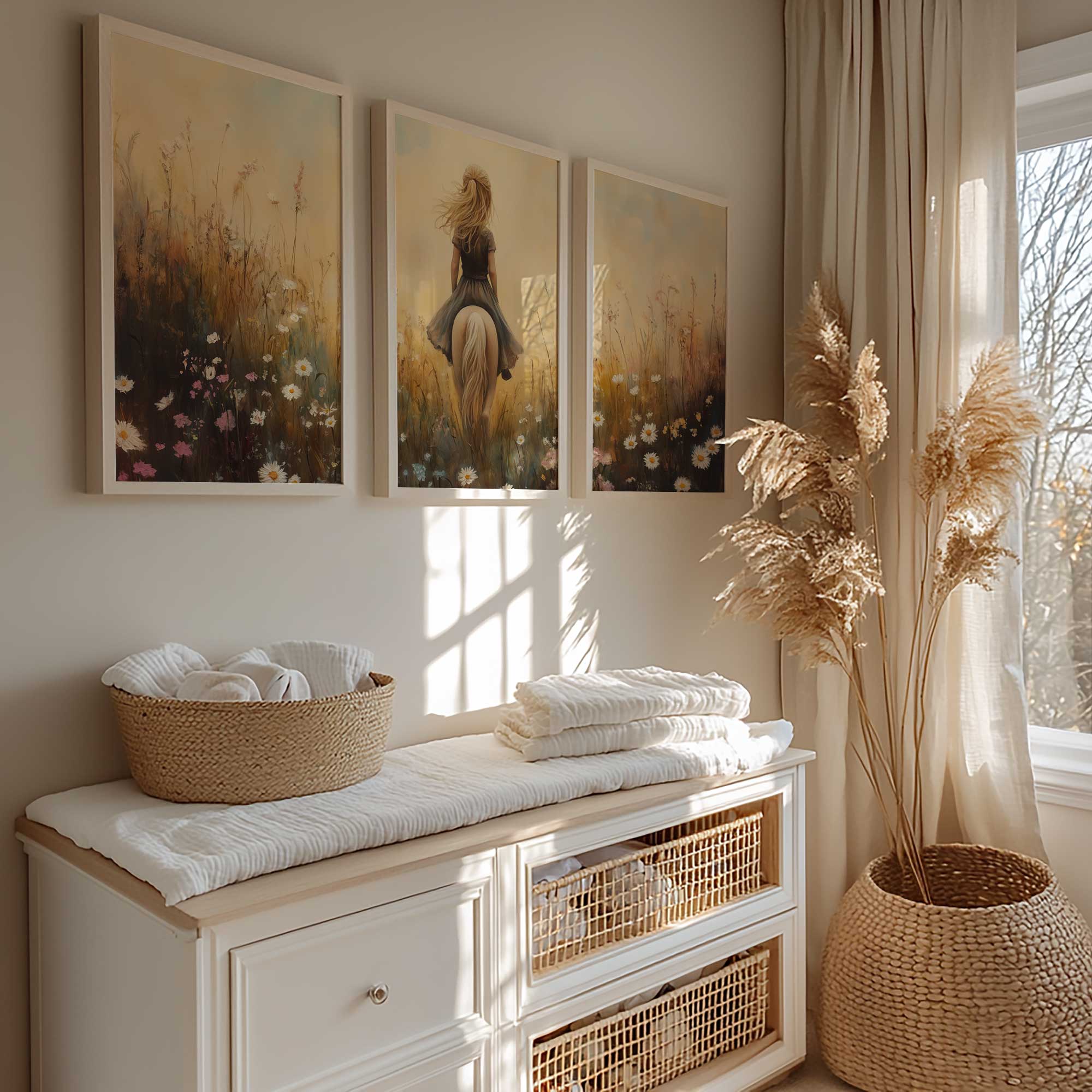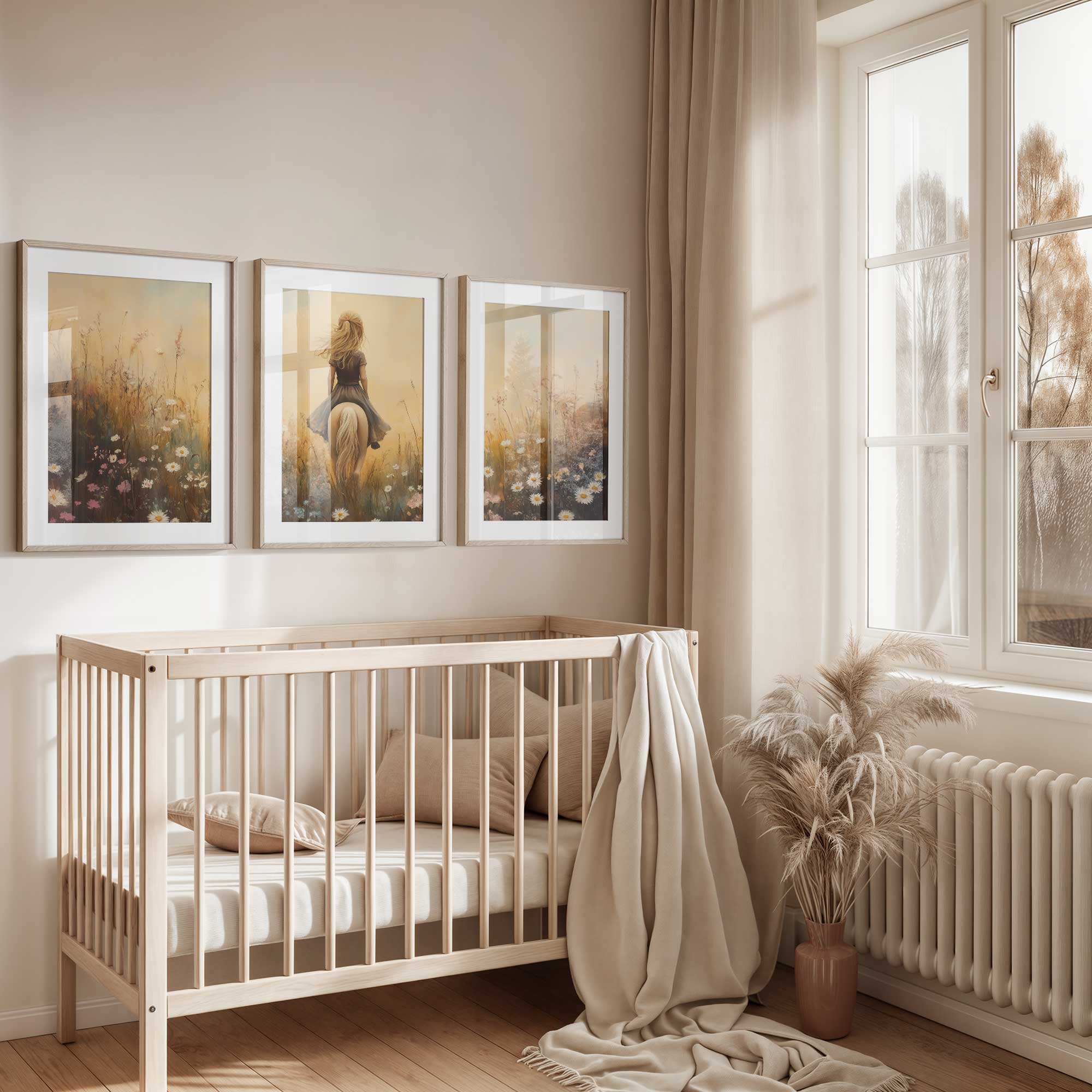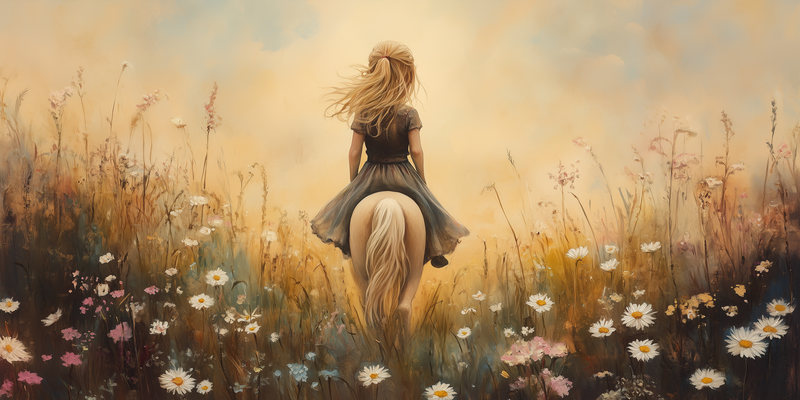 Terug naar collectie Posters Dromerig Paardrijden in een Bloemenveld