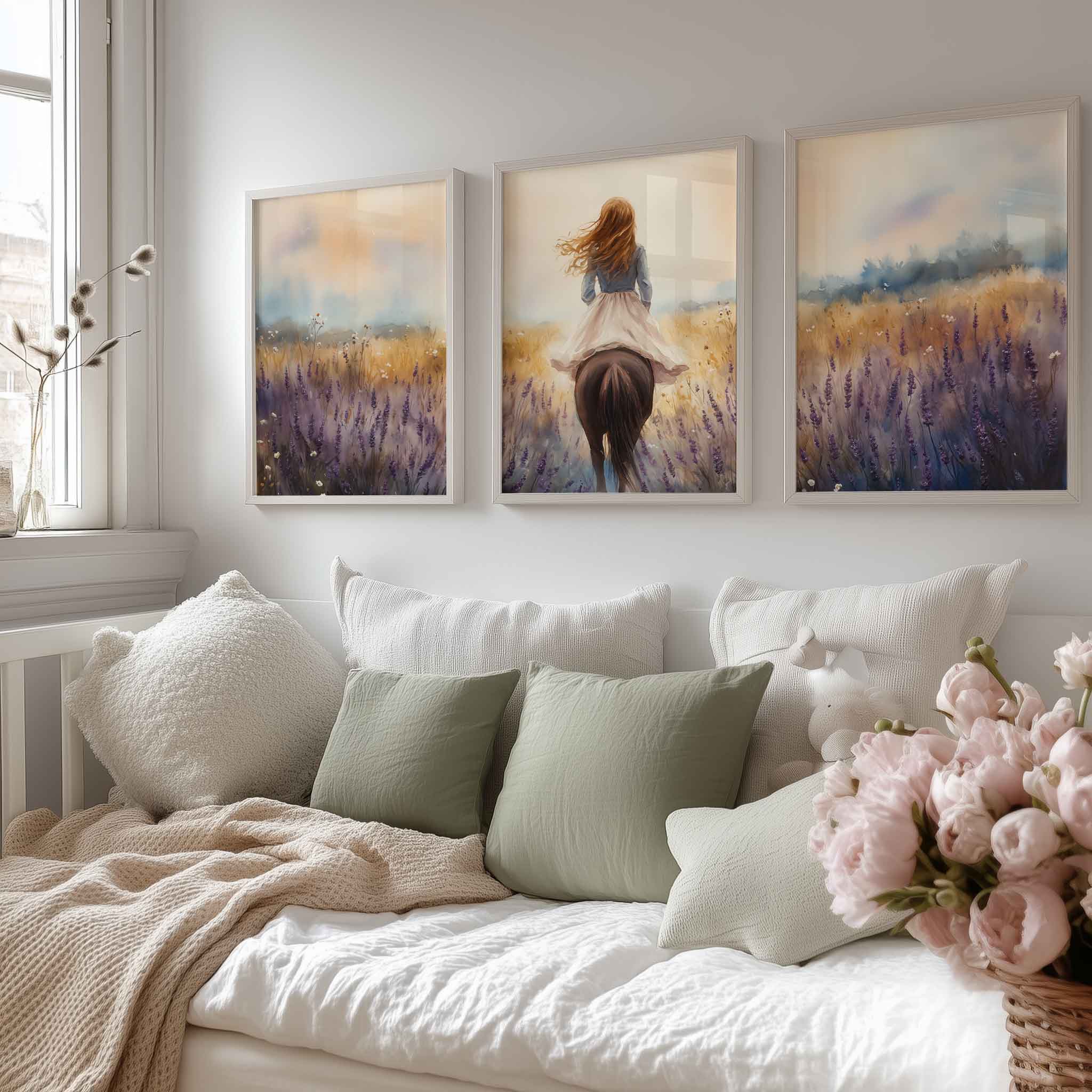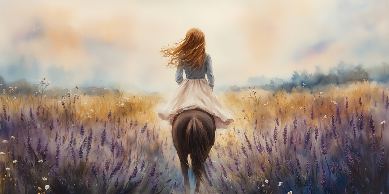 Dromerig Paardrijden in Pastel Bloemenveld
