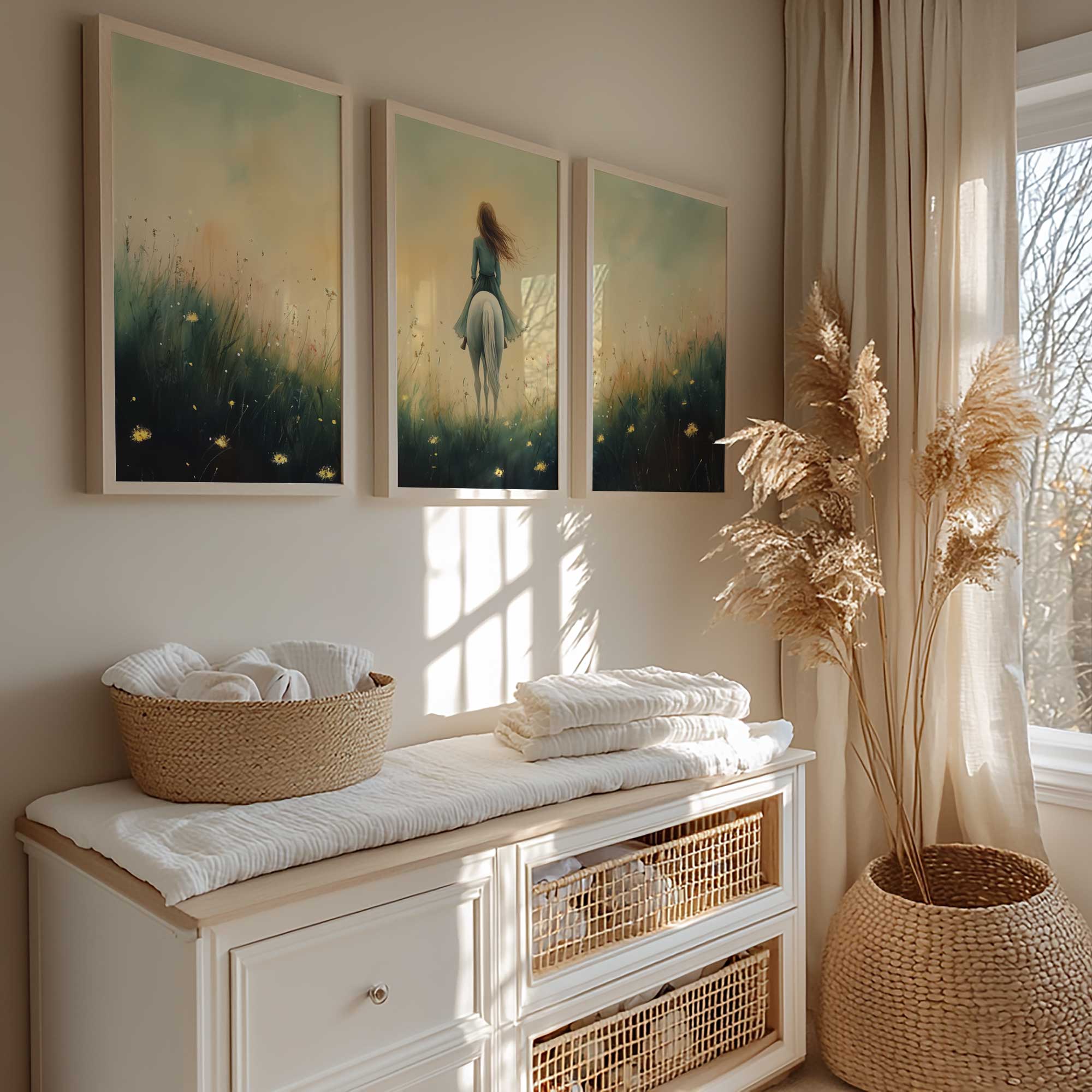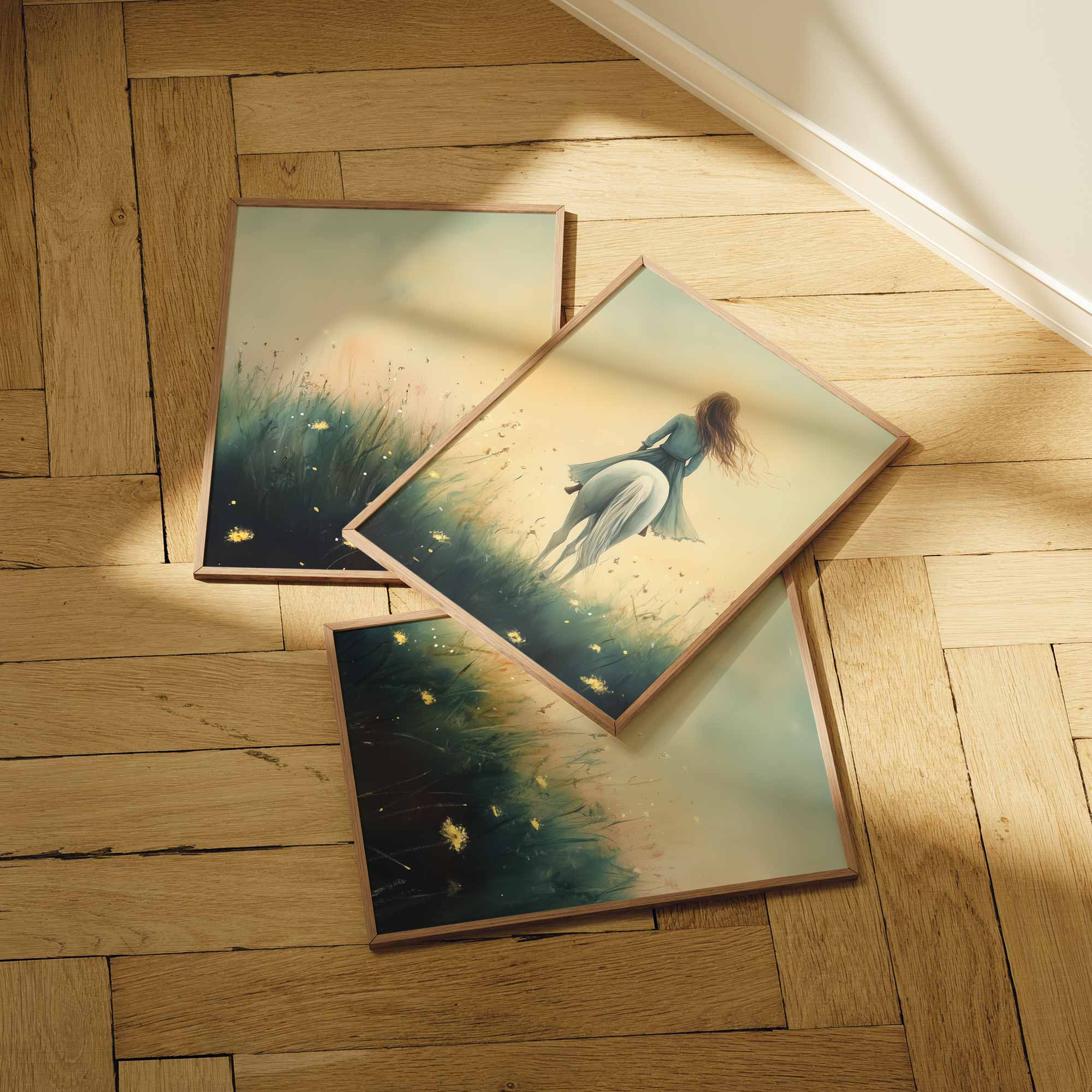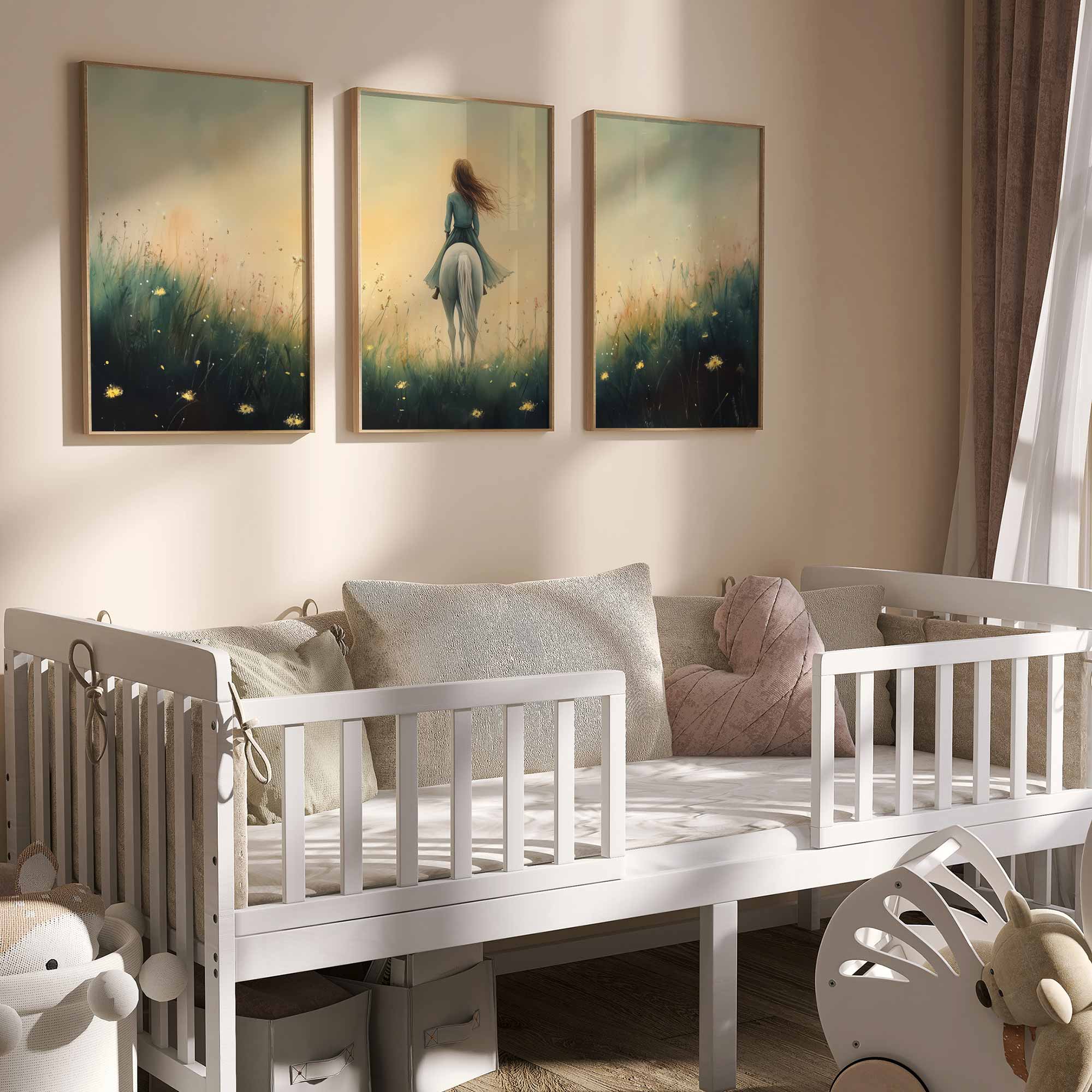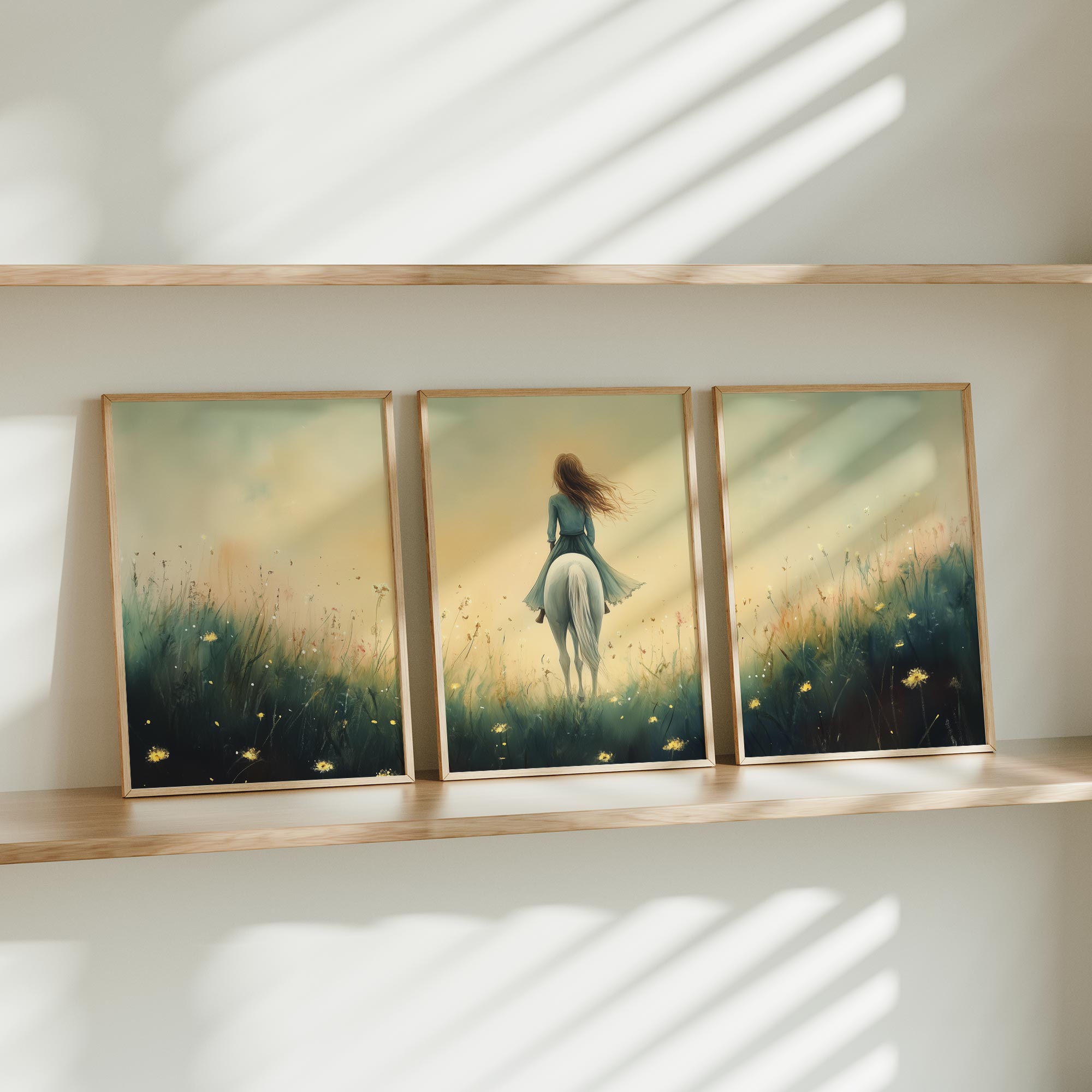 Dromerig Tafereel: Vrouw en Wit Paard in Bloemenveld