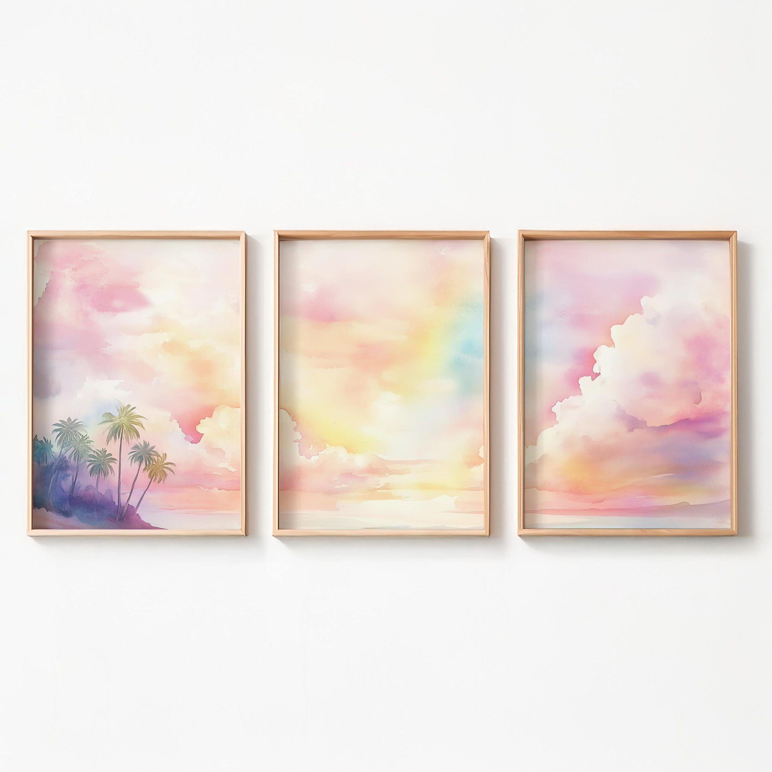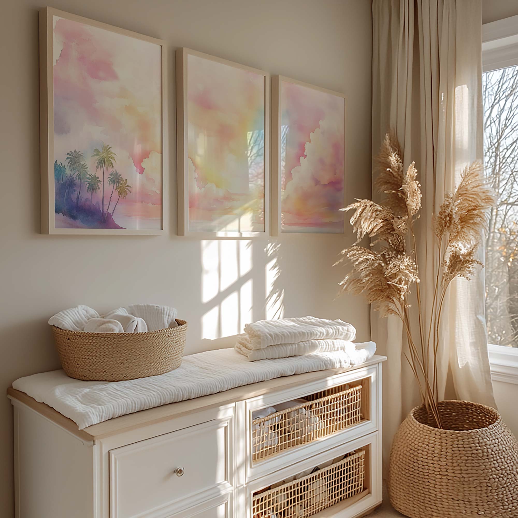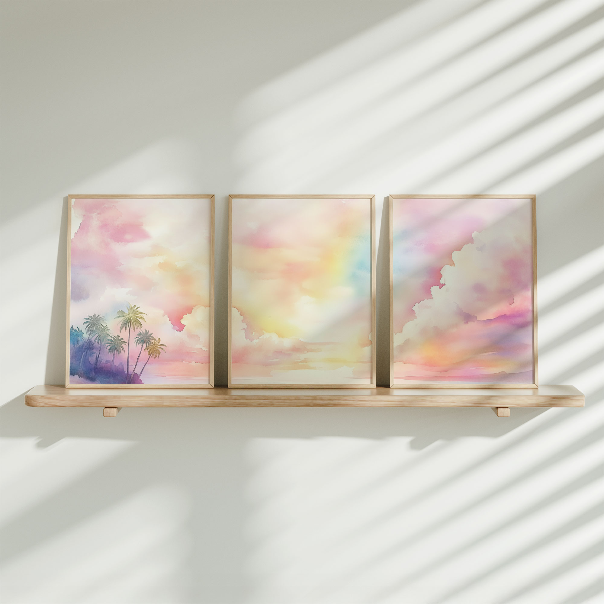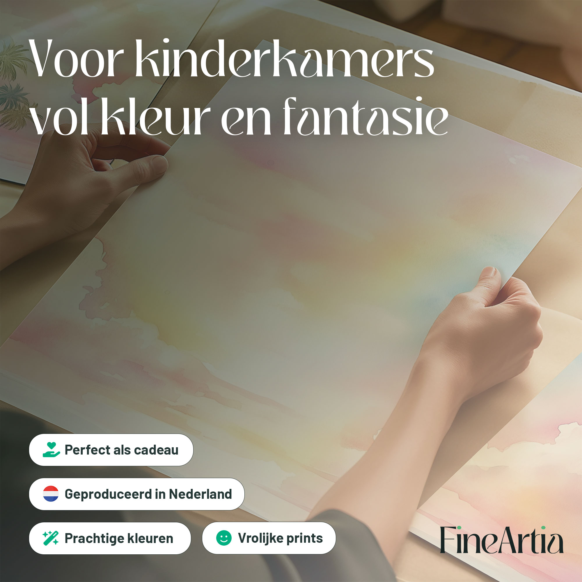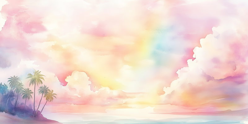 Dromerig Tropisch Strand – Pastel Wolken en Palmbomen