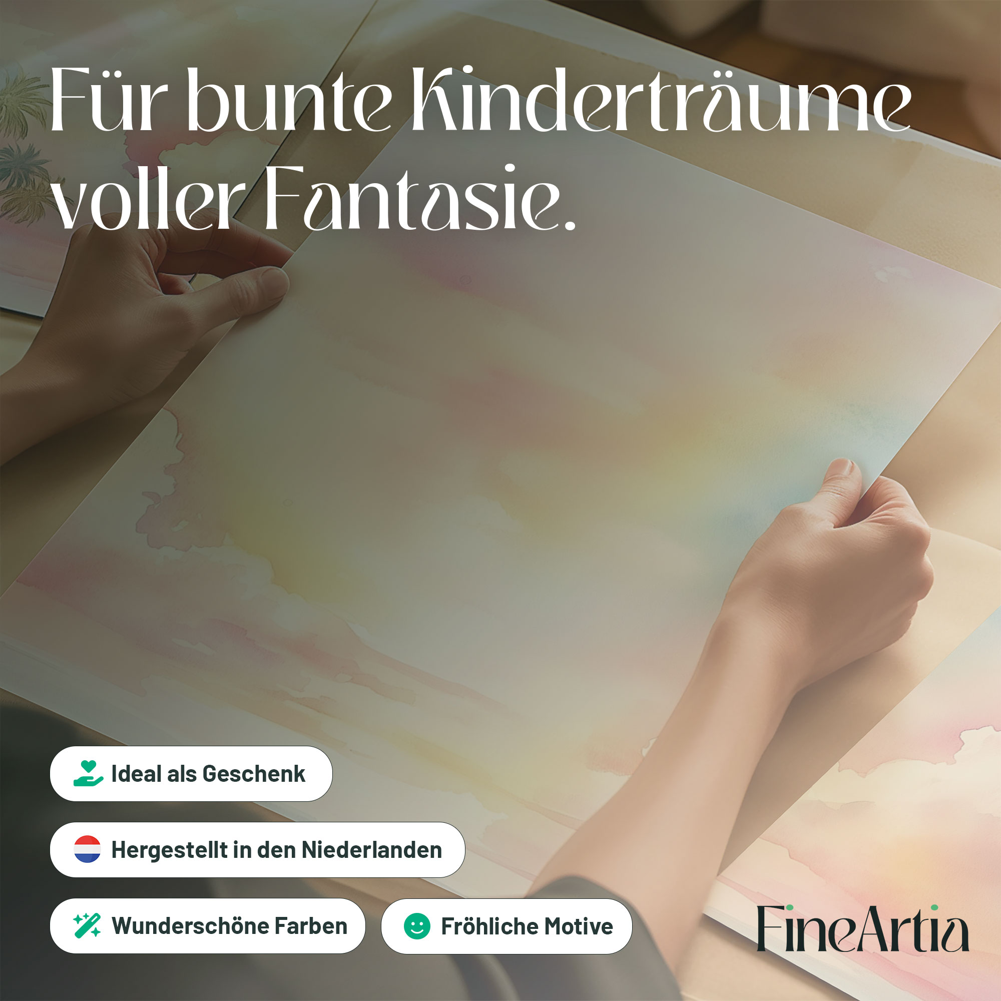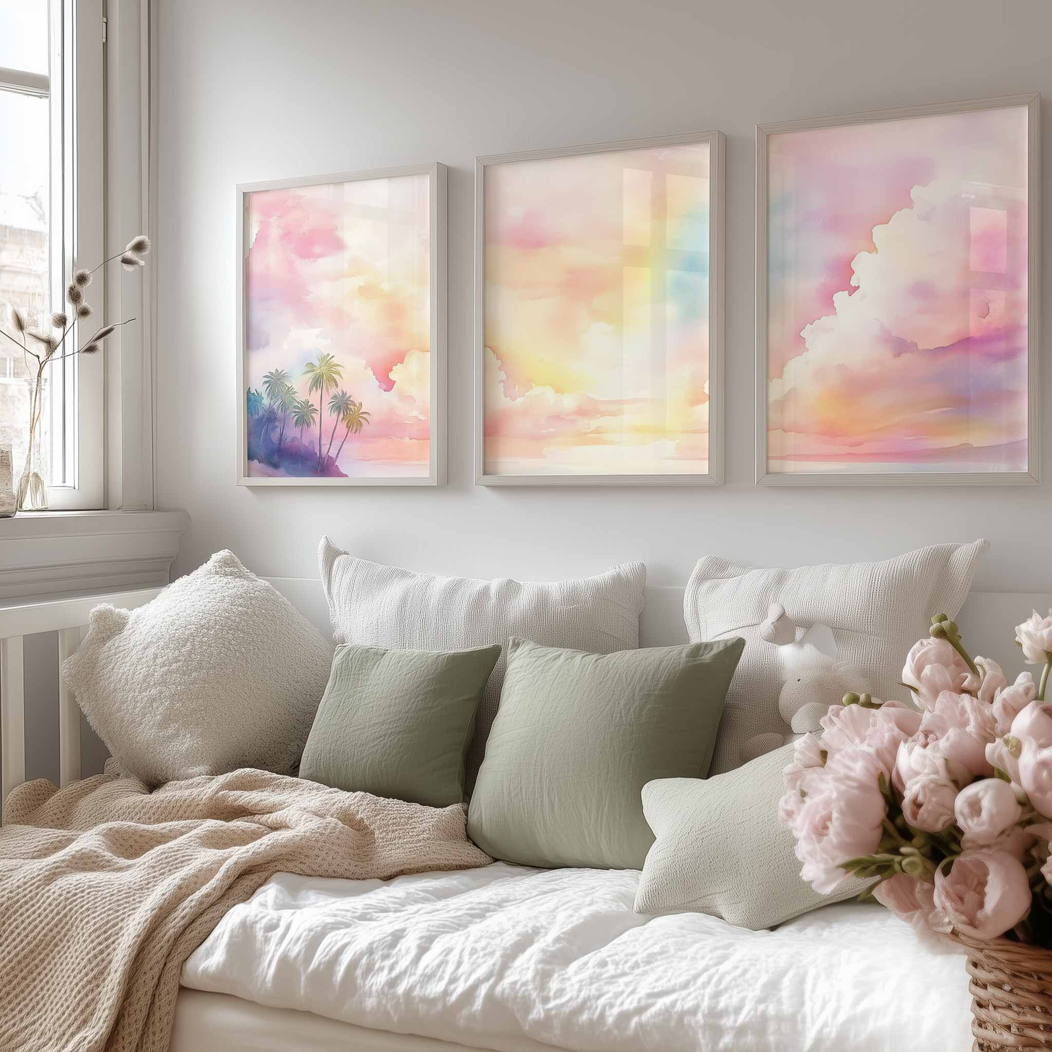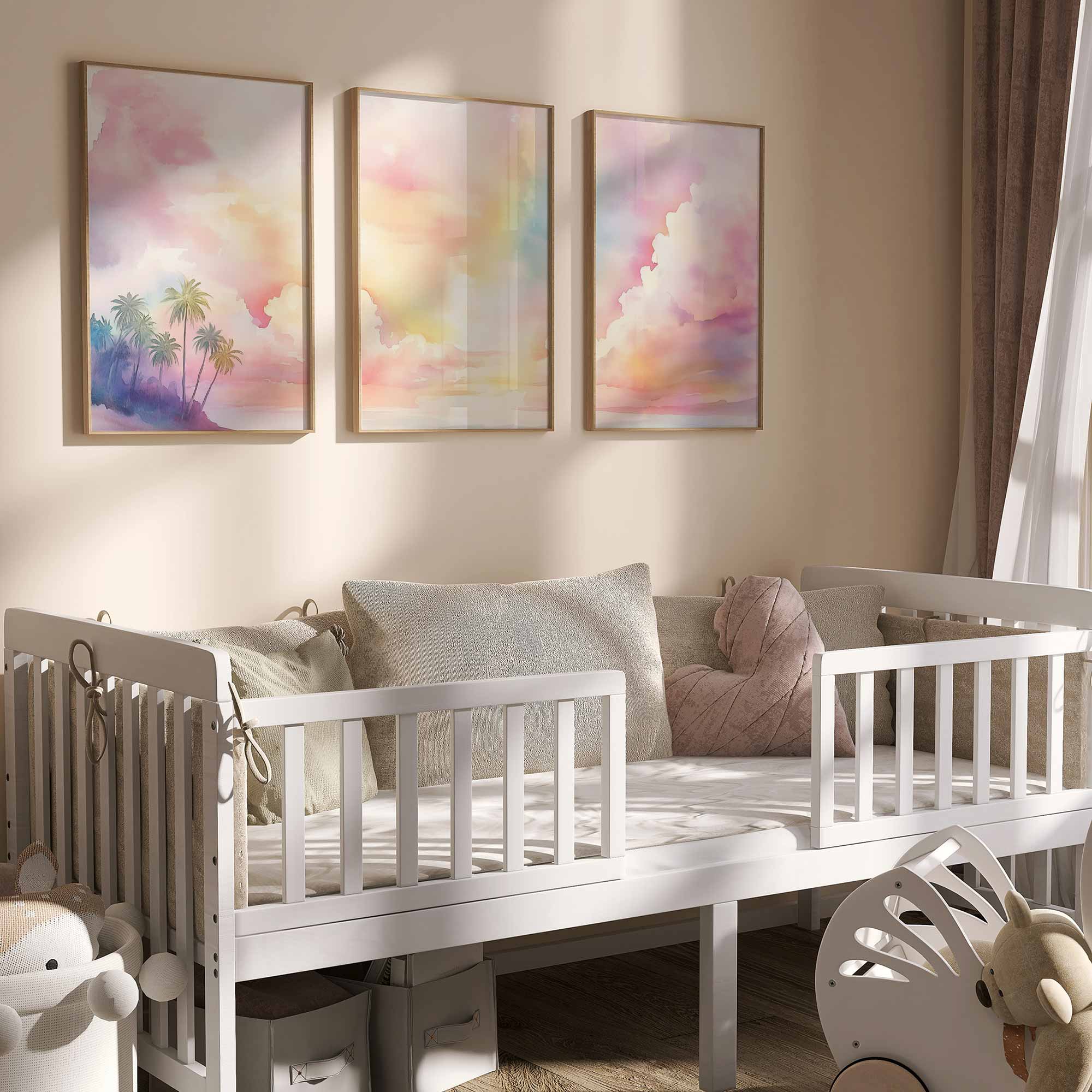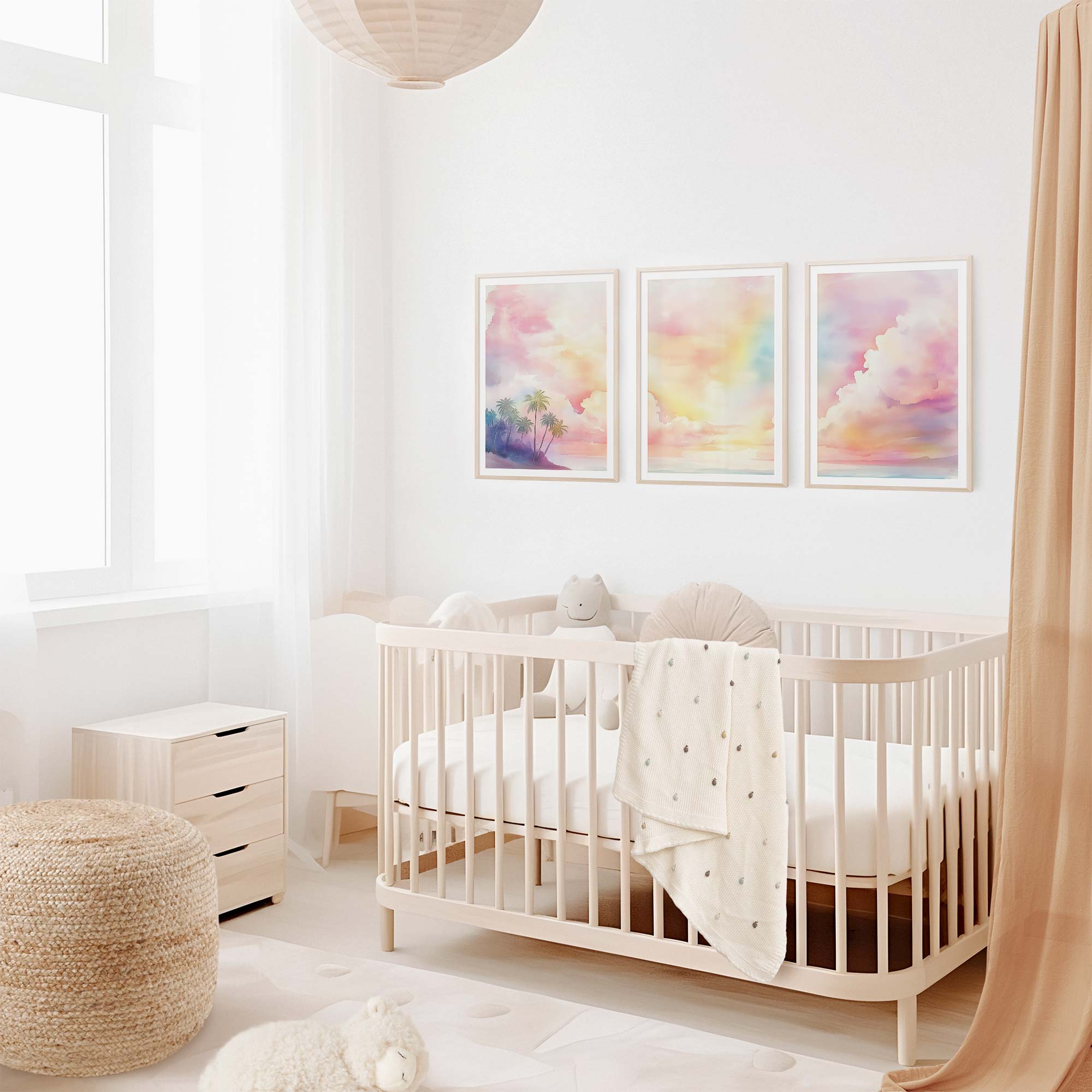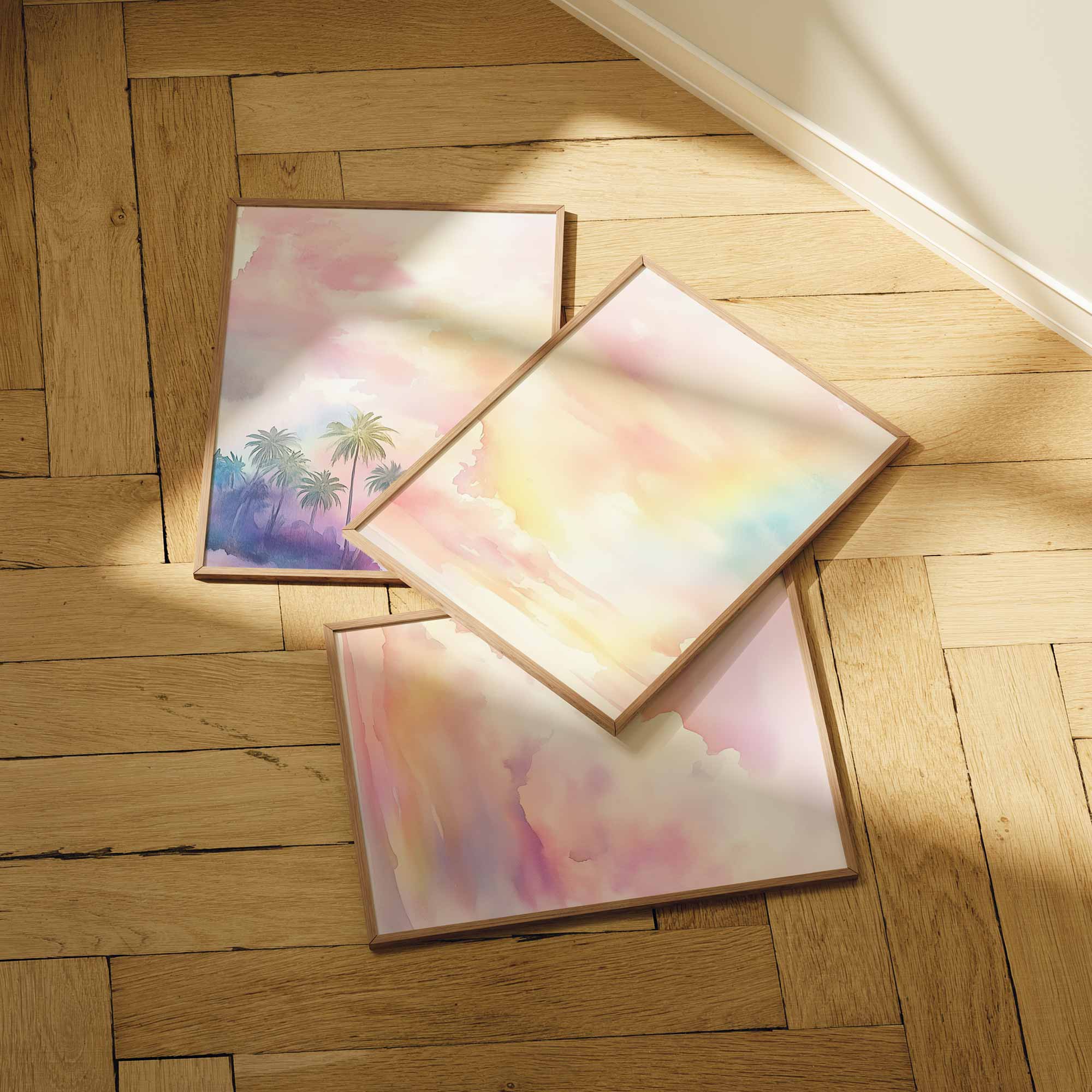 Dromerig Tropisch Strand – Pastel Wolken en Palmbomen
