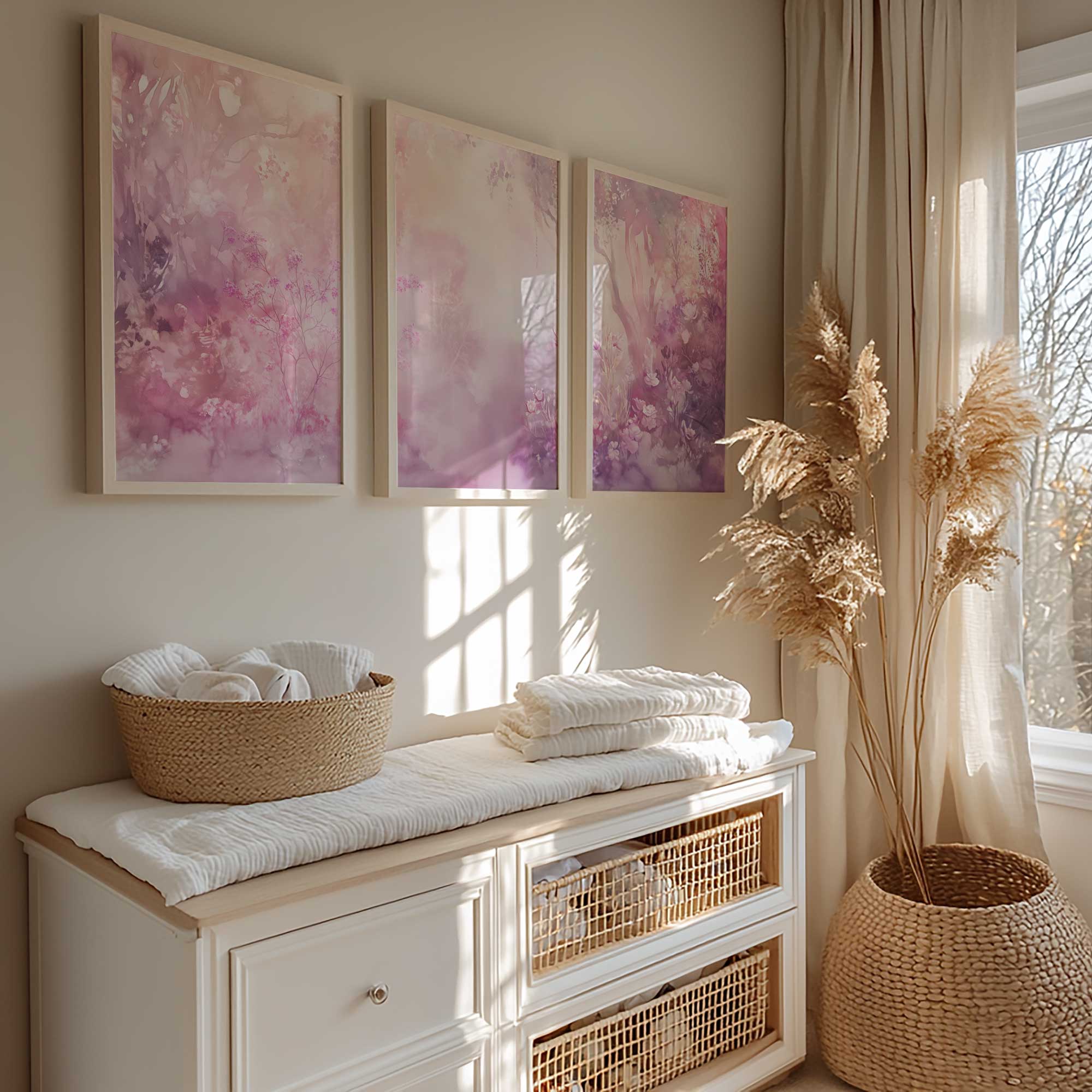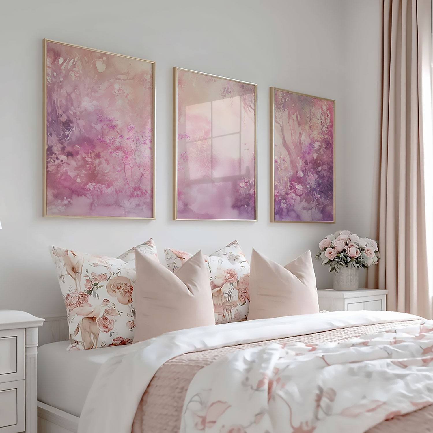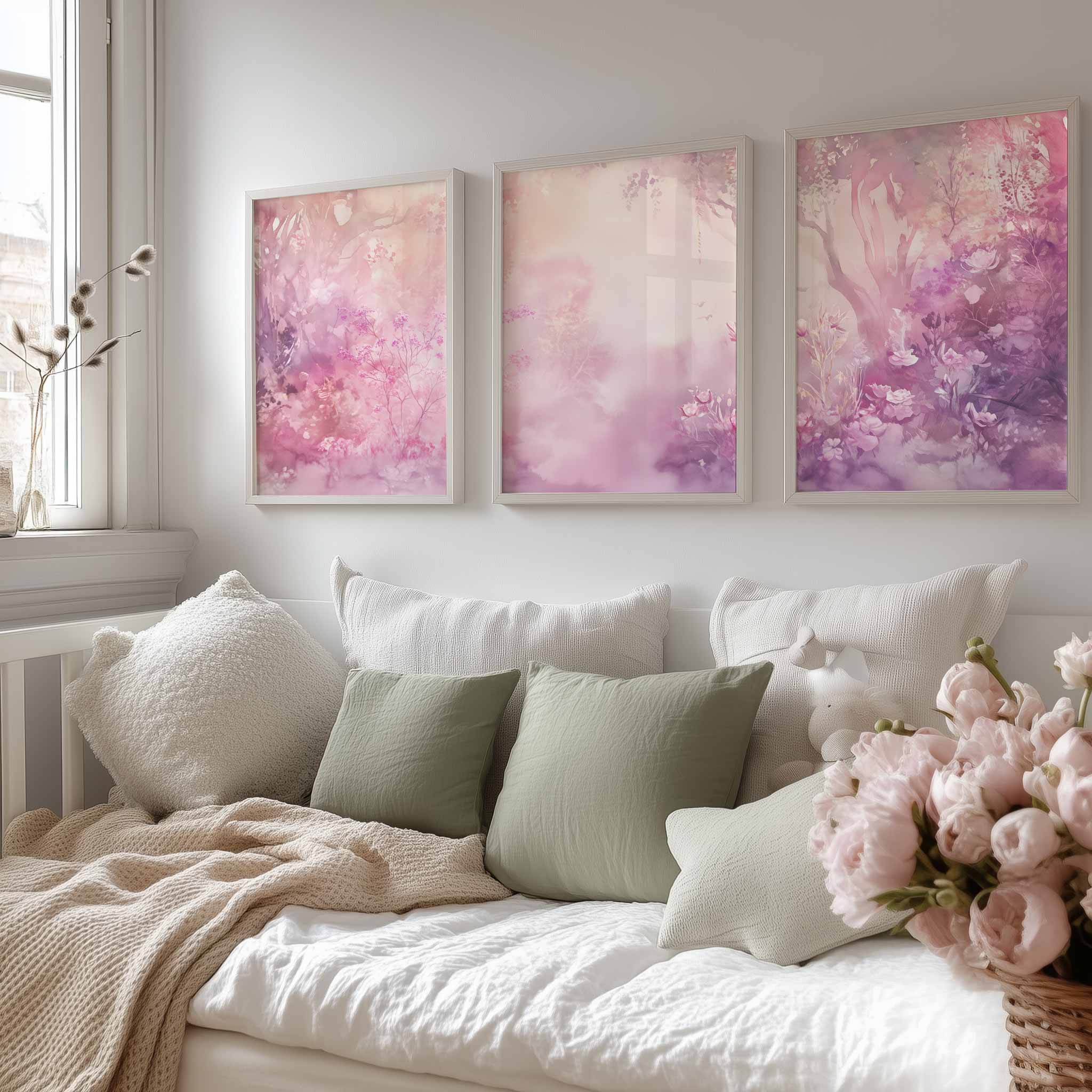 Dromerig Watercolor: Roze en Paarse Bloemenpracht