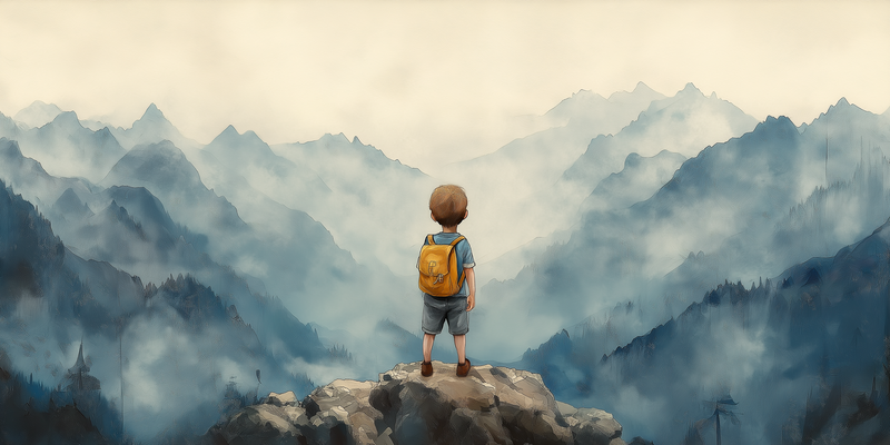 Dromerige Bergverkenner – Avontuurlijke Illustratie voor Jongens