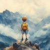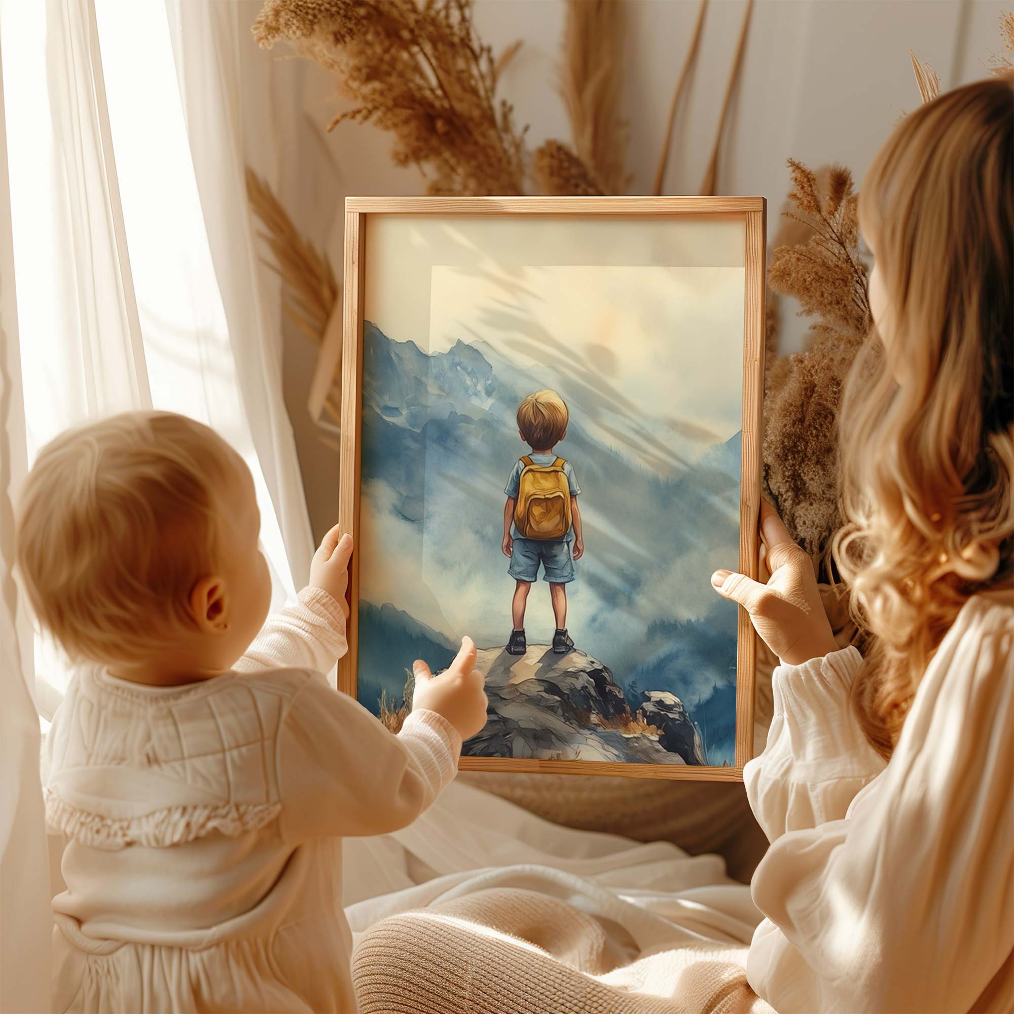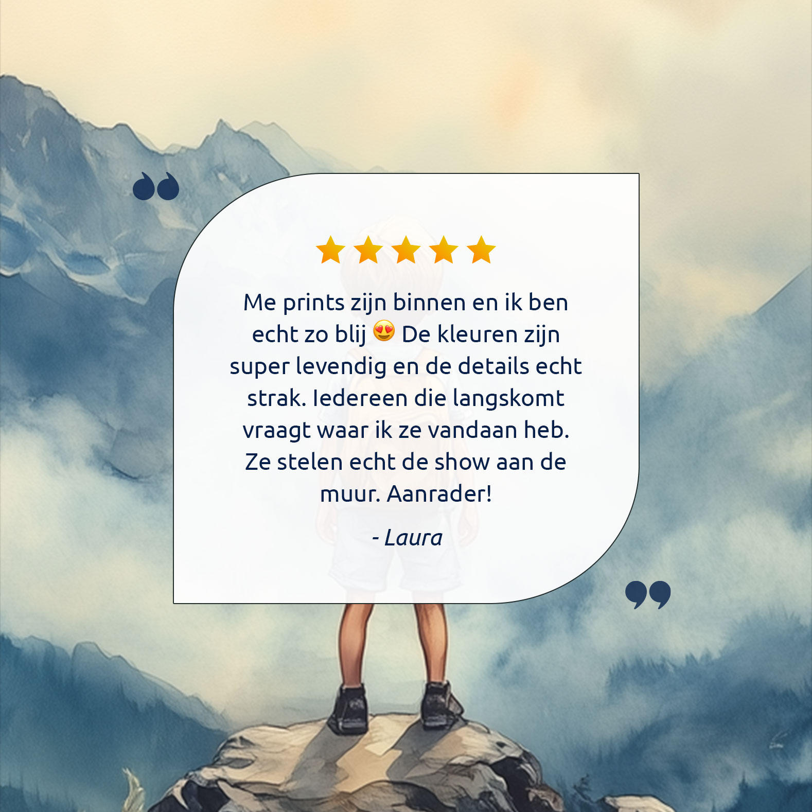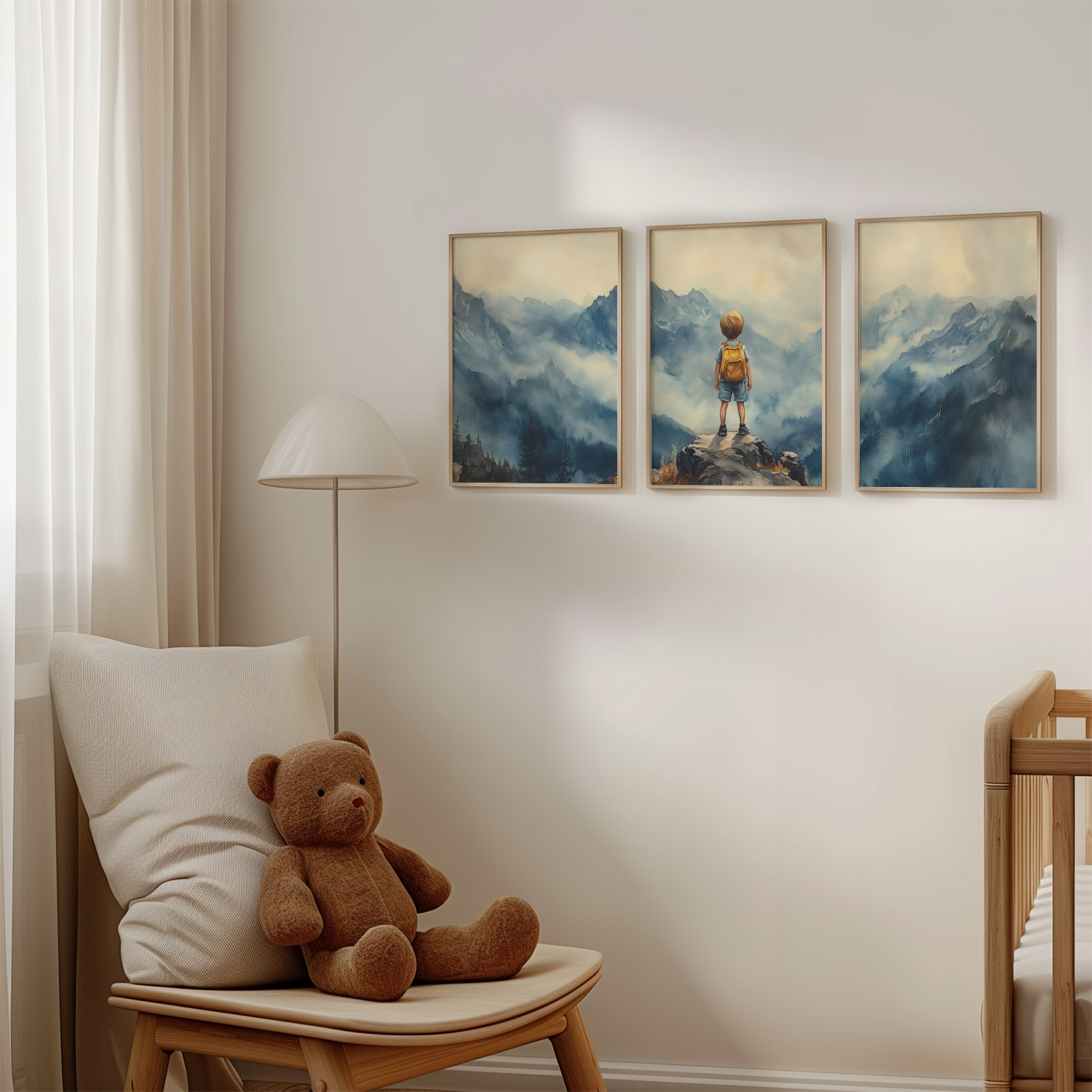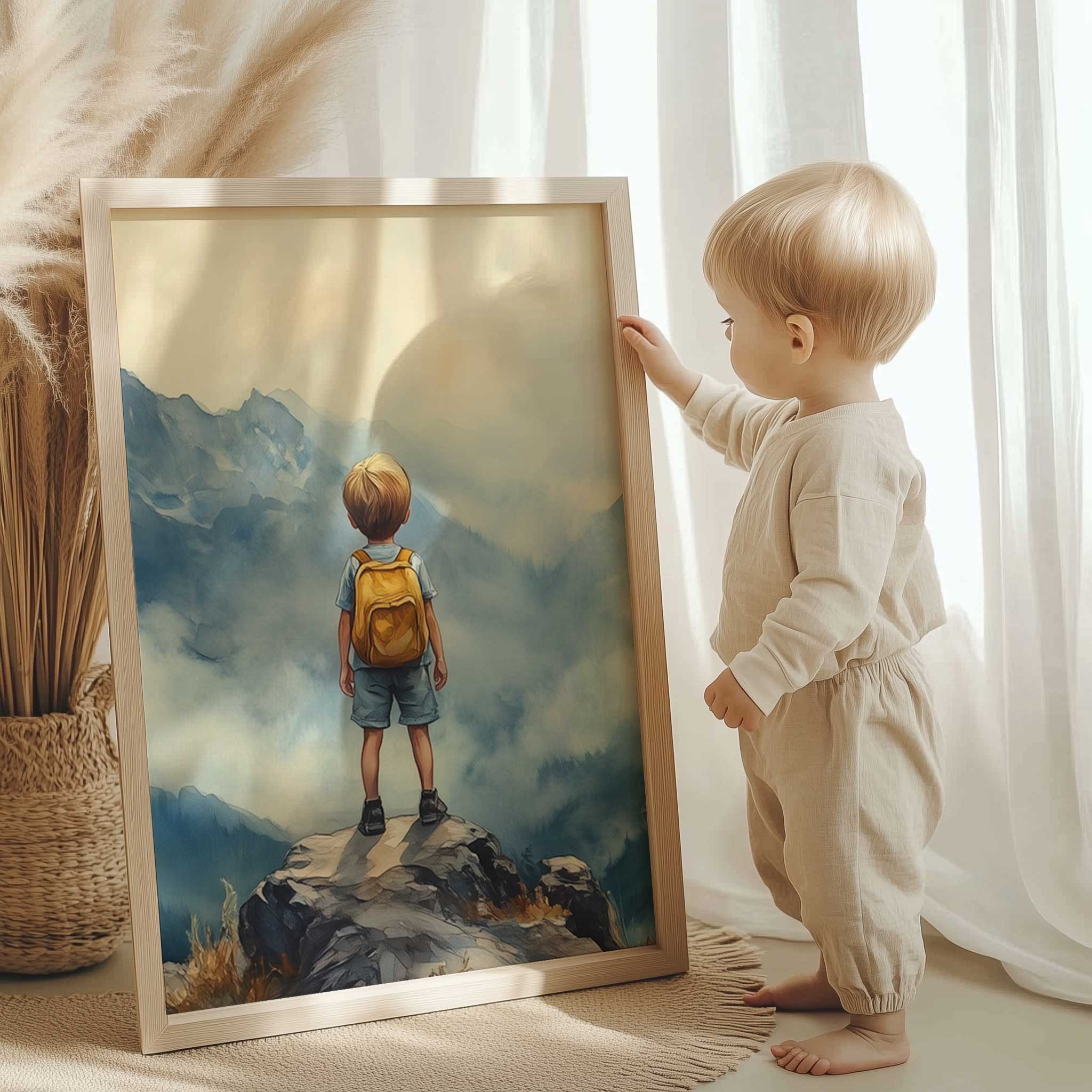 Dromerige Bergverkenner – Blauw-Wit Pastel Schilderij
