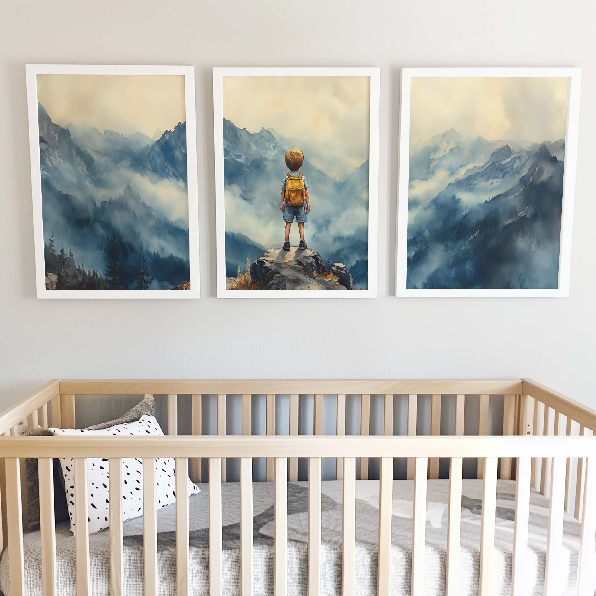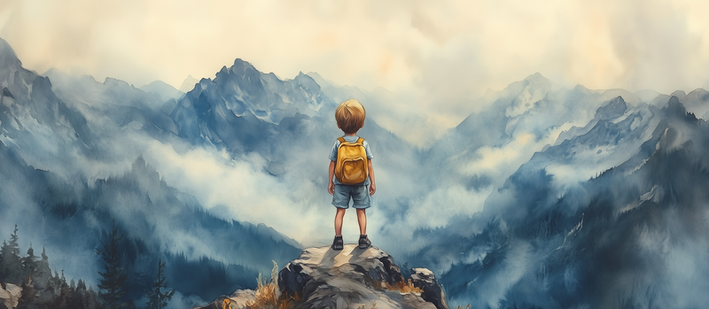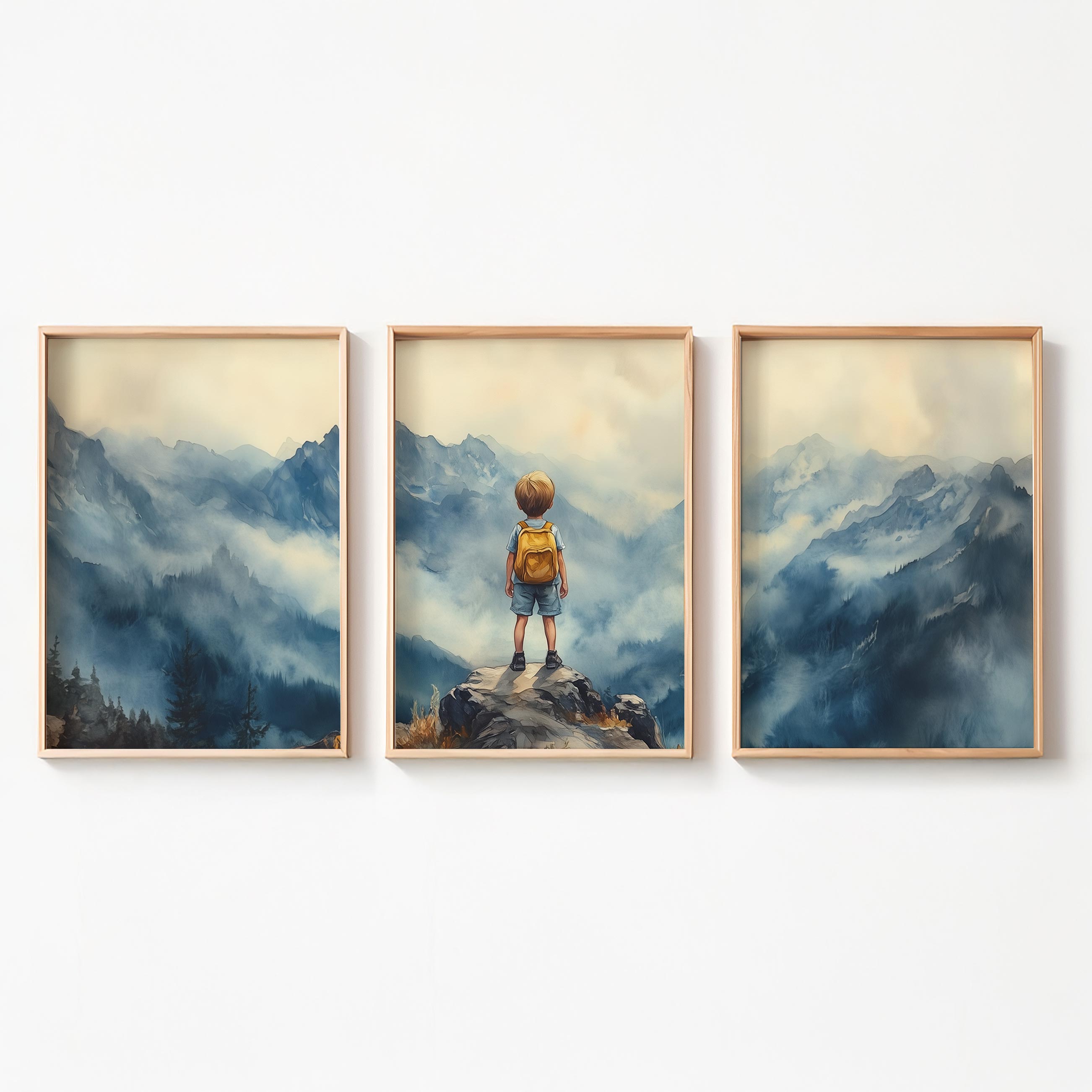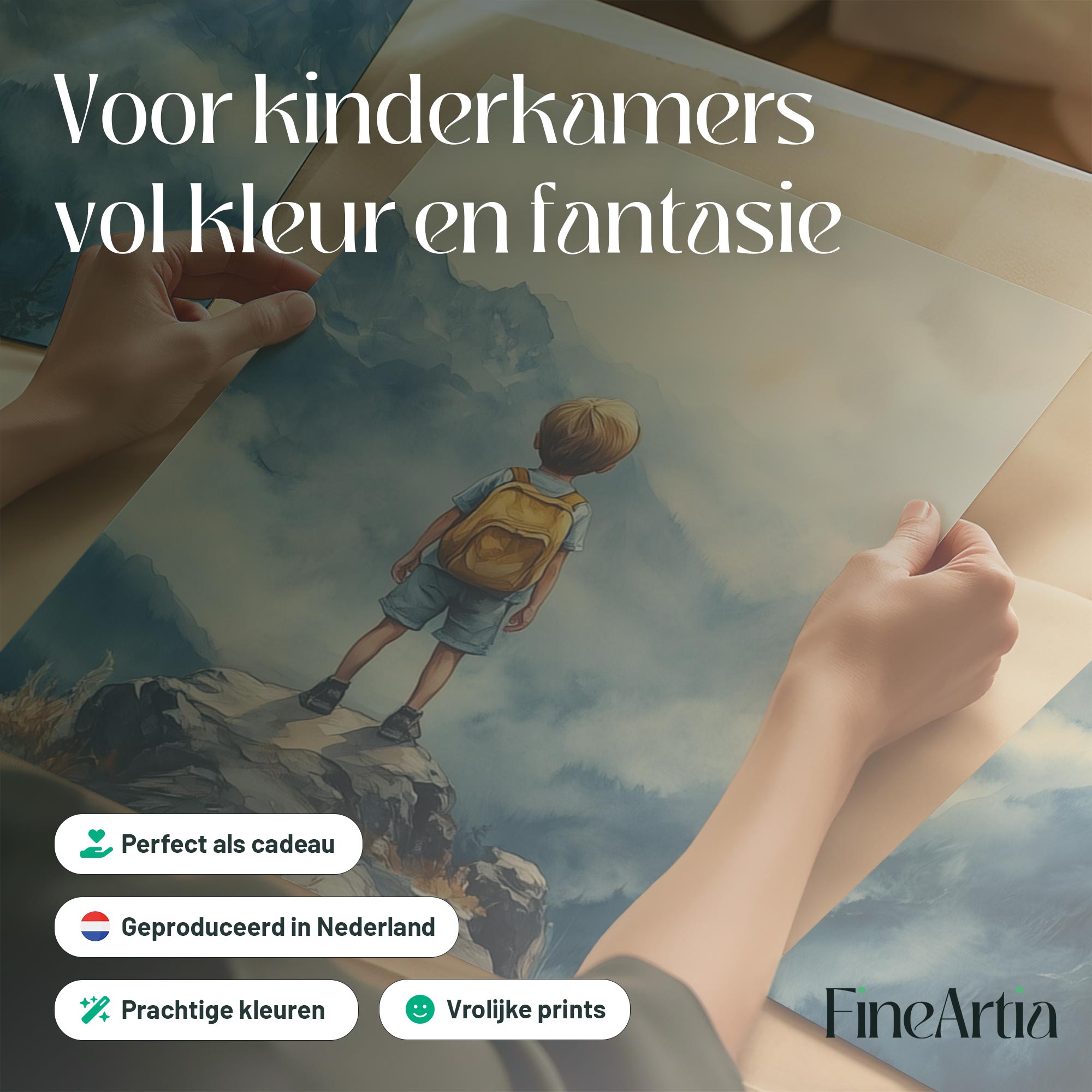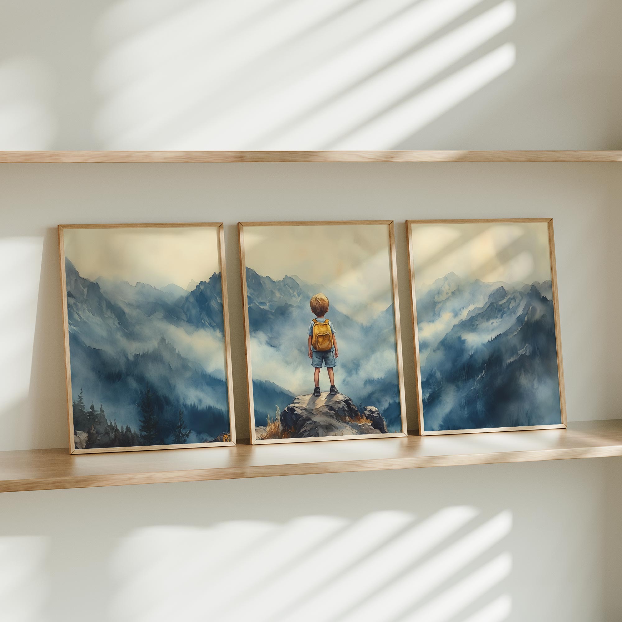 Dromerige Bergverkenner – Blauw-Wit Pastel Schilderij
