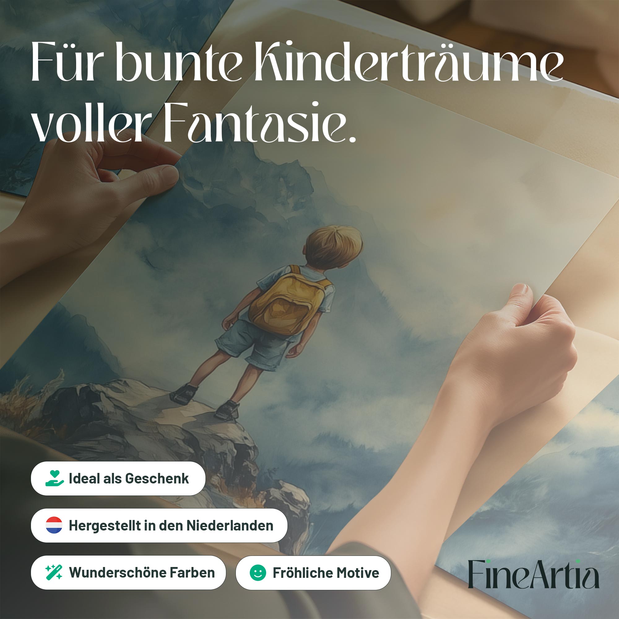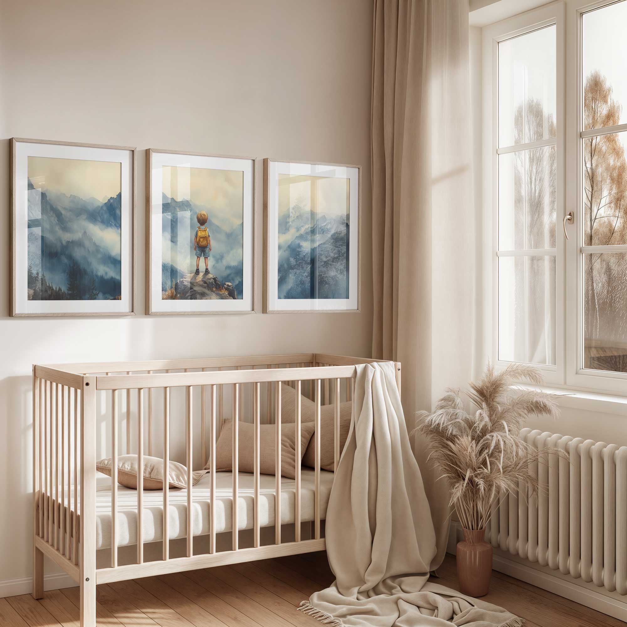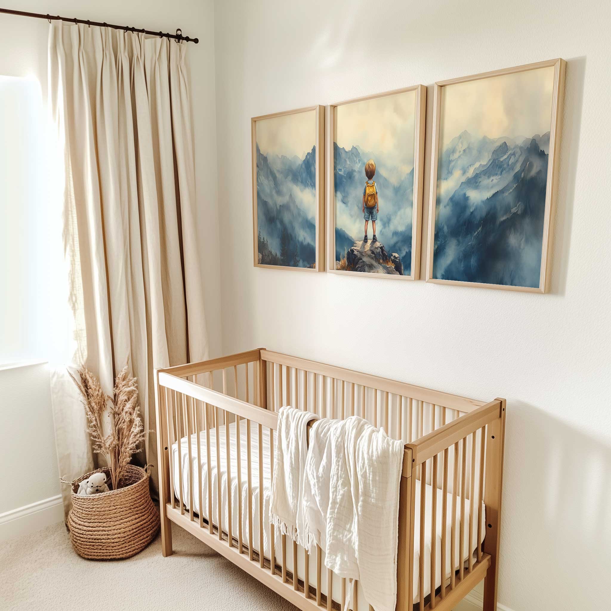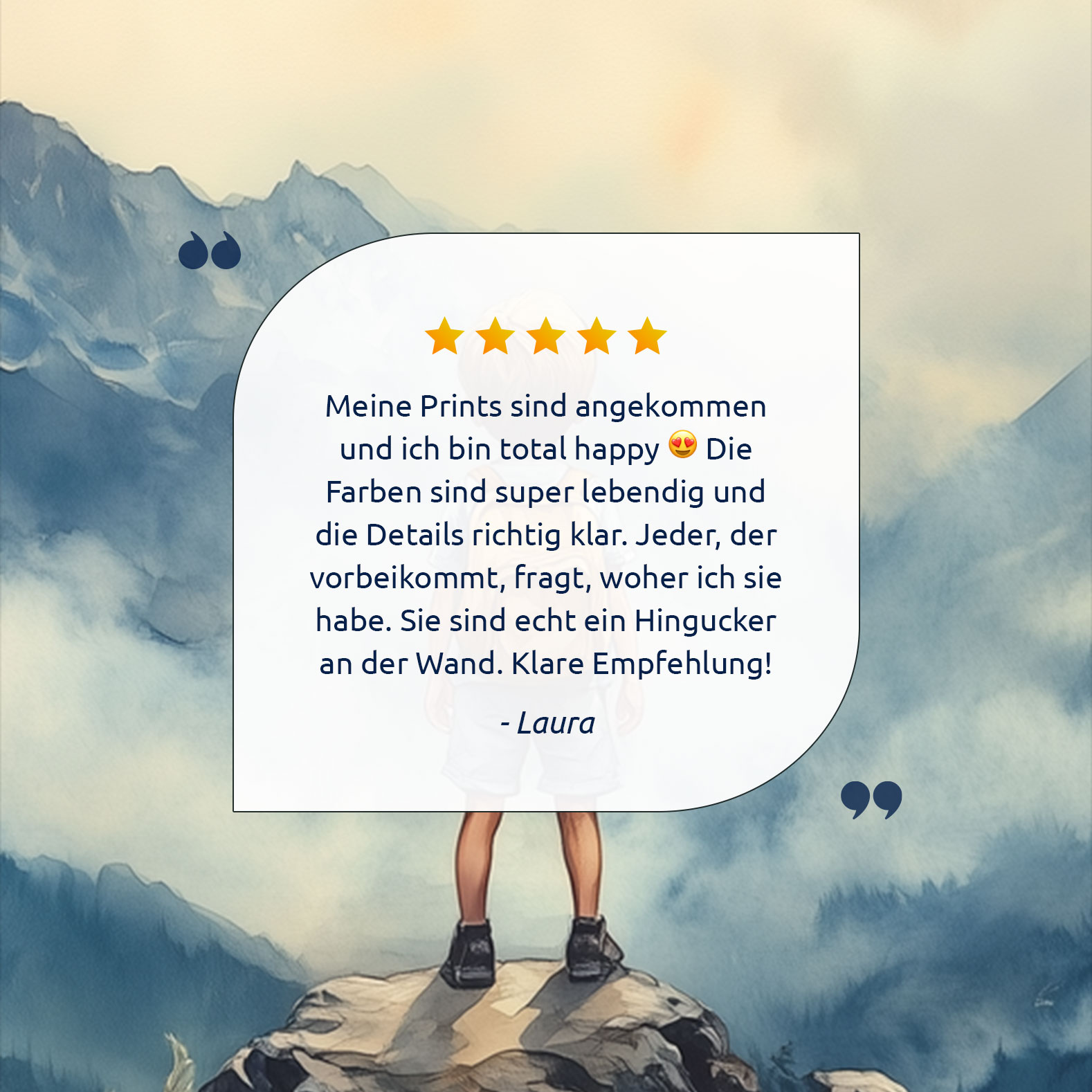 Dromerige Bergverkenner – Blauw-Wit Pastel Schilderij