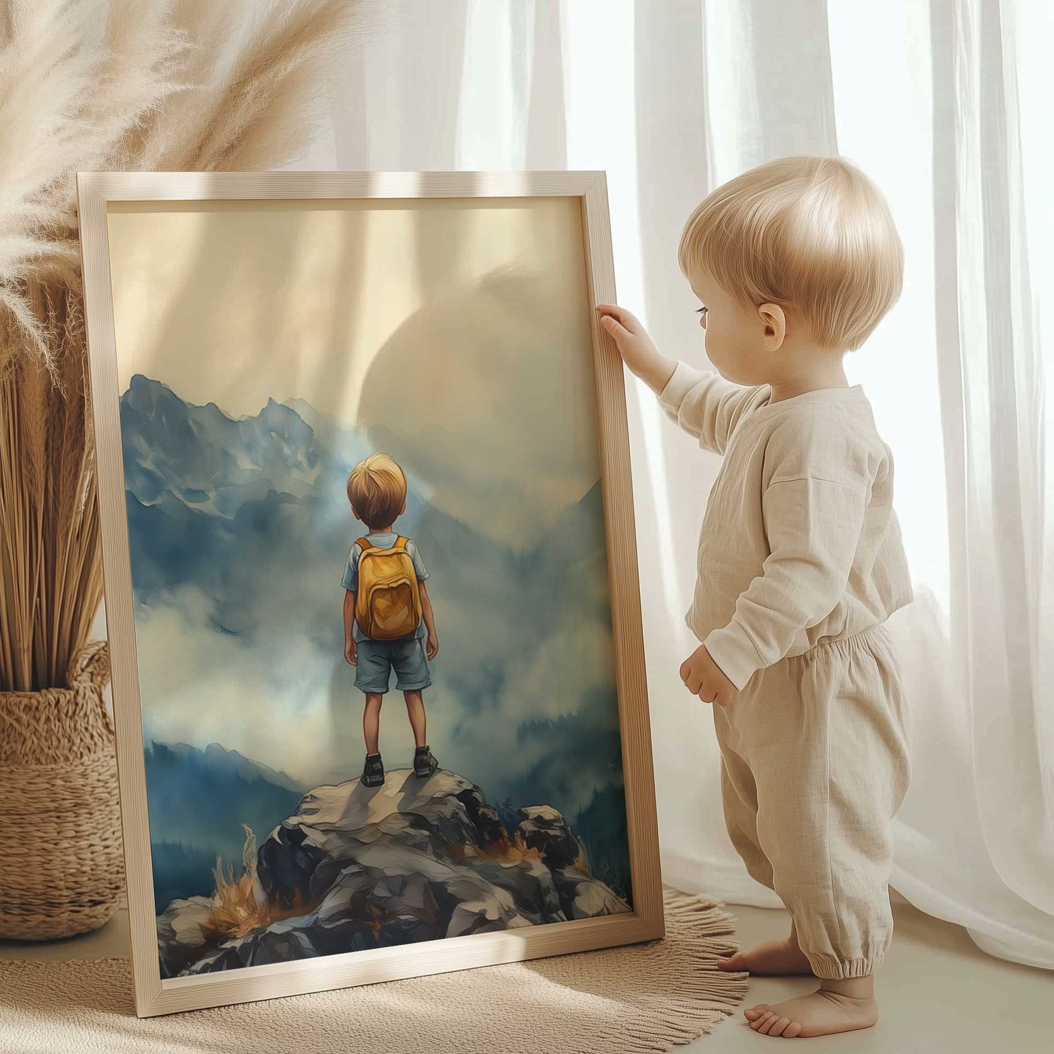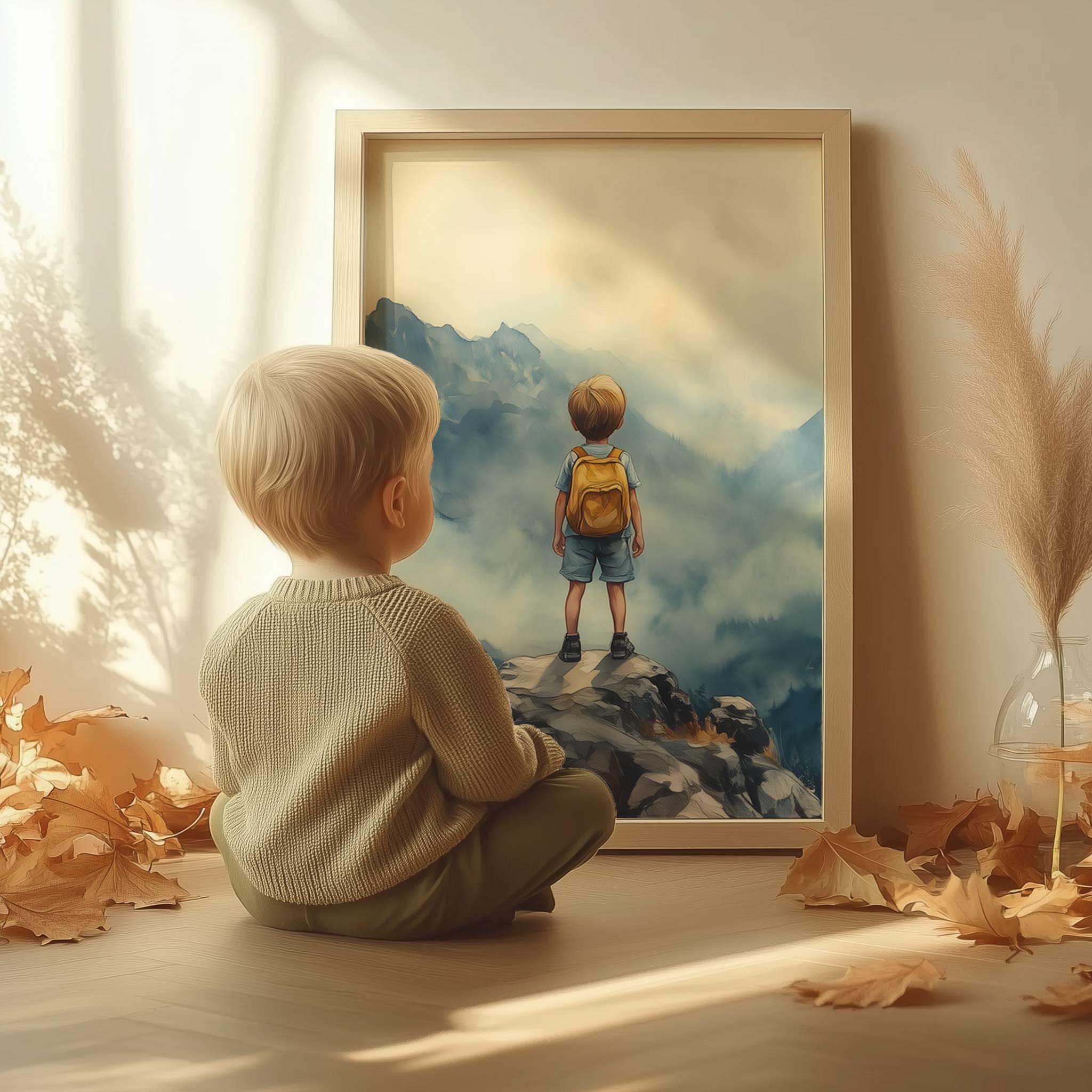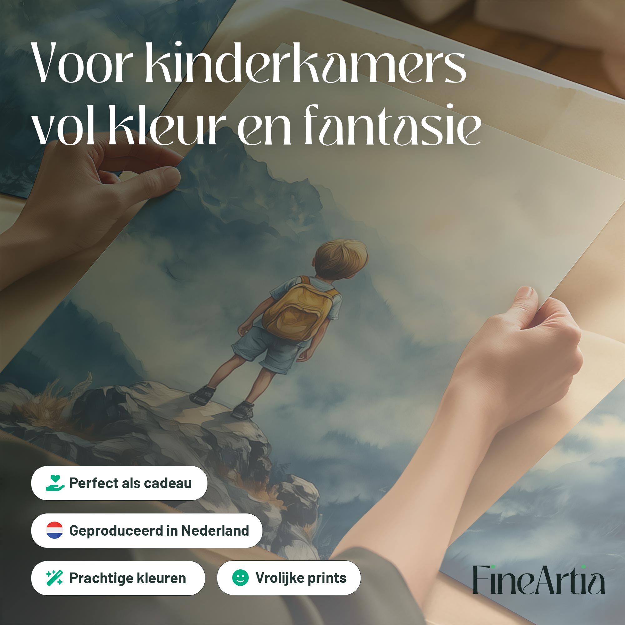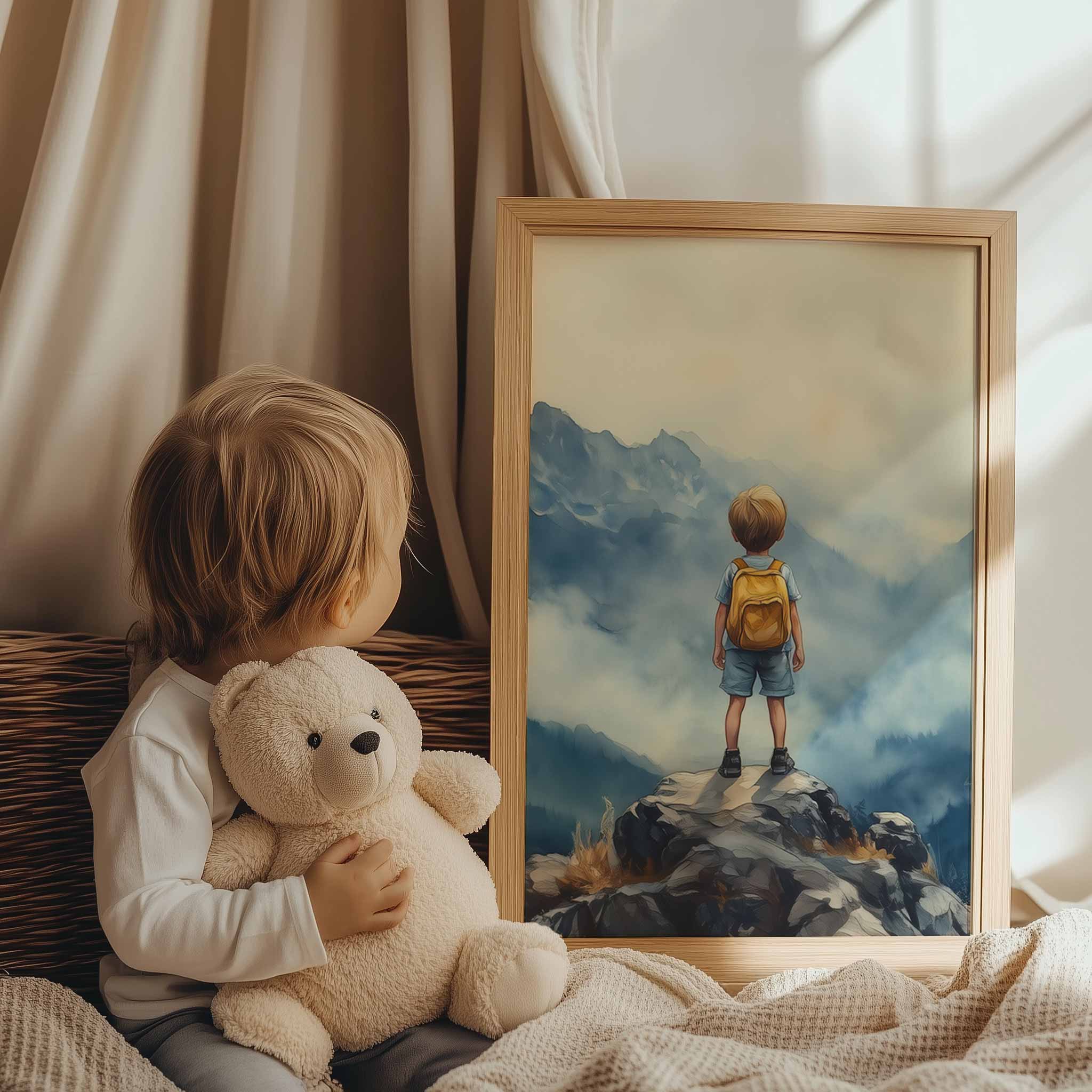 Terug naar collectie Posters Dromerige Bergverkenner – Pastel Landschap voor Jonge Avonturiers