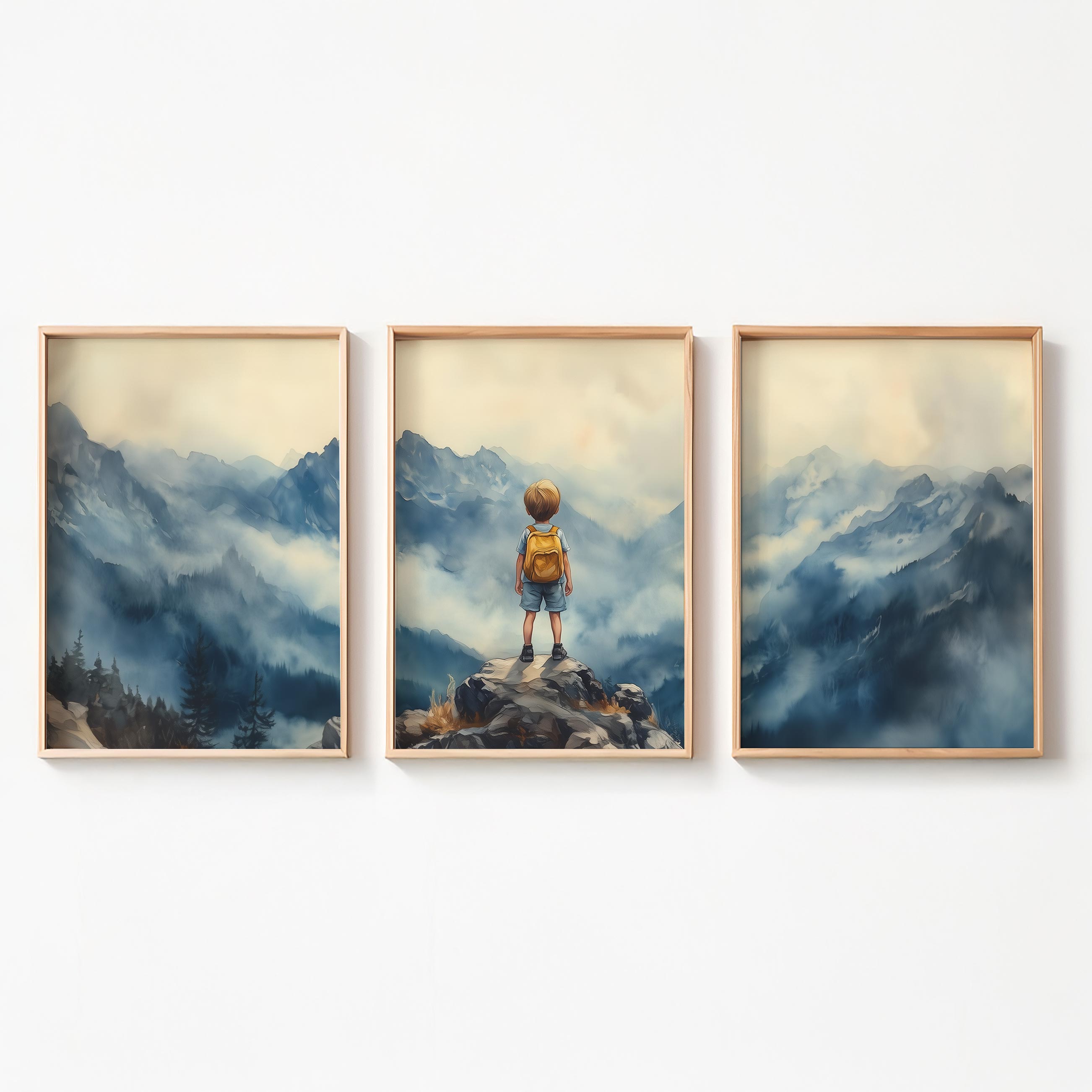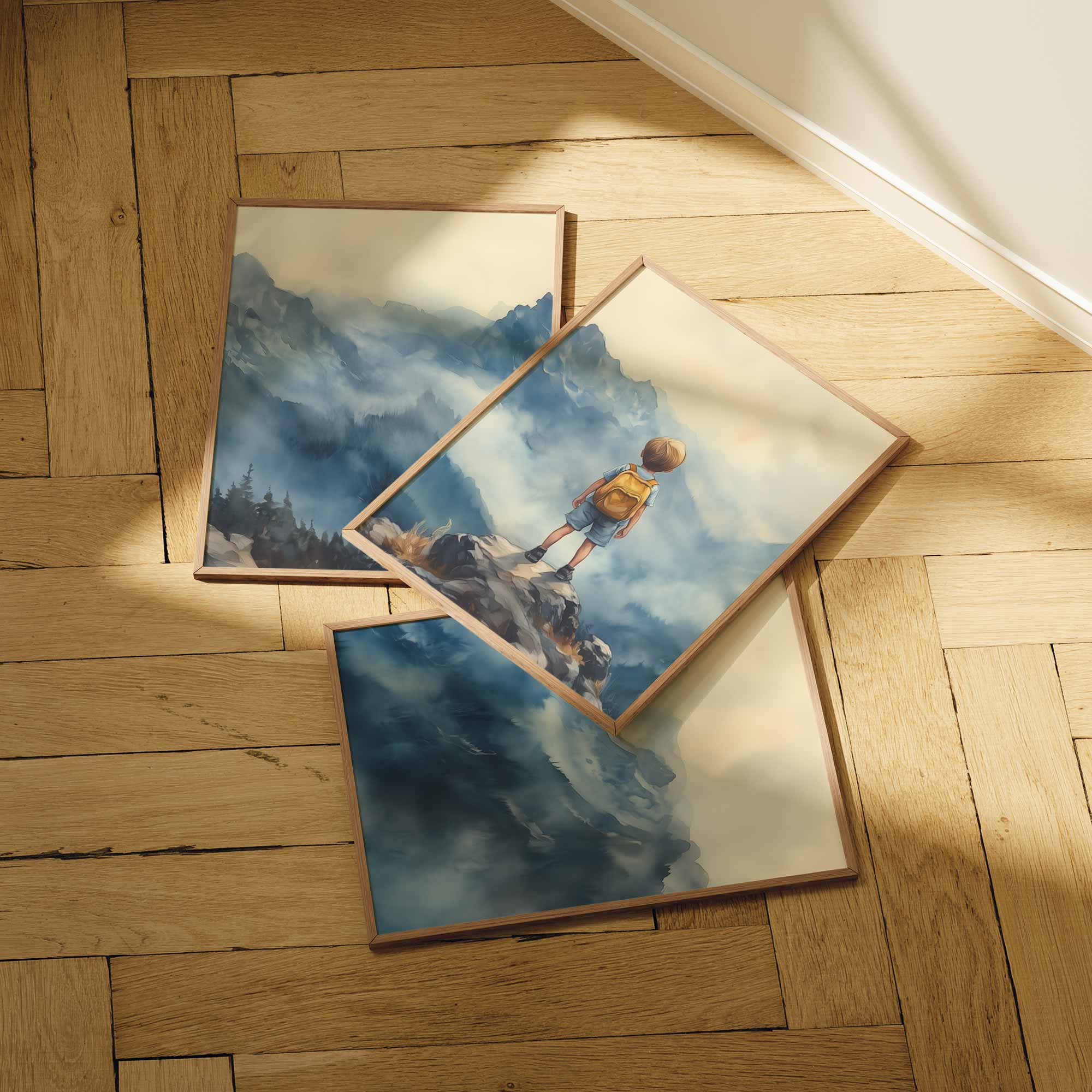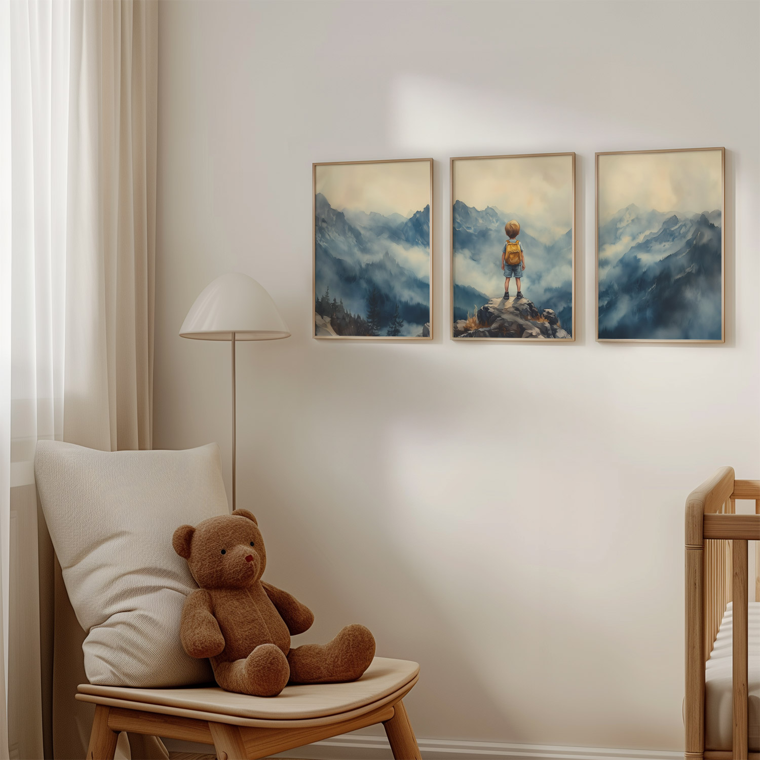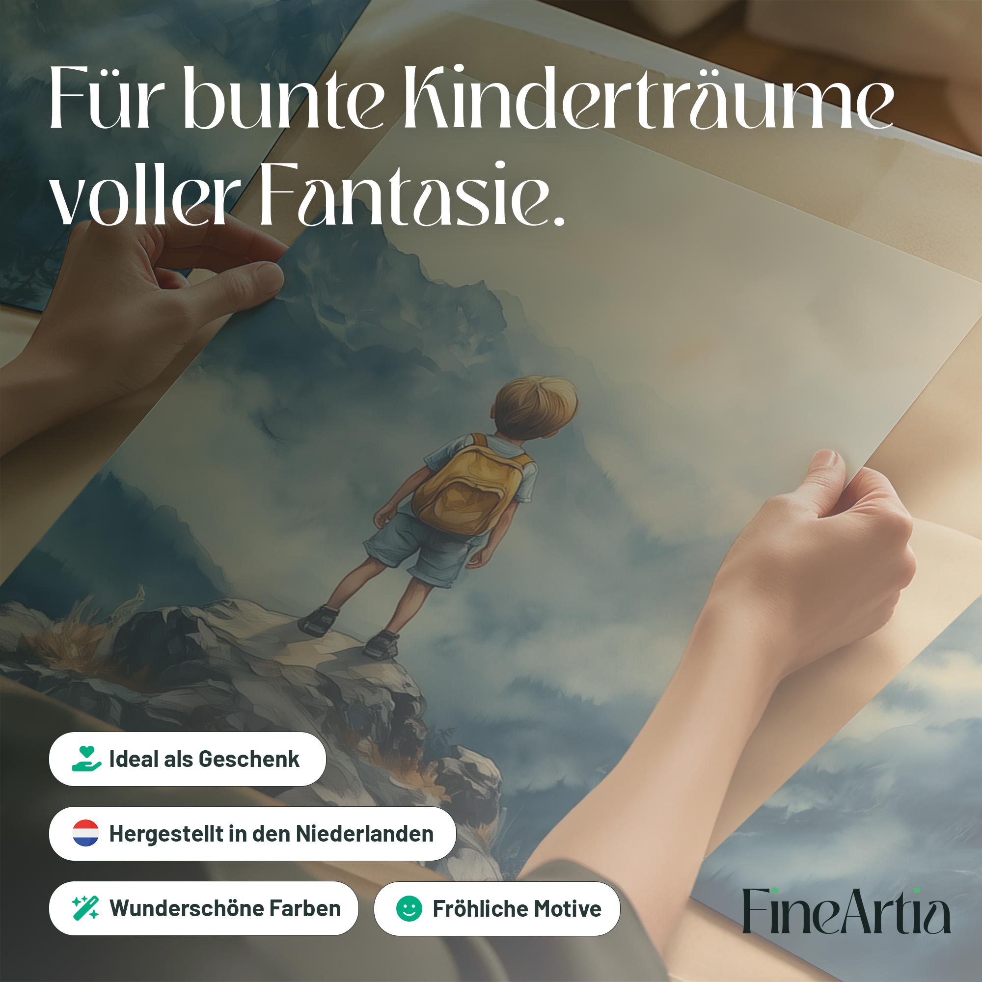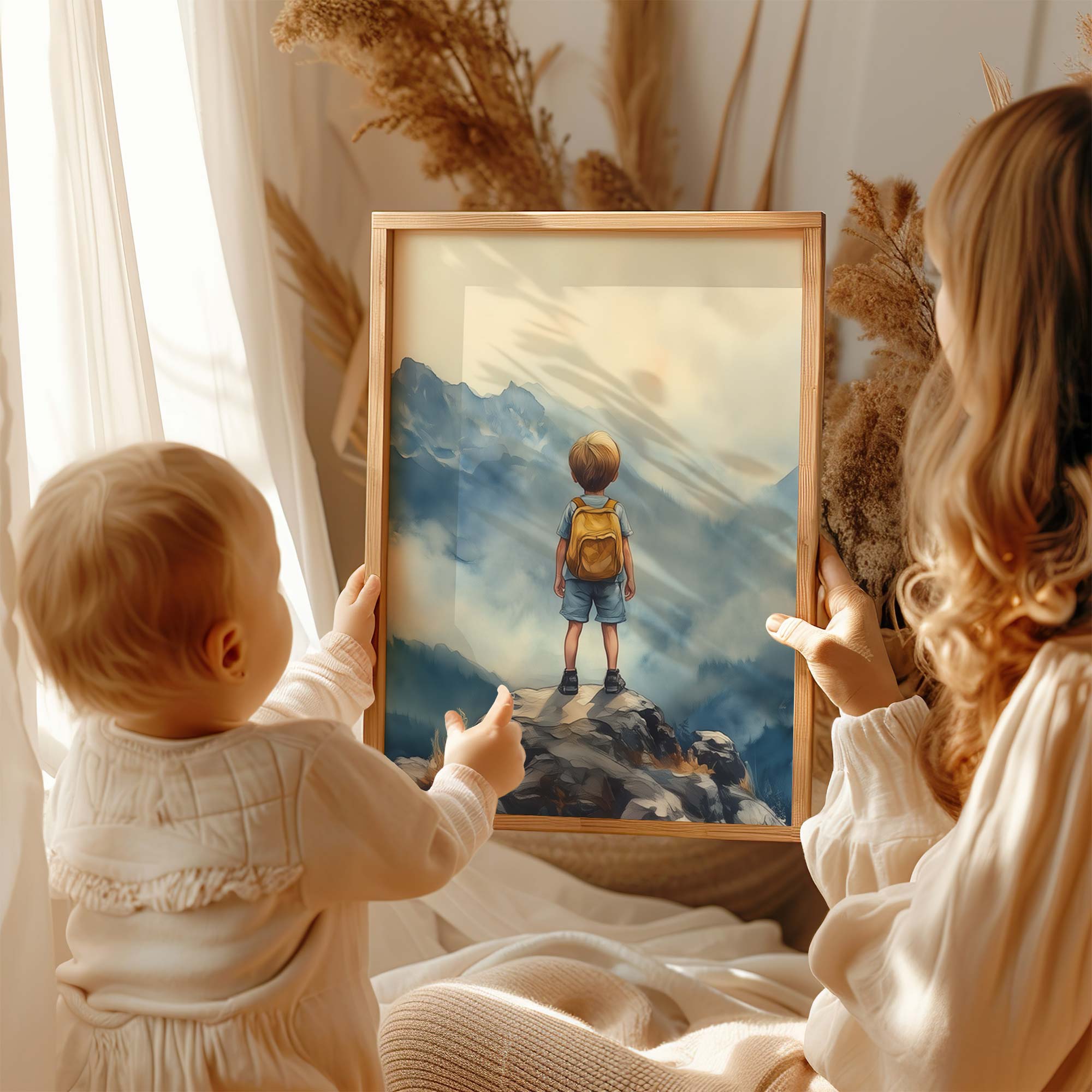 Terug naar collectie Posters Dromerige Bergverkenner – Pastel Landschap voor Jonge Avonturiers