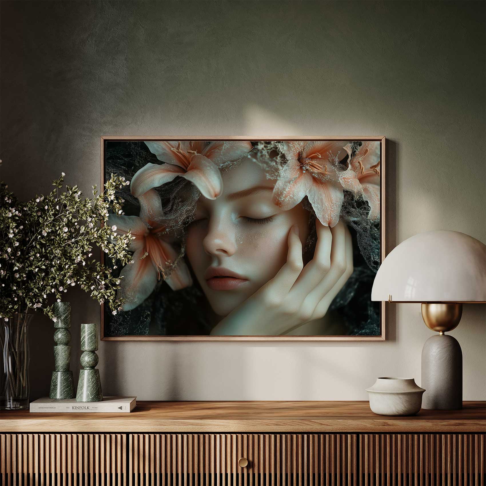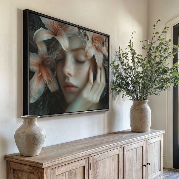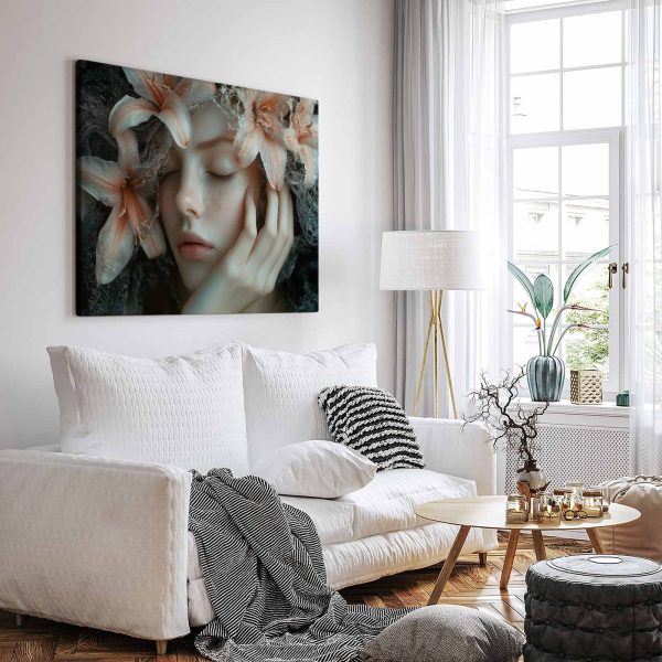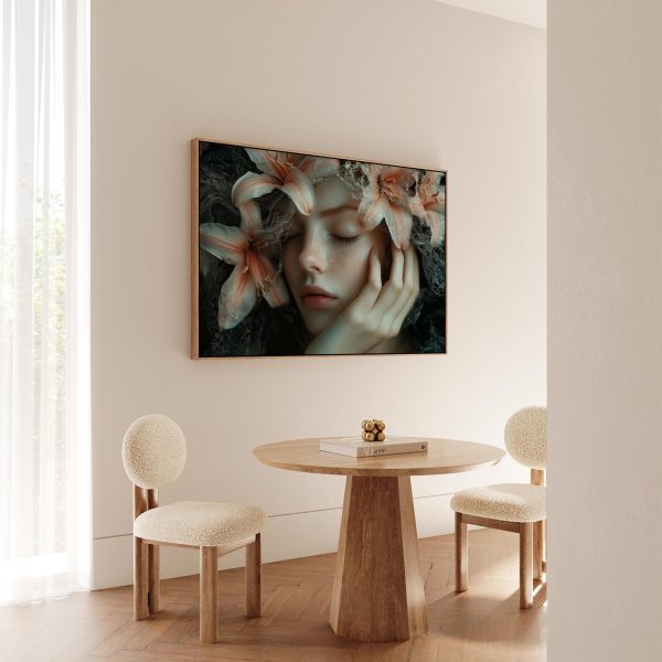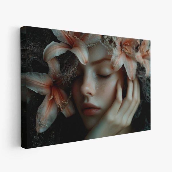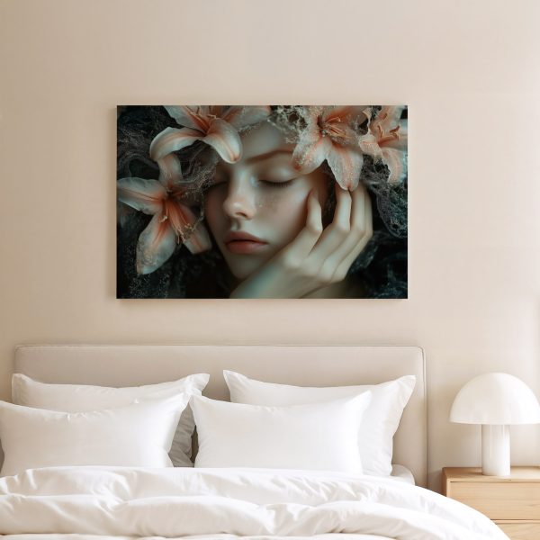 Dromerige bloemenkroonvrouw