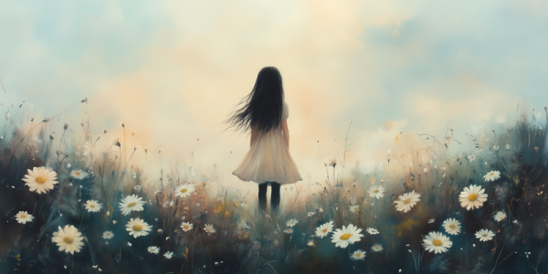 Terug naar collectie Posters Dromerige Dame in een Bloemenveld