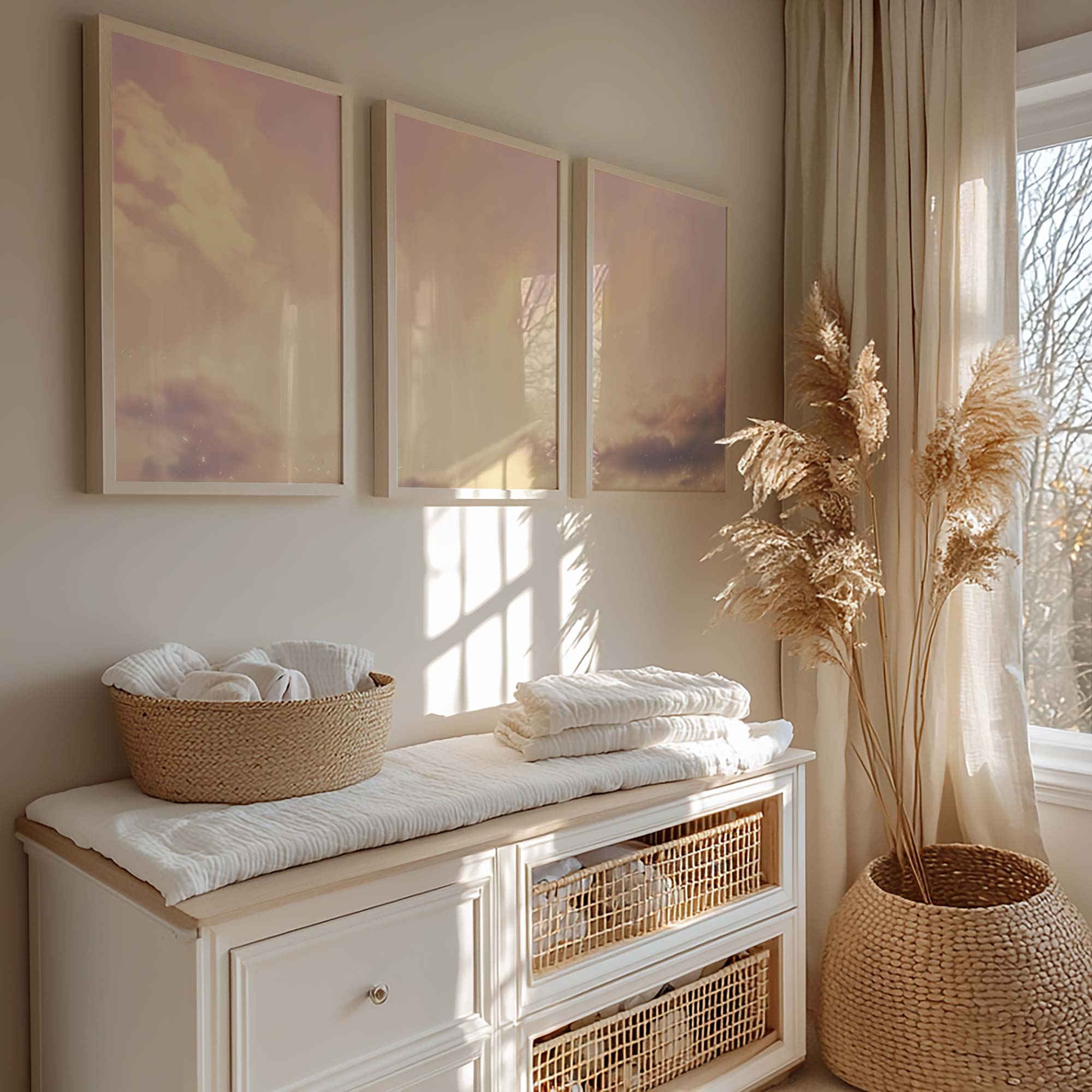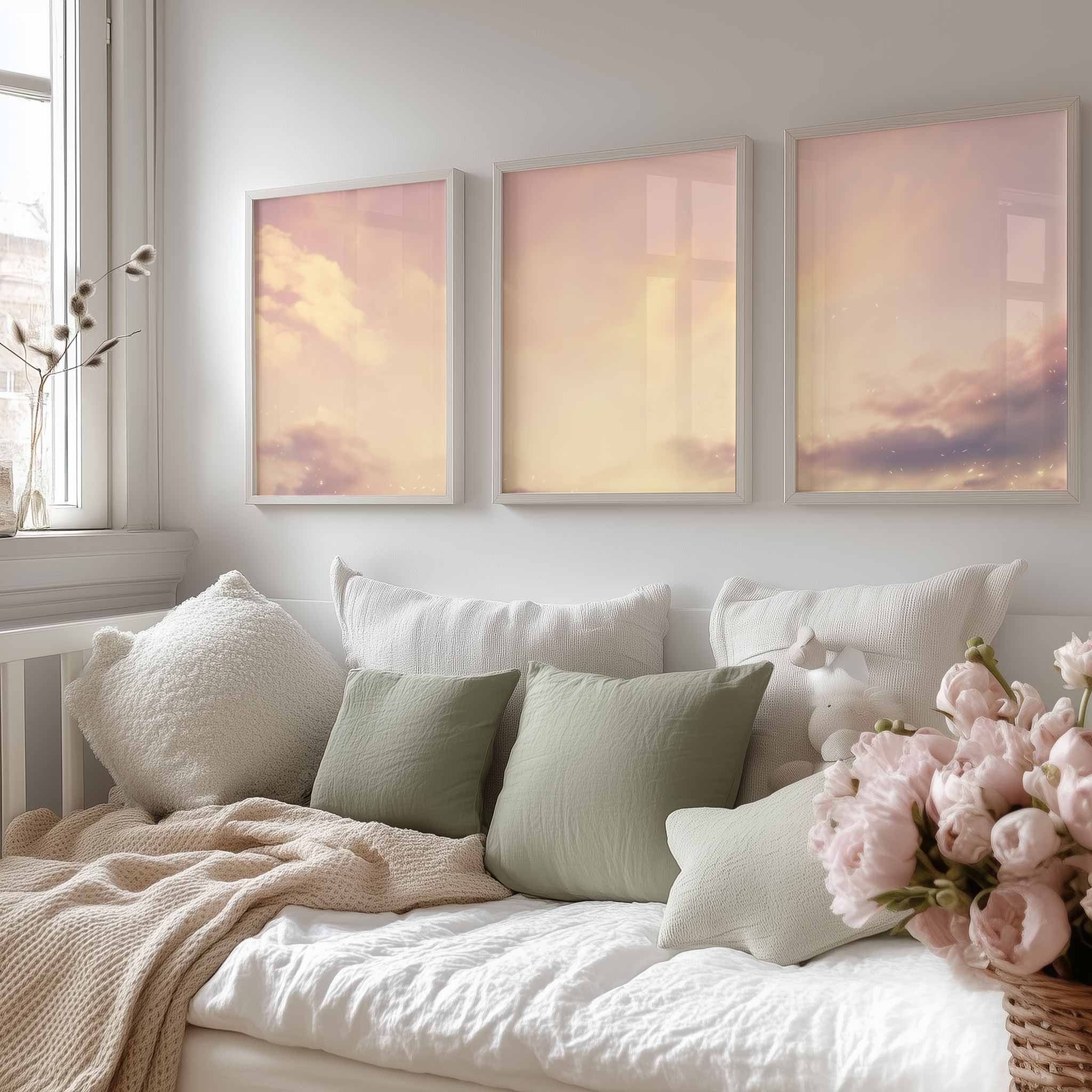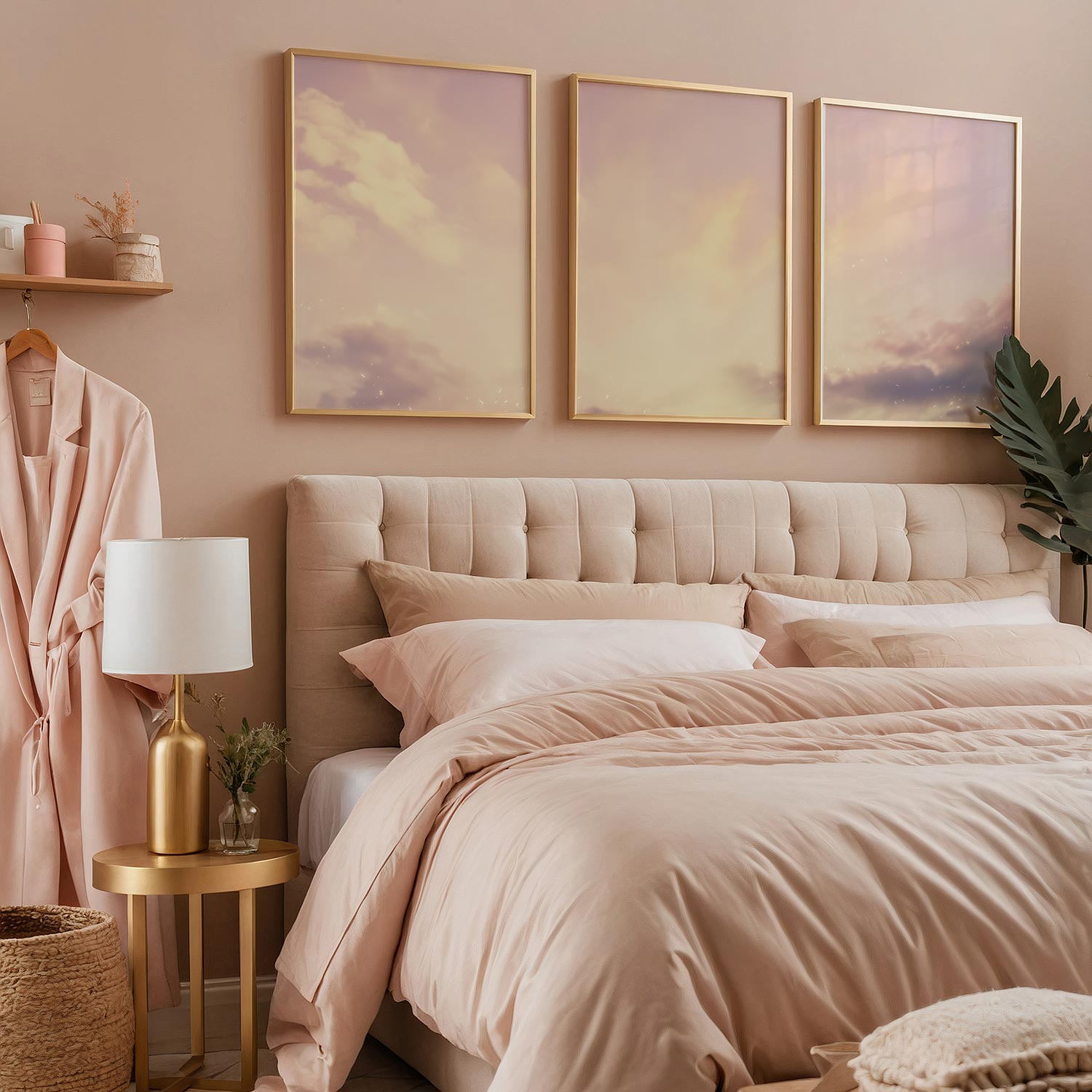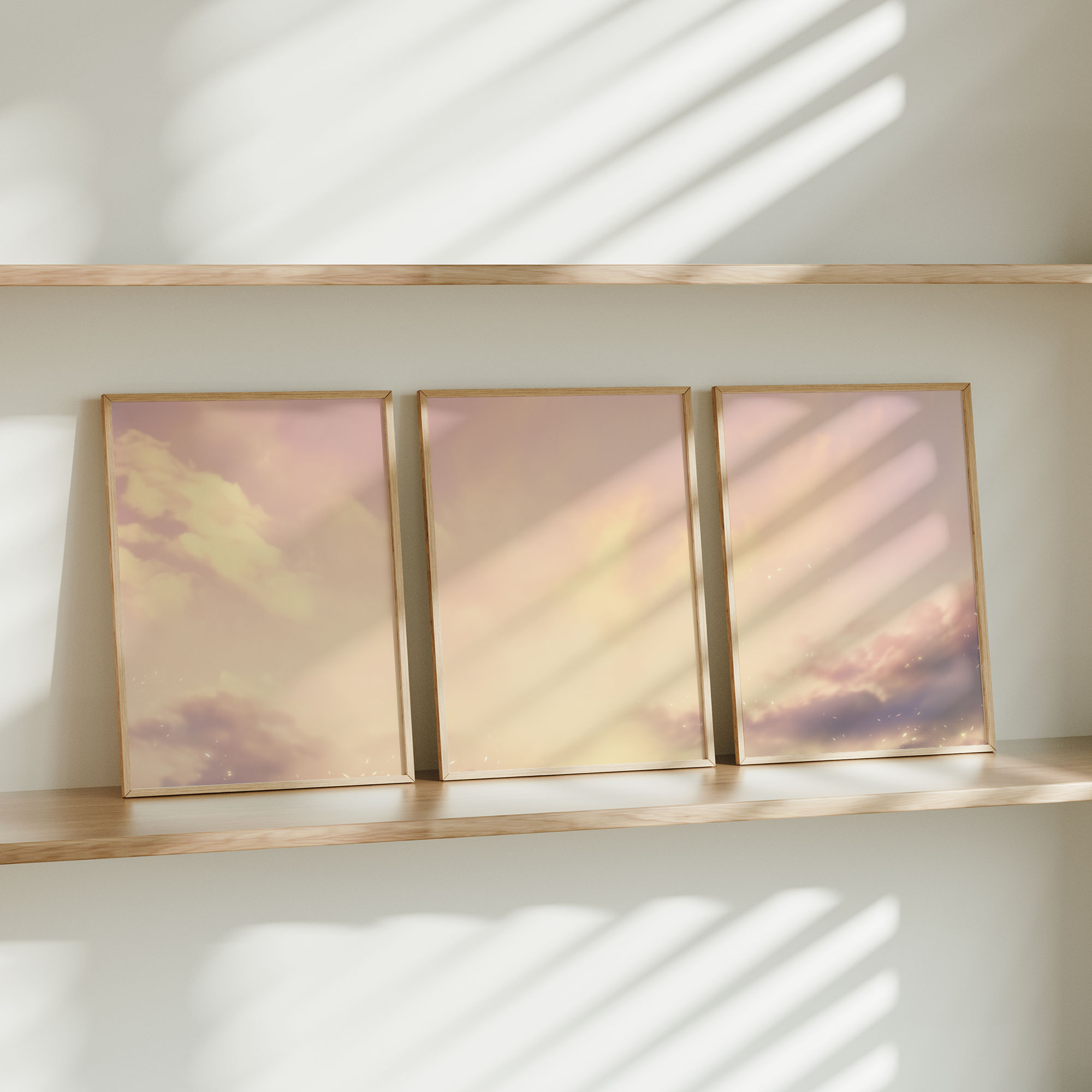 Terug naar collectie Posters Dromerige Hemel met Gouden Sterren – Pastel Wanddecoratie