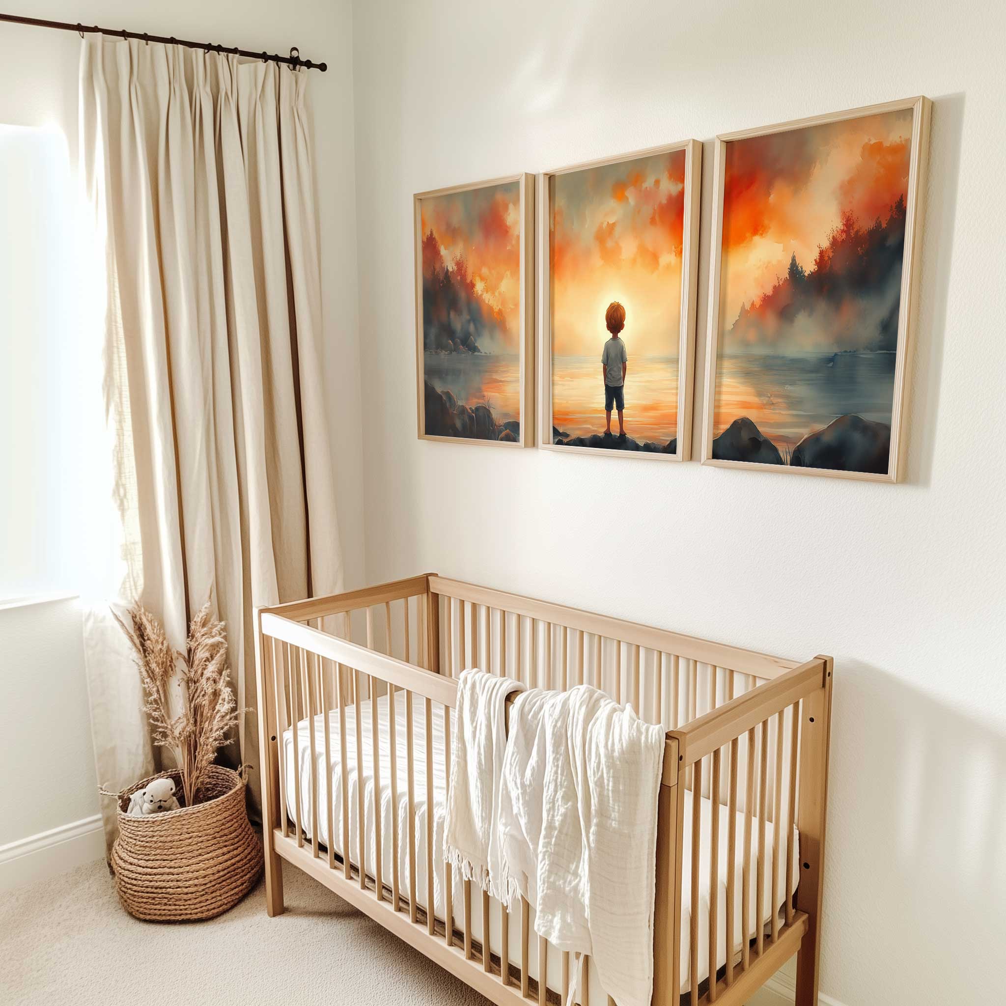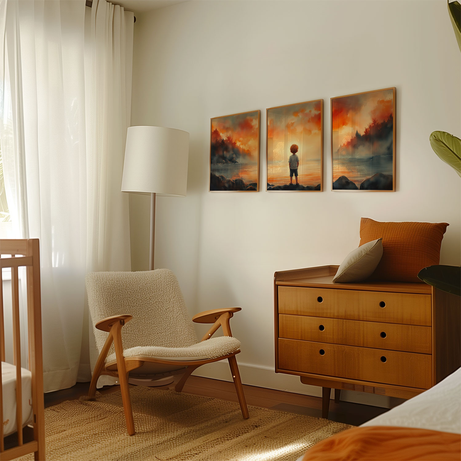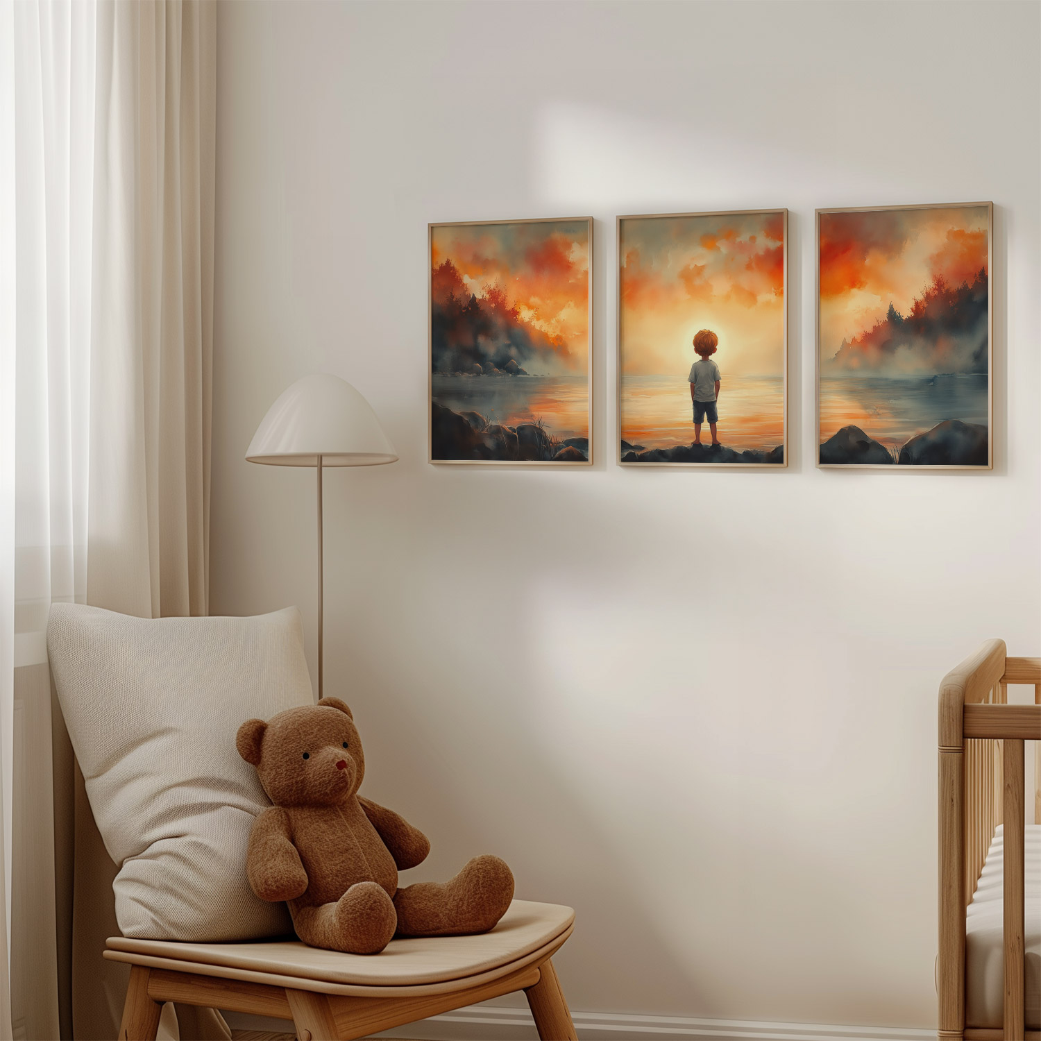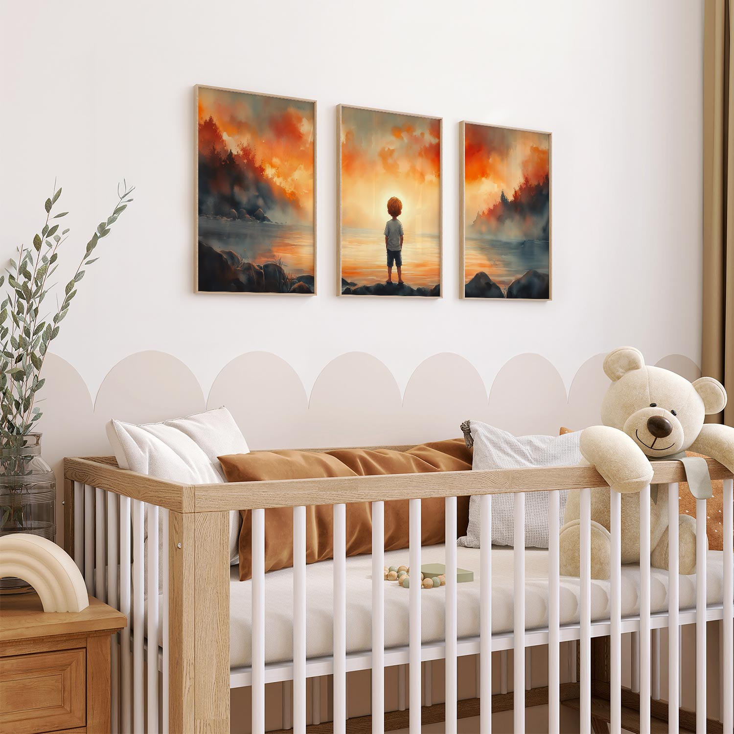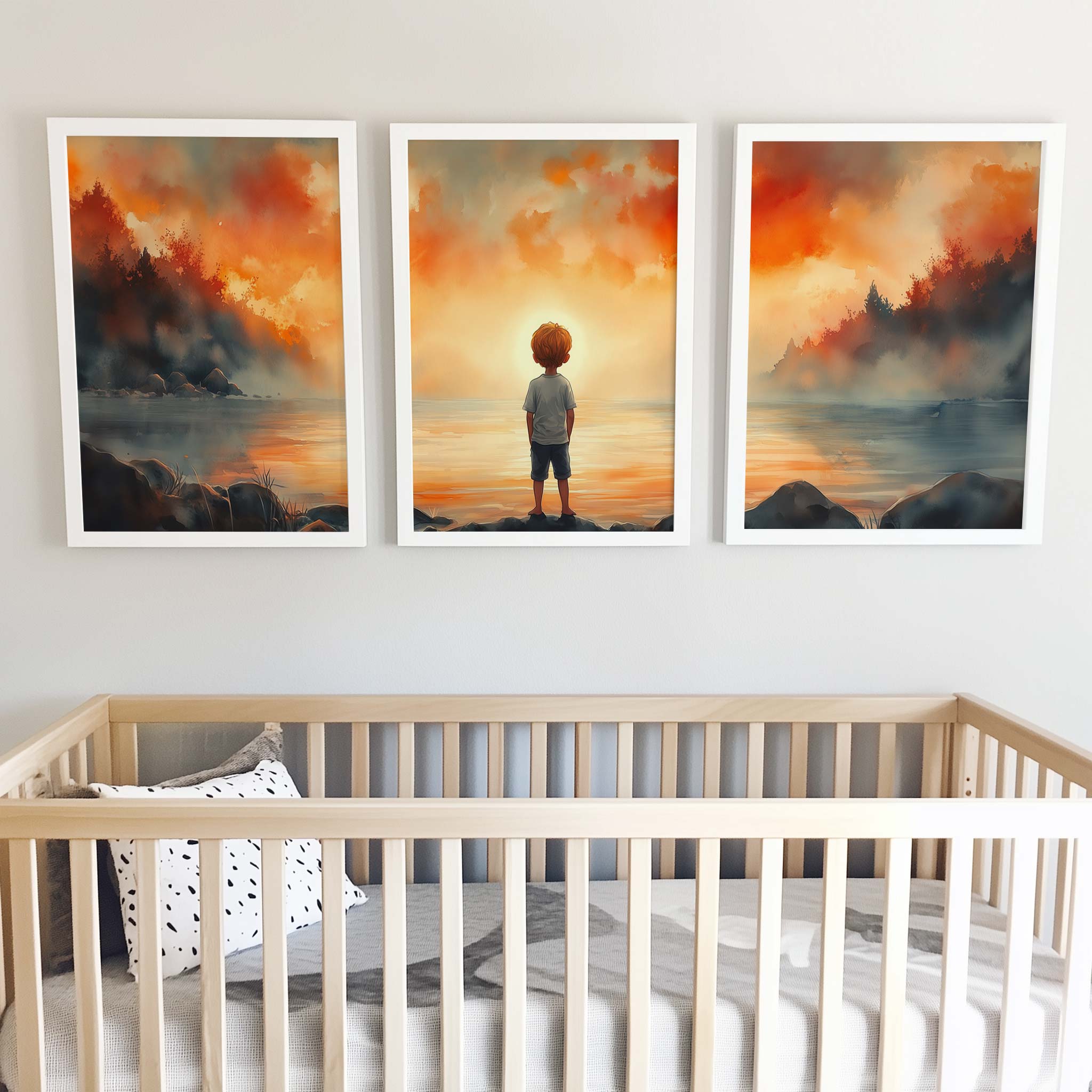 Dromerige jongen bij sprookjesachtig waterlandschap