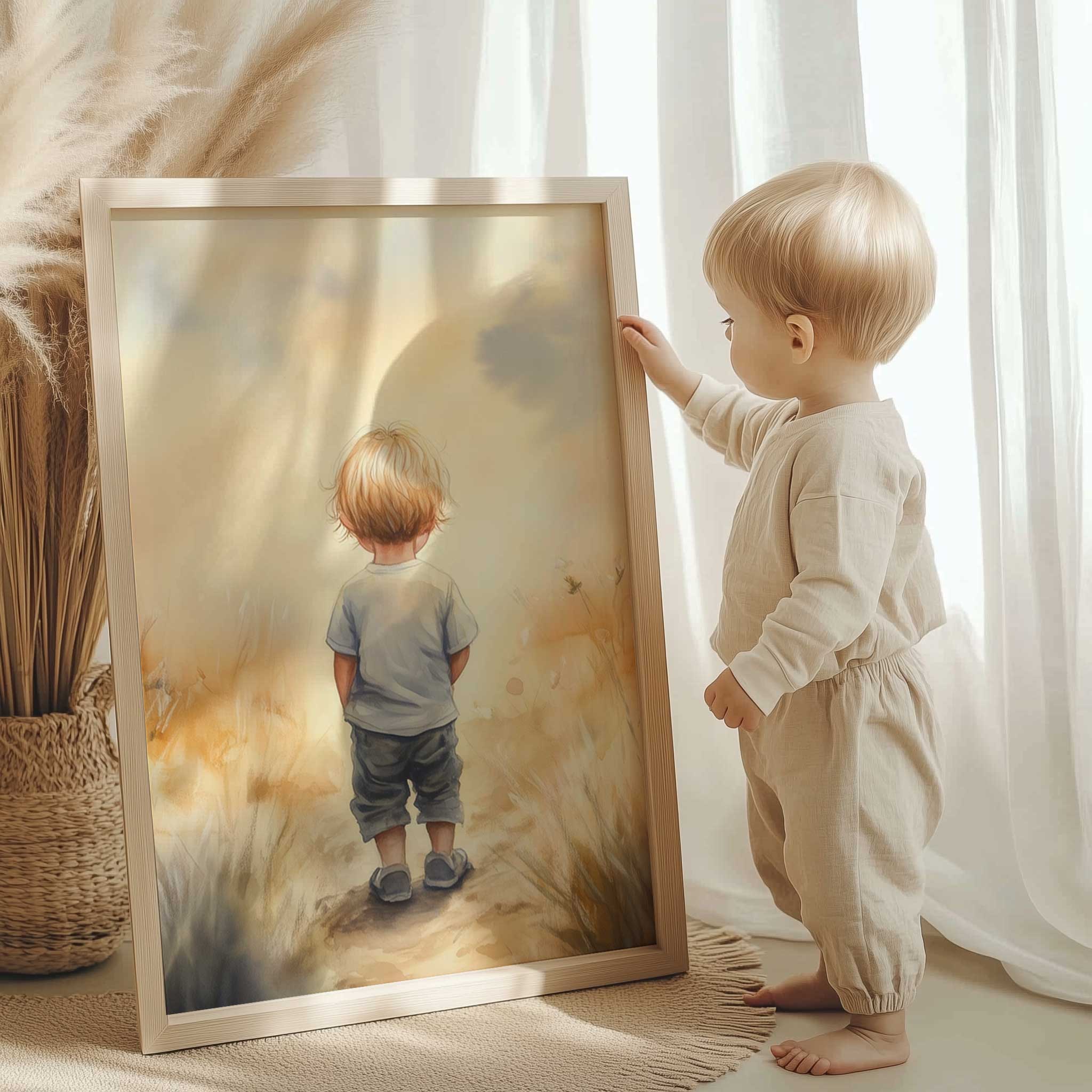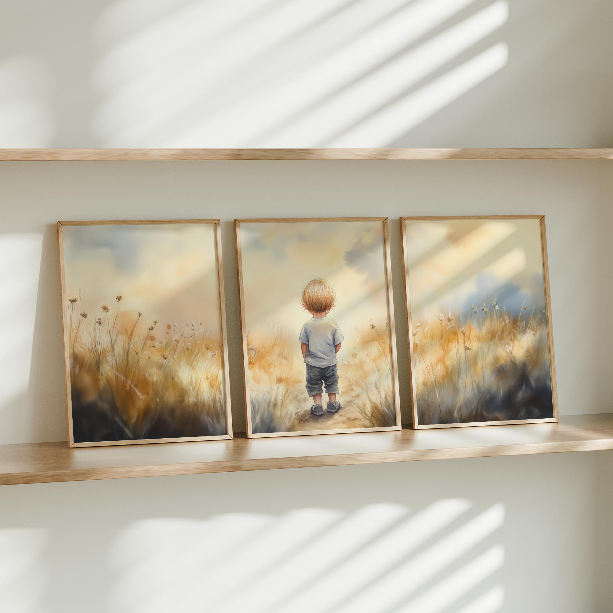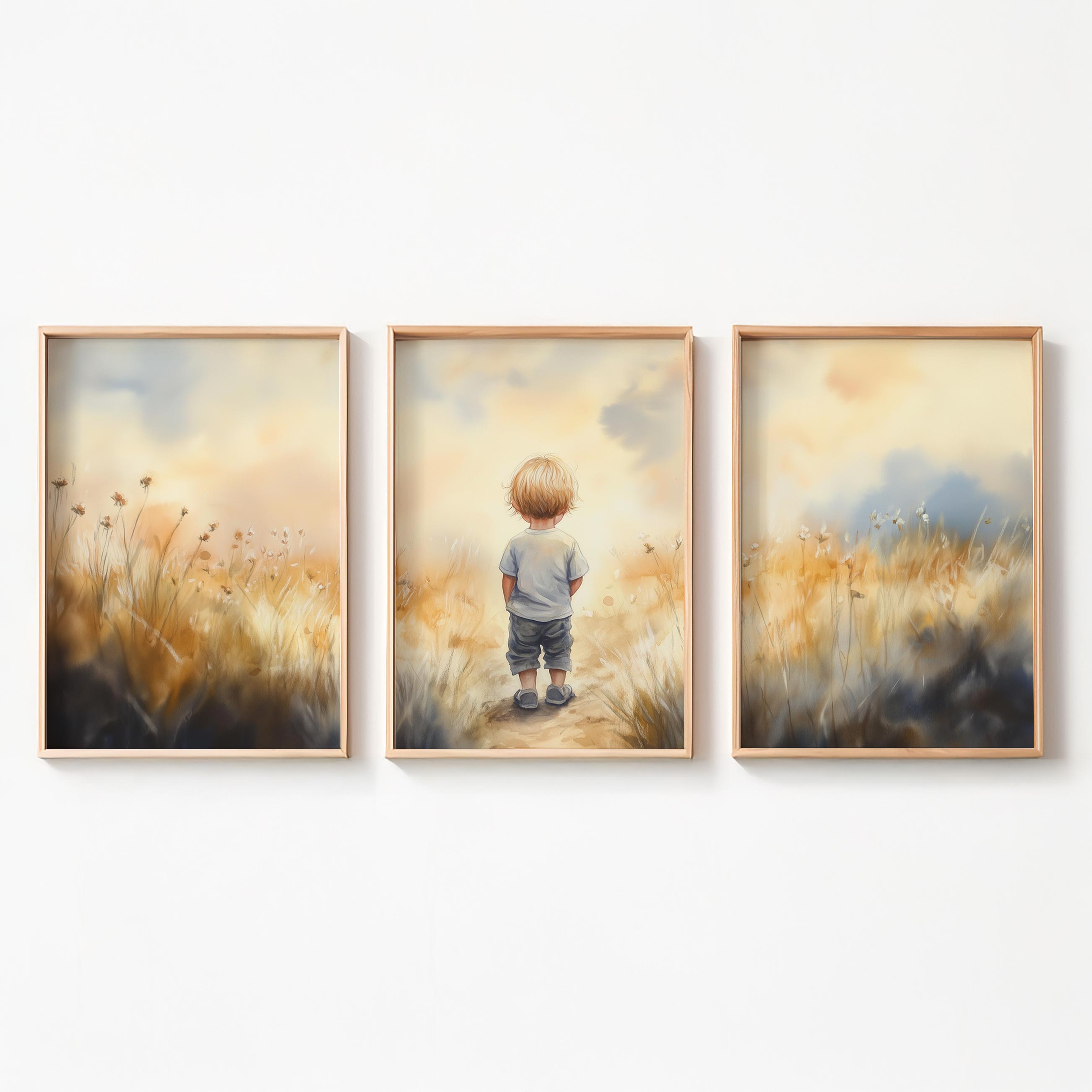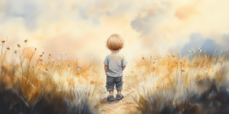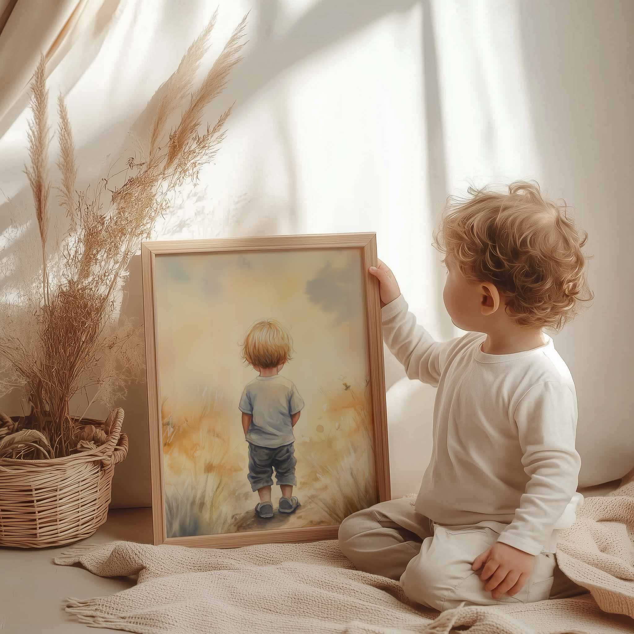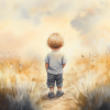 Dromerige jongen in gouden velden