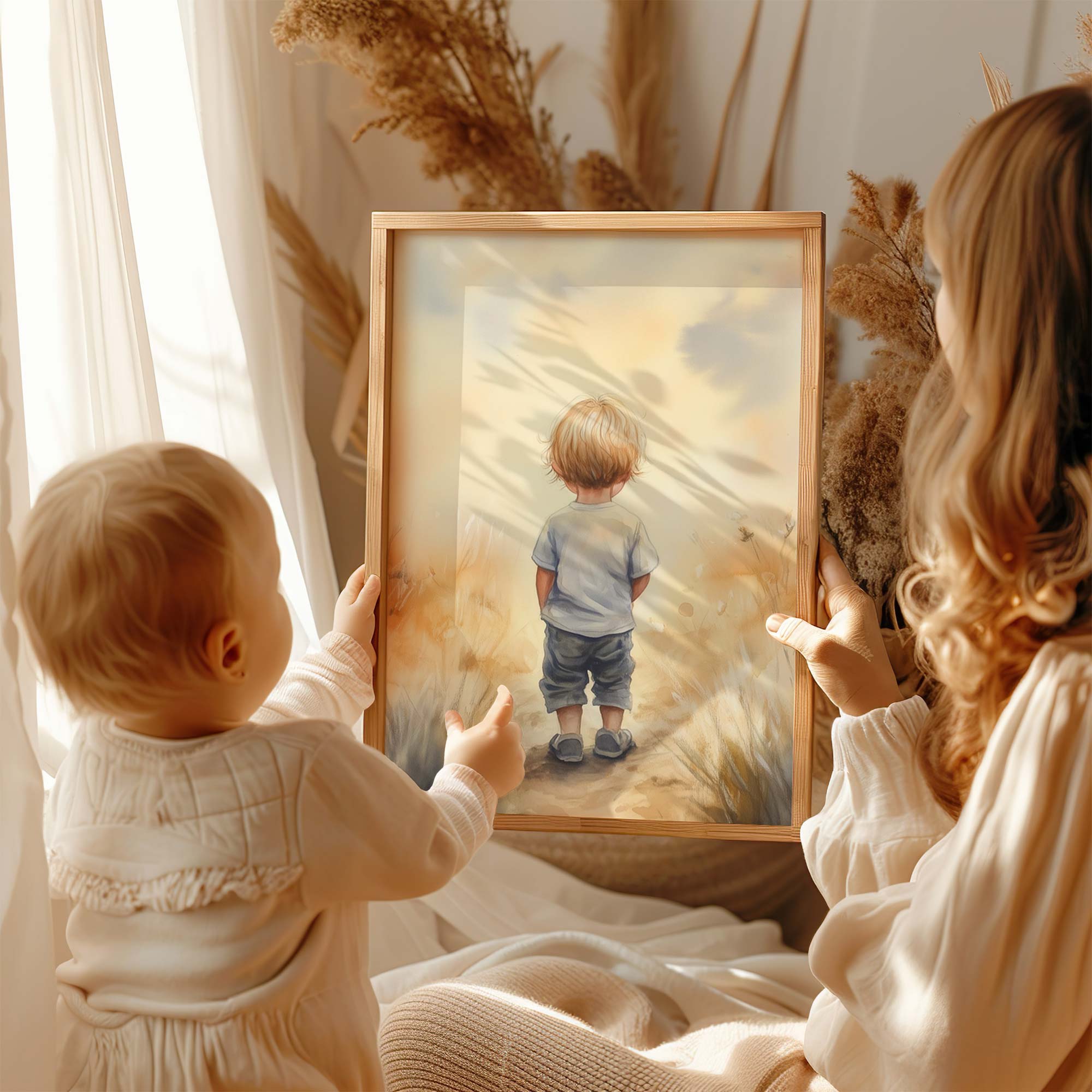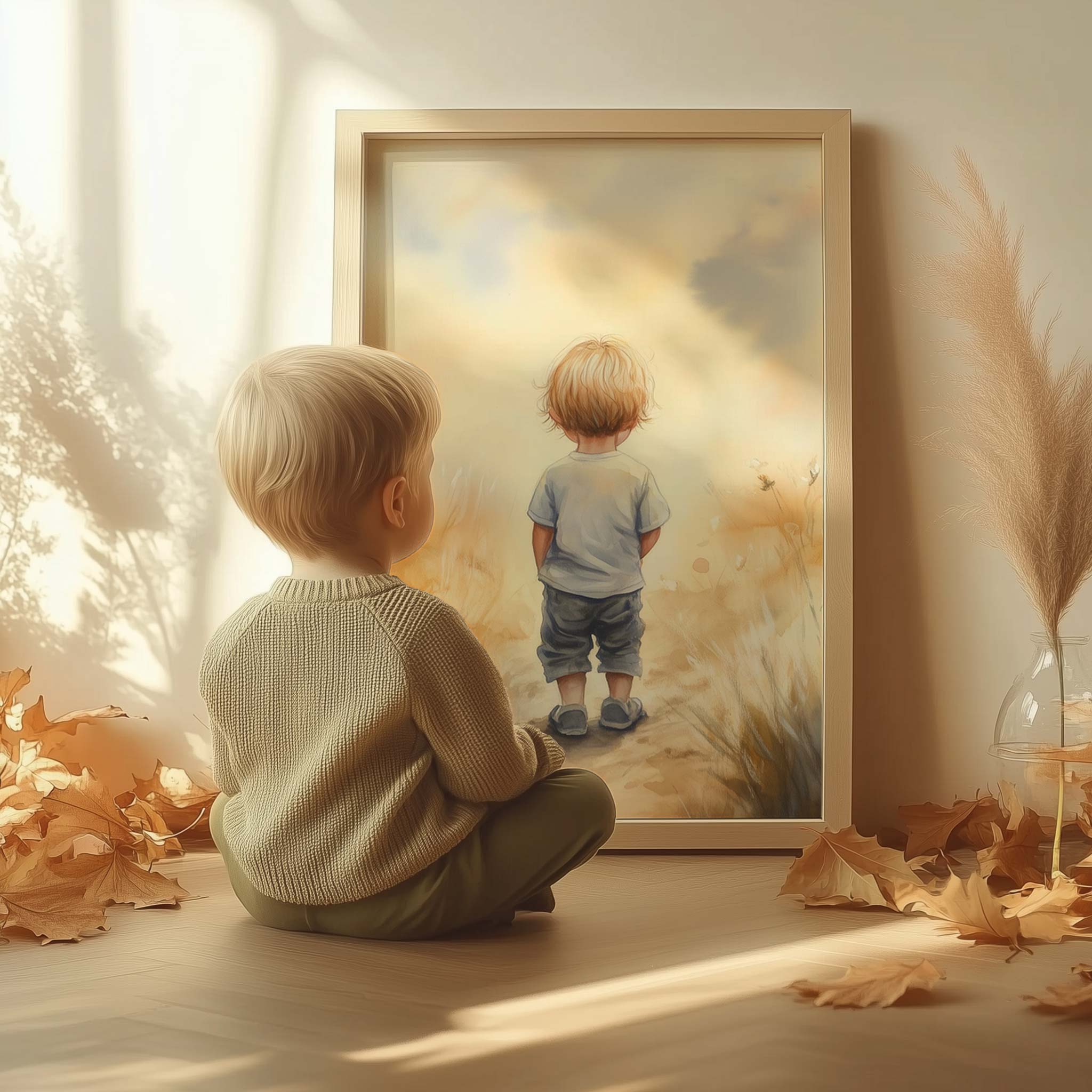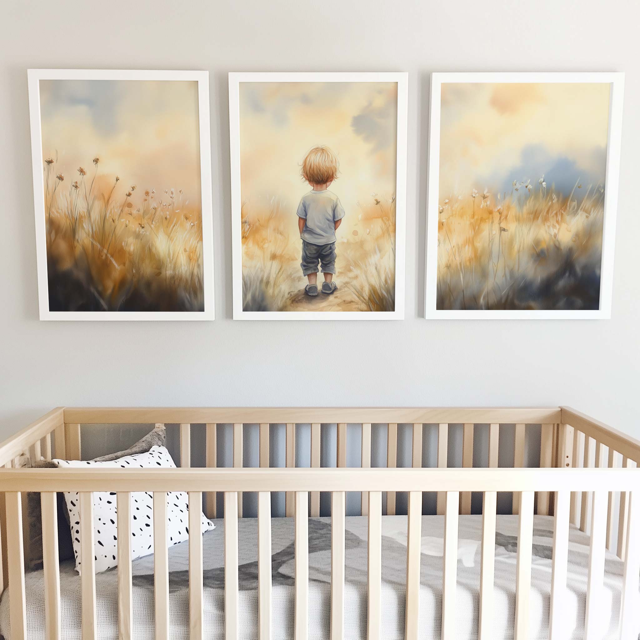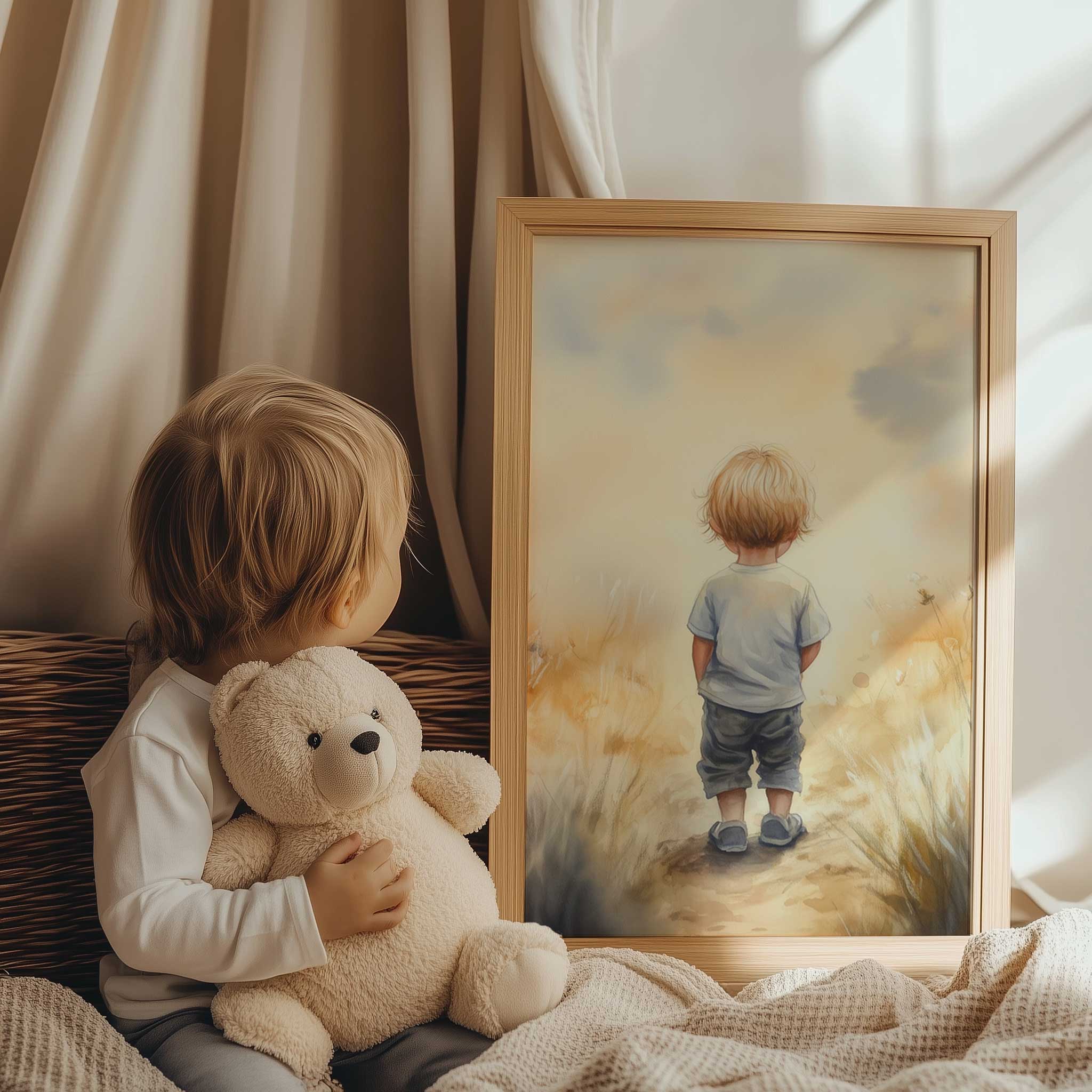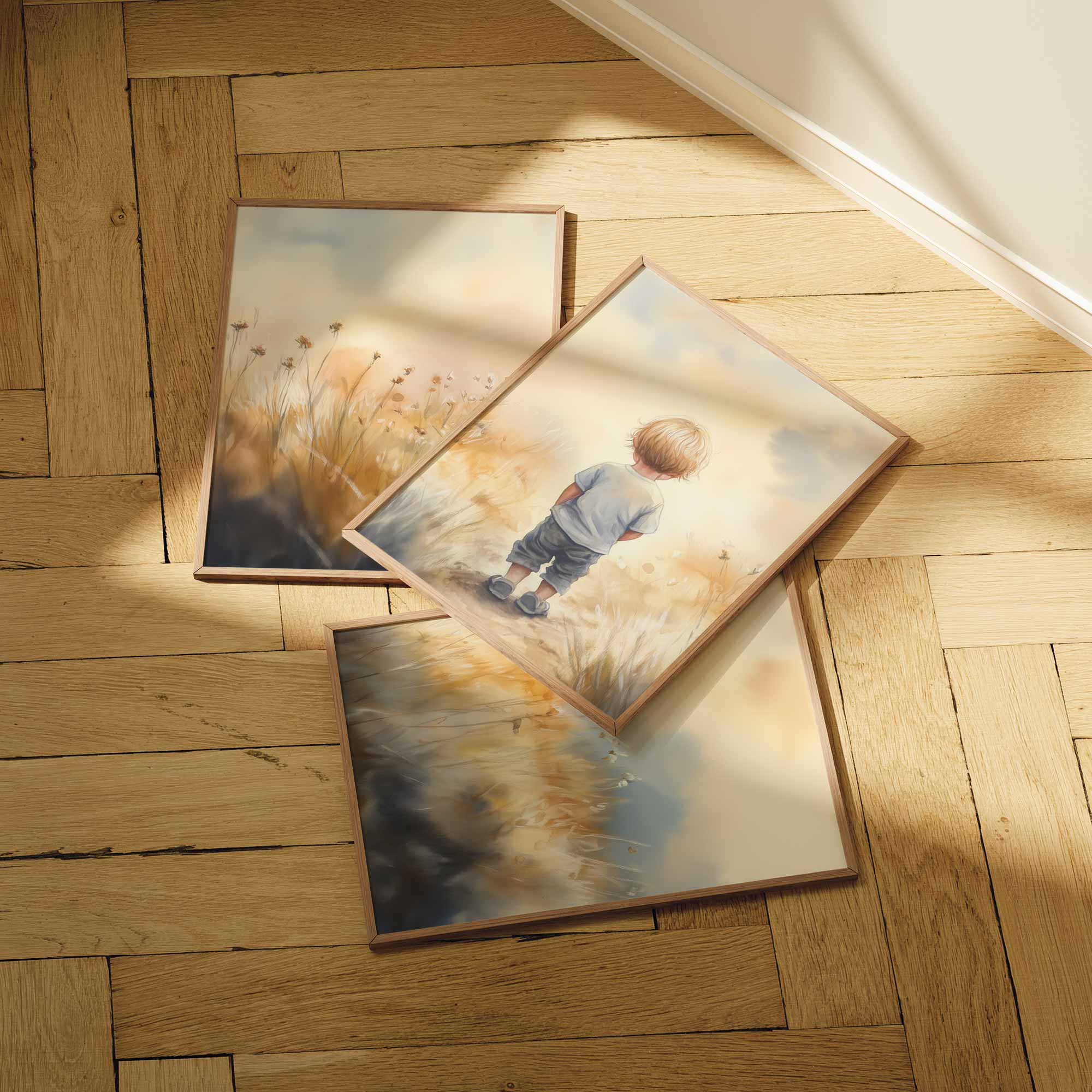 Dromerige jongen in gouden velden