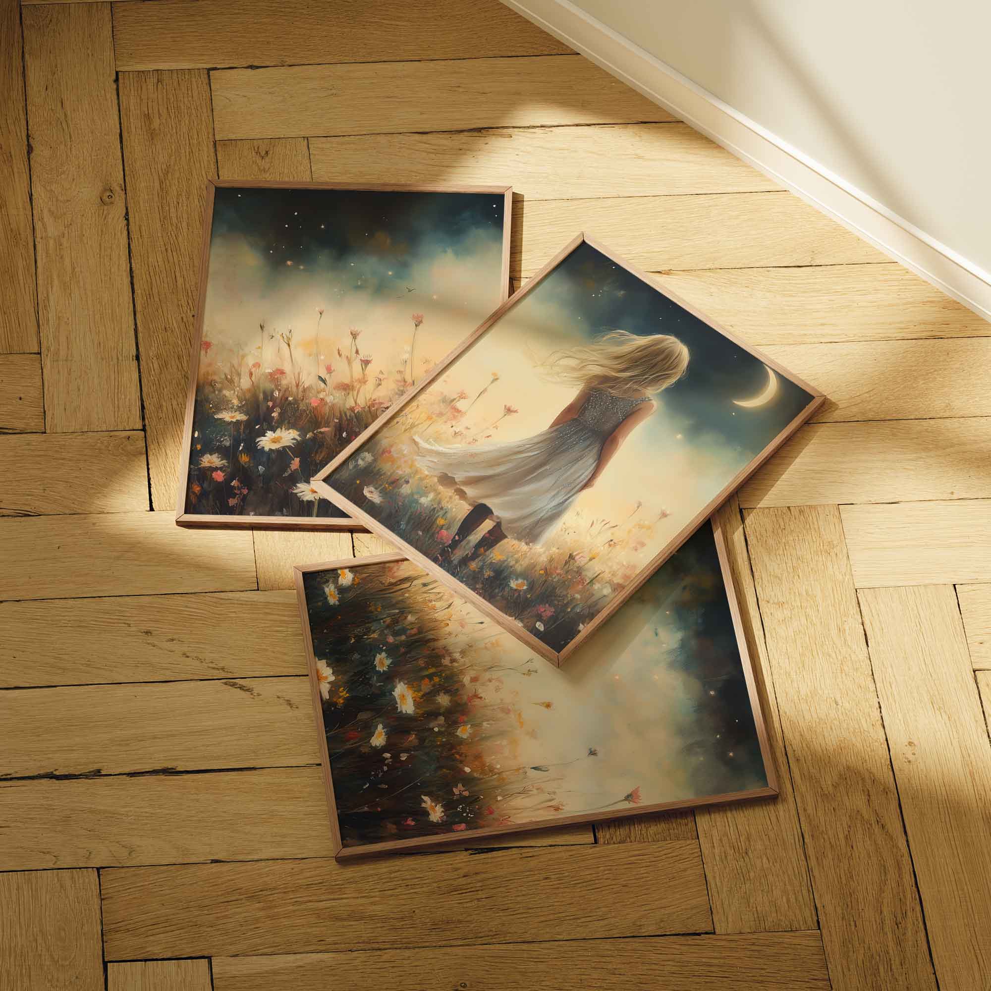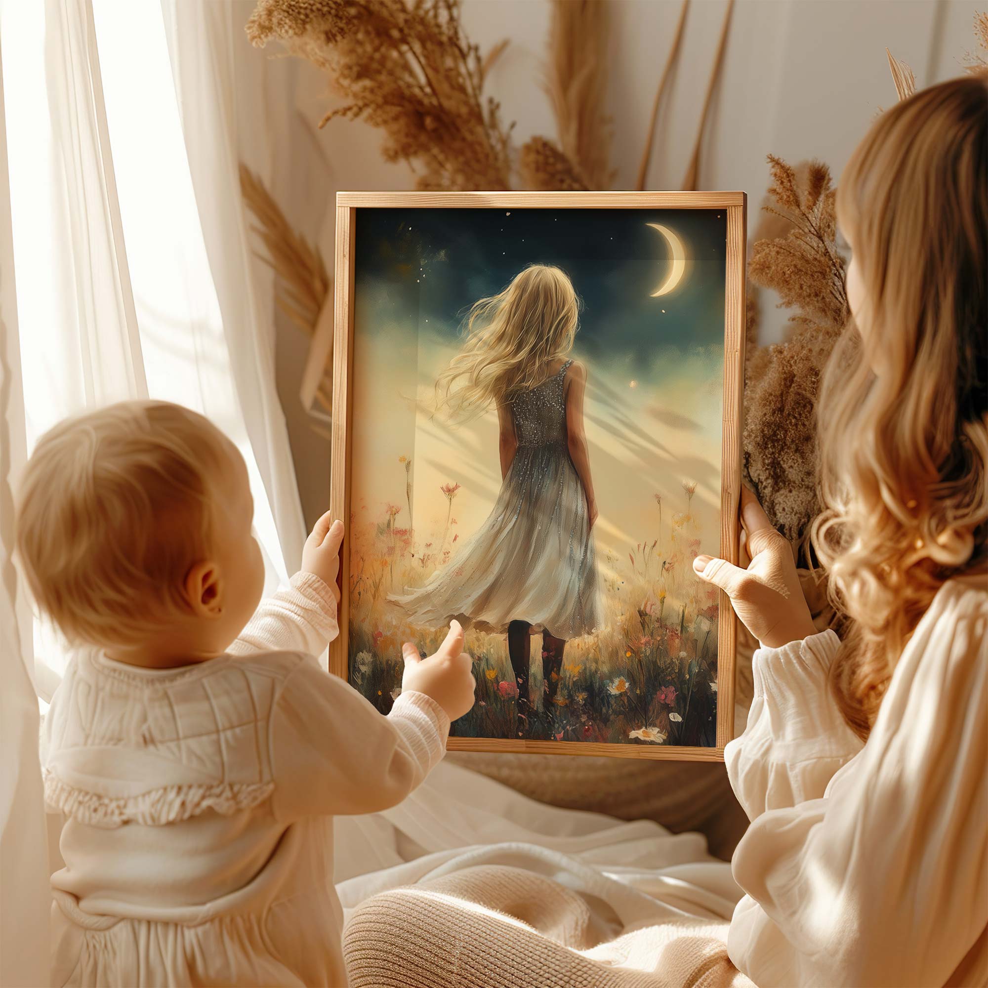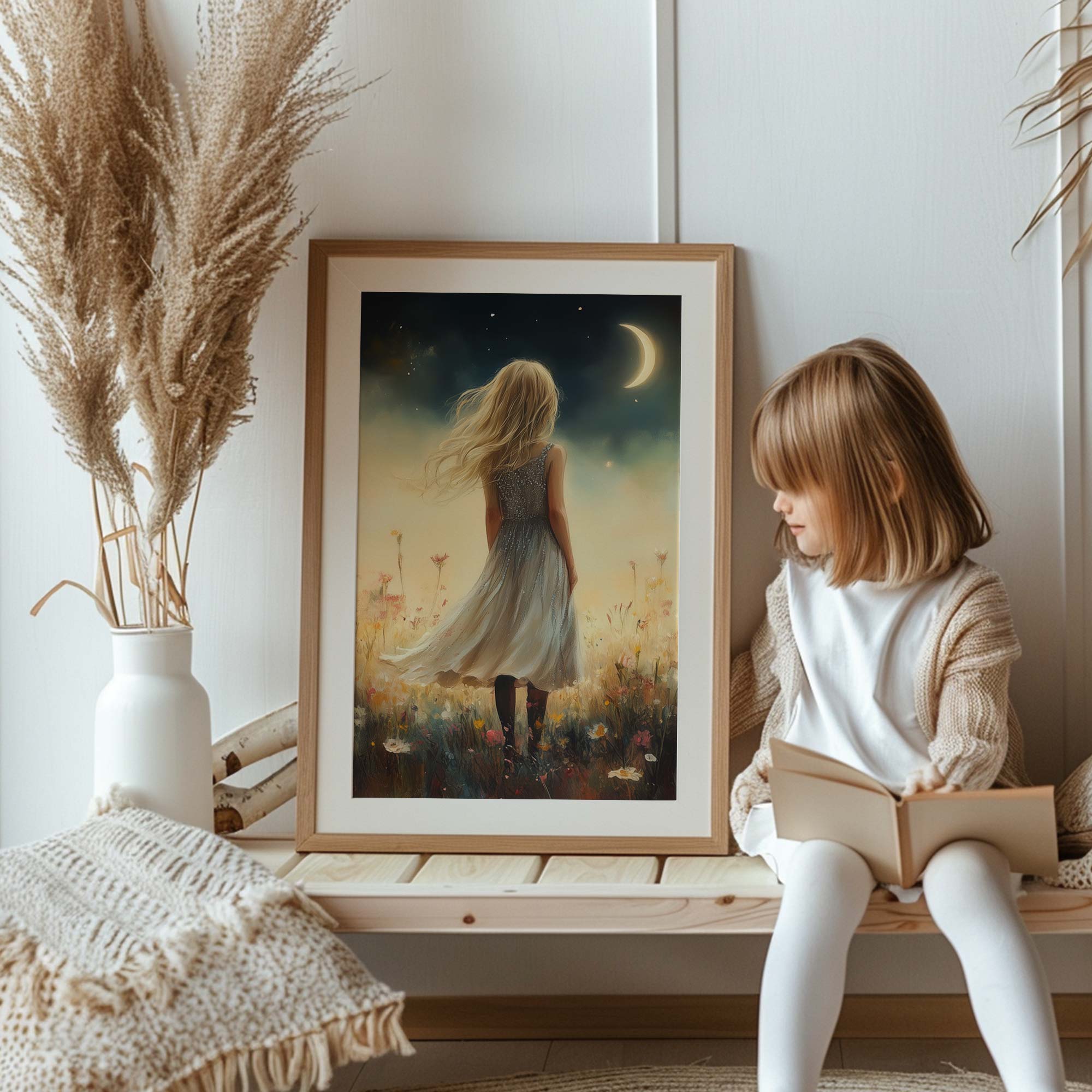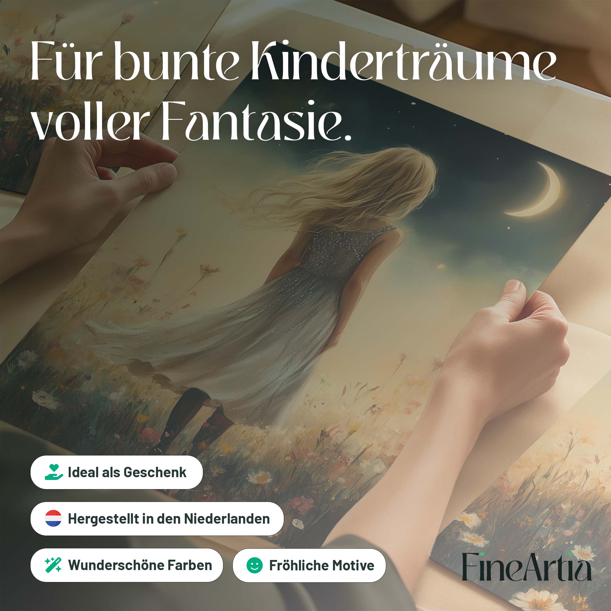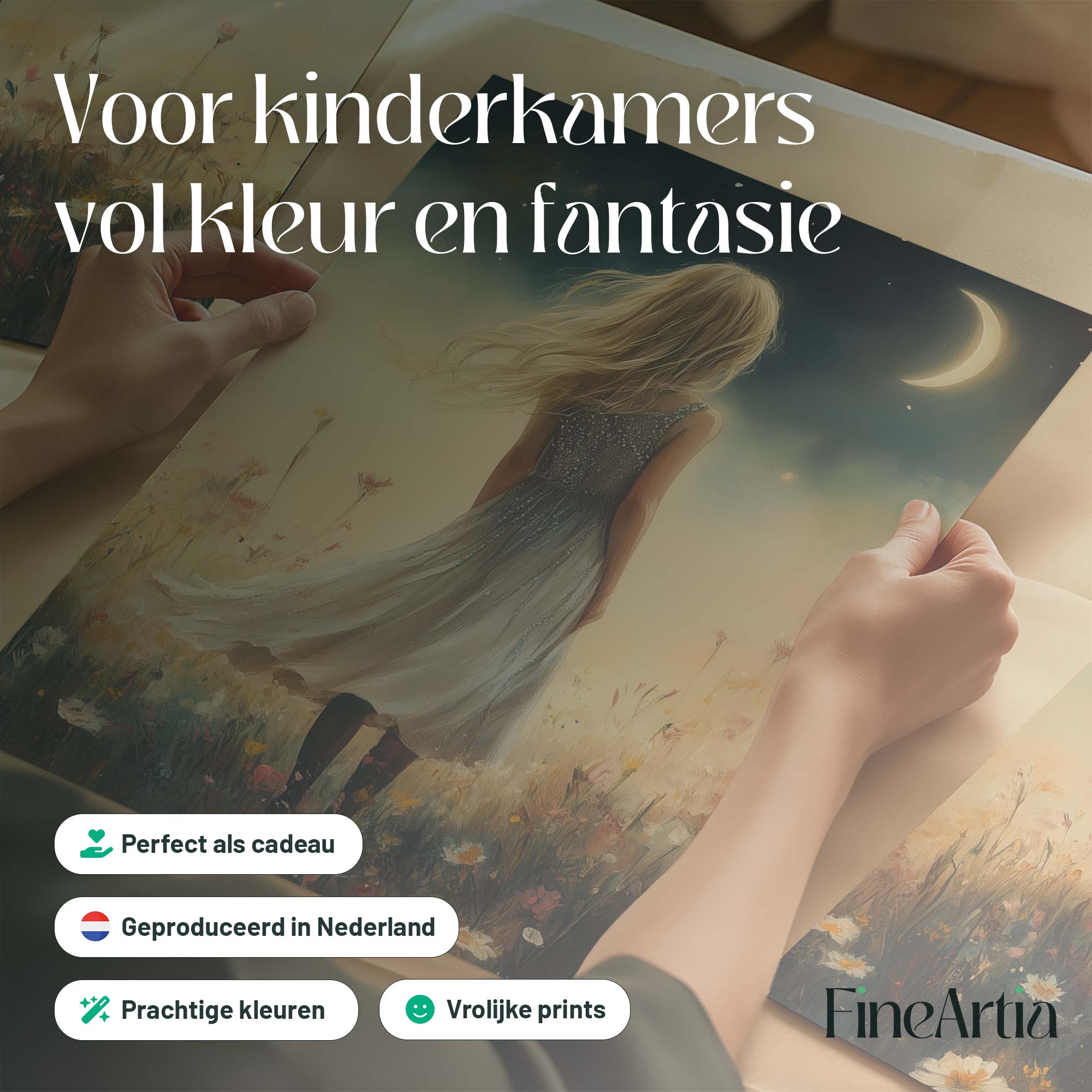 Terug naar collectie Posters Dromerige Maannacht in Bloemenveld
