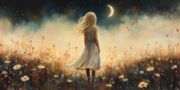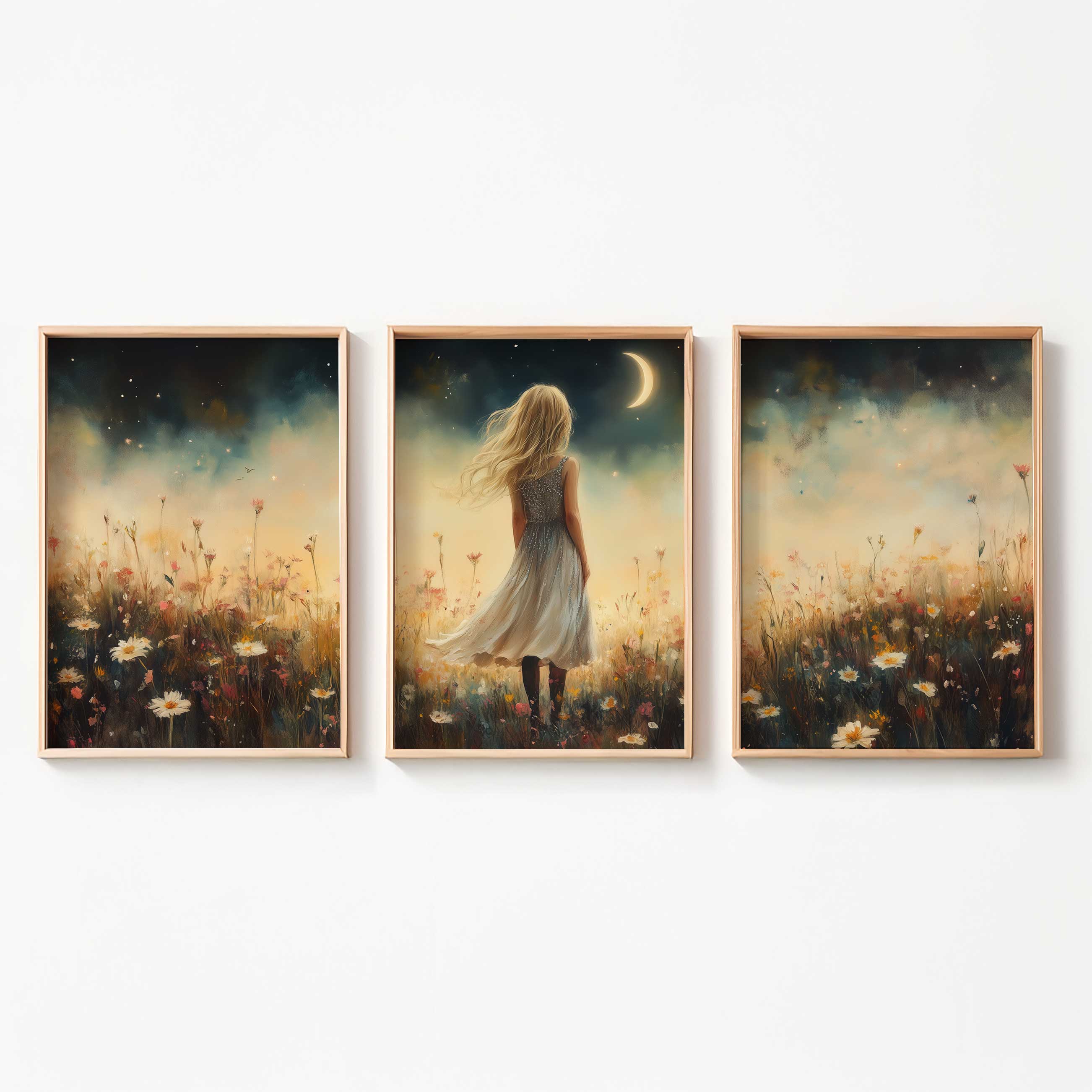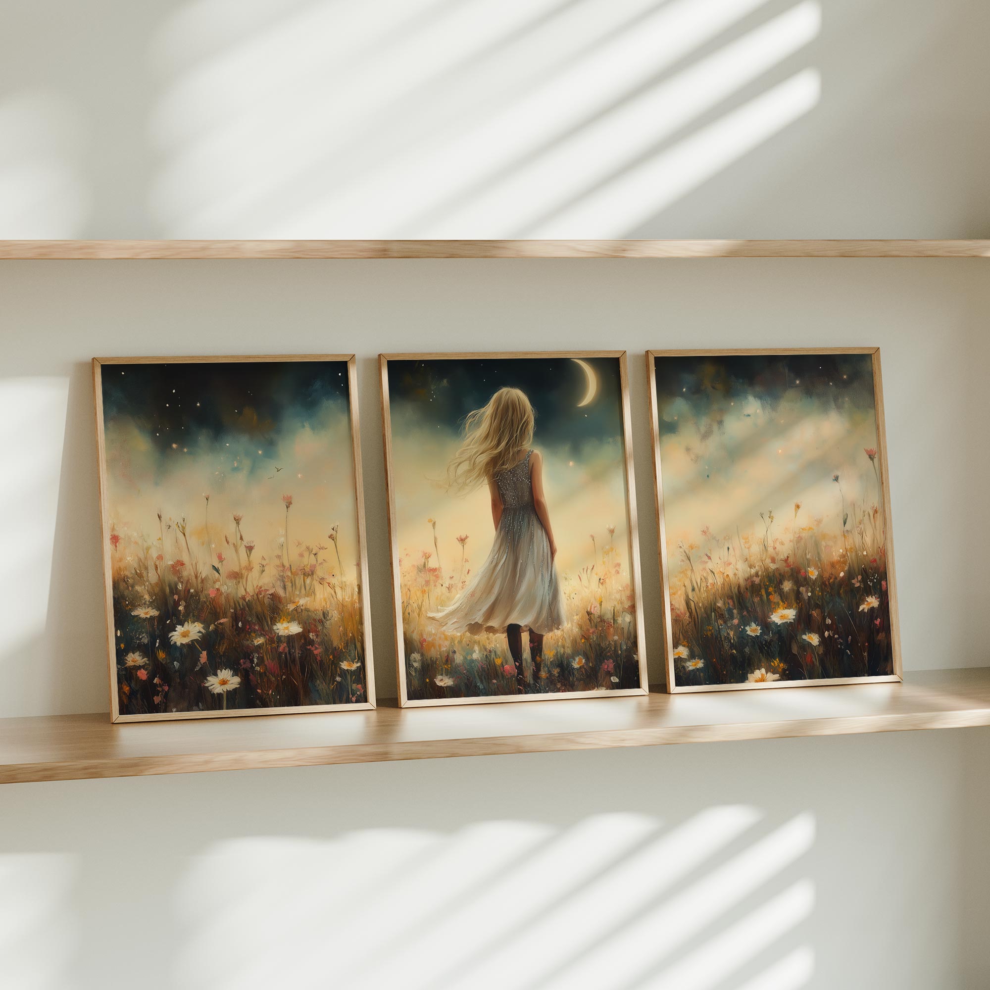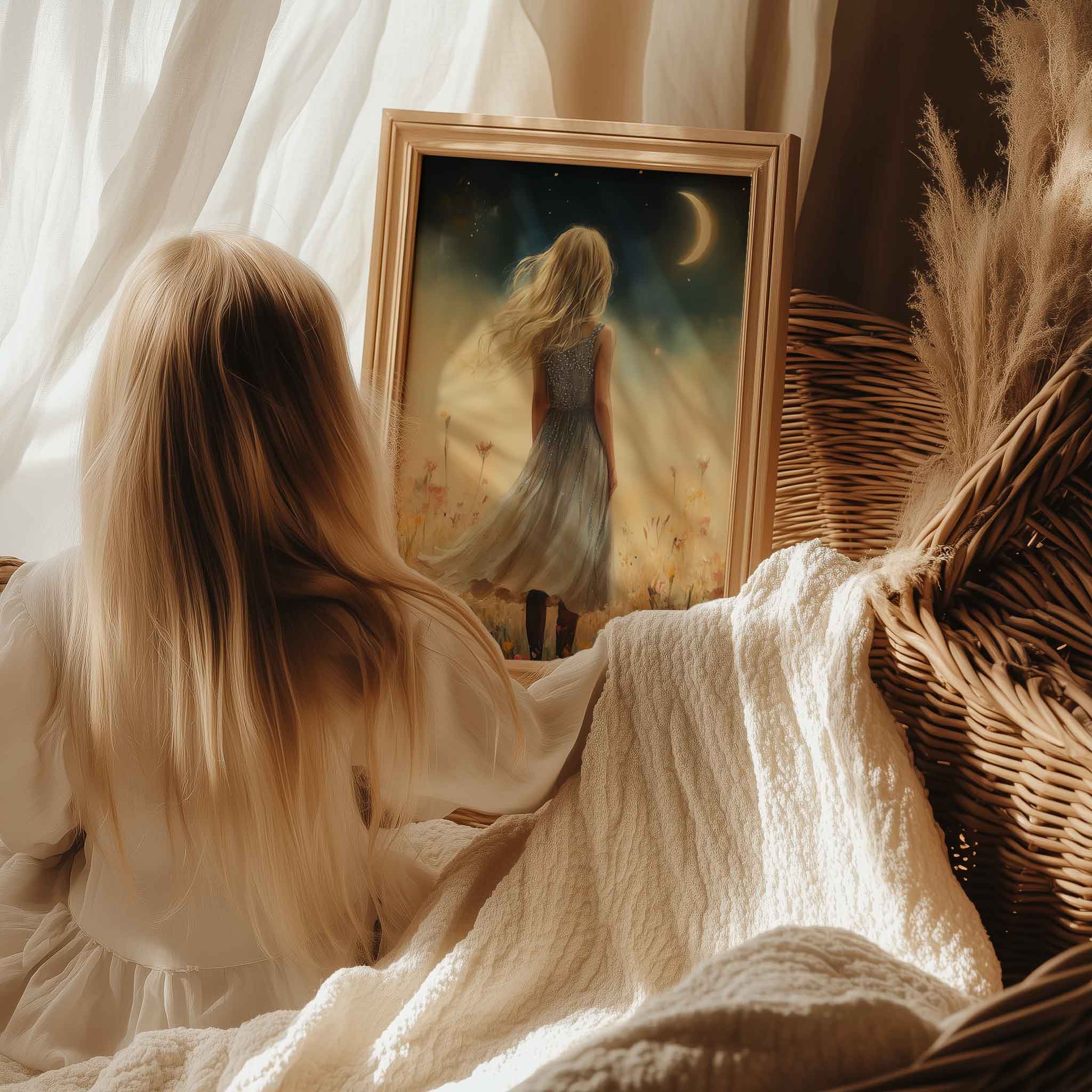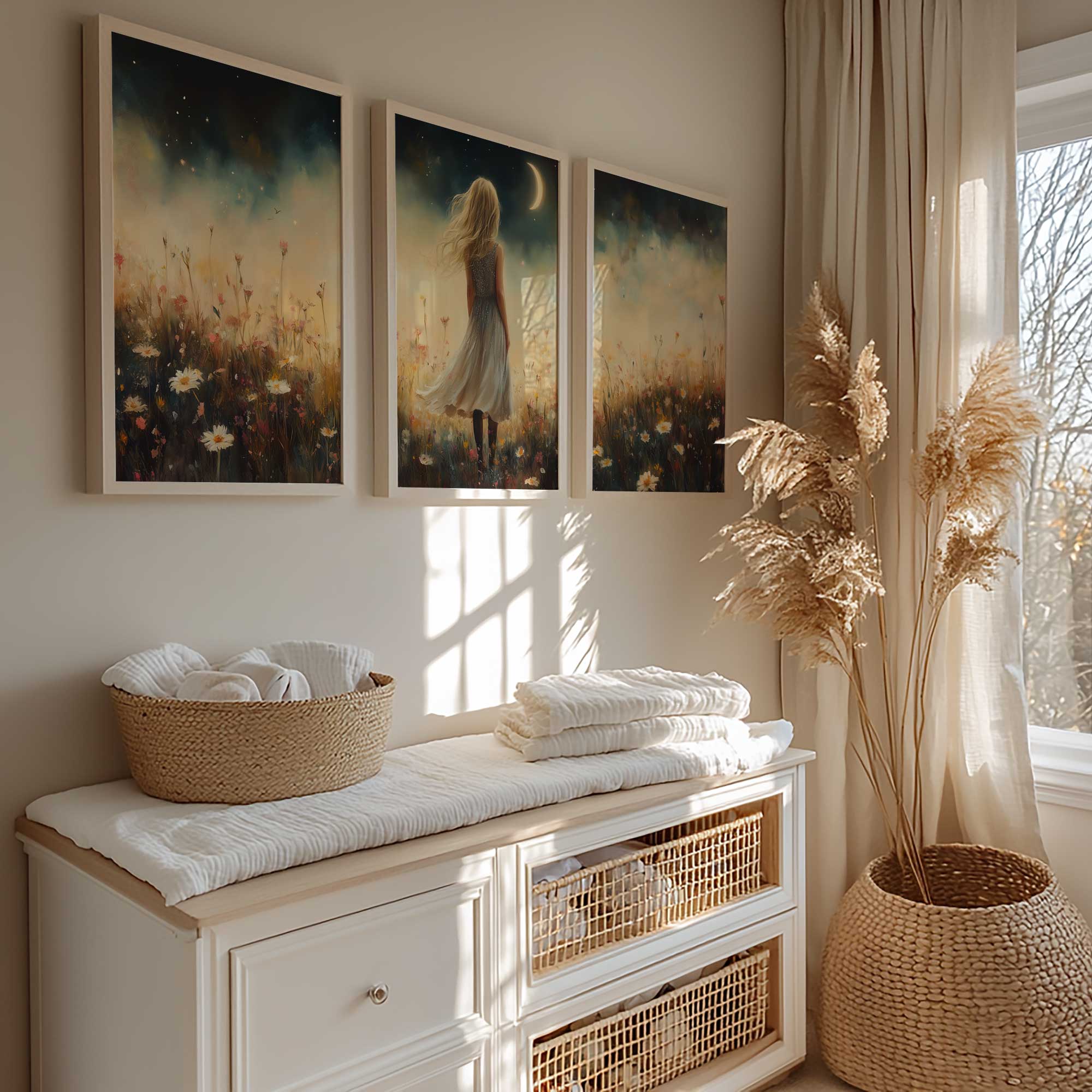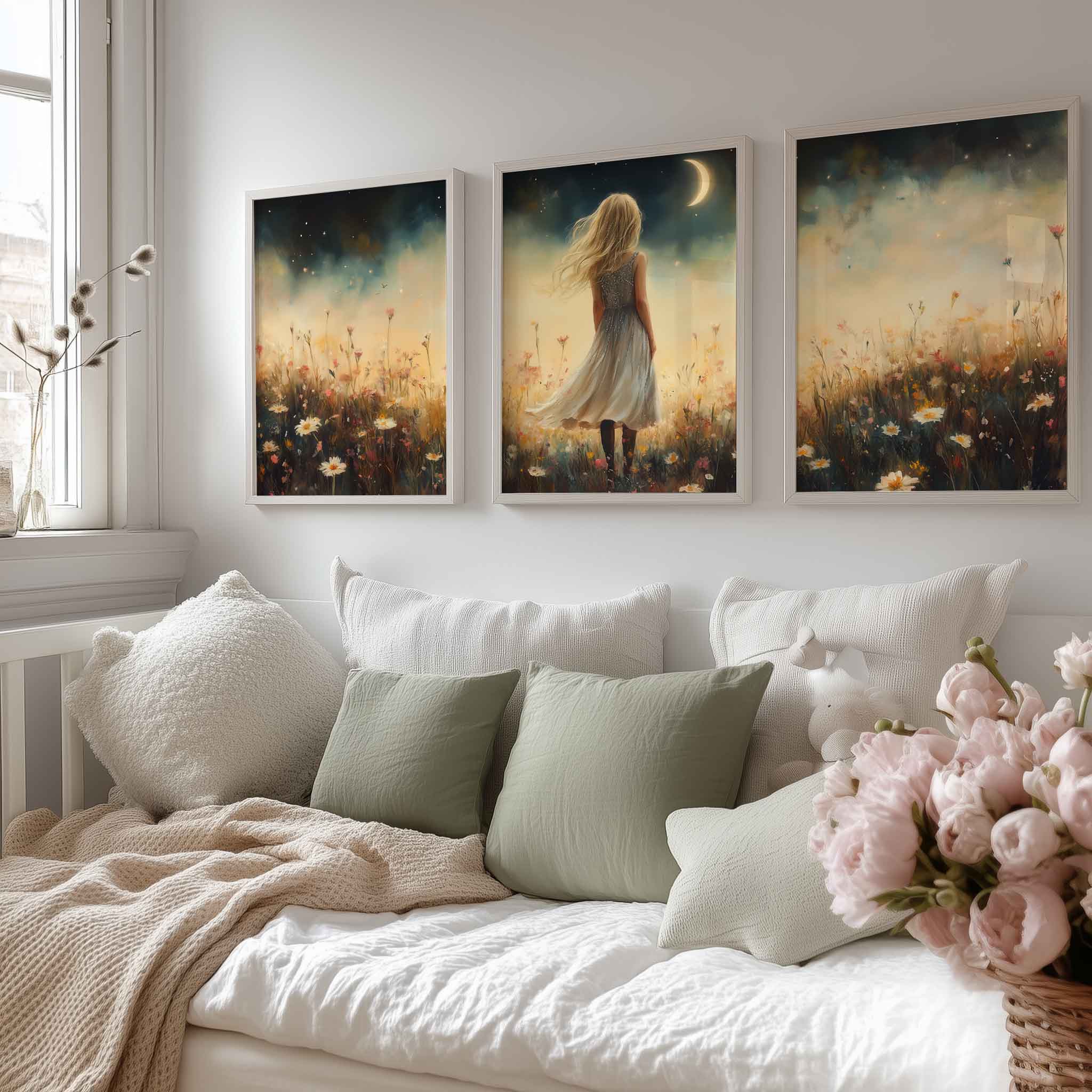 Terug naar collectie Posters Dromerige Maannacht in Bloemenveld