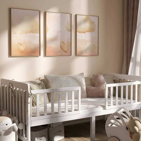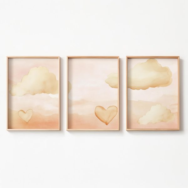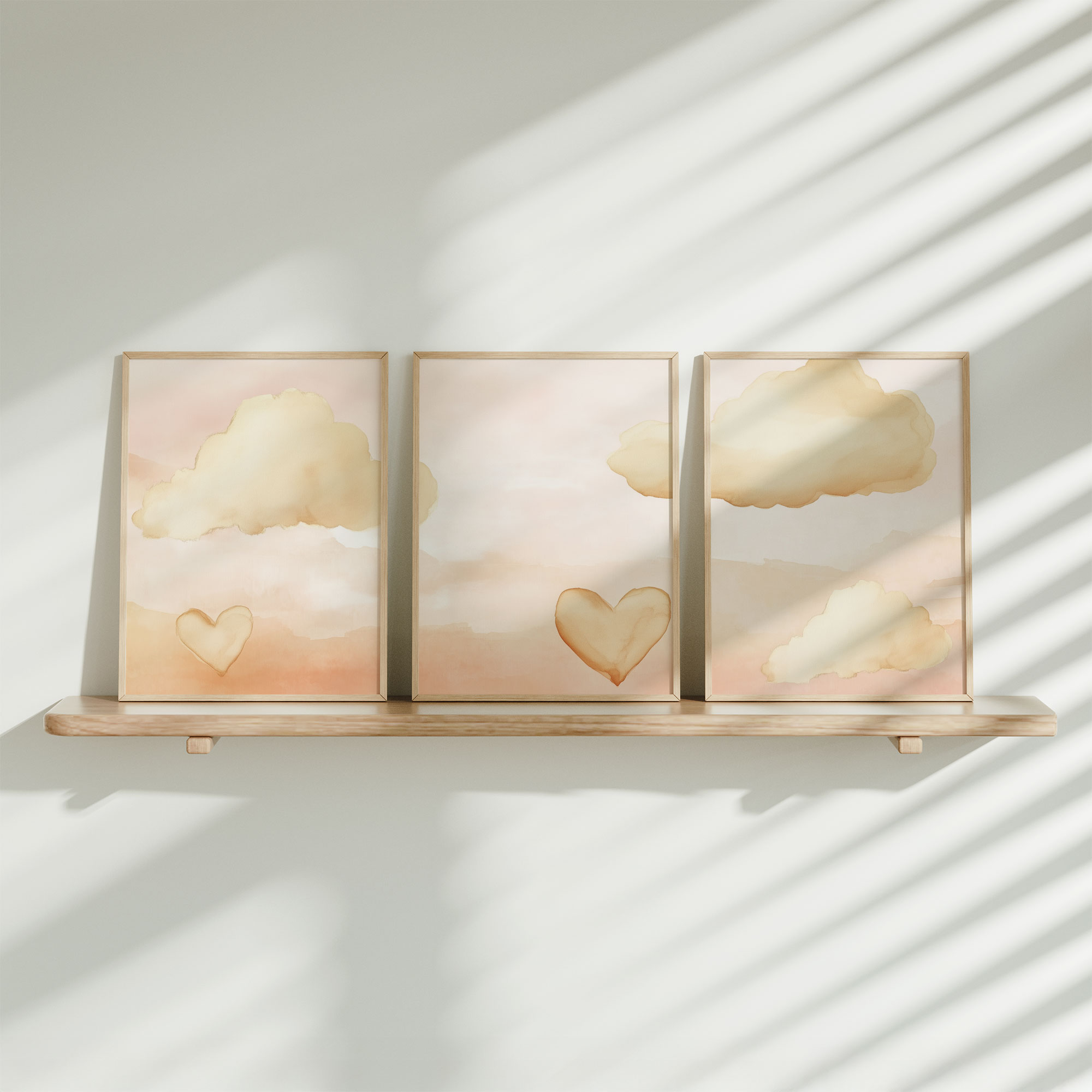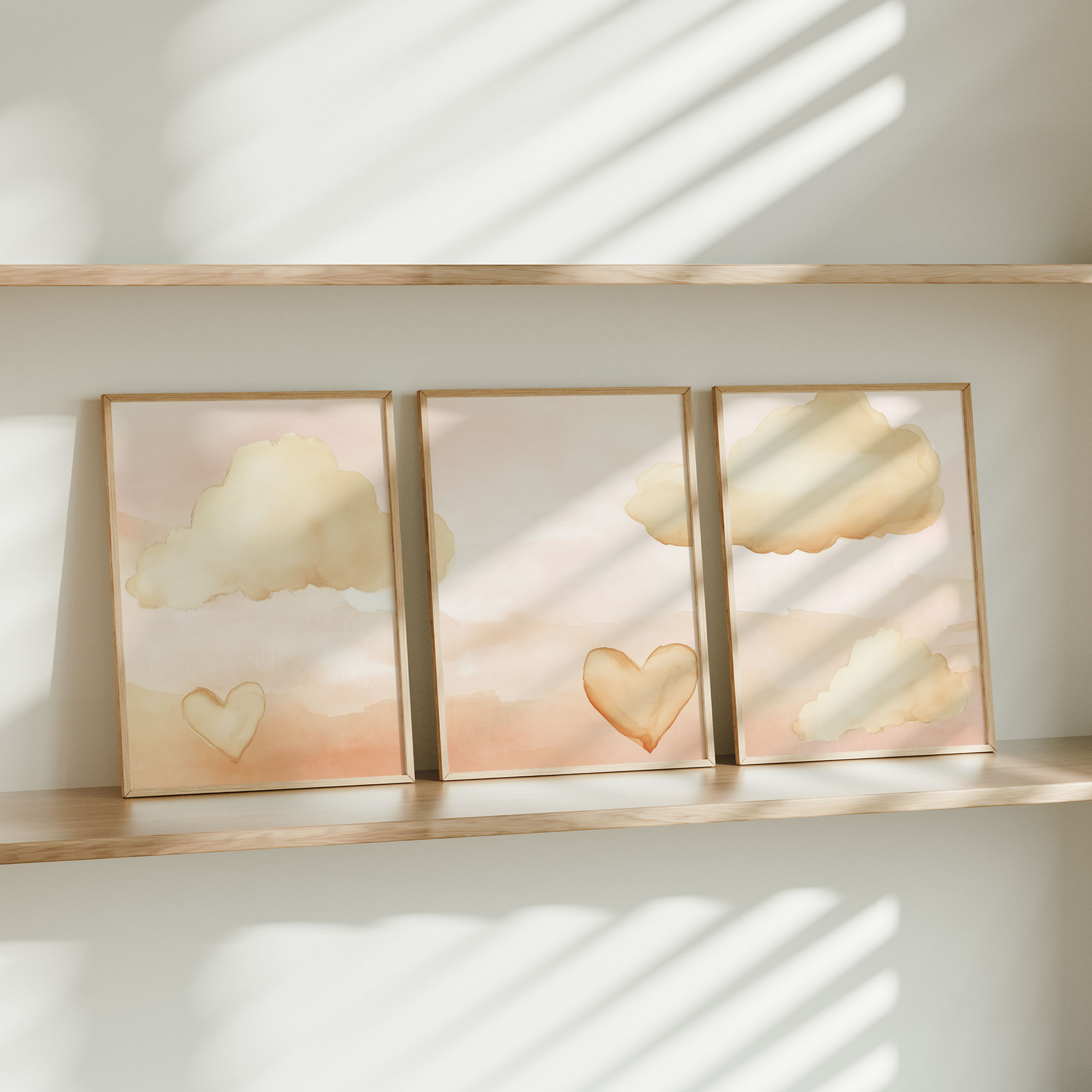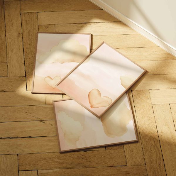 Terug naar collectie Posters Dromerige roze lucht met wolken en harten