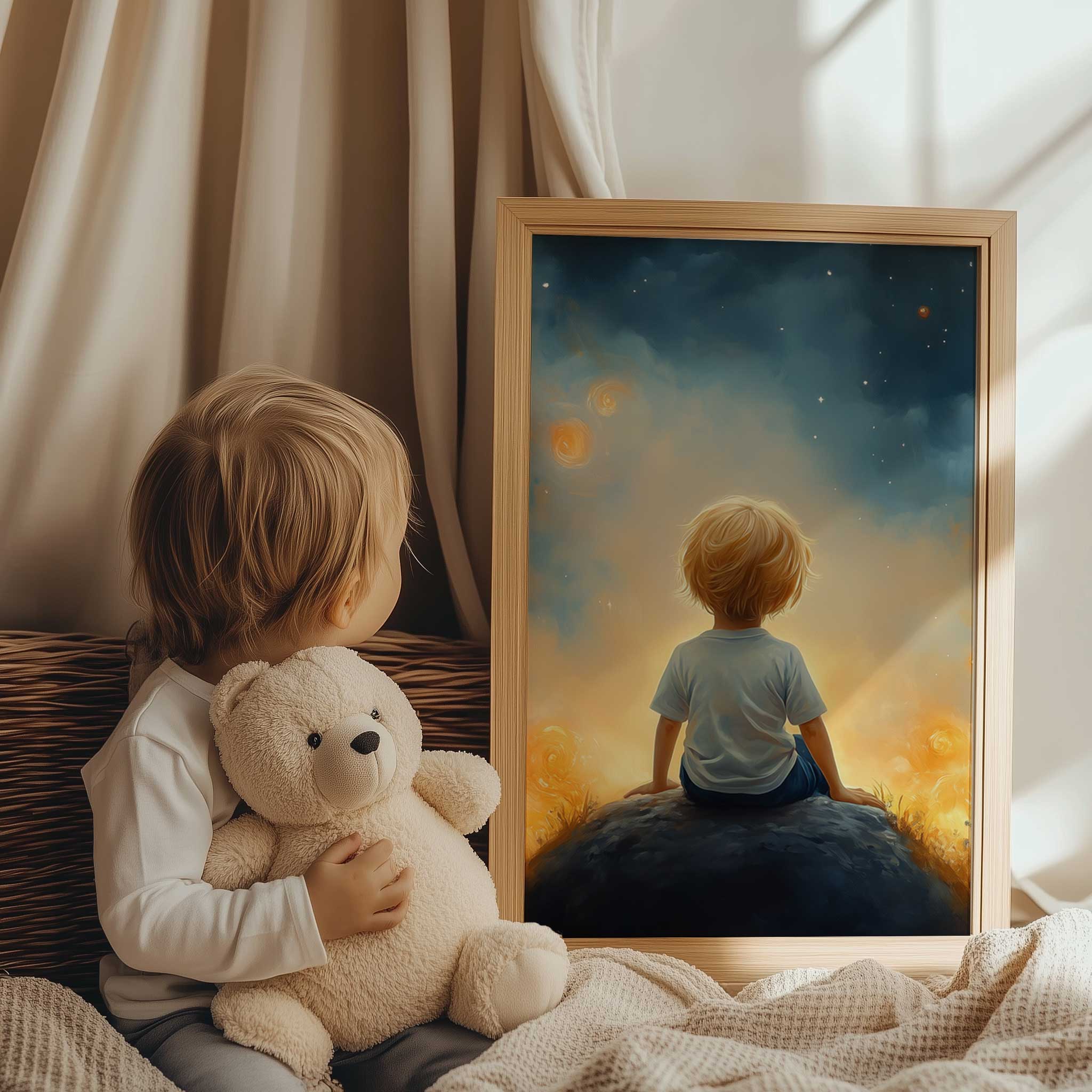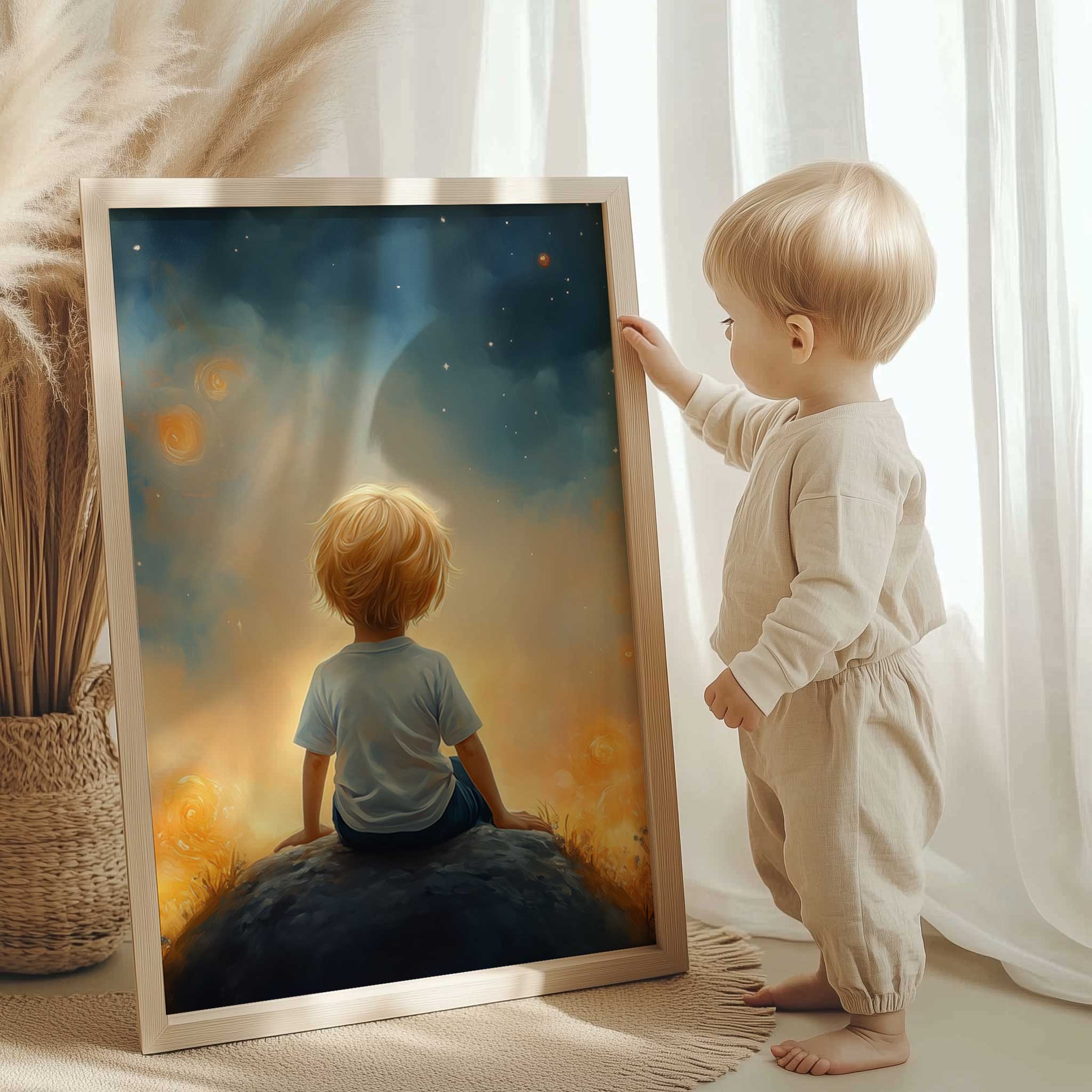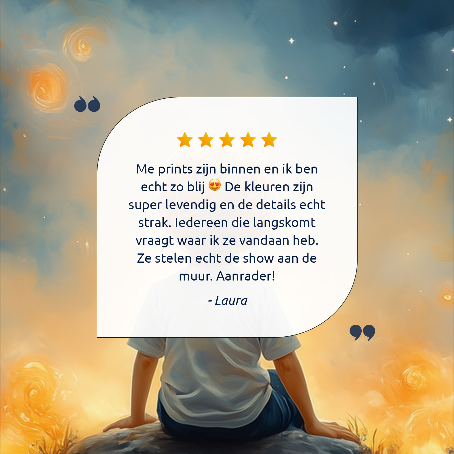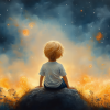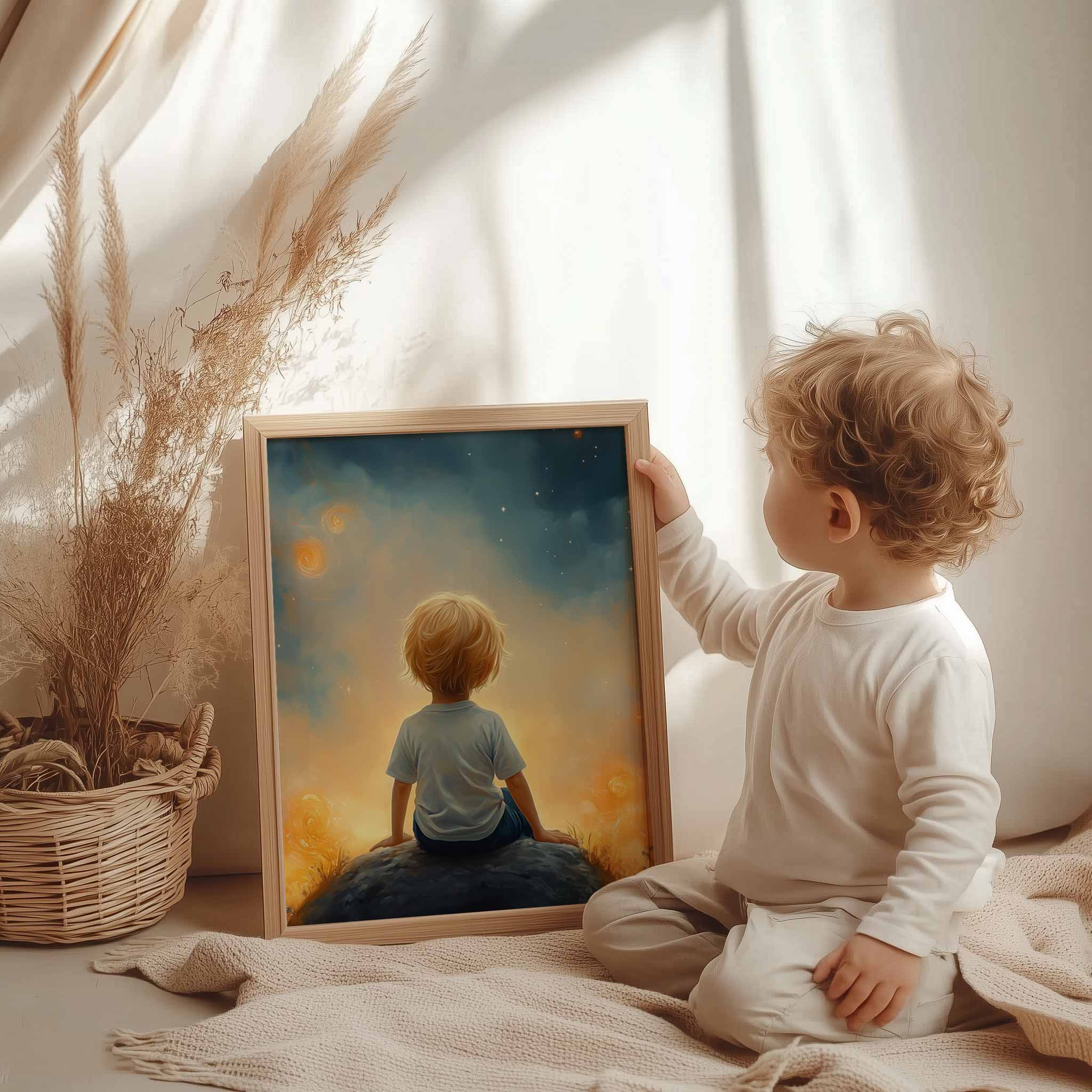 Dromerige Sterrenhemel met Verwonderde Jongen