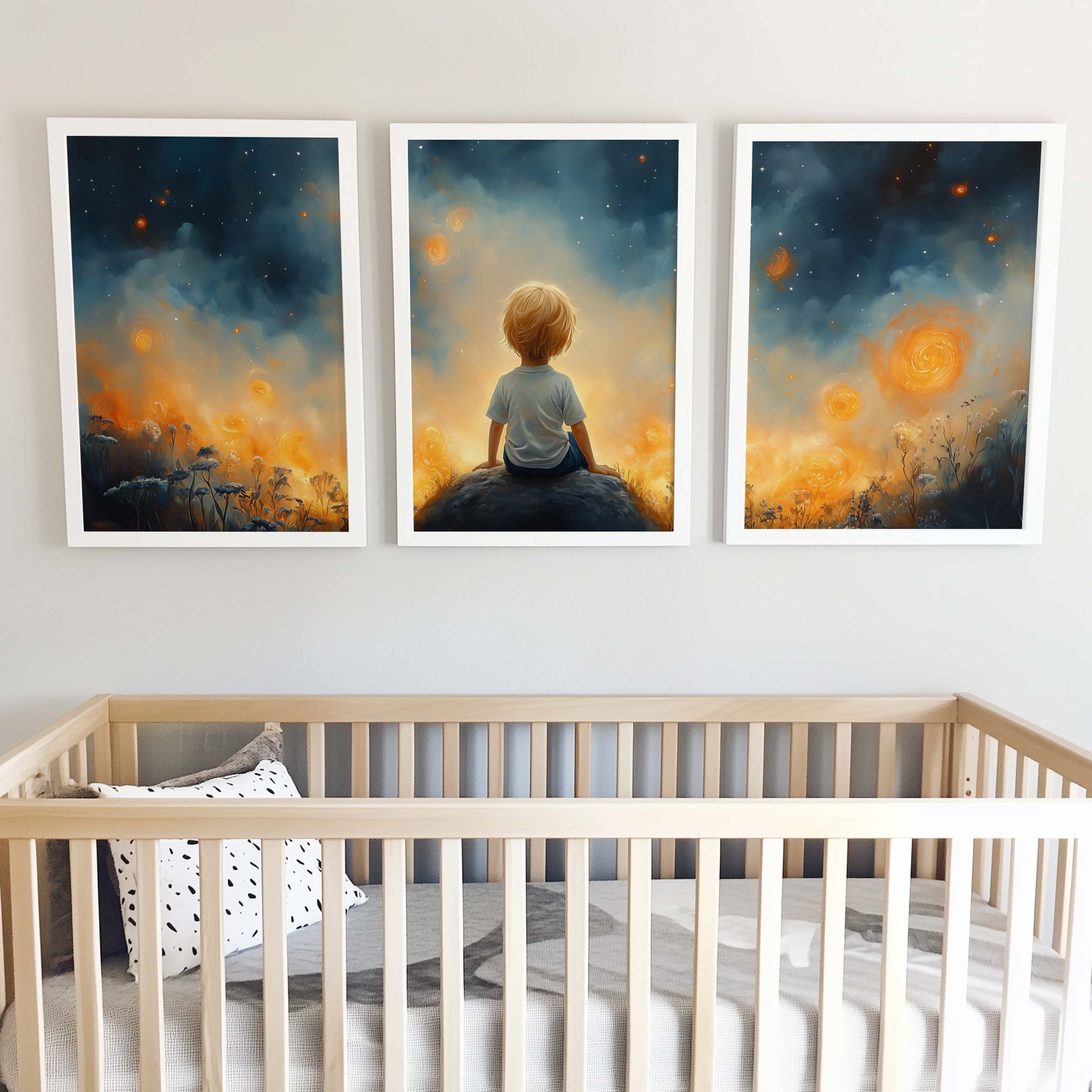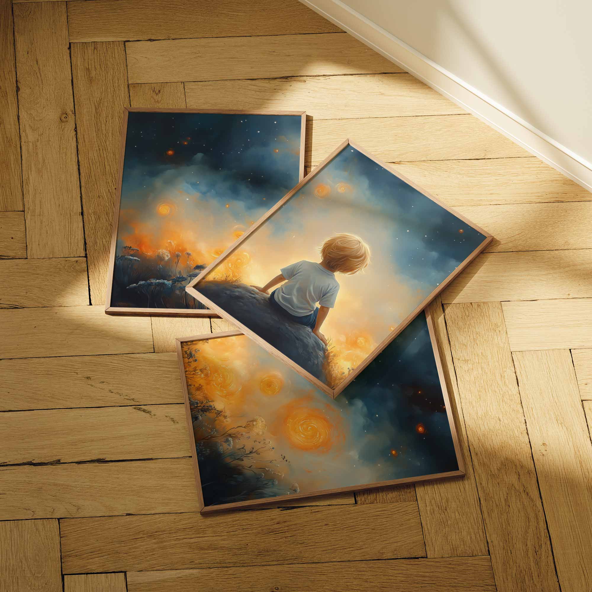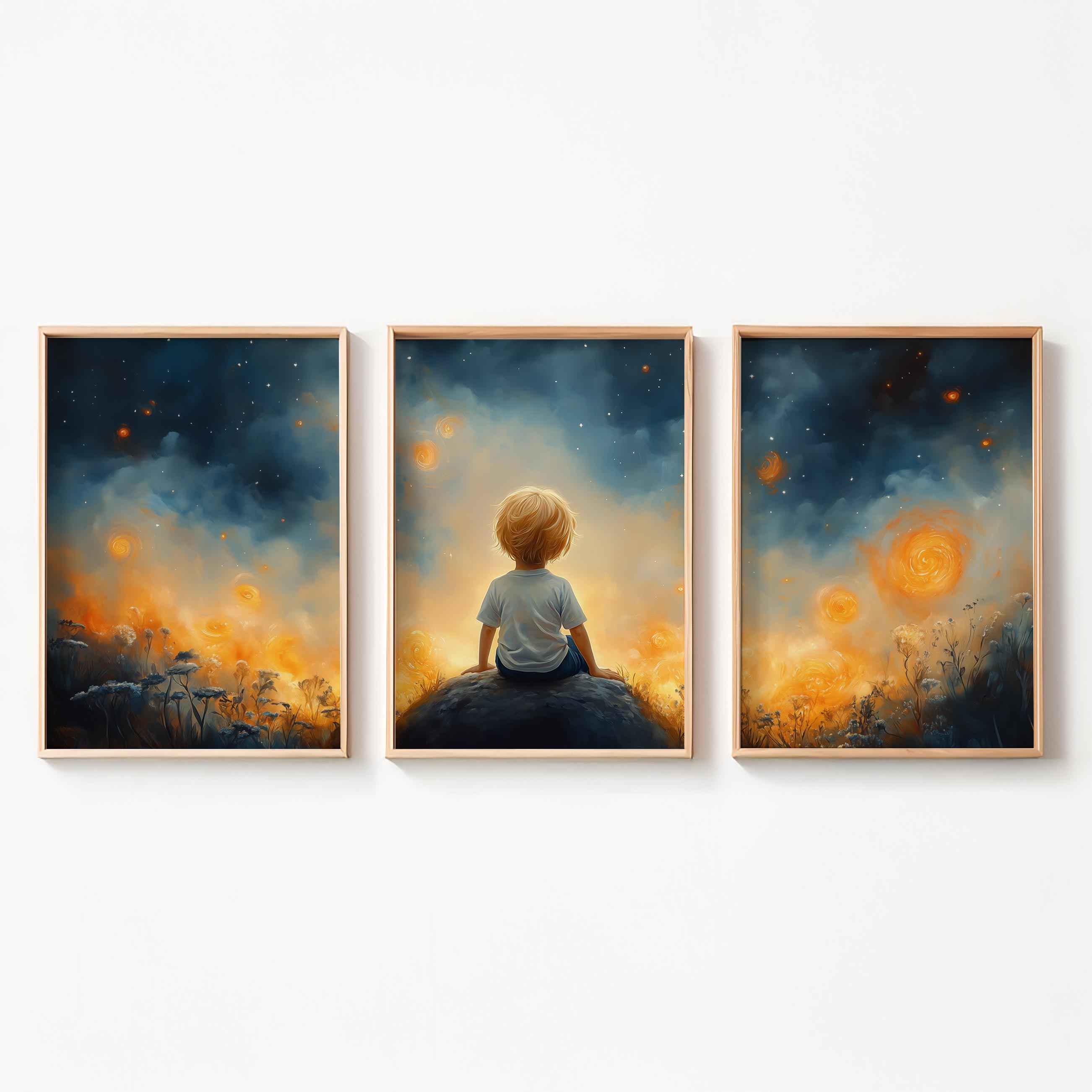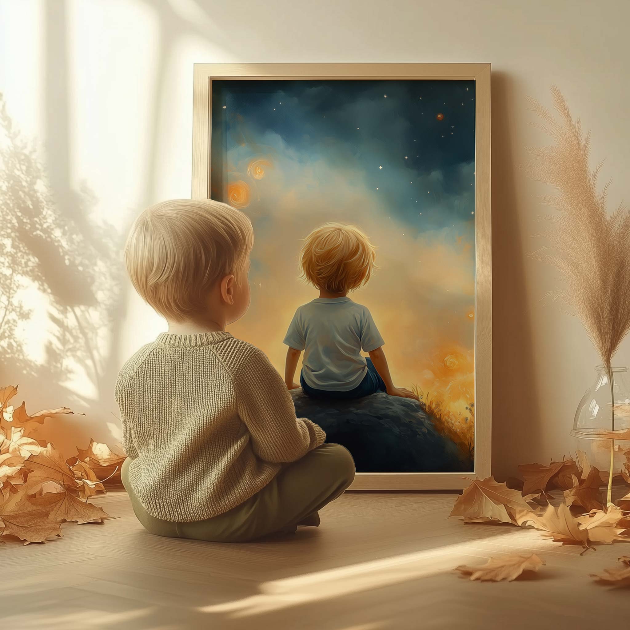 Dromerige Sterrenhemel met Verwonderde Jongen
