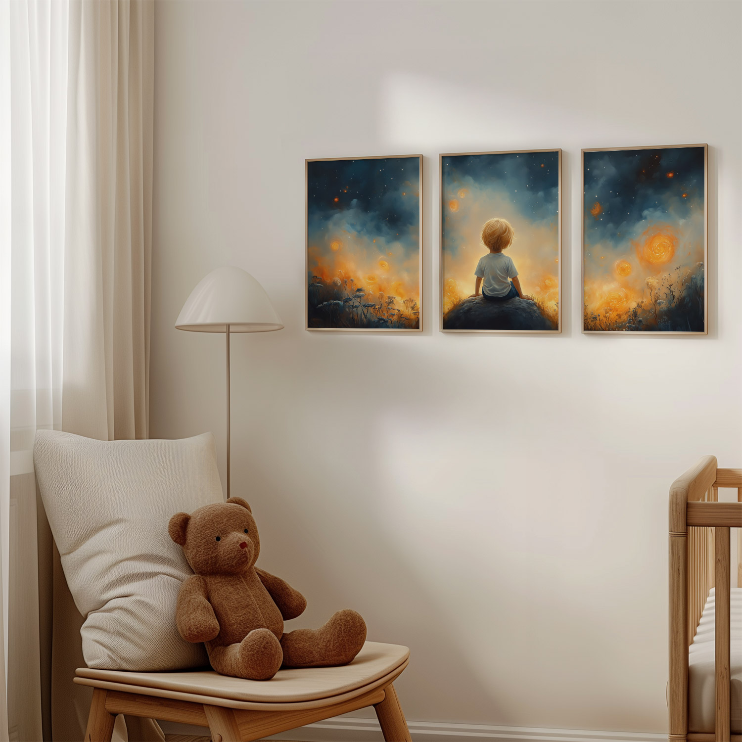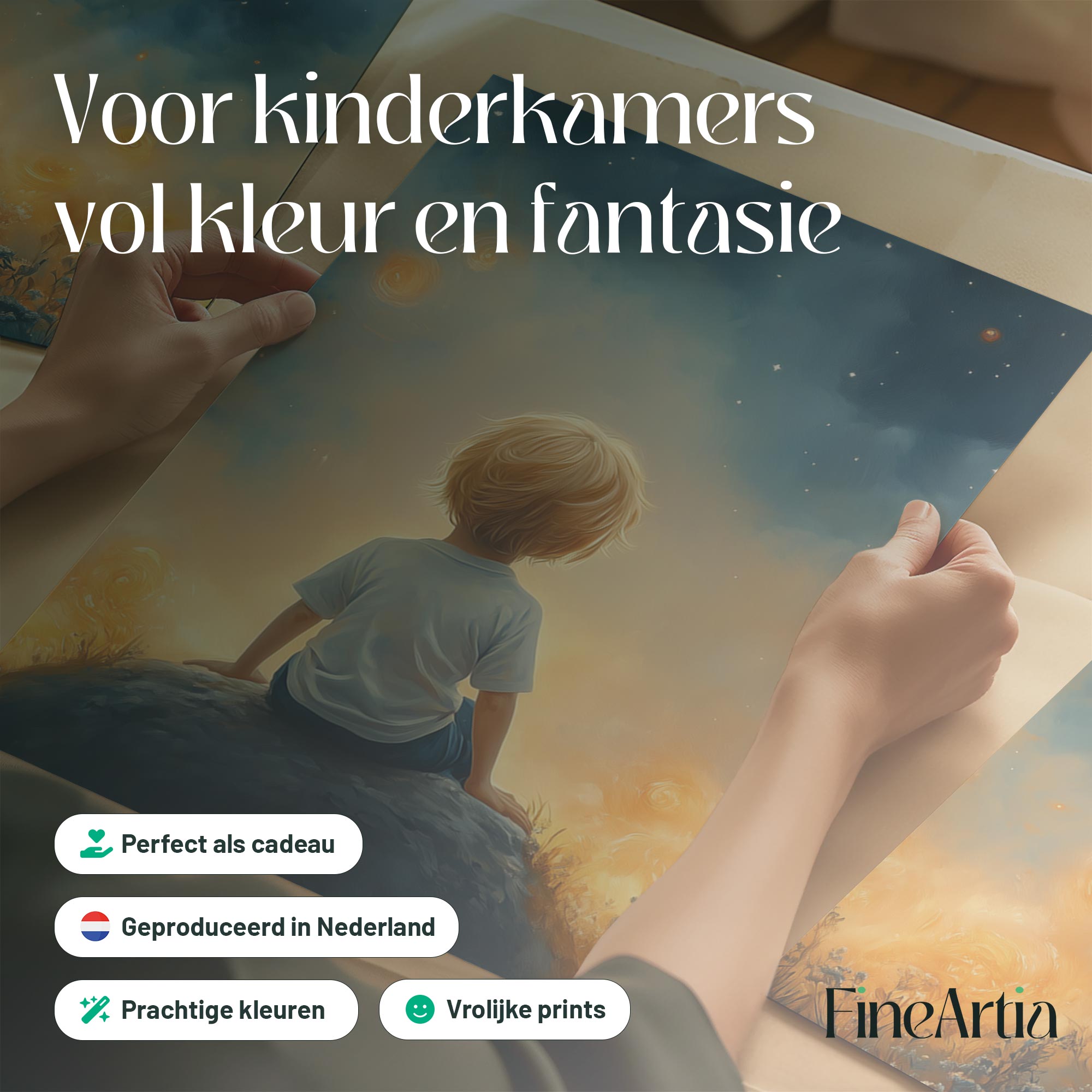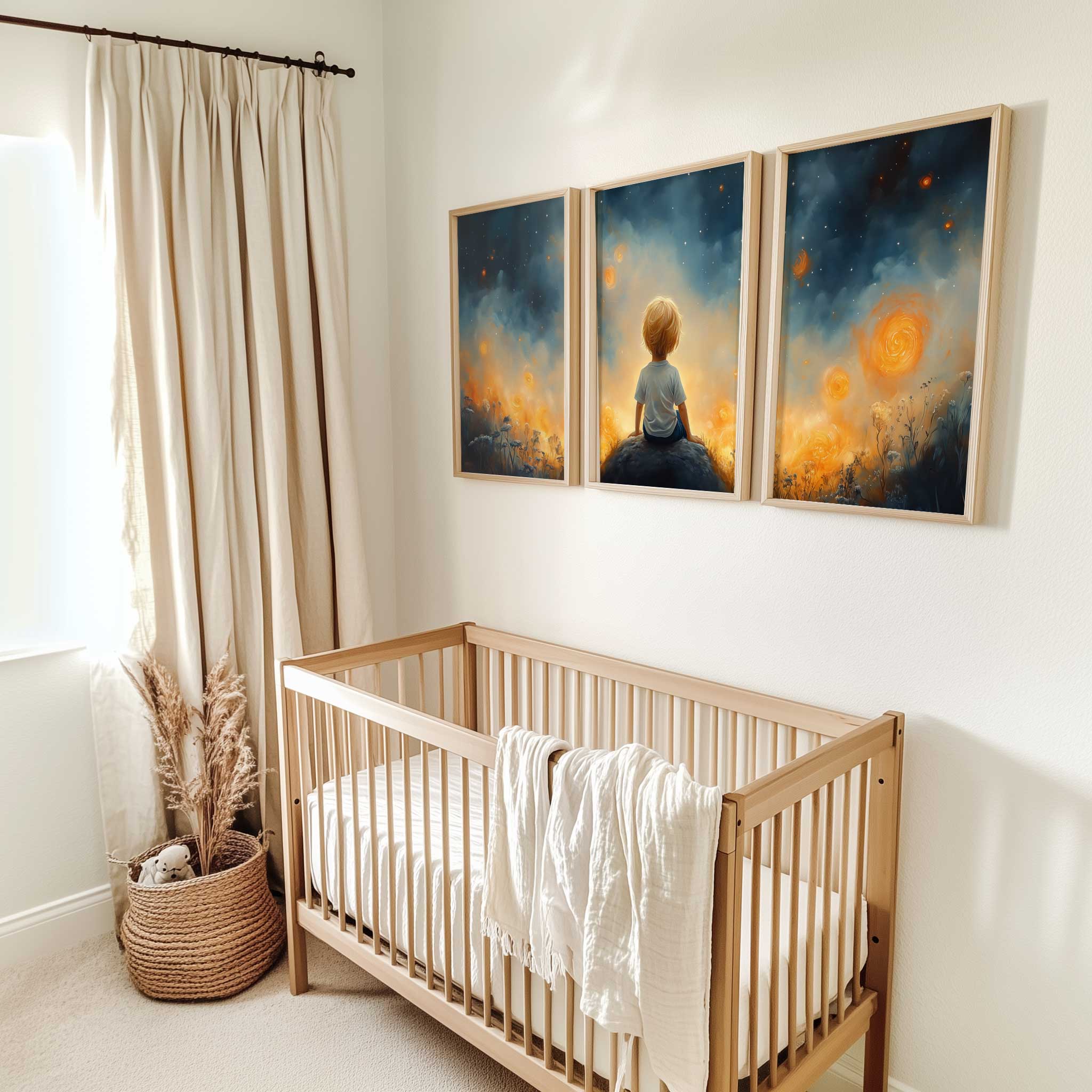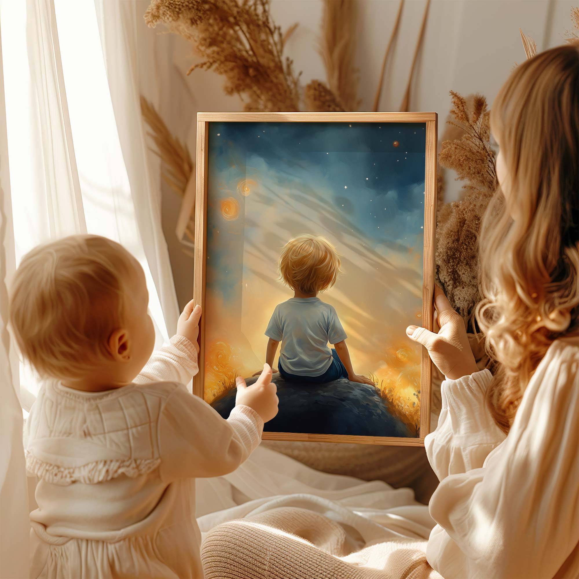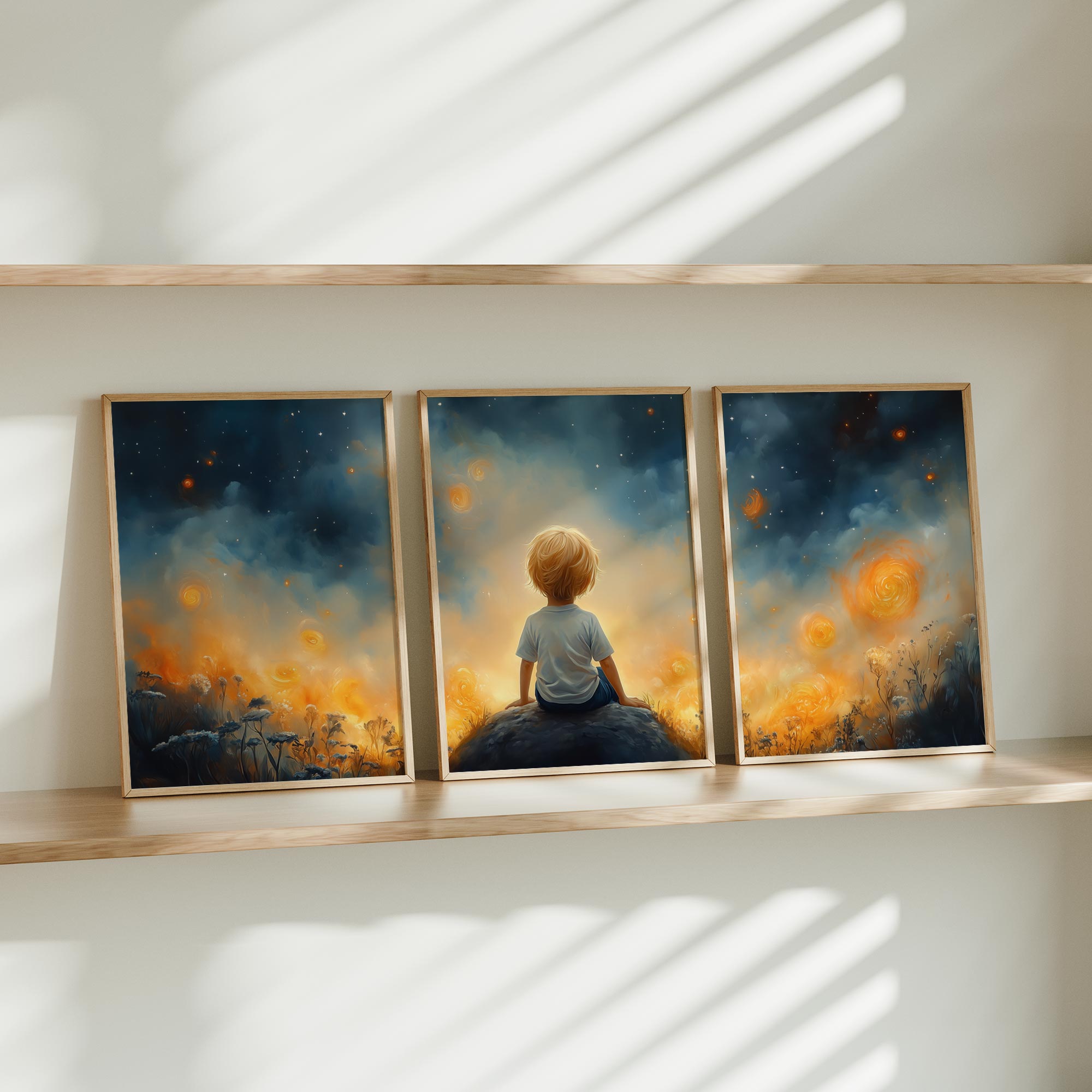 Dromerige Sterrenhemel met Verwonderde Jongen
